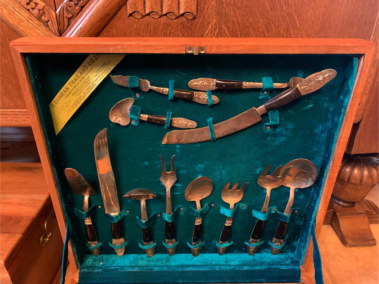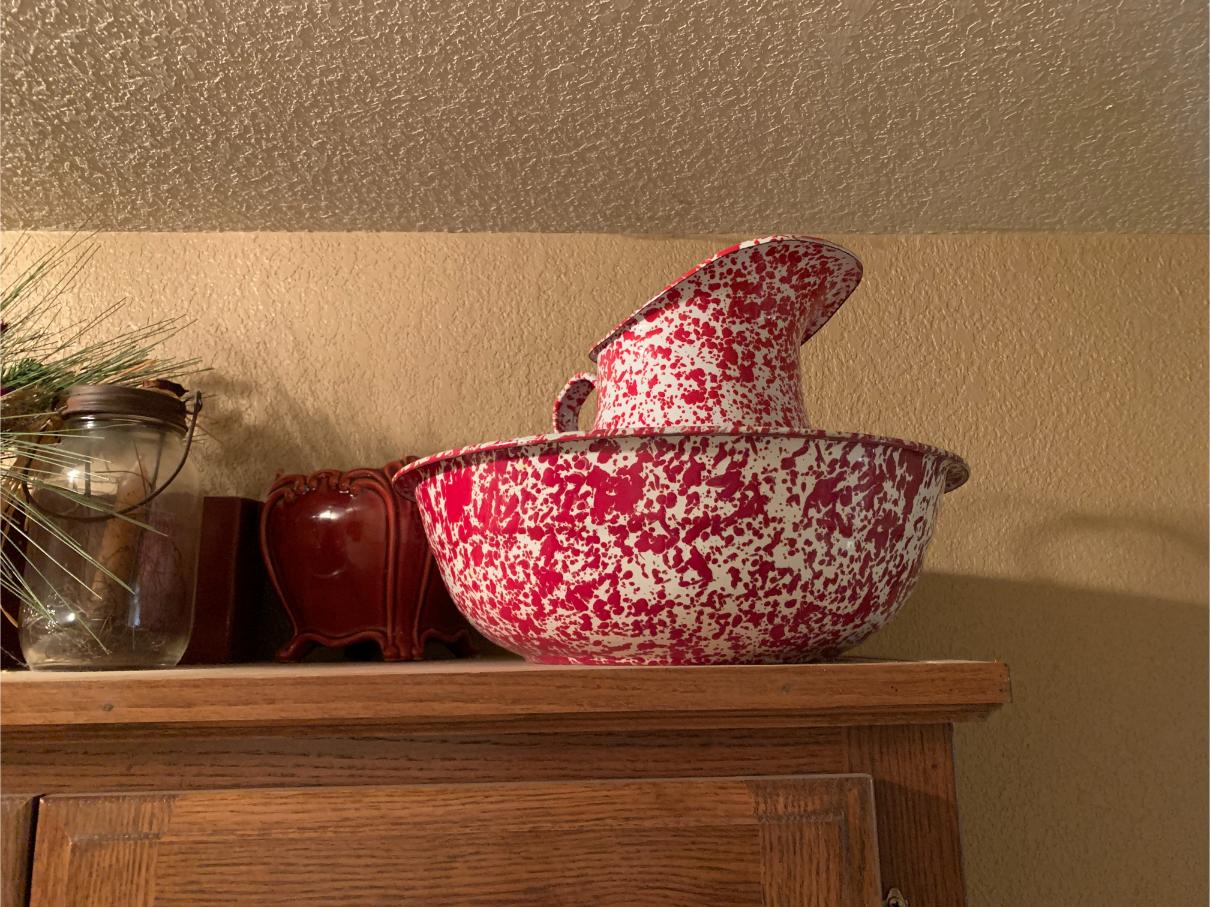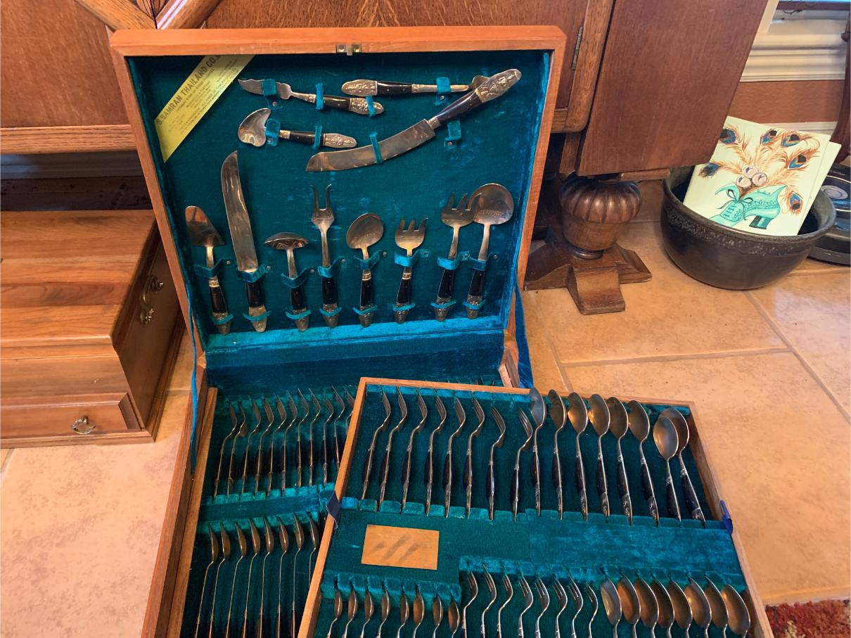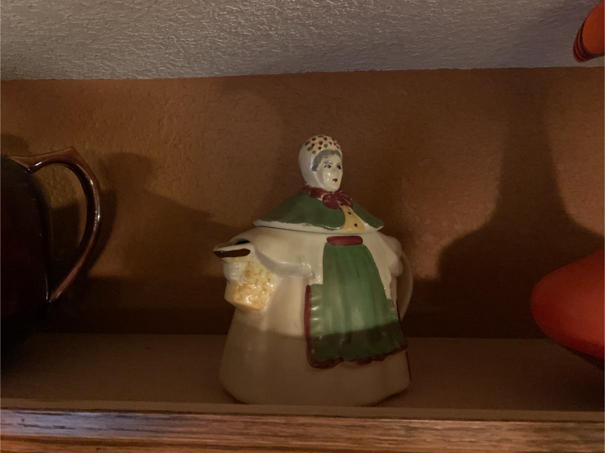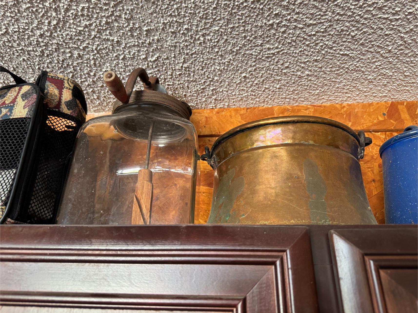 Antiques & Collectibles:Â (2) Oak Bow Front China Hutches – Oak Buffet – (2) Victorian Sofa & (2) Chairs – (2) Duncan Phyfe Round End Tables – Center Table – Oak Rockers – Eastlake Chairs – Mirrors, Pictures, Paintings – Stained Glass – Lamps, Floor Lamps – Kerosene Lamp – Mantle Clocks – Dazey Glass Churn – Pyrex Mixing Bowls – Cookie Jars – Planters Peanut Collectibles – Copper Bucket – Collector Plates – Misc Glassware – Iron Skillets – Wood Bowls – Crocks – Silver Plated Items – Rub Board – Galv Tubs – Tubs on Stands – Sleds – Planters – Well Pulley – Iron Tub Feet – Iron Wash Pot – Cast Iron Stove – Wrought Iron Furniture – Jewelry – Masonic Pins – Gold Plated Flatware in Case – Thailand 1966 Utensil Set in Case – Model Airplanes – Pitcher Pump – Push Plows