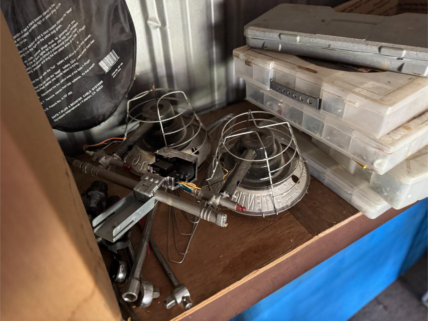 Shop:Â Anvil – Craftsman Roll Around Toolbox – Power & Hand Tools – Toolboxes – Honda Power Washer – Elec Power Washer – Air Compressors – Log Chains – Sprayer on Wheels – Weed Eaters – Adj Ladders – Fiberglass Ladders – Floor Jack – Bolt Bins – Appliance Dolly – Dollys – Roll Around Tables – Pop-up Canopies – Rubbermaid Cabinet – Lots of Shelving – Tarps – Propane Bottles – Propane Heaters – SS Roll Around Carts & Shelves