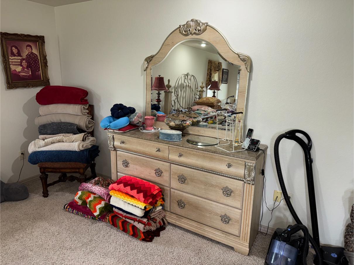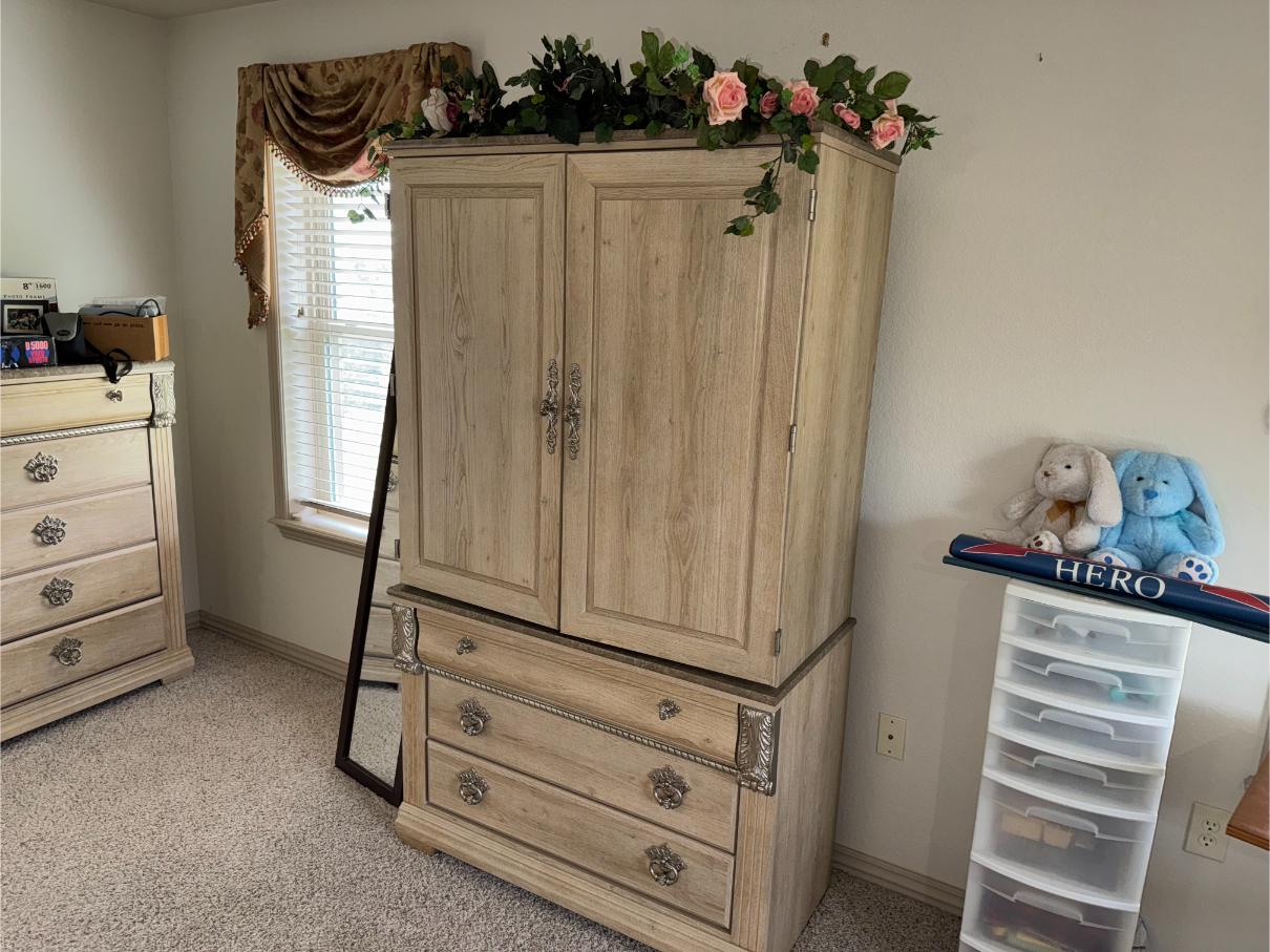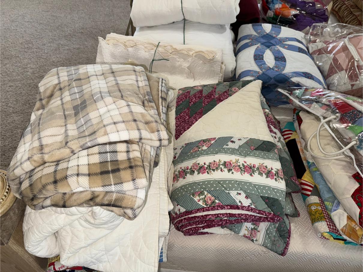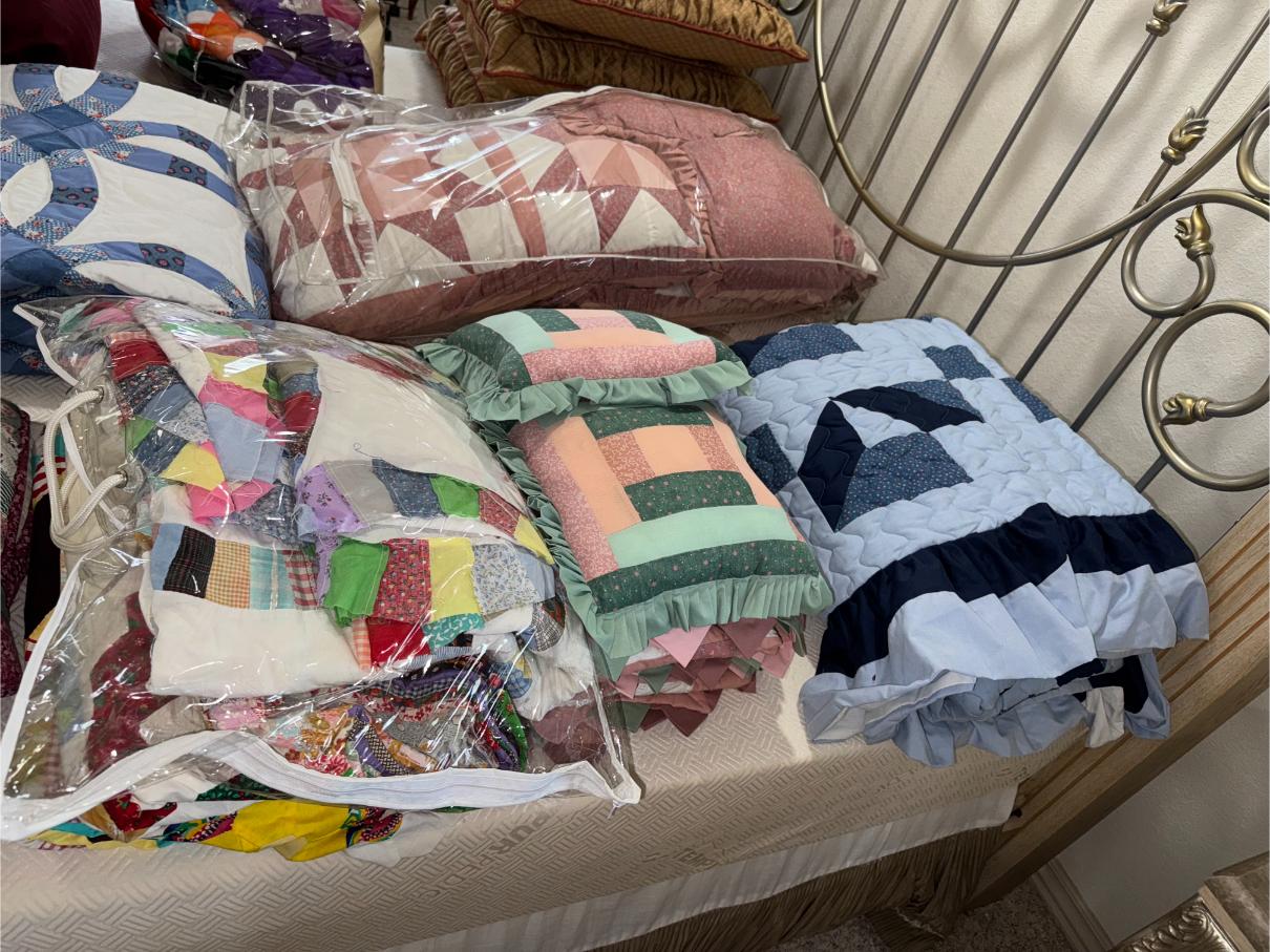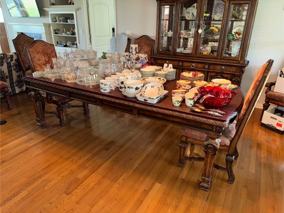 Household:Â (2) Leather Recliners – Micro-Suede Recliner – Sofa – Coffee & End Tables – Dining Room Table & (10) Chairs & Matching China Cabinet – Marble Top Table & (4) Chairs – Oak Table & Chairs – Bombay Style Chest – 3′ Curio Cabinet – Oak Ent Center – Bar Stool – Blonde King Size Bed, Dresser, Chest, Armoire & Nightstands – Full Size Bed – Mahogany Gentleman’s Chest & Quilt Box – Oak Nightstands – Elec Fireplace – Jewelry Armoire – Maytag 3-Door Refrigerator – Frigidaire Upright Freezer – Whirlpool Washer & Dryer – Small Appliances – Kitchen Aid Mixer – Pots & Pans – Corningware – Dishes – Pictures, Mirrors – Lamps – Home Decor – Area Rugs – TV’s (LG, Samsung) – Misc Electronics – Linens – Purses – Wrought Iron Patio Furniture – Sentry Safe – Heaters – Seasonal Decorations – Clothes RacksÂ