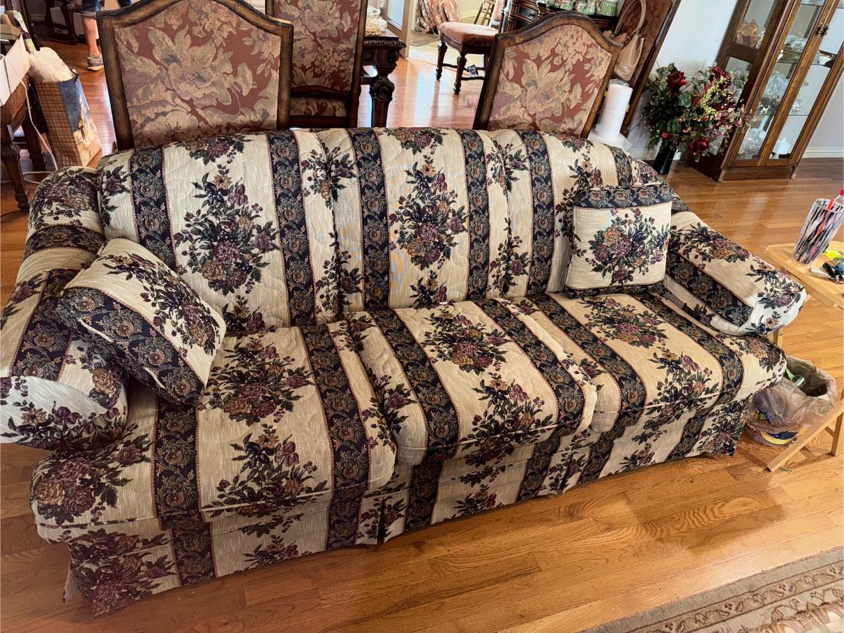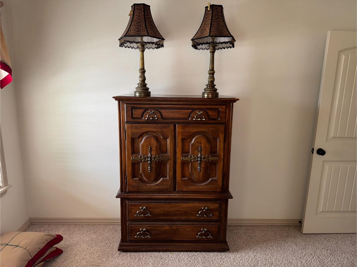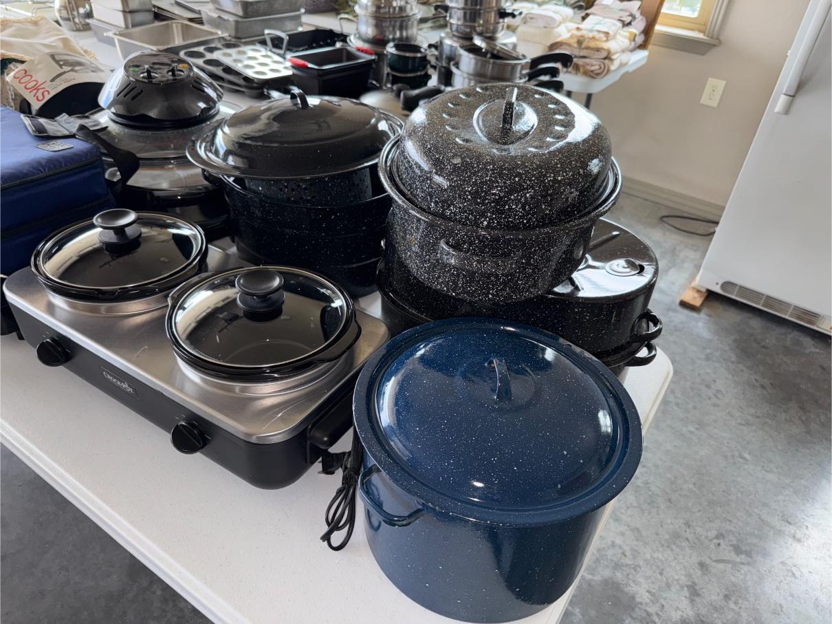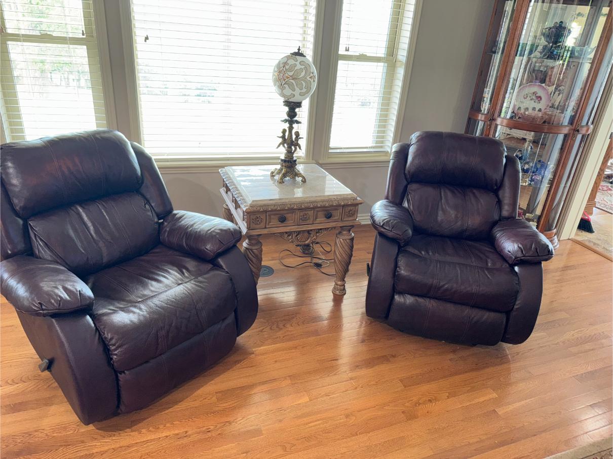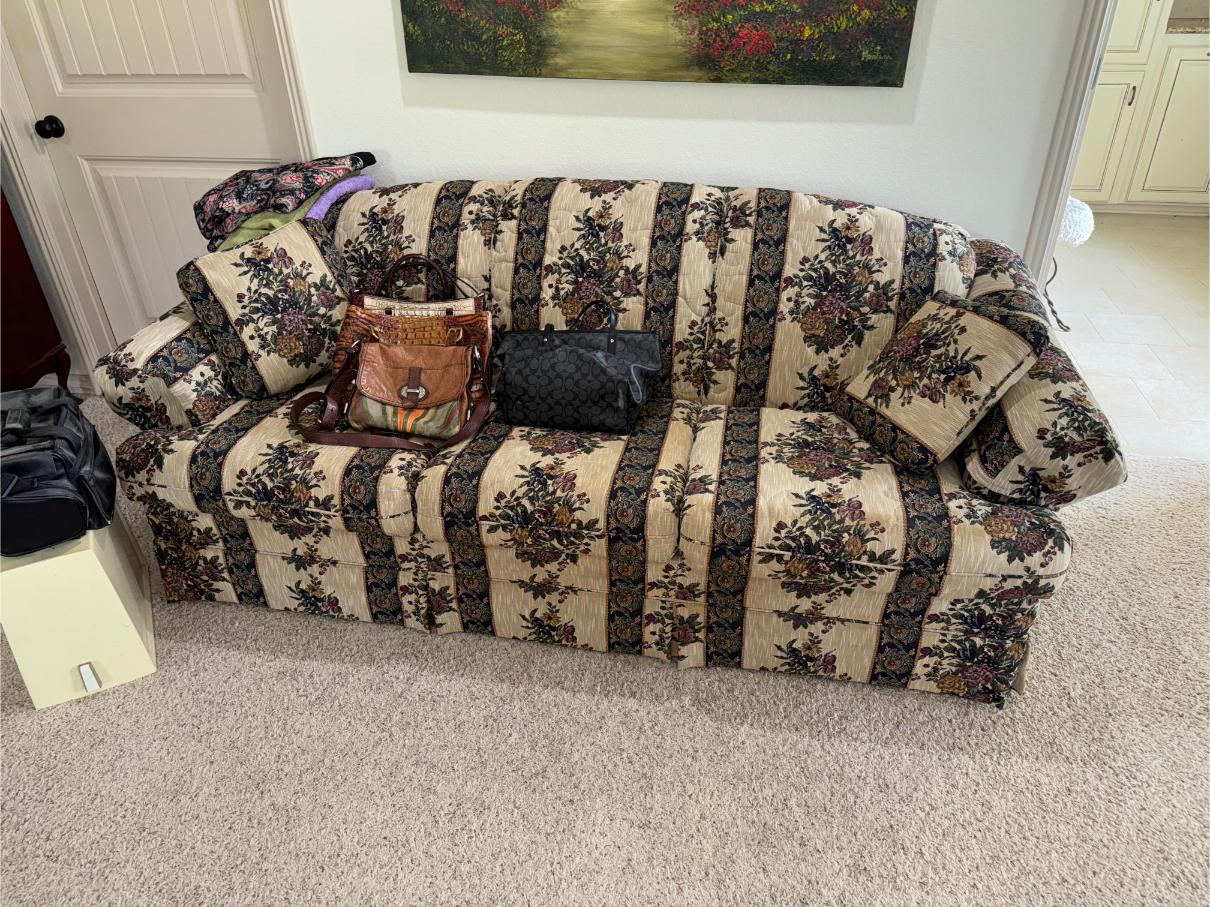 Household:Â (2) Leather Recliners – Micro-Suede Recliner – Sofa – Coffee & End Tables – Dining Room Table & (10) Chairs & Matching China Cabinet – Marble Top Table & (4) Chairs – Oak Table & Chairs – Bombay Style Chest – 3′ Curio Cabinet – Oak Ent Center – Bar Stool – Blonde King Size Bed, Dresser, Chest, Armoire & Nightstands – Full Size Bed – Mahogany Gentleman’s Chest & Quilt Box – Oak Nightstands – Elec Fireplace – Jewelry Armoire – Maytag 3-Door Refrigerator – Frigidaire Upright Freezer – Whirlpool Washer & Dryer – Small Appliances – Kitchen Aid Mixer – Pots & Pans – Corningware – Dishes – Pictures, Mirrors – Lamps – Home Decor – Area Rugs – TV’s (LG, Samsung) – Misc Electronics – Linens – Purses – Wrought Iron Patio Furniture – Sentry Safe – Heaters – Seasonal Decorations – Clothes RacksÂ