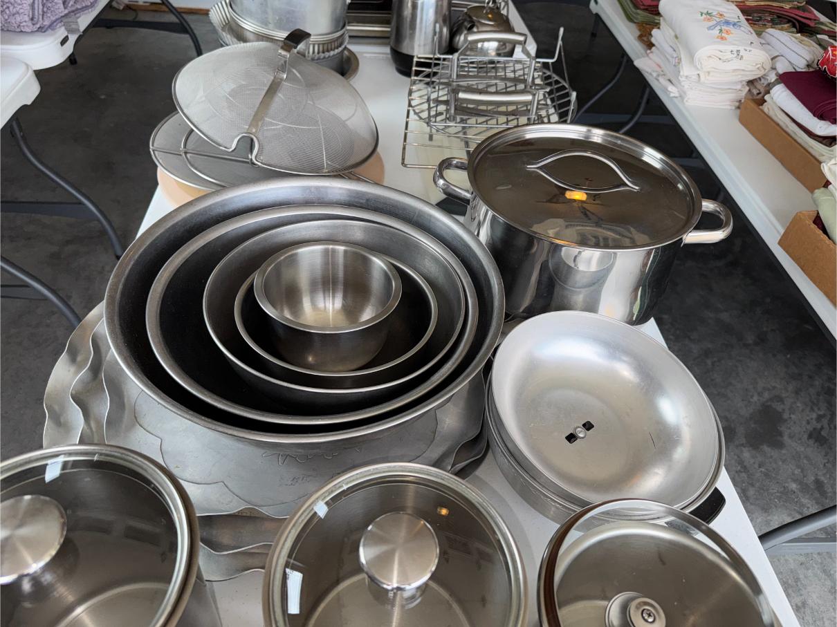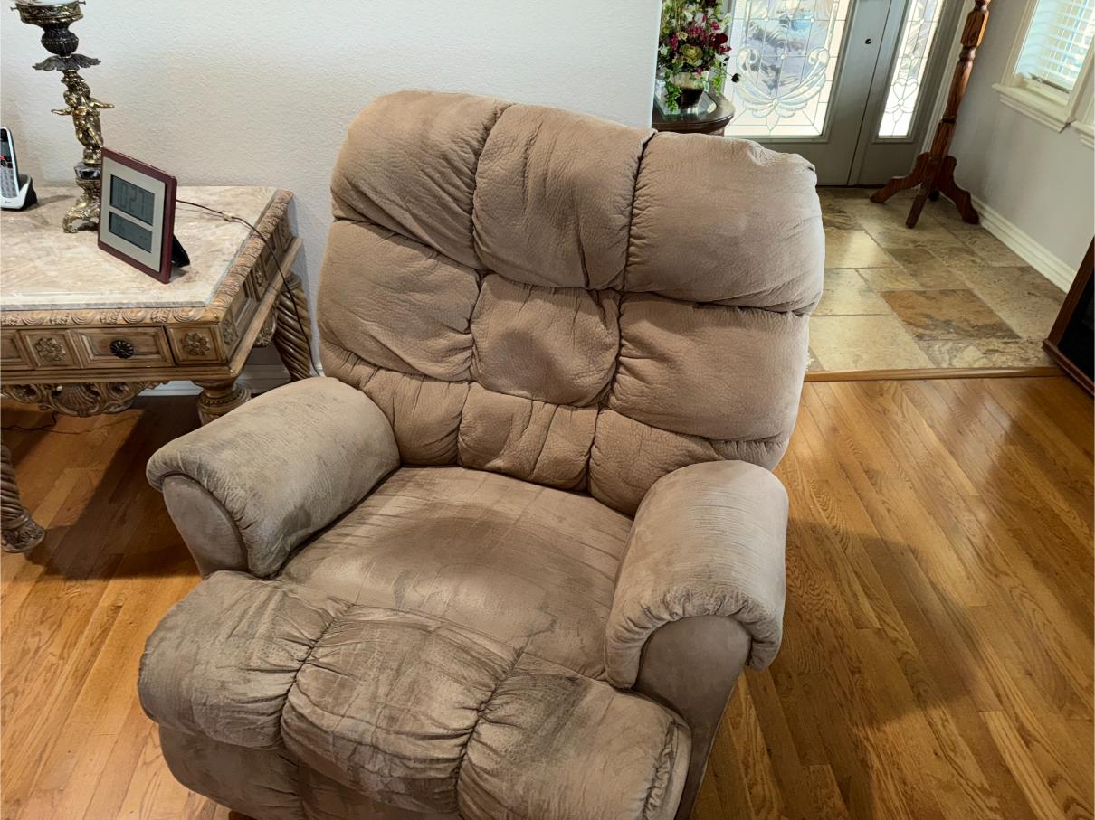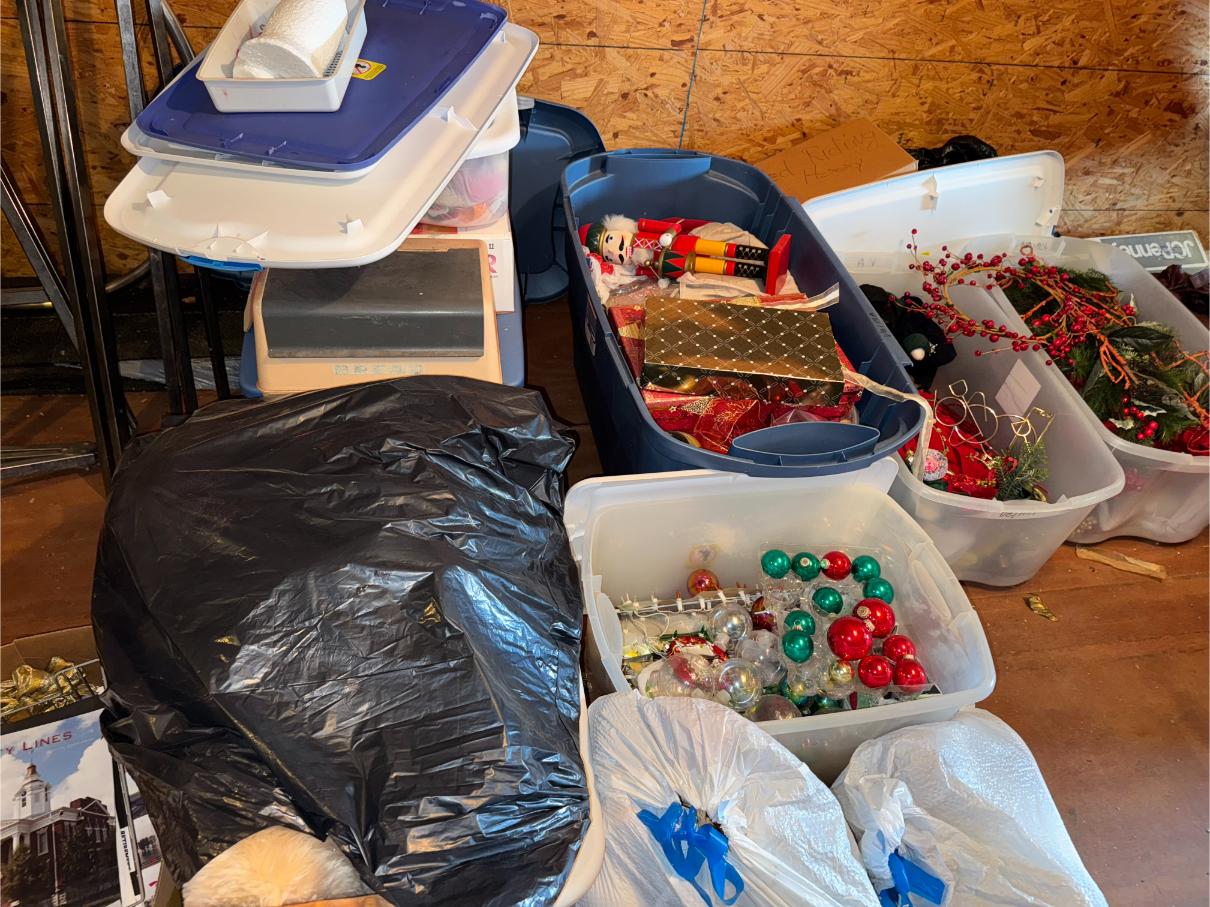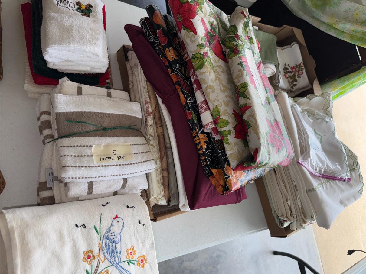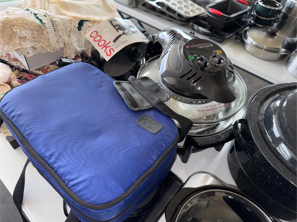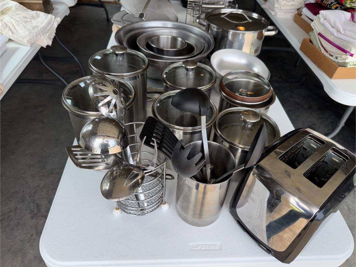 Household:Â (2) Leather Recliners – Micro-Suede Recliner – Sofa – Coffee & End Tables – Dining Room Table & (10) Chairs & Matching China Cabinet – Marble Top Table & (4) Chairs – Oak Table & Chairs – Bombay Style Chest – 3′ Curio Cabinet – Oak Ent Center – Bar Stool – Blonde King Size Bed, Dresser, Chest, Armoire & Nightstands – Full Size Bed – Mahogany Gentleman’s Chest & Quilt Box – Oak Nightstands – Elec Fireplace – Jewelry Armoire – Maytag 3-Door Refrigerator – Frigidaire Upright Freezer – Whirlpool Washer & Dryer – Small Appliances – Kitchen Aid Mixer – Pots & Pans – Corningware – Dishes – Pictures, Mirrors – Lamps – Home Decor – Area Rugs – TV’s (LG, Samsung) – Misc Electronics – Linens – Purses – Wrought Iron Patio Furniture – Sentry Safe – Heaters – Seasonal Decorations – Clothes RacksÂ