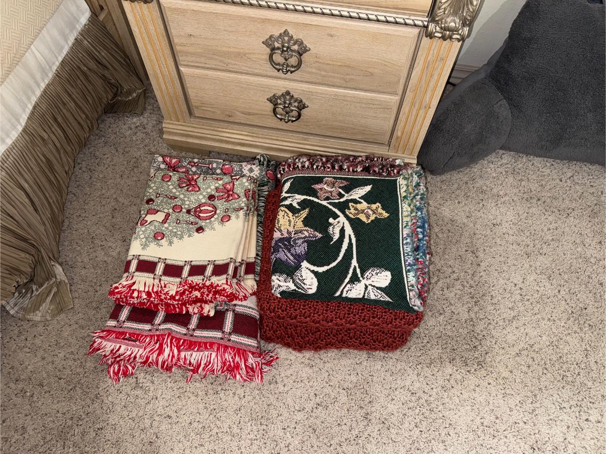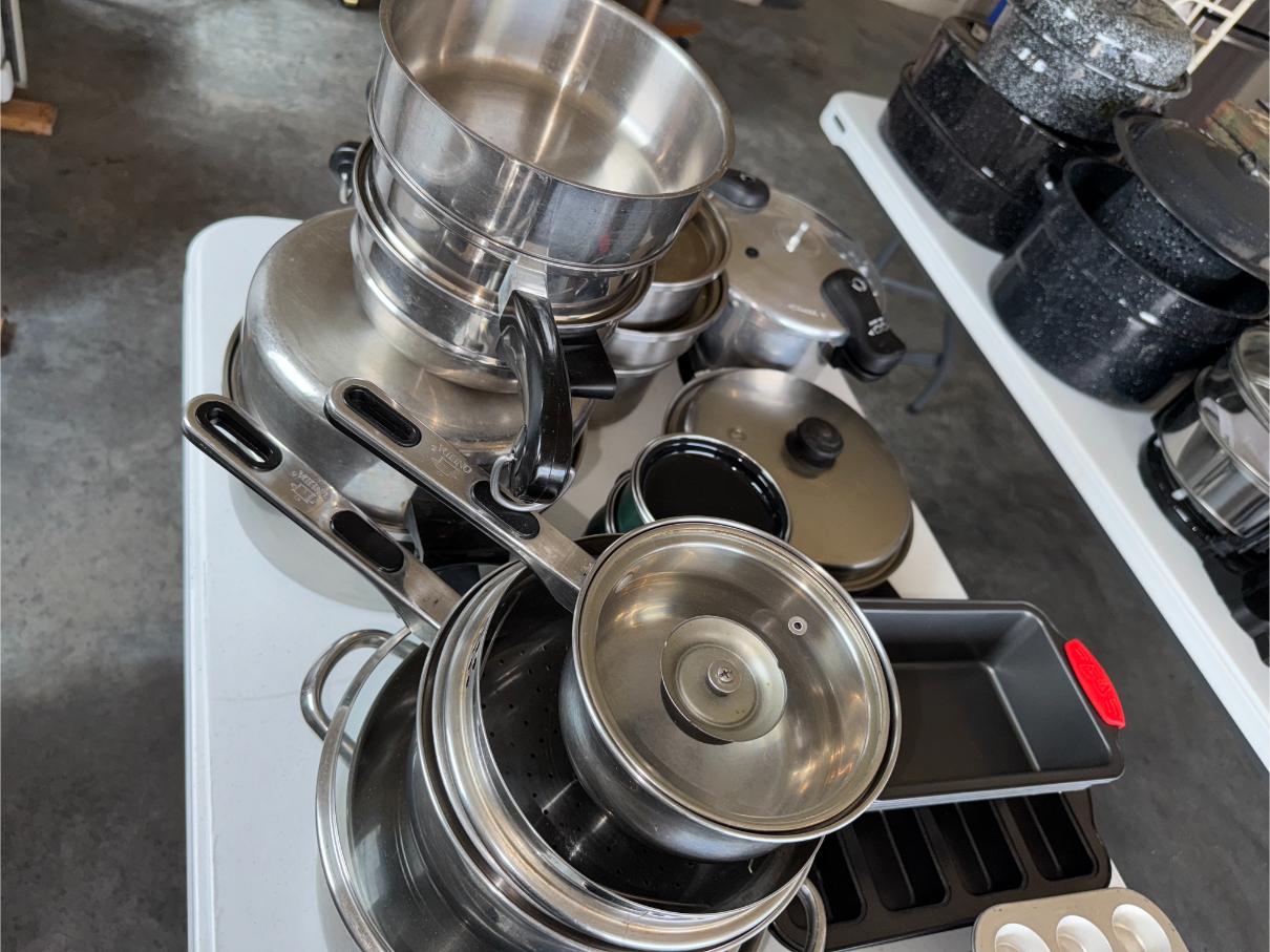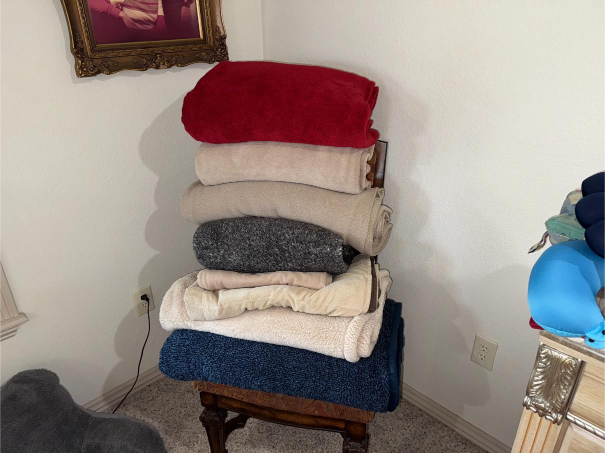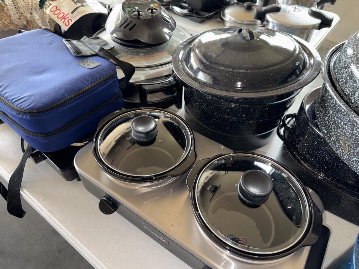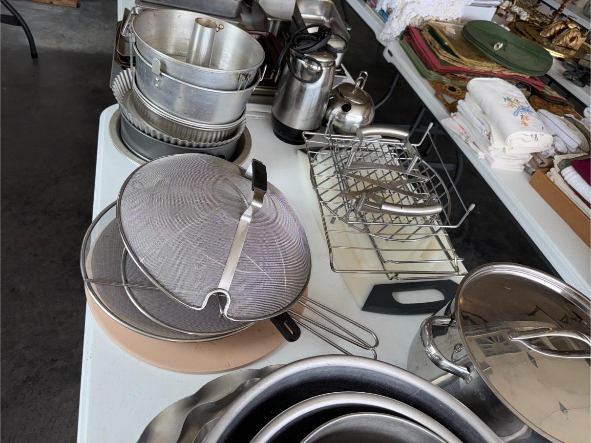 Household:Â (2) Leather Recliners – Micro-Suede Recliner – Sofa – Coffee & End Tables – Dining Room Table & (10) Chairs & Matching China Cabinet – Marble Top Table & (4) Chairs – Oak Table & Chairs – Bombay Style Chest – 3′ Curio Cabinet – Oak Ent Center – Bar Stool – Blonde King Size Bed, Dresser, Chest, Armoire & Nightstands – Full Size Bed – Mahogany Gentleman’s Chest & Quilt Box – Oak Nightstands – Elec Fireplace – Jewelry Armoire – Maytag 3-Door Refrigerator – Frigidaire Upright Freezer – Whirlpool Washer & Dryer – Small Appliances – Kitchen Aid Mixer – Pots & Pans – Corningware – Dishes – Pictures, Mirrors – Lamps – Home Decor – Area Rugs – TV’s (LG, Samsung) – Misc Electronics – Linens – Purses – Wrought Iron Patio Furniture – Sentry Safe – Heaters – Seasonal Decorations – Clothes RacksÂ