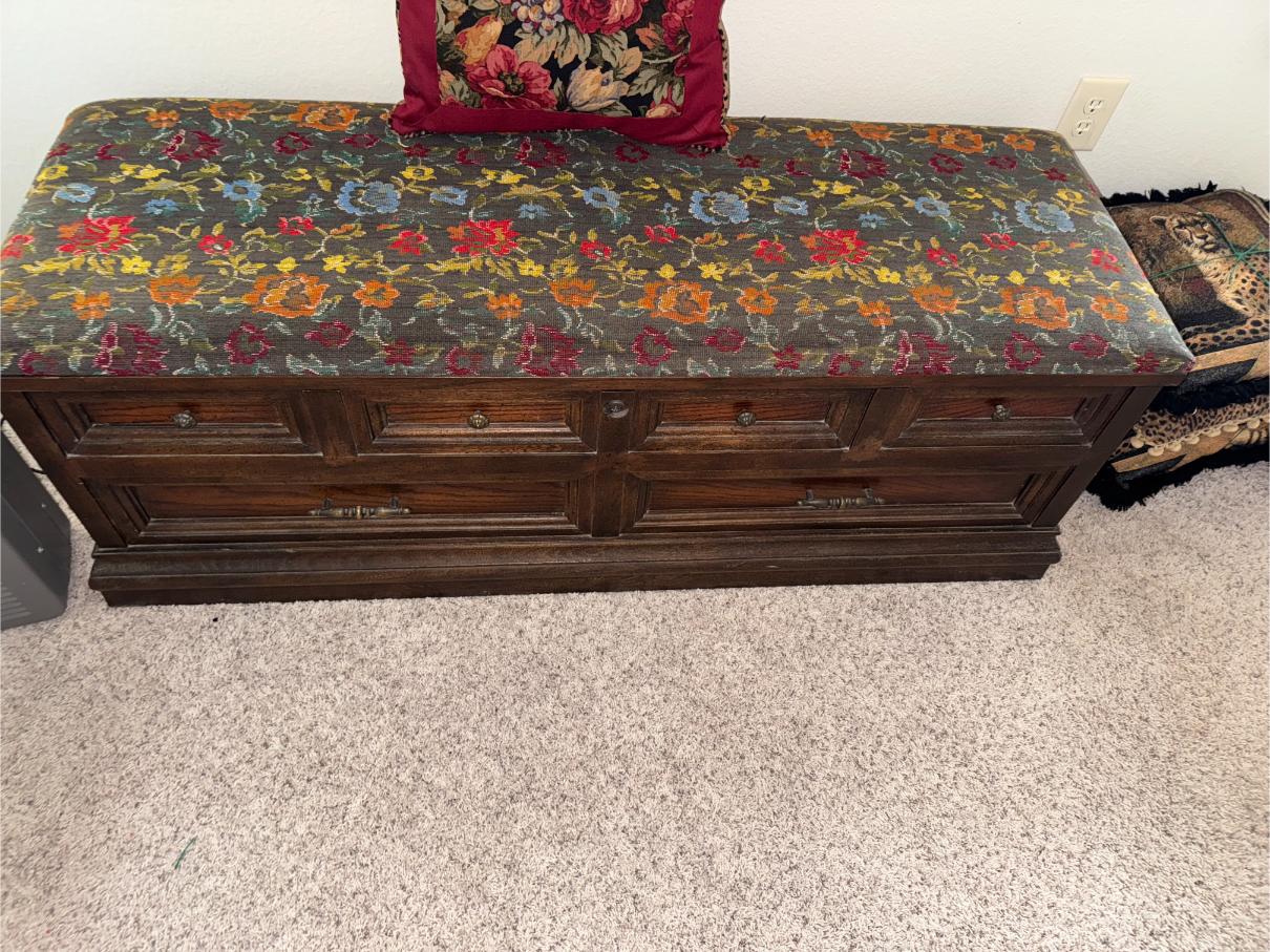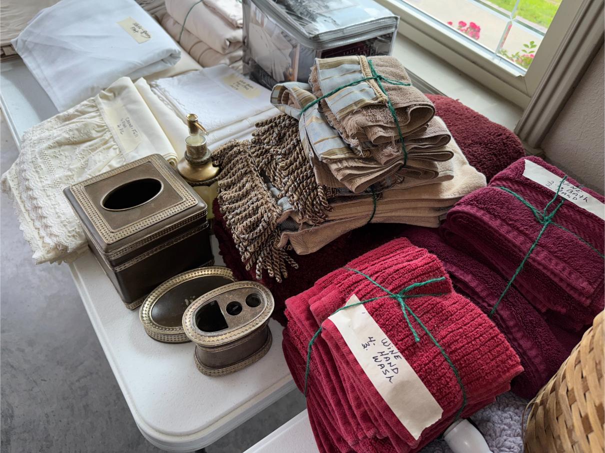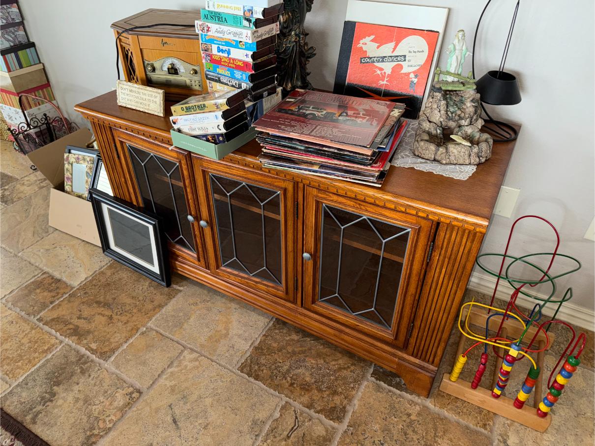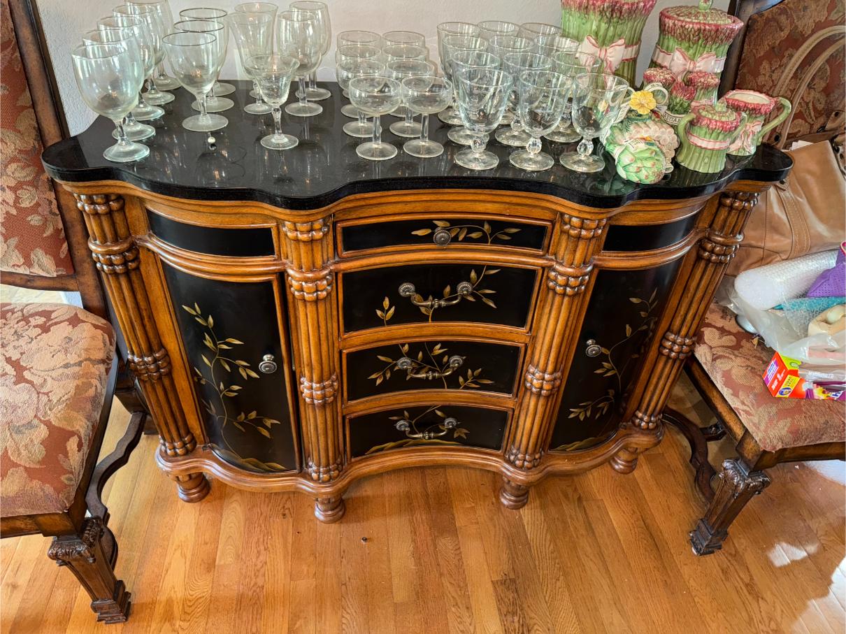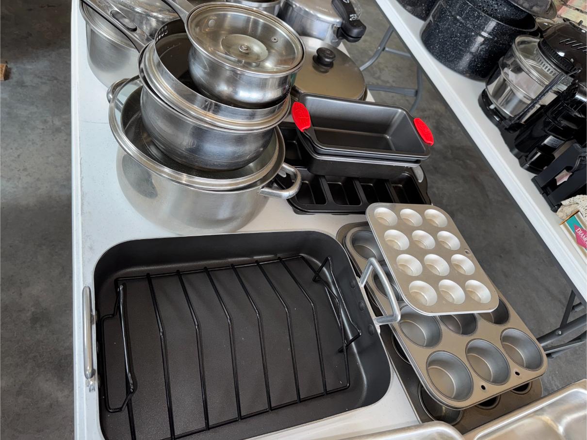 Household:Â (2) Leather Recliners – Micro-Suede Recliner – Sofa – Coffee & End Tables – Dining Room Table & (10) Chairs & Matching China Cabinet – Marble Top Table & (4) Chairs – Oak Table & Chairs – Bombay Style Chest – 3′ Curio Cabinet – Oak Ent Center – Bar Stool – Blonde King Size Bed, Dresser, Chest, Armoire & Nightstands – Full Size Bed – Mahogany Gentleman’s Chest & Quilt Box – Oak Nightstands – Elec Fireplace – Jewelry Armoire – Maytag 3-Door Refrigerator – Frigidaire Upright Freezer – Whirlpool Washer & Dryer – Small Appliances – Kitchen Aid Mixer – Pots & Pans – Corningware – Dishes – Pictures, Mirrors – Lamps – Home Decor – Area Rugs – TV’s (LG, Samsung) – Misc Electronics – Linens – Purses – Wrought Iron Patio Furniture – Sentry Safe – Heaters – Seasonal Decorations – Clothes RacksÂ