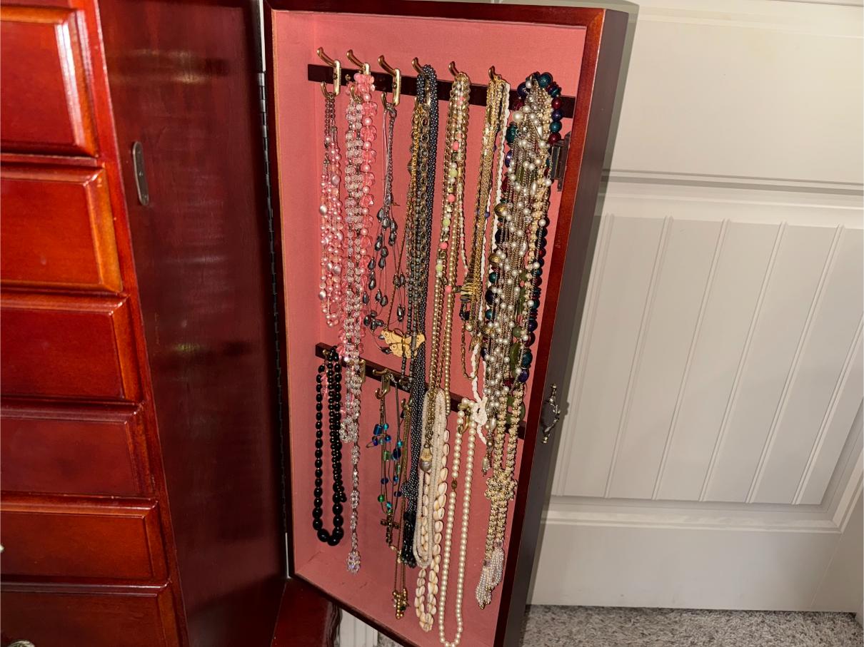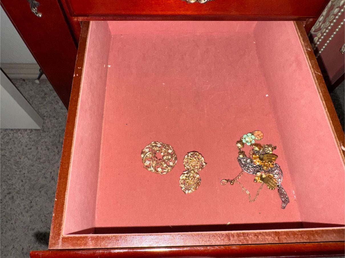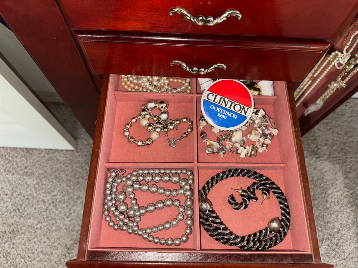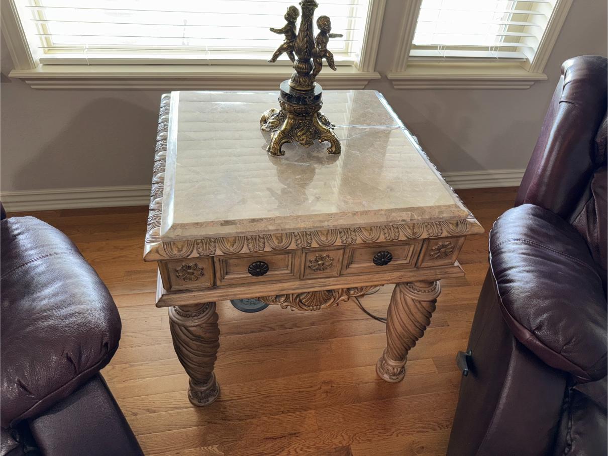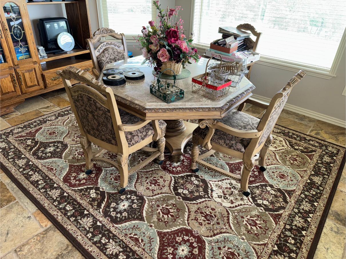 Household:Â (2) Leather Recliners – Micro-Suede Recliner – Sofa – Coffee & End Tables – Dining Room Table & (10) Chairs & Matching China Cabinet – Marble Top Table & (4) Chairs – Oak Table & Chairs – Bombay Style Chest – 3′ Curio Cabinet – Oak Ent Center – Bar Stool – Blonde King Size Bed, Dresser, Chest, Armoire & Nightstands – Full Size Bed – Mahogany Gentleman’s Chest & Quilt Box – Oak Nightstands – Elec Fireplace – Jewelry Armoire – Maytag 3-Door Refrigerator – Frigidaire Upright Freezer – Whirlpool Washer & Dryer – Small Appliances – Kitchen Aid Mixer – Pots & Pans – Corningware – Dishes – Pictures, Mirrors – Lamps – Home Decor – Area Rugs – TV’s (LG, Samsung) – Misc Electronics – Linens – Purses – Wrought Iron Patio Furniture – Sentry Safe – Heaters – Seasonal Decorations – Clothes RacksÂ