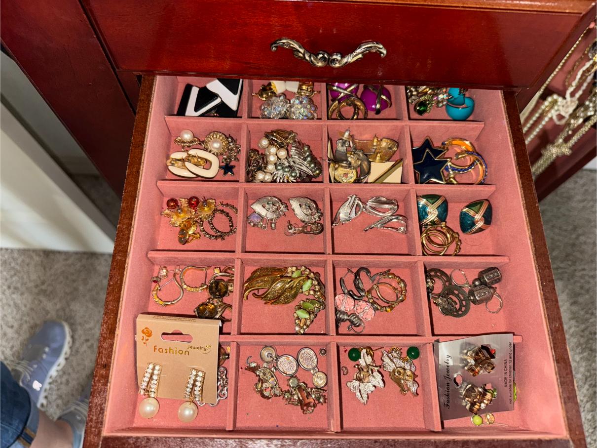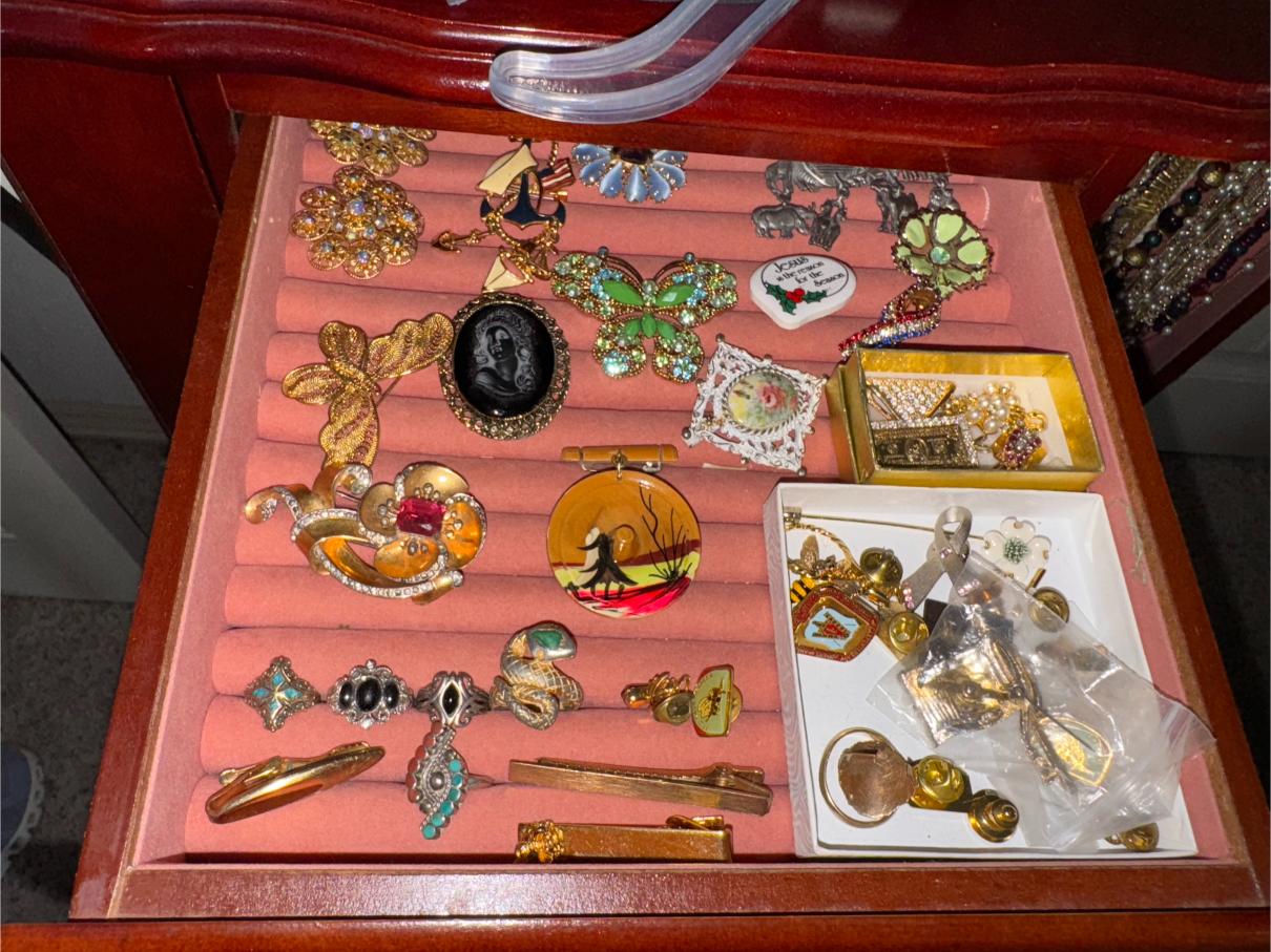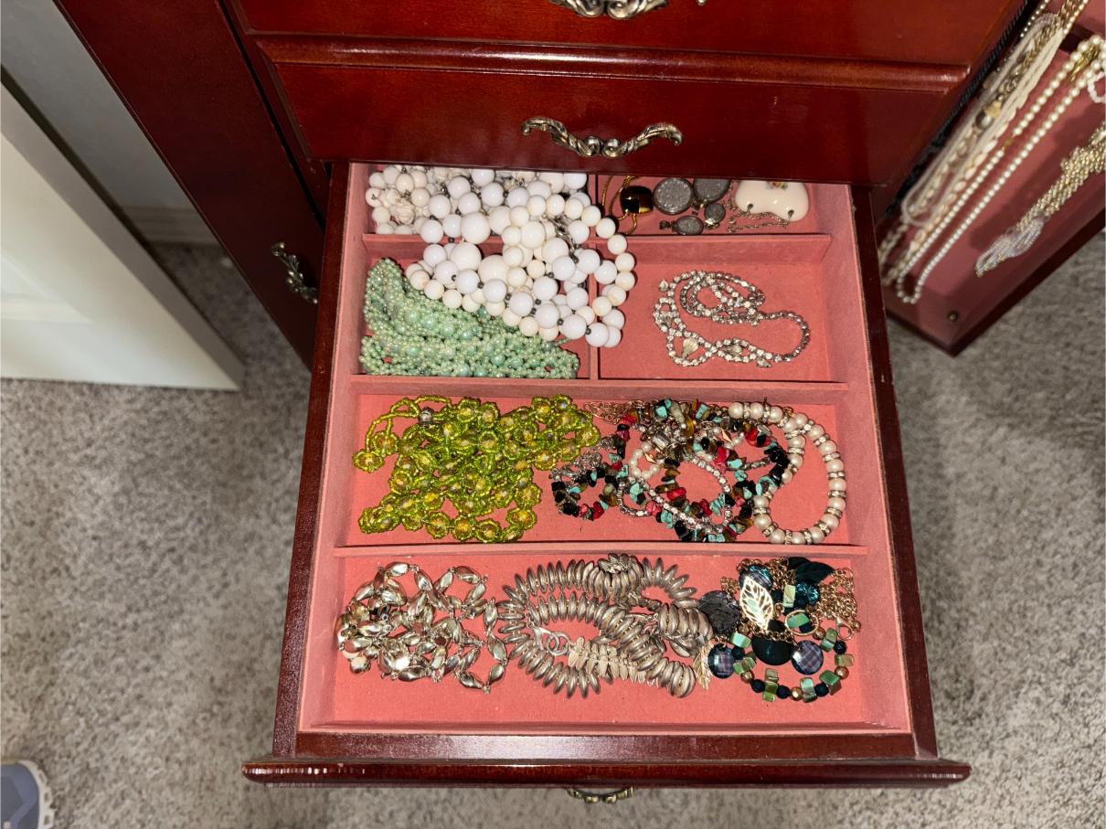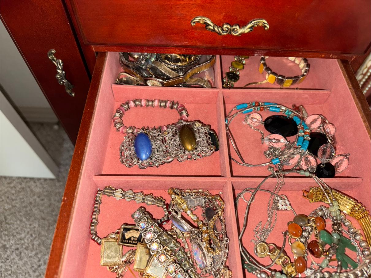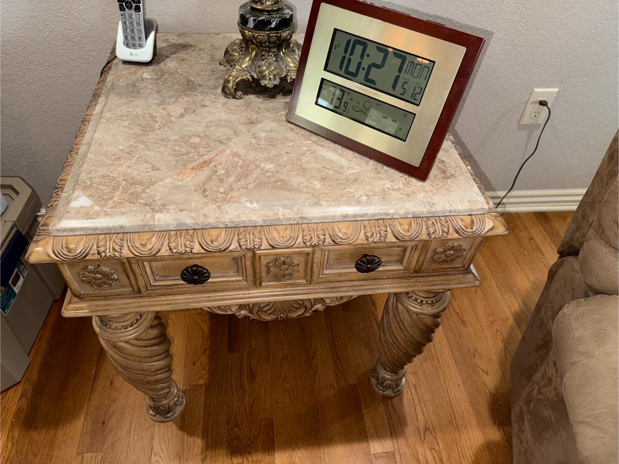 Household:Â (2) Leather Recliners – Micro-Suede Recliner – Sofa – Coffee & End Tables – Dining Room Table & (10) Chairs & Matching China Cabinet – Marble Top Table & (4) Chairs – Oak Table & Chairs – Bombay Style Chest – 3′ Curio Cabinet – Oak Ent Center – Bar Stool – Blonde King Size Bed, Dresser, Chest, Armoire & Nightstands – Full Size Bed – Mahogany Gentleman’s Chest & Quilt Box – Oak Nightstands – Elec Fireplace – Jewelry Armoire – Maytag 3-Door Refrigerator – Frigidaire Upright Freezer – Whirlpool Washer & Dryer – Small Appliances – Kitchen Aid Mixer – Pots & Pans – Corningware – Dishes – Pictures, Mirrors – Lamps – Home Decor – Area Rugs – TV’s (LG, Samsung) – Misc Electronics – Linens – Purses – Wrought Iron Patio Furniture – Sentry Safe – Heaters – Seasonal Decorations – Clothes RacksÂ