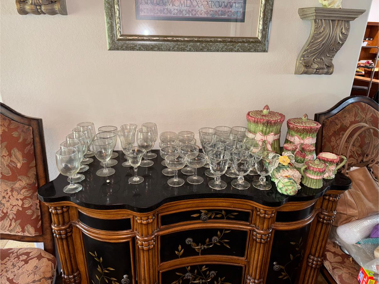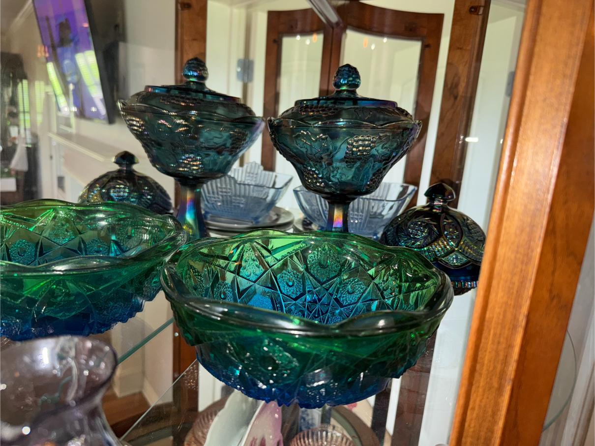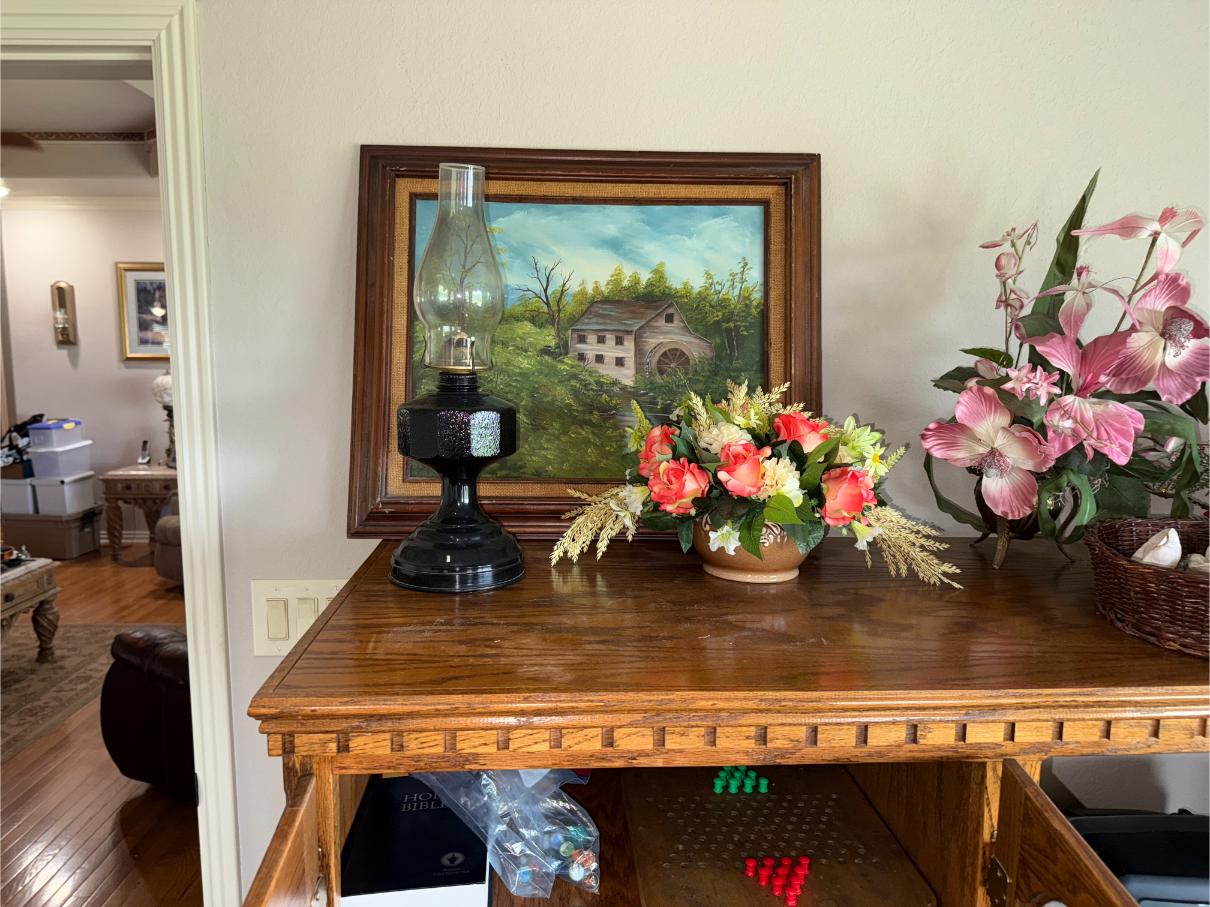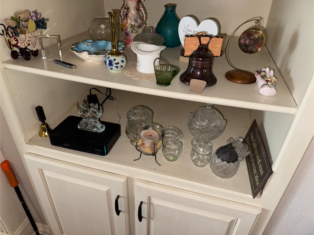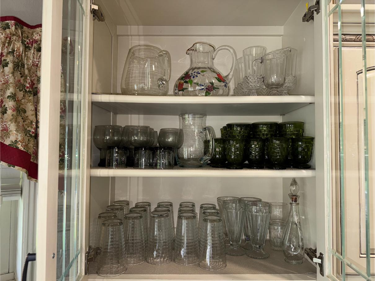 Antiques & Collectibles:Â Duncan Phyfe Round Table – Crock Bowl – Pink & Green Depression Glass – Franciscan Apple Dishes – Cedar Cove Dishes – Cut Glass – Clear Glass – Crystal – Carnival Glass – China – Lenox – S&P Collection – Cups & Saucers – Collector Plates – Homes & Edward Silverware – Brass Spittoon – Crock – Bottle Collection – Lanterns – Oak Hat Rack – Kerosene Lamp – Records – Kitchen Clock – Singer Sewing Machine & Cabinet – Afghans – Quilts – Jewelry – Makeup Stool – Needle Point Chair