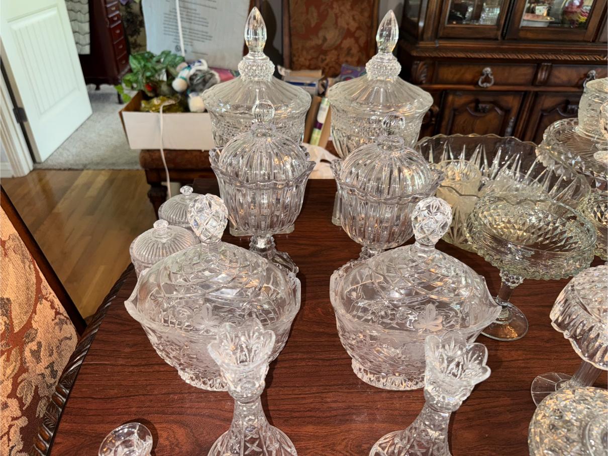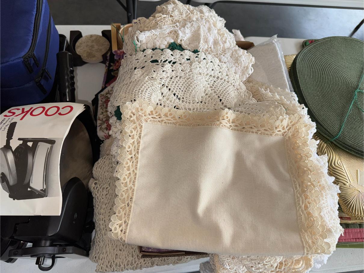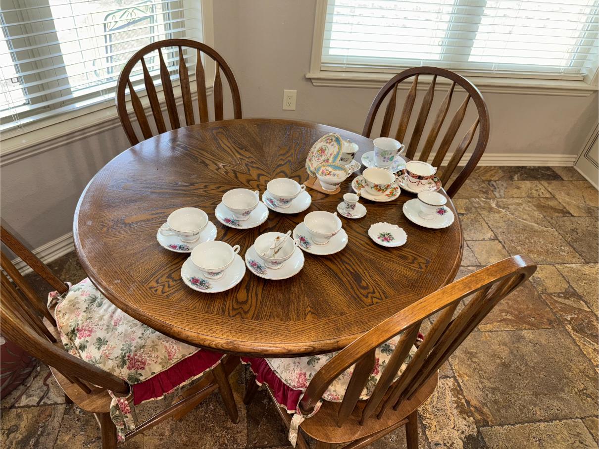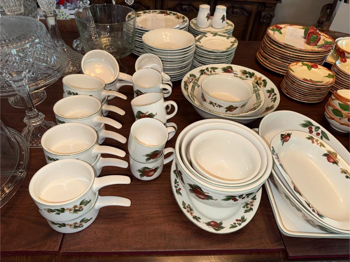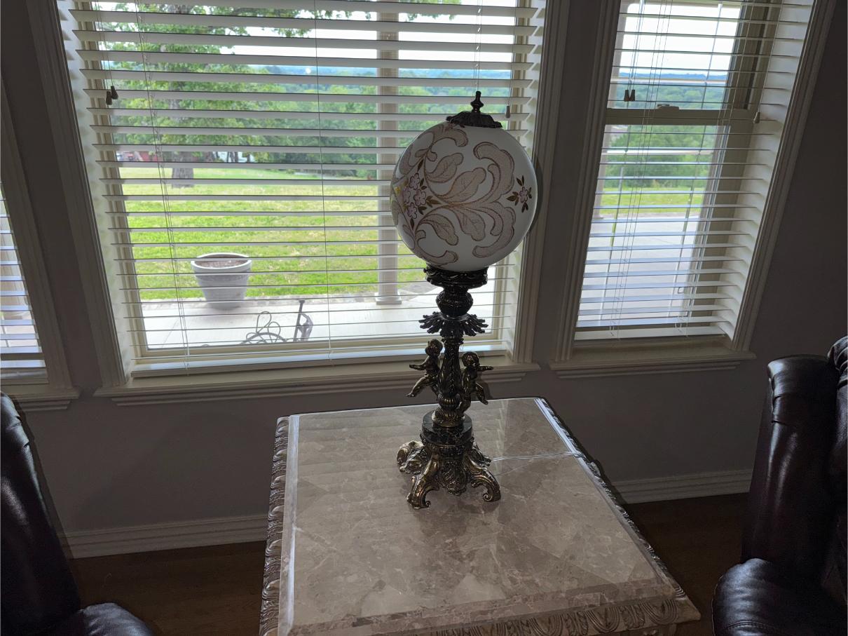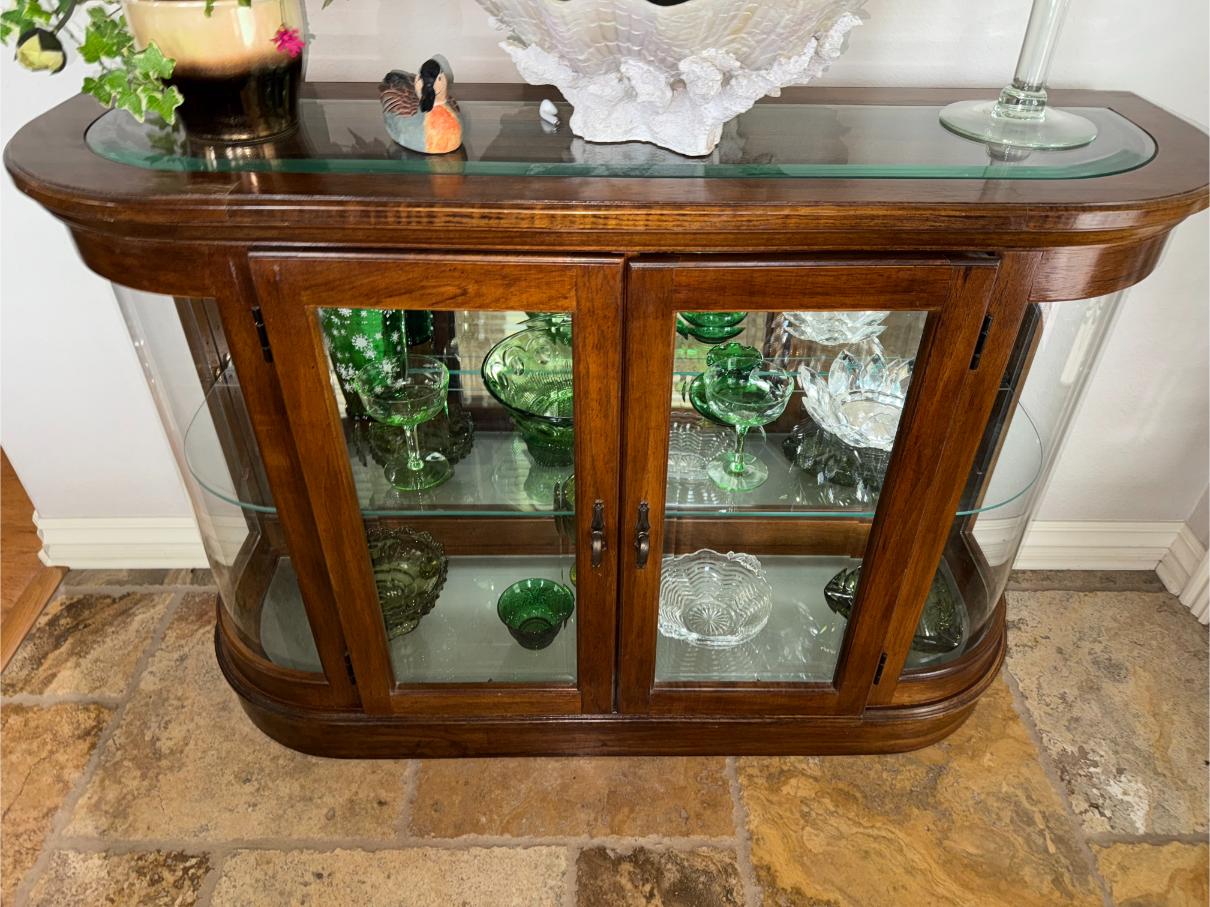 Antiques & Collectibles:Â Duncan Phyfe Round Table – Crock Bowl – Pink & Green Depression Glass – Franciscan Apple Dishes – Cedar Cove Dishes – Cut Glass – Clear Glass – Crystal – Carnival Glass – China – Lenox – S&P Collection – Cups & Saucers – Collector Plates – Homes & Edward Silverware – Brass Spittoon – Crock – Bottle Collection – Lanterns – Oak Hat Rack – Kerosene Lamp – Records – Kitchen Clock – Singer Sewing Machine & Cabinet – Afghans – Quilts – Jewelry – Makeup Stool – Needle Point Chair