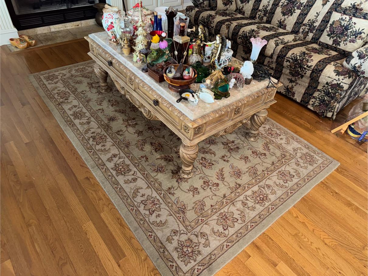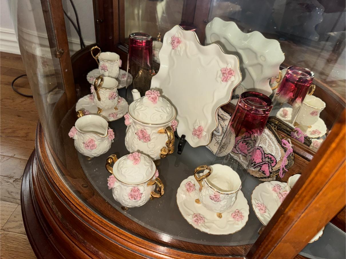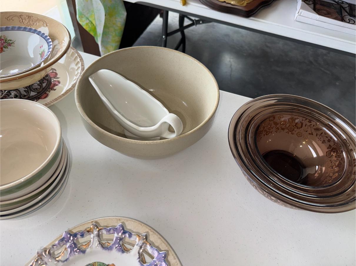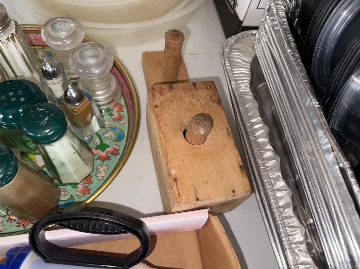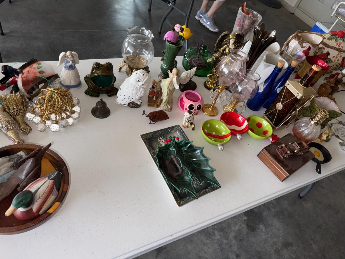 Antiques & Collectibles:Â Duncan Phyfe Round Table – Crock Bowl – Pink & Green Depression Glass – Franciscan Apple Dishes – Cedar Cove Dishes – Cut Glass – Clear Glass – Crystal – Carnival Glass – China – Lenox – S&P Collection – Cups & Saucers – Collector Plates – Homes & Edward Silverware – Brass Spittoon – Crock – Bottle Collection – Lanterns – Oak Hat Rack – Kerosene Lamp – Records – Kitchen Clock – Singer Sewing Machine & Cabinet – Afghans – Quilts – Jewelry – Makeup Stool – Needle Point Chair
