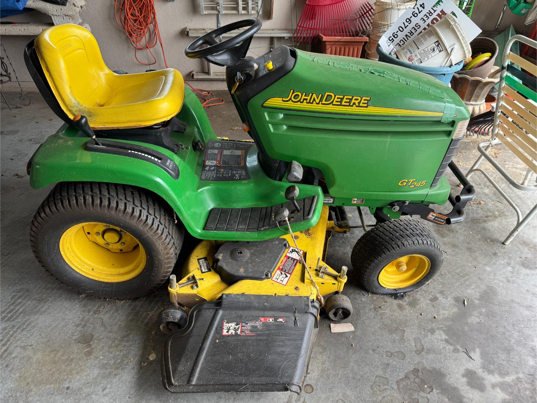 Shop:Â Â John Deere GT245 Riding Mower – Weed Eater – Troy Bilt Power Washer – Yard Tools – Alum Ramps – Yard Trailer – Fiberglass & Alum Ladders – Hand Tools