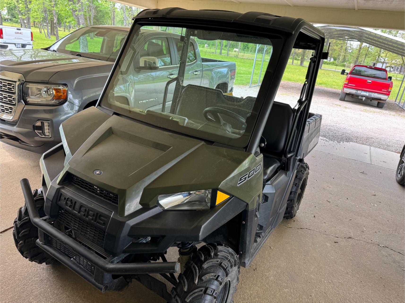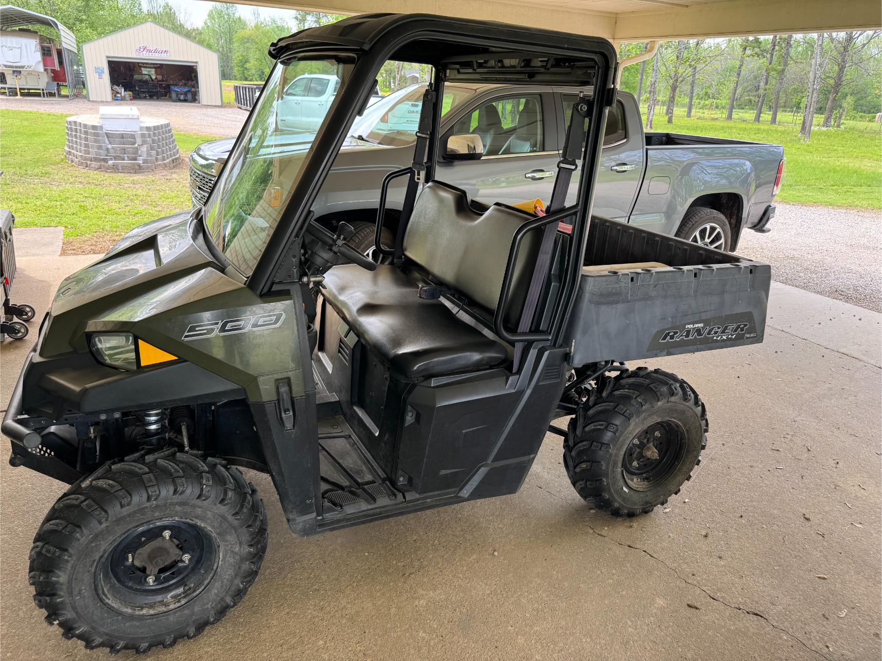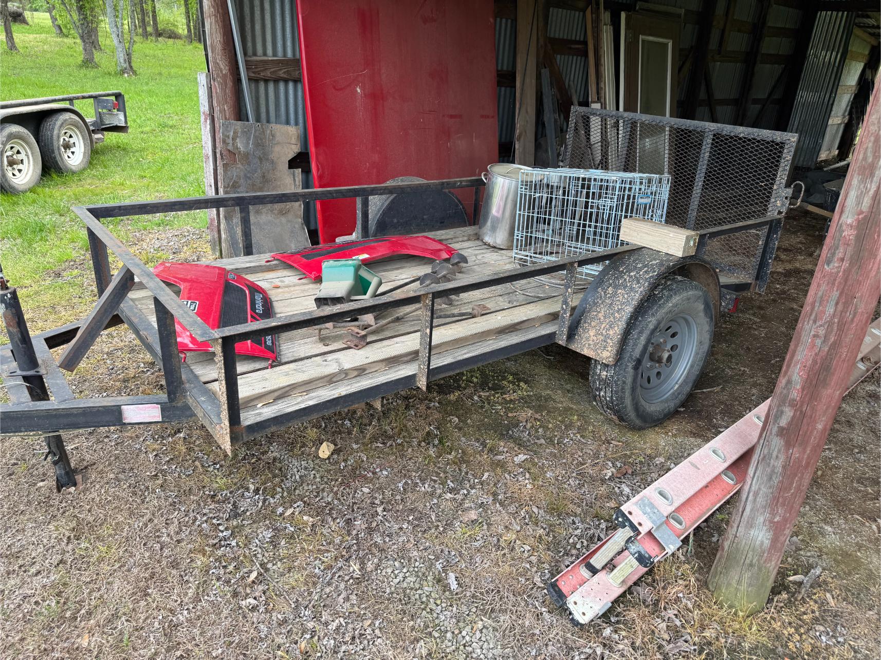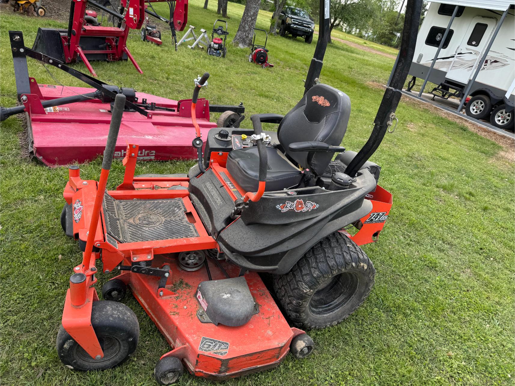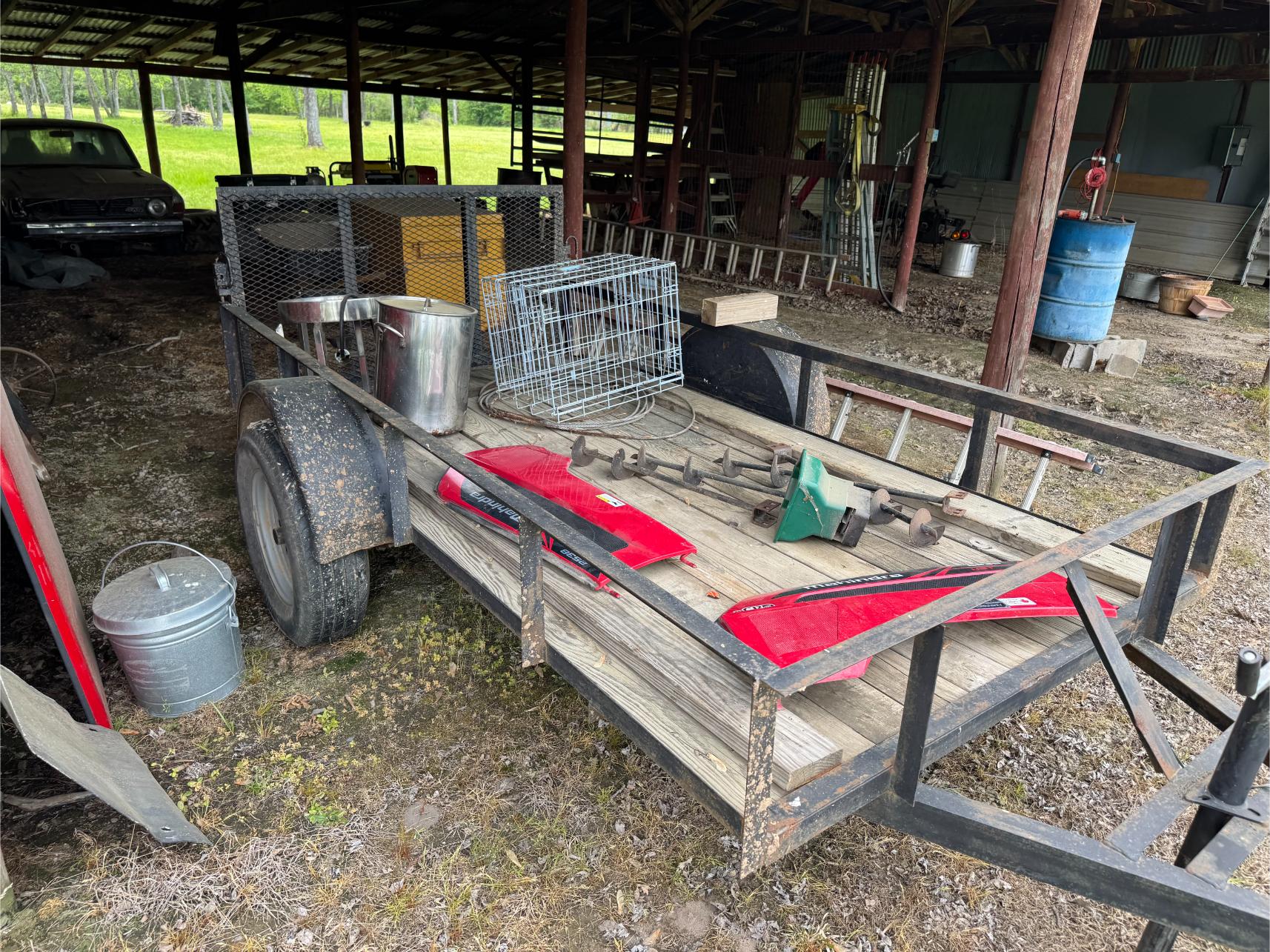 Equipment & Vehicles: 2018 Mahindra 2538 Tractor w/Front-End Loader – Backhoe Attachment – 3 pt 6′ Brush Hog – King Kutter 6′ Rock Rake – 3 pt 6′ Blade – 2001 GMC Sierra SLT Pickup (193,000 miles) – 2018 Polaris Ranger 500 4×4 w/Fully Enclosed Cab (386 hrs) – 2021 C-Force 500 4×4 4-Wheeler (206 miles) – 2019 Bad Boy Maverick 60″ Zero Turn Mower (146 hrs) – Texas Bragg 8’x16′ Dual Axle Trailer w/Ramps – 4’x8′ Tilt Trailer
