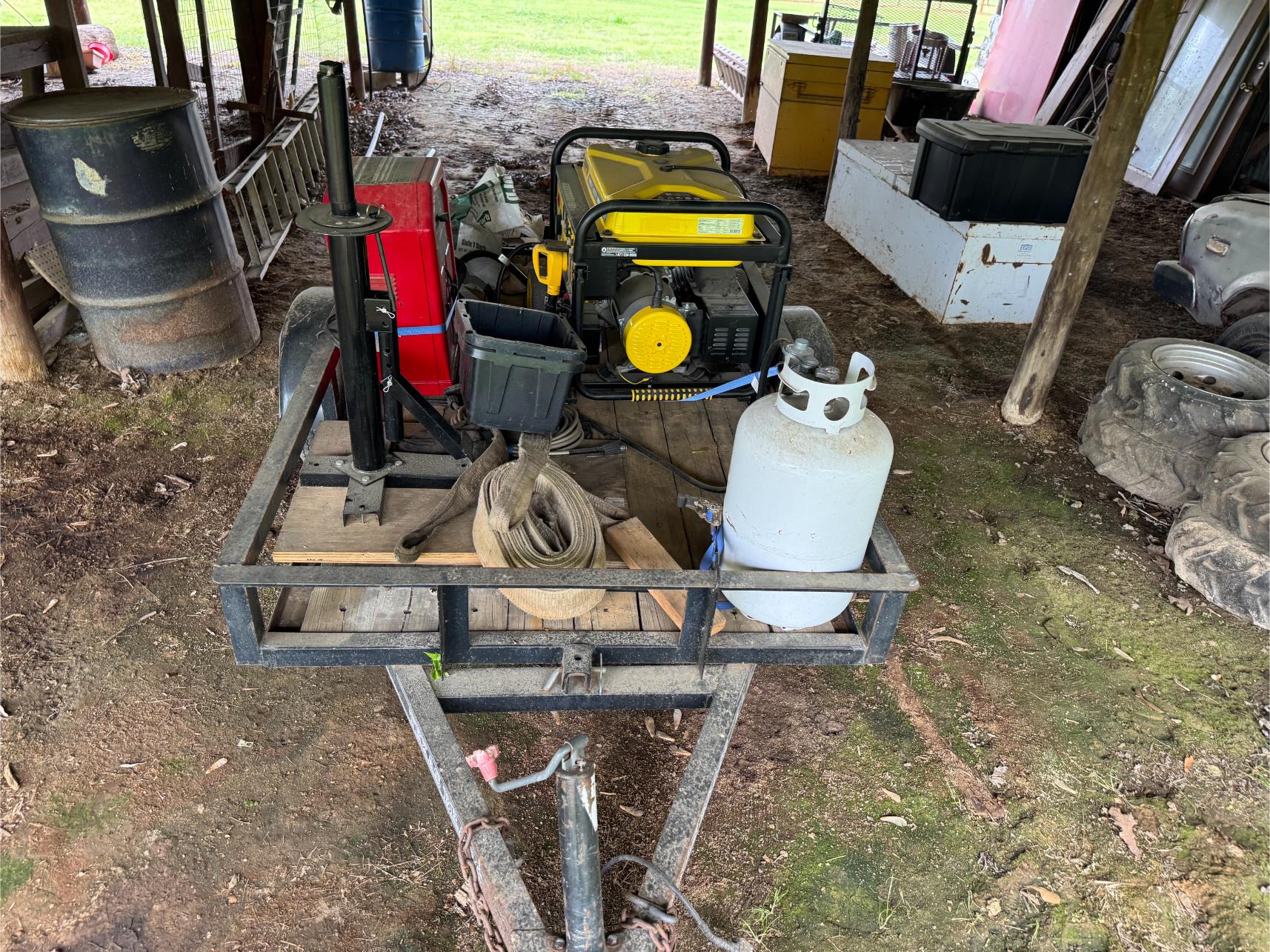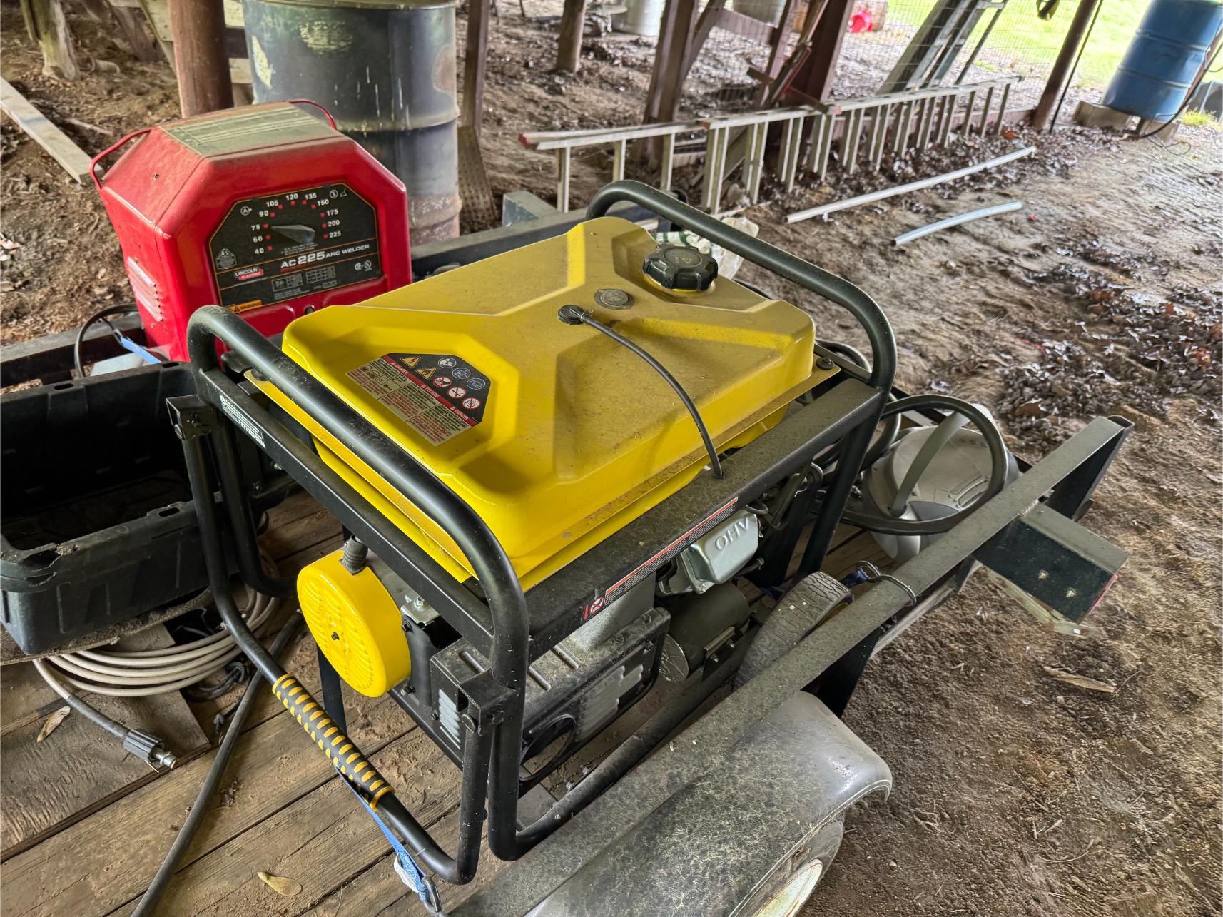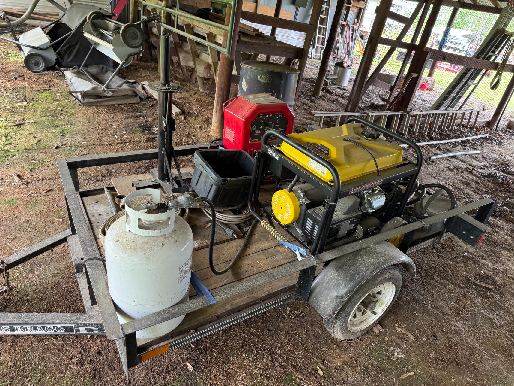 Shop: 10 KW Generator (Propane or Gas) – 2 KW Generator – Lincoln 225 Welder – Craftsman Upright Compressor – Blackmax 2800 PSI Power Washer – Elec Power Washer – Southland Walk Behind Blower – Gas Powered Water Pump – Delta 10″ Table Saw – 10″ Miter Saw – Bosch Jig Saw – Skil Worm Drive Saw – Craftsman Router – Bench Mount Drill Press – Baldor Bench Grinder – Dewalt Grinder – Bench Vise – 48″ Job Box – 36″ Roll Around Toolbox – Motorcycle/4-Wheeler Jack – ATV Ramps – Floor Jack – Jack Stands – Diesel Fuel Drum w/Pump – Stihl Weed Trimmer – Craftsman Yard Vac – Stihl Blower – Fiberglass & Alum Ladders – Shop Fan – Hand Tools – Yard Tools – Bolts, Screws, etc – Grease Guns – Shop Vacs – Welding Helmet