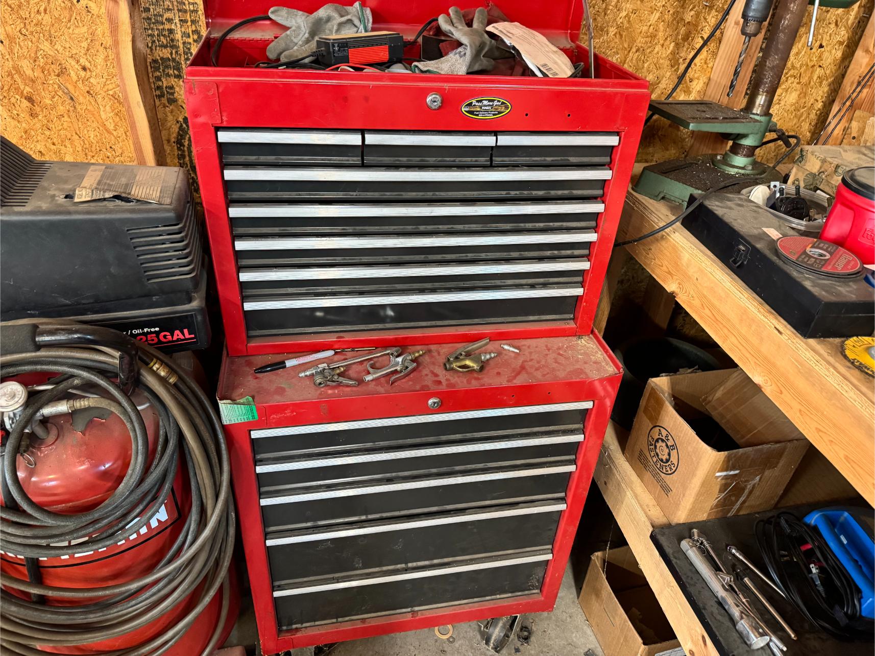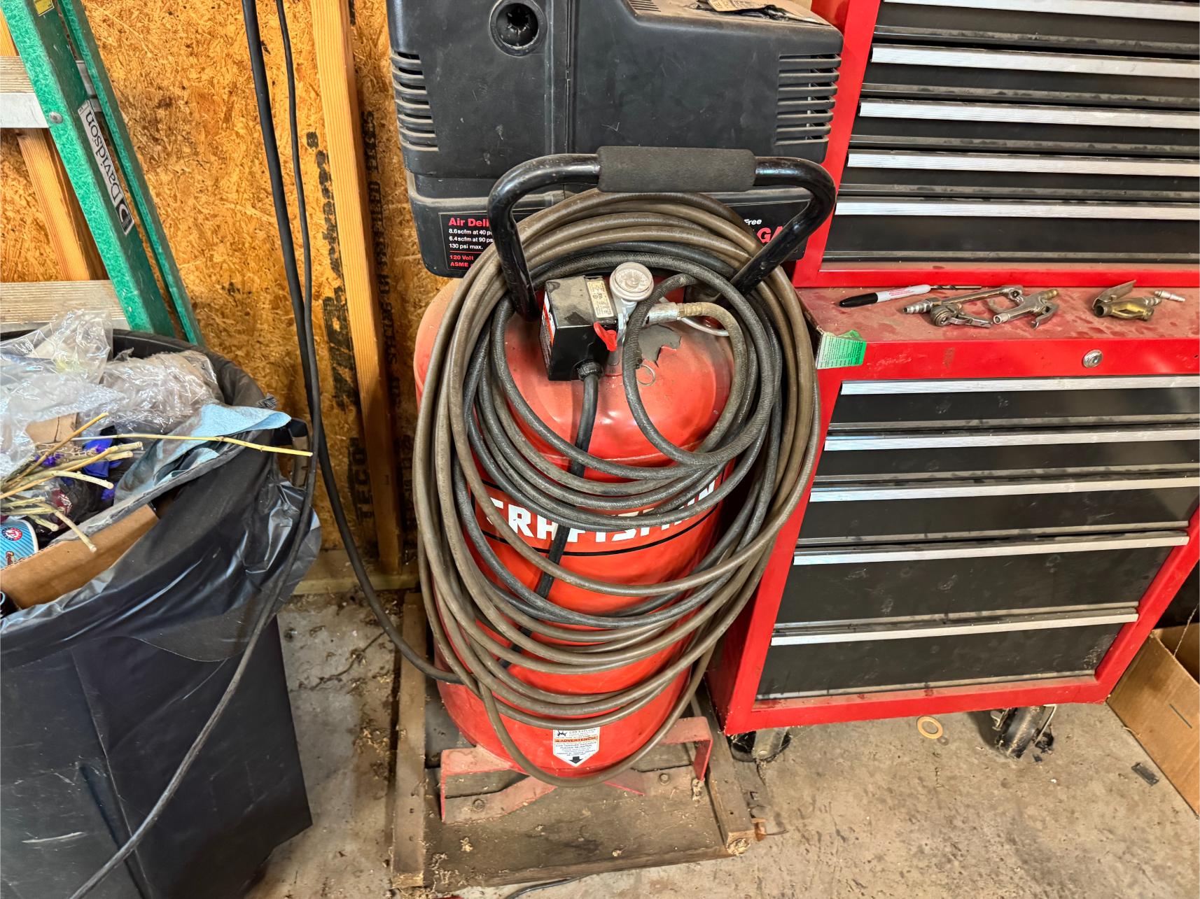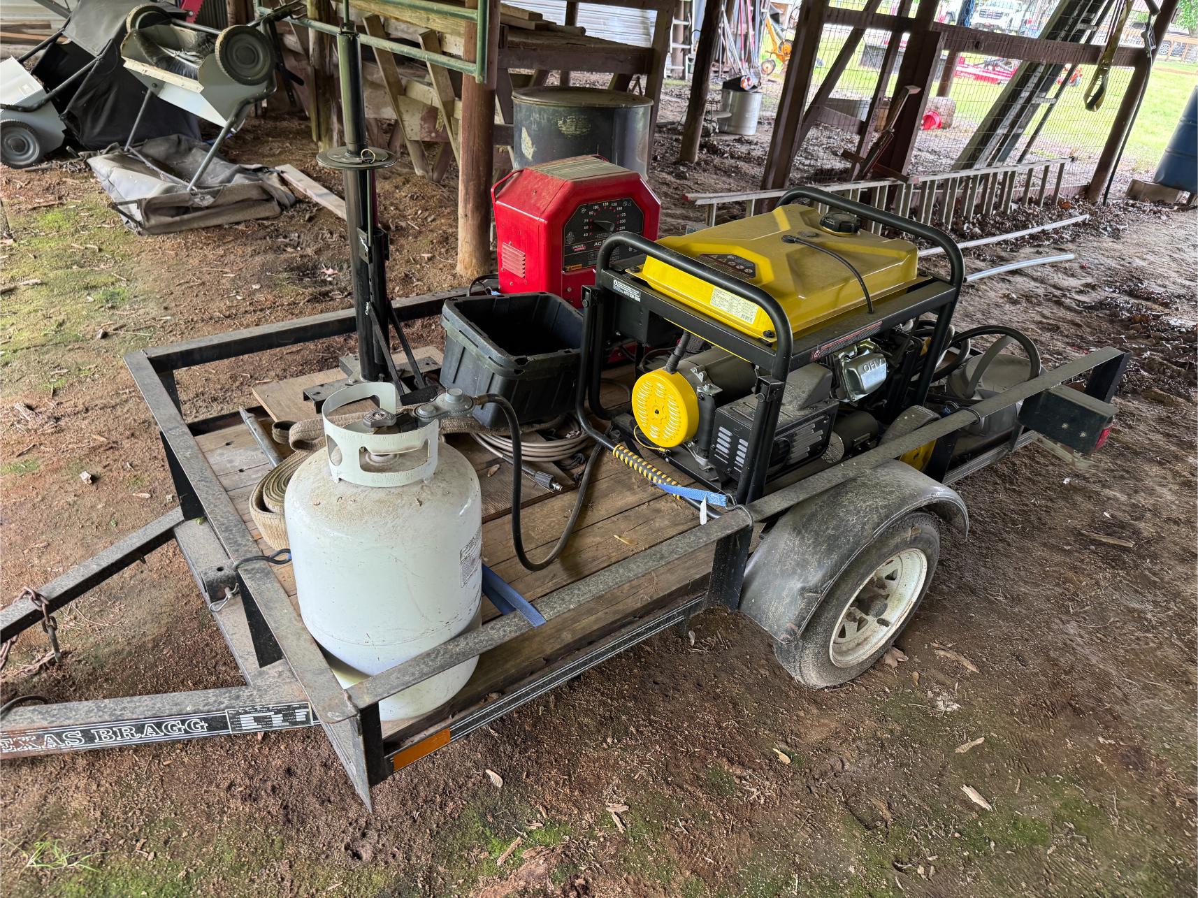 Shop: 10 KW Generator (Propane or Gas) – 2 KW Generator – Lincoln 225 Welder – Craftsman Upright Compressor – Blackmax 2800 PSI Power Washer – Elec Power Washer – Southland Walk Behind Blower – Gas Powered Water Pump – Delta 10″ Table Saw – 10″ Miter Saw – Bosch Jig Saw – Skil Worm Drive Saw – Craftsman Router – Bench Mount Drill Press – Baldor Bench Grinder – Dewalt Grinder – Bench Vise – 48″ Job Box – 36″ Roll Around Toolbox – Motorcycle/4-Wheeler Jack – ATV Ramps – Floor Jack – Jack Stands – Diesel Fuel Drum w/Pump – Stihl Weed Trimmer – Craftsman Yard Vac – Stihl Blower – Fiberglass & Alum Ladders – Shop Fan – Hand Tools – Yard Tools – Bolts, Screws, etc – Grease Guns – Shop Vacs – Welding Helmet