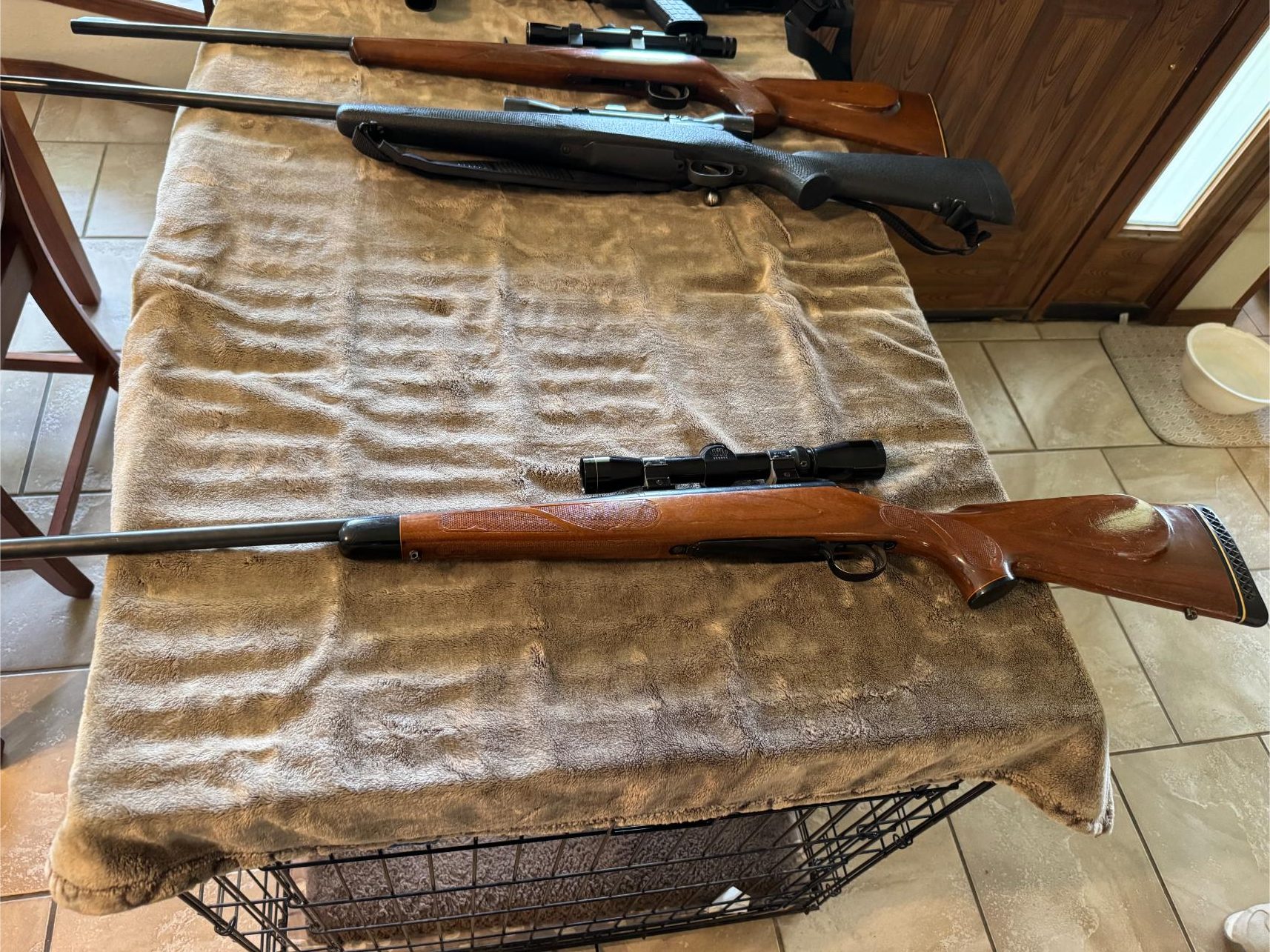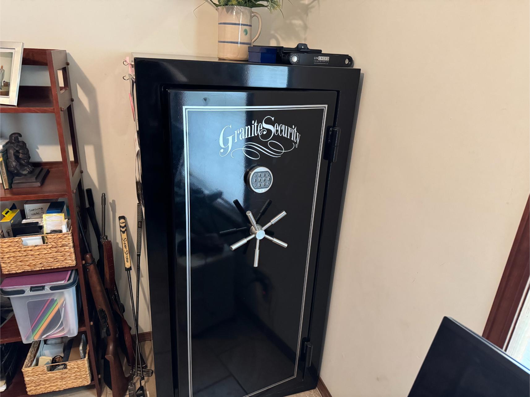 Firearms, etc: Ruger 45 Auto SR 1911 – UZI Eagle 40 cal S&W – Rock Island Armory 22 TCM or 9mm – KelTec PMR 30 22 mag WMR – Heritage Rough Rider 22 Revolver – Remington 700 BDL SS Blue Barrel 7 mm mag Bolt Action – 1917 Infield Action 30-06 on Custom Composite Stock Bolt Action – Savage Anschutz 22 mag Bolt Action w/Charles Haley Scope – KelTec KSG 25 Tactical 12 ga Shotgun – Granite Security Gun Safe – Gun Vise – (2) Antelope Mounts – Bobcat Mount