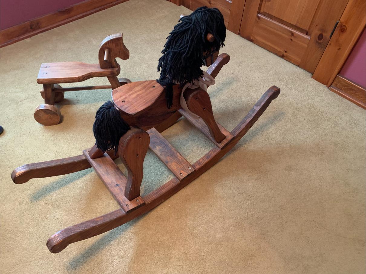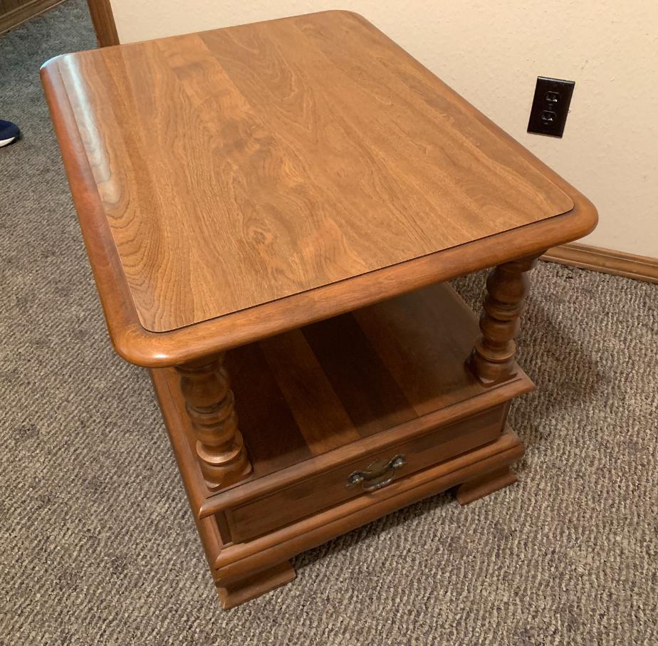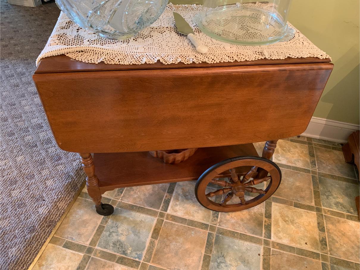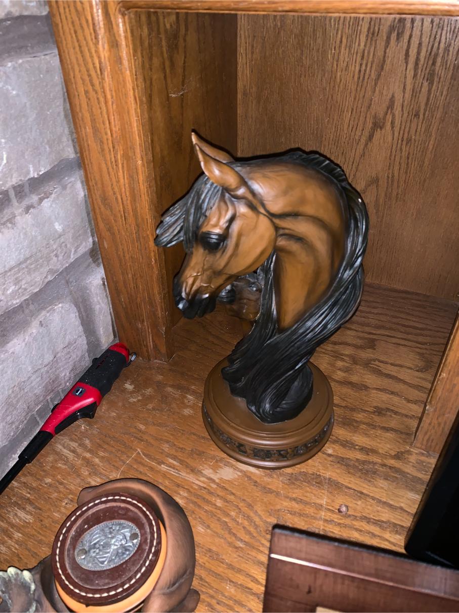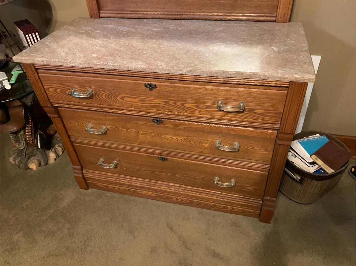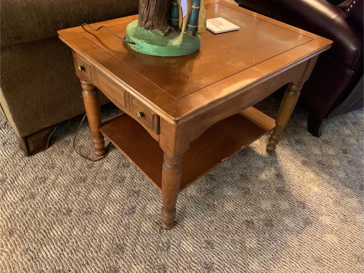 Furniture: Mission Oak Desk – End Tables – Ethan Allen End Tables – Sofa – Loveseat – Drop Leaf Coffee Table – Brass Floor Lamp – Brass Lamps – Bronze Figurines – Hall Tree – Saddle Rack – Saddle Stand – Metal Medical Cabinets – Metal Cabinet – Wooden Cabinet – Rocking Horse – Tea Cart – TV Trays – Quilt Chest – Sofa Bed – Microsuede Sofa and Loveseat – Power Recliner – Boos Butcher Block 35”x35”x16” – Step Stool – Antique Dresser – American Beachwood Marble Top Dresser – Queen Size Iron Bed – Antique Oak Center Table – Antique Recliner – Ethan Allen Queen-Size Bed – Ethan Allen Dresser – Ethan Allen Night Stands – Ethan Allen Hutch