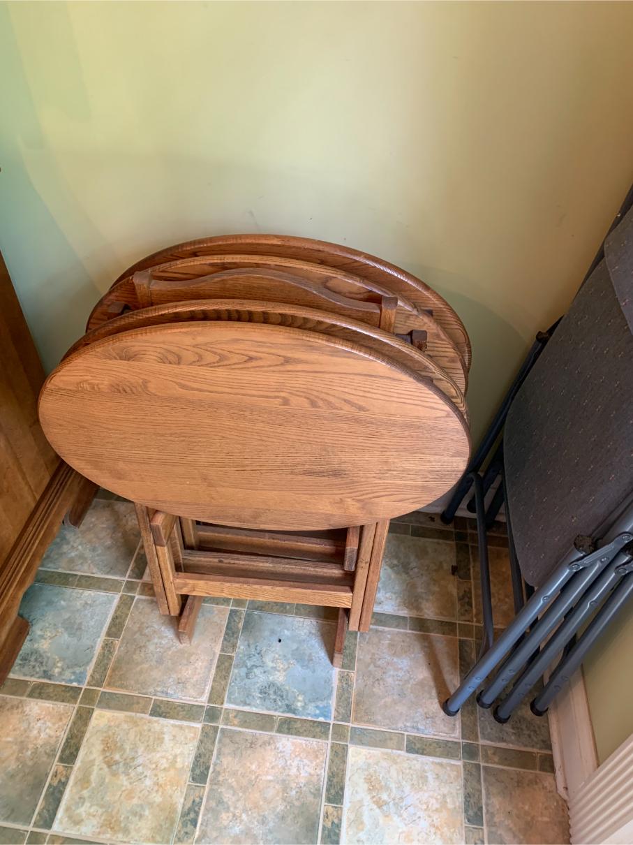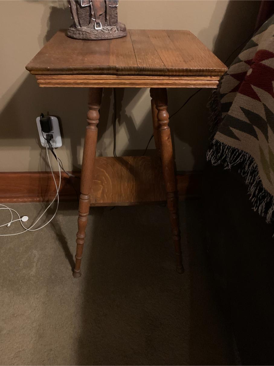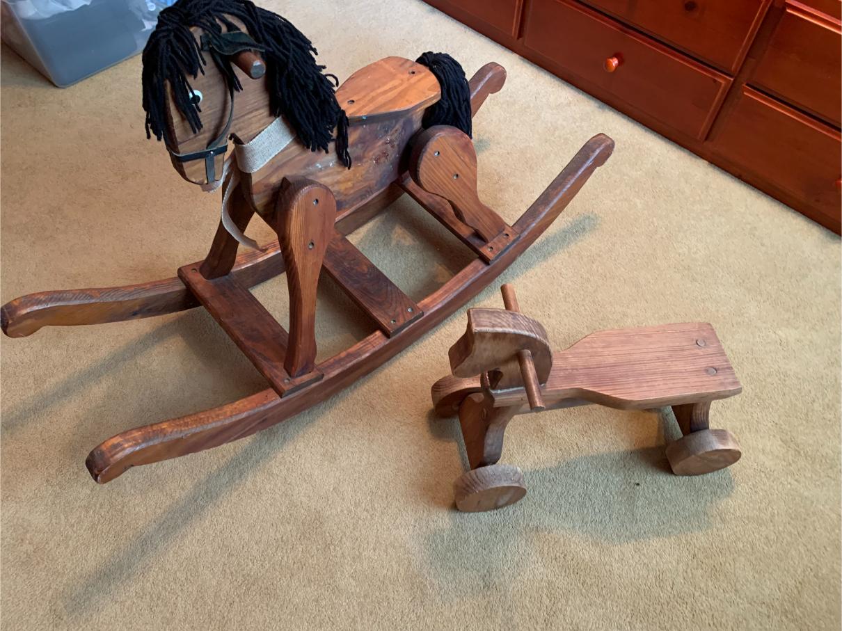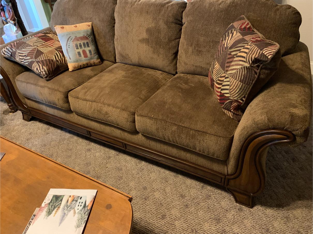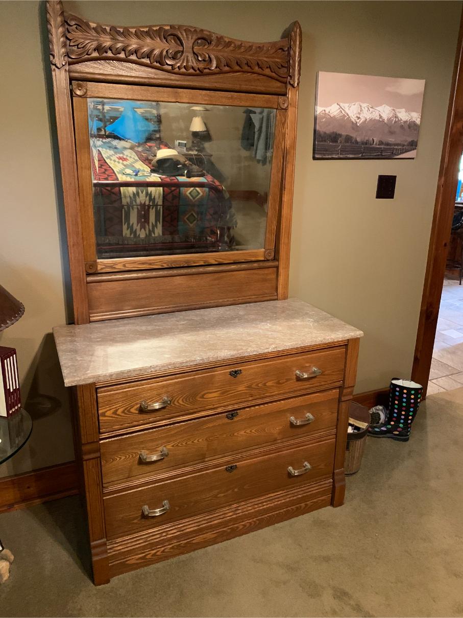 Furniture: Mission Oak Desk – End Tables – Ethan Allen End Tables – Sofa – Loveseat – Drop Leaf Coffee Table – Brass Floor Lamp – Brass Lamps – Bronze Figurines – Hall Tree – Saddle Rack – Saddle Stand – Metal Medical Cabinets – Metal Cabinet – Wooden Cabinet – Rocking Horse – Tea Cart – TV Trays – Quilt Chest – Sofa Bed – Microsuede Sofa and Loveseat – Power Recliner – Boos Butcher Block 35”x35”x16” – Step Stool – Antique Dresser – American Beachwood Marble Top Dresser – Queen Size Iron Bed – Antique Oak Center Table – Antique Recliner – Ethan Allen Queen-Size Bed – Ethan Allen Dresser – Ethan Allen Night Stands – Ethan Allen Hutch