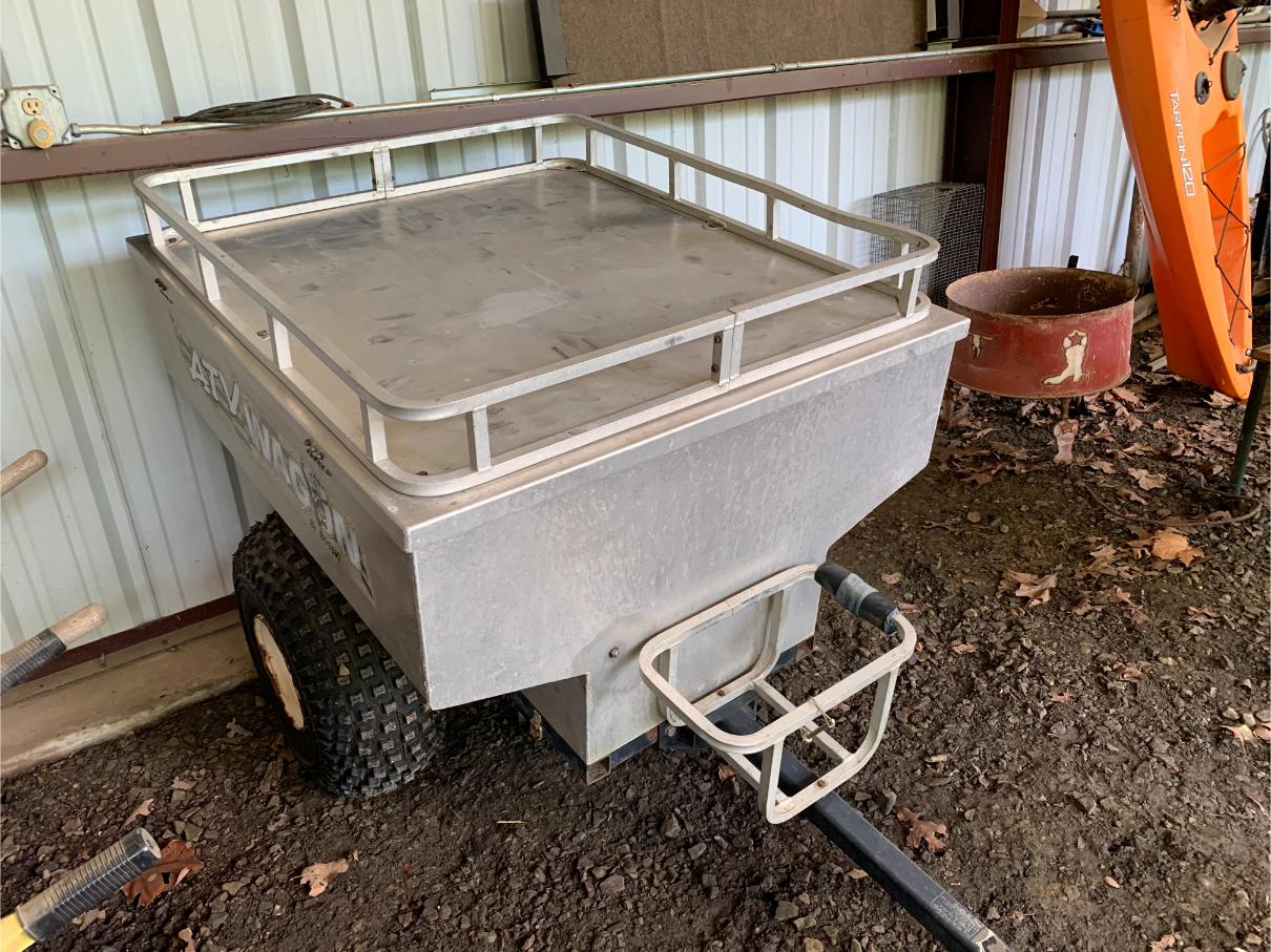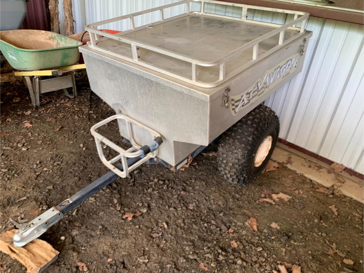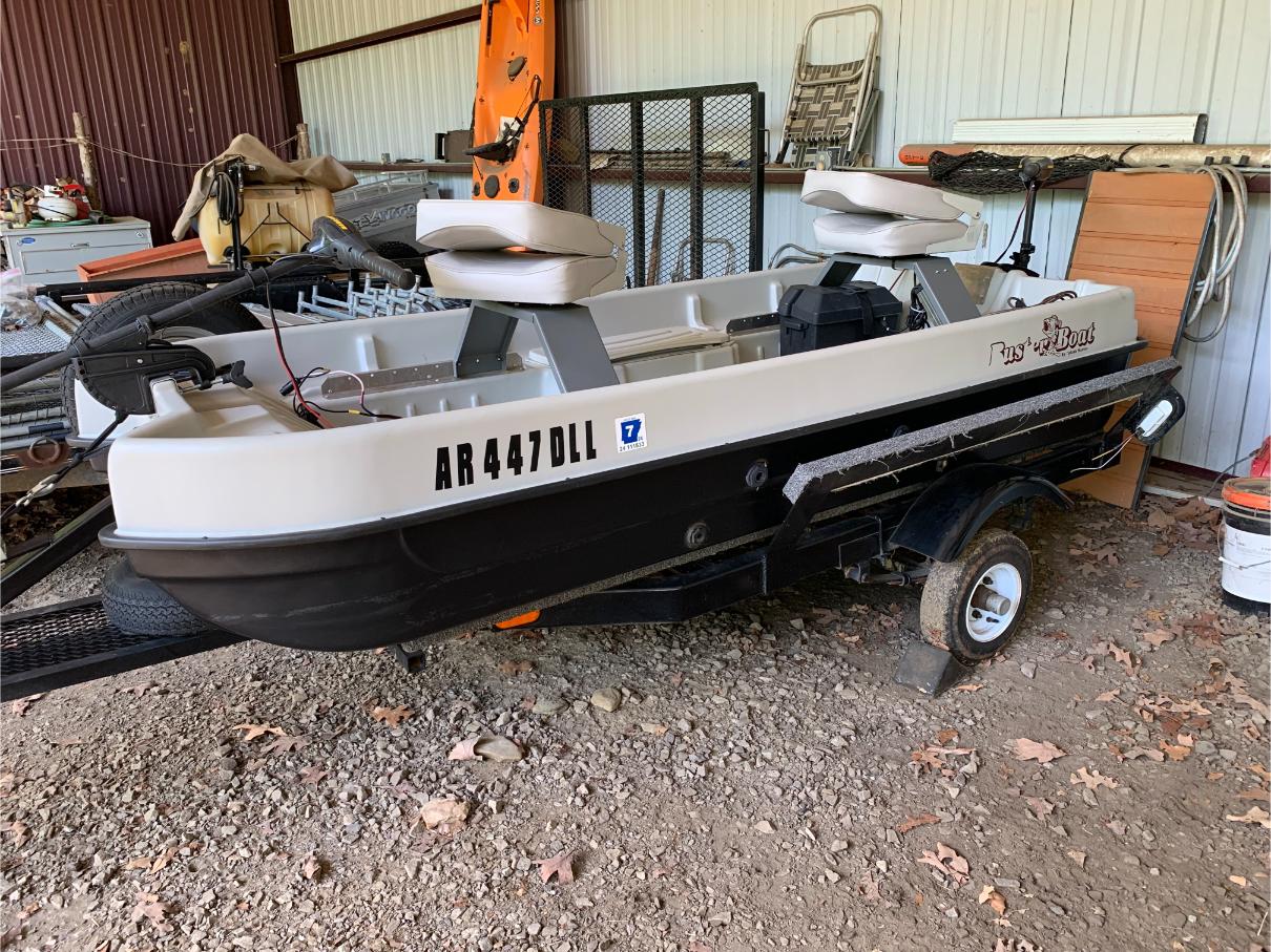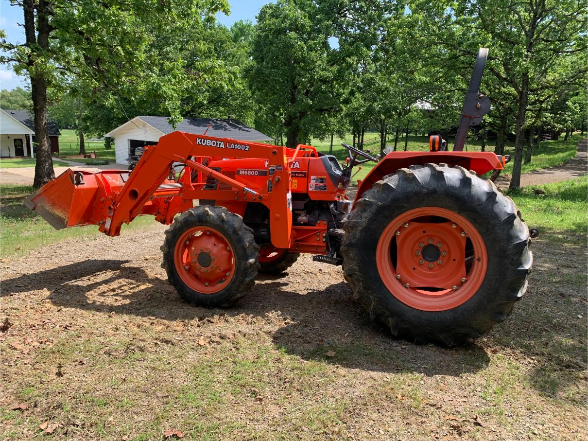 Equipment: Kubota M6800 w/ LA1002 Front-End Loader 4WD Hydraulic Shuttle Shift (Hours Read 838) – 2014 Tiger 14ft. Trailer (Tandem Axle, Drop Gate) – 8ft. All Metal Trailer – Buster Boat (Live Well, Trolling Motors, Onboard Battery Charger) w/ Trailer – 3pt. Sprayer (New Pump) – Bosski ATV Wagon – Modern Ag Products 7ft. Brush Hog – 3pt. 7ft. Land Pride Angle Blade – 3pt. 2 Bottom Plow – 3pt. Disc Harrow