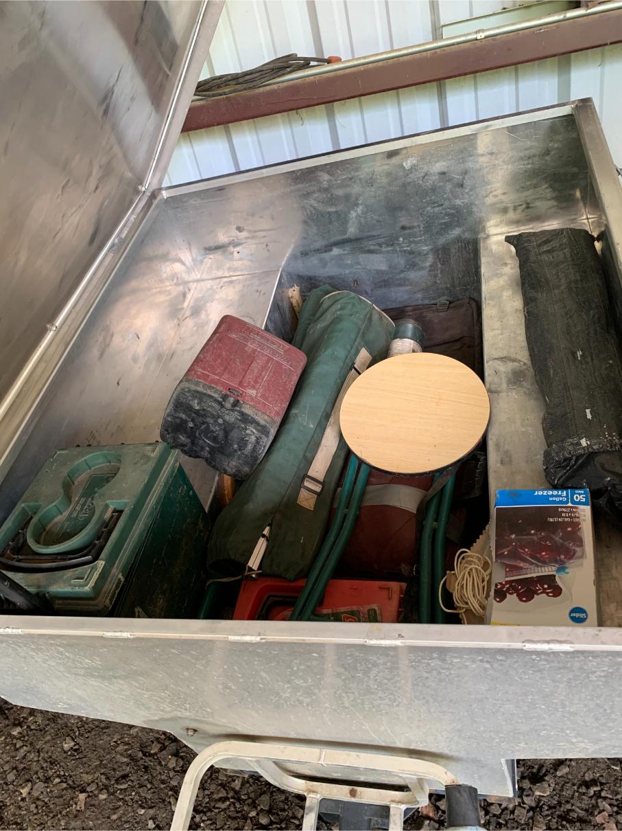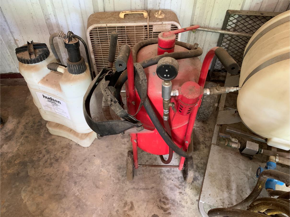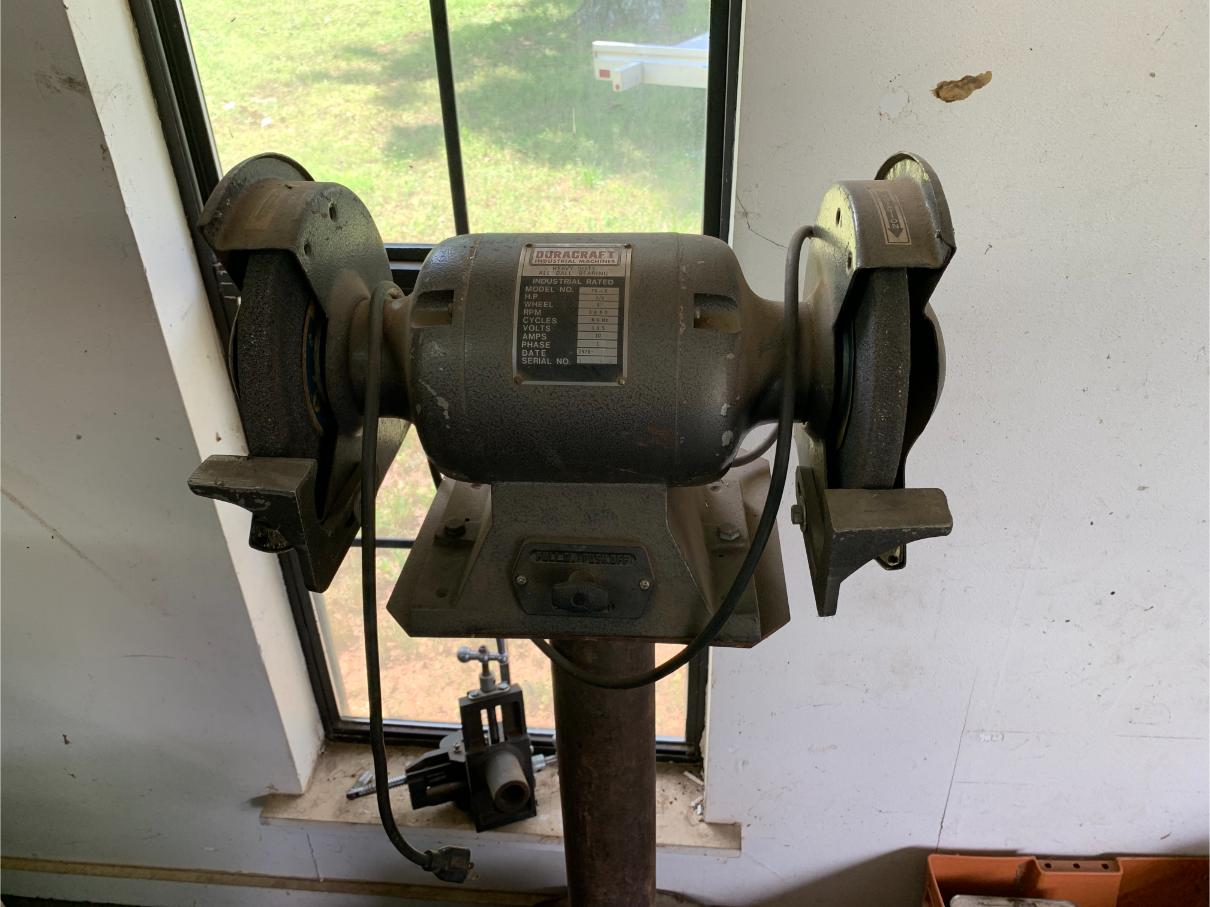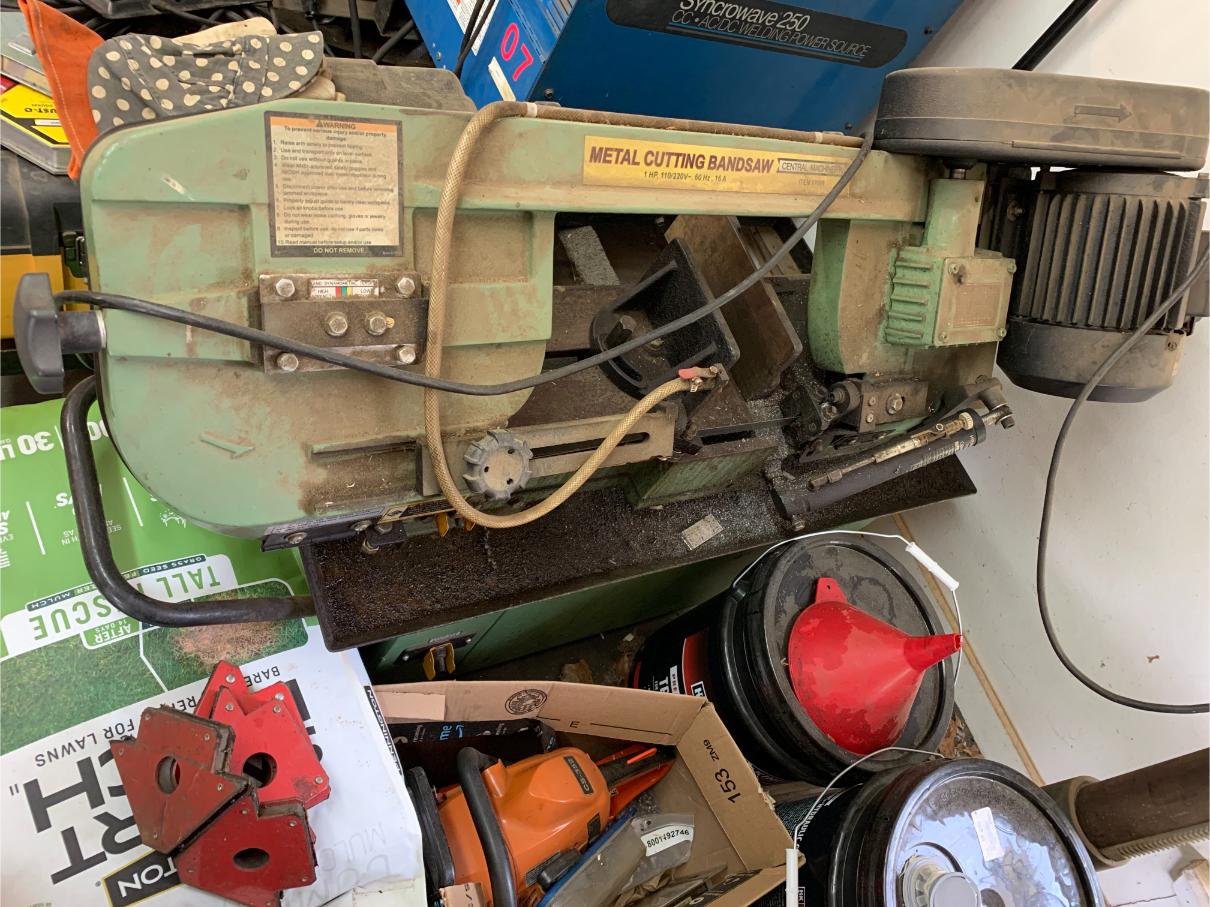 Tools/Shop Items: Simpson Pressure Washer (Honda Engine) – Mason Micromesh Dog Kennels – Heritage Dog Box – Dog Feeder – Fertilizer Spreader – Delta Table Saw – Puma Upright 80 Gallon Air Compressor (5 HP, 220 Volt) – Wheelbarrows – Pipe Stands – Werner Fiberglass Ladders – Extension Ladders – Ramps – Diamond Plate – Gas Cans – Yard Tools – Plumbing Supplies – Electrical Supplies – Bungee Cords – Dollys – Water Hoses – Bottle Jacks – Hand Tools – Power Tools – Propane Heaters – Welding Clamps – C-Clamps – Vise Grips – Welding Rods – Chainsaw Blade Sharpener – Diamond Sharpening Blades – Makita Grinders – Makita Cut-Off Saw – Rotozip – Dremel Accessories – Dust Collector – Craftsman Disc Sander – Porter Cable Sander – Craftsman Router – Black and Decker Hammer Drill – Black and Decker Corded Tin Snip – Craftsman Orbital Sander – DeWalt Circular Saw – Craftsman Jigsaw – 1in. Belt Sander – Disc Sander – Air Hose Reel – Air Hoses – Bolts – Tractor Pins – Electric Heaters – Jack Stands – Propane Bottles – Hitches – U Bolts – Trailer Balls – Floor Jack – Hobart Stickmate LX AC/DC Welder – Echo Chainsaws – Aluminum Ramps – Craftsman Toolbox – Handsaws – Loppers – Lakewood Shop Fan – Sand Paper – Halogen Shop Lights – Paint Spray Guns – Central Machinery Metal Cutting Bandsaw – Shop Vacs – Duracraft Grinder on Stand – Creepers – Jumper Cables – Battery Chargers – Work Tables – Bolt Bins – Junction Boxes – Gear Lube – Grease – Electric Fence Supplies – Wire – Pipe Fittings – ATV Tires