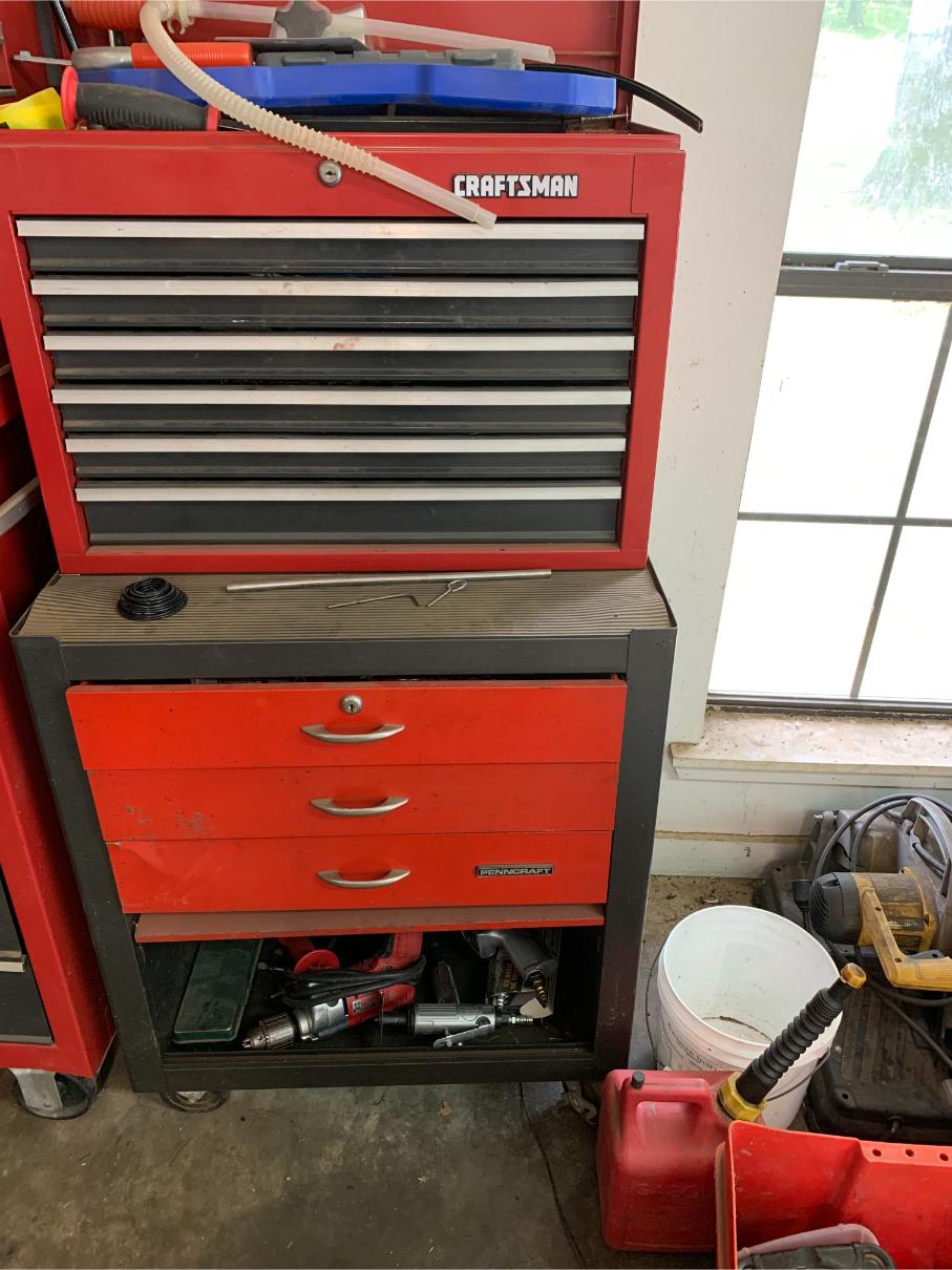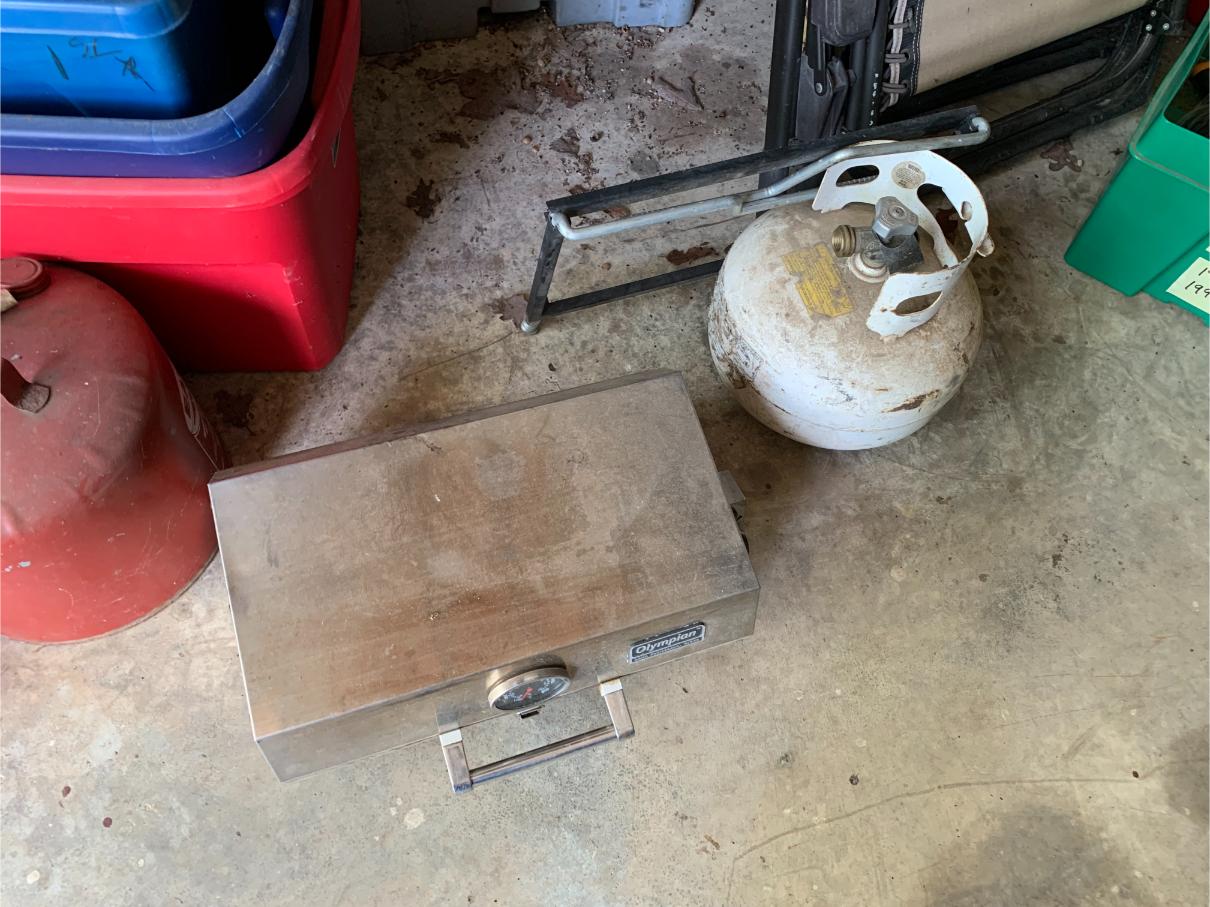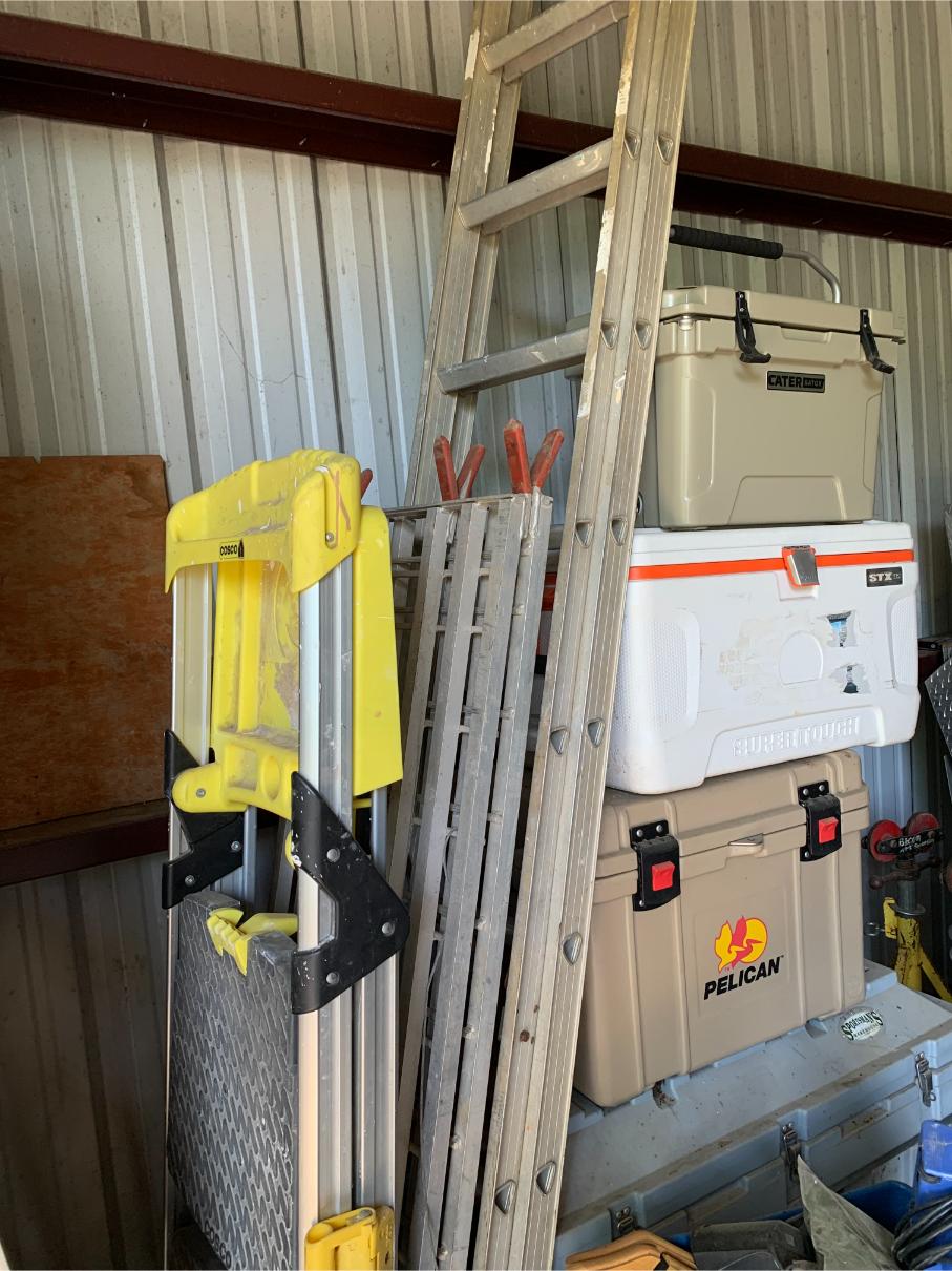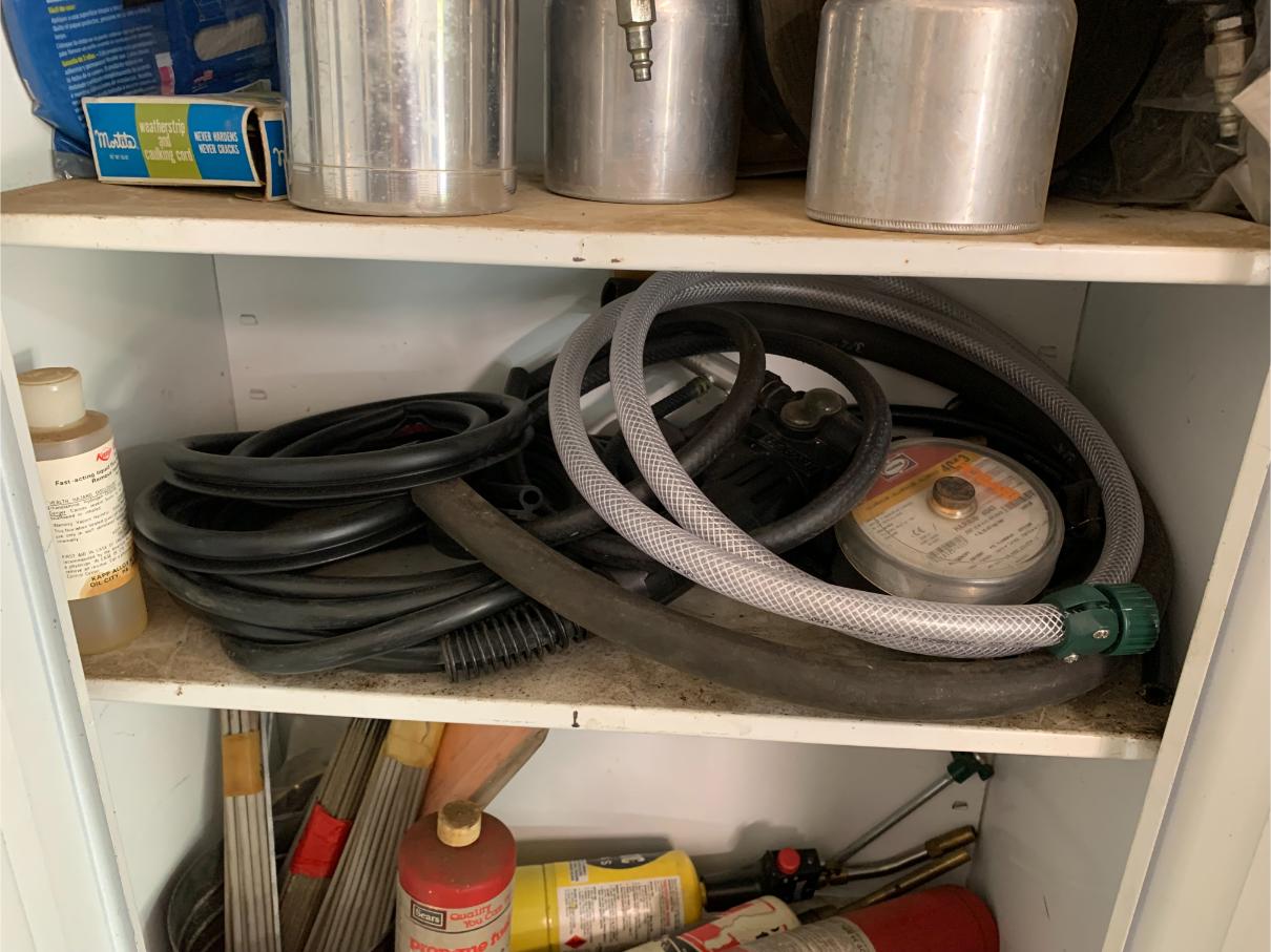 Tools/Shop Items: Simpson Pressure Washer (Honda Engine) – Mason Micromesh Dog Kennels – Heritage Dog Box – Dog Feeder – Fertilizer Spreader – Delta Table Saw – Puma Upright 80 Gallon Air Compressor (5 HP, 220 Volt) – Wheelbarrows – Pipe Stands – Werner Fiberglass Ladders – Extension Ladders – Ramps – Diamond Plate – Gas Cans – Yard Tools – Plumbing Supplies – Electrical Supplies – Bungee Cords – Dollys – Water Hoses – Bottle Jacks – Hand Tools – Power Tools – Propane Heaters – Welding Clamps – C-Clamps – Vise Grips – Welding Rods – Chainsaw Blade Sharpener – Diamond Sharpening Blades – Makita Grinders – Makita Cut-Off Saw – Rotozip – Dremel Accessories – Dust Collector – Craftsman Disc Sander – Porter Cable Sander – Craftsman Router – Black and Decker Hammer Drill – Black and Decker Corded Tin Snip – Craftsman Orbital Sander – DeWalt Circular Saw – Craftsman Jigsaw – 1in. Belt Sander – Disc Sander – Air Hose Reel – Air Hoses – Bolts – Tractor Pins – Electric Heaters – Jack Stands – Propane Bottles – Hitches – U Bolts – Trailer Balls – Floor Jack – Hobart Stickmate LX AC/DC Welder – Echo Chainsaws – Aluminum Ramps – Craftsman Toolbox – Handsaws – Loppers – Lakewood Shop Fan – Sand Paper – Halogen Shop Lights – Paint Spray Guns – Central Machinery Metal Cutting Bandsaw – Shop Vacs – Duracraft Grinder on Stand – Creepers – Jumper Cables – Battery Chargers – Work Tables – Bolt Bins – Junction Boxes – Gear Lube – Grease – Electric Fence Supplies – Wire – Pipe Fittings – ATV Tires