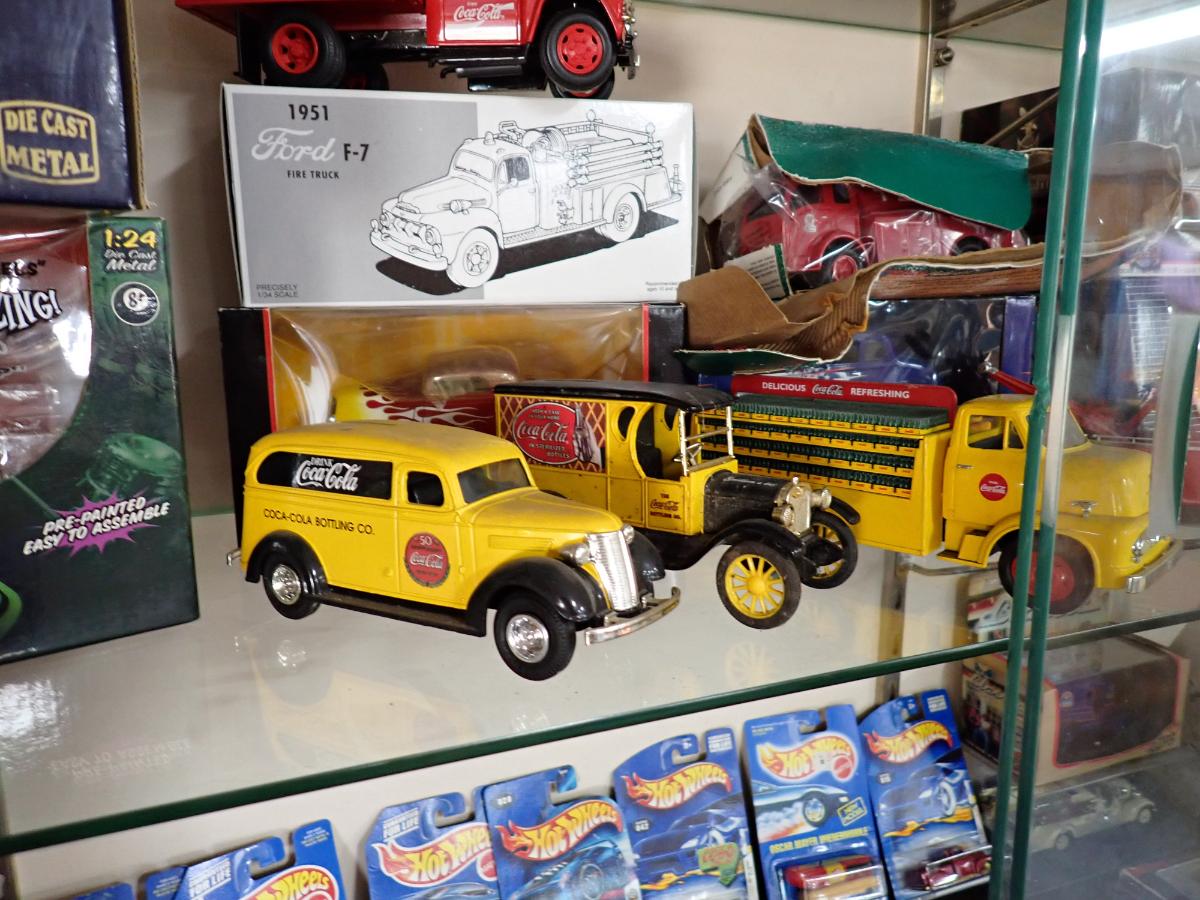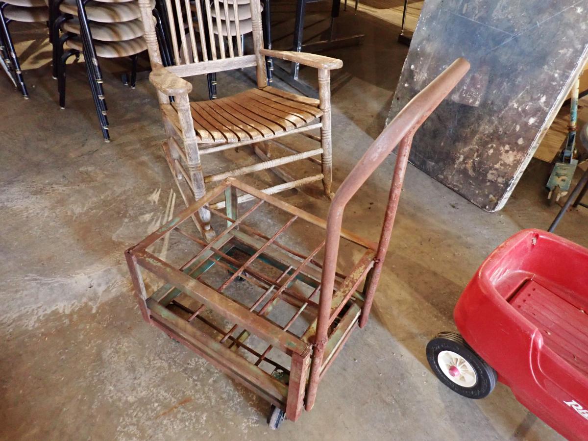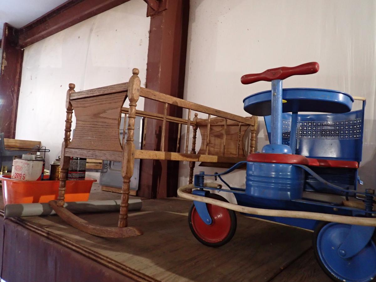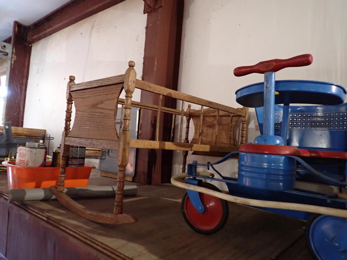 Antiques & Collectibles:Â Pedal Fire Truck – Ford Pedal Tractor – 1955 Chev Pedal Car – Cast Iron Carousel Horse – 1970’s Coke Box – Pepsi Reach-in Cooler – Pie Safe – Oak Rockers – Oak Chairs – Oak Highchair – School Desks & Chairs – Camel Back Trunk Baby Carriage/Walker – Cast Iron Dutch Oven – Cast Iron Skillets & Cornbread – Iron Wheels – Bottle Capper – Alum Awnings – 1920’s Thomas Floor Model Radio – Records – Metal Hustler Sign – Political Sign – Metal Parking Signs – Misc Signs – Violins – Cookie Jars – Churn – Sinclair Pump – Elvis Trading Cards – NASCAR Memorabilia – Hot Wheels – Die Cast Cars – Coke Truck – Tonka Trucks – Metal Fire Truck – National Geographic Complete Sets – Display Cabinets – Draw Knife – Checker Board – Wood Bucket – Horse Collar Mirror – 2-Man Cross-Cut Saws