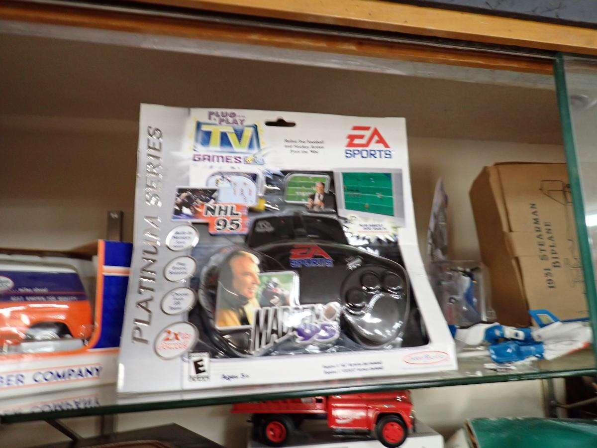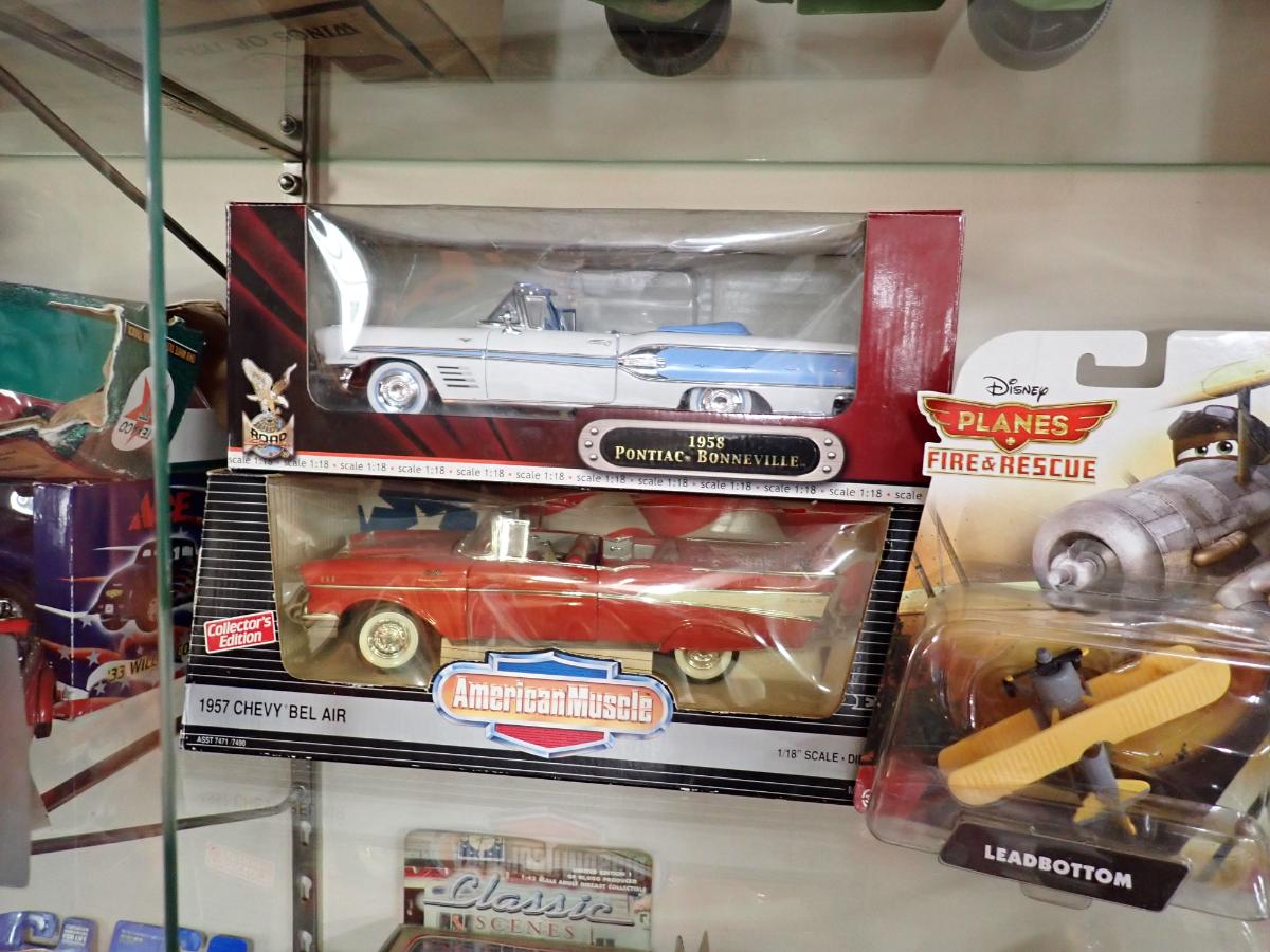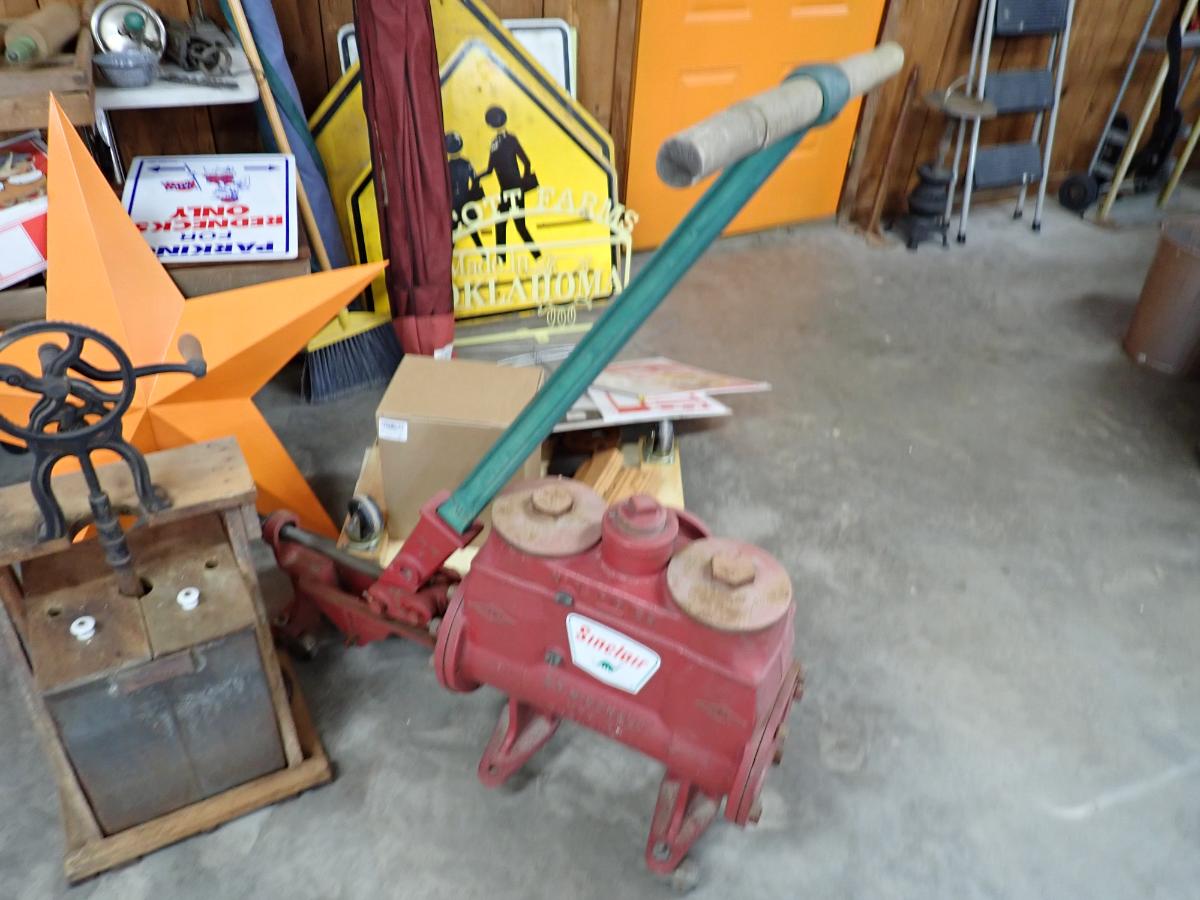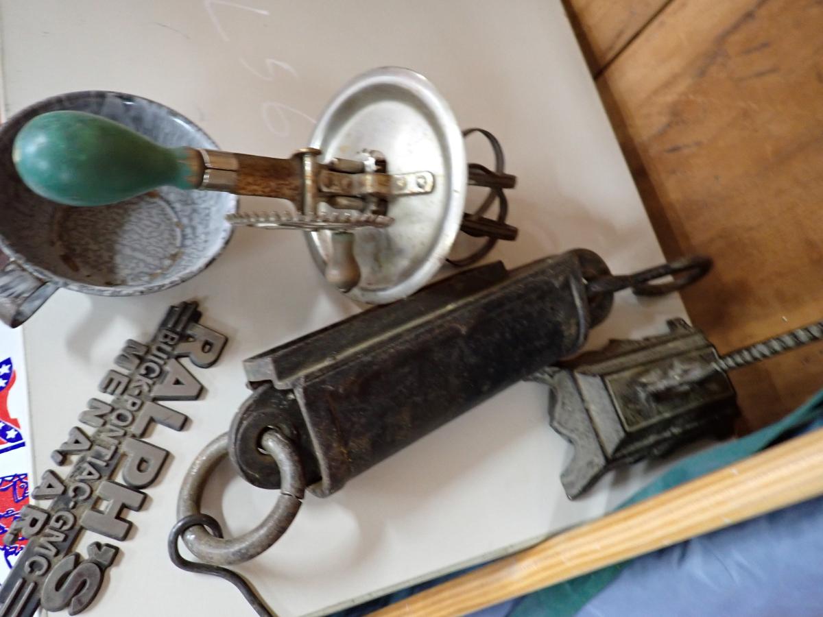 Antiques & Collectibles:Â Pedal Fire Truck – Ford Pedal Tractor – 1955 Chev Pedal Car – Cast Iron Carousel Horse – 1970’s Coke Box – Pepsi Reach-in Cooler – Pie Safe – Oak Rockers – Oak Chairs – Oak Highchair – School Desks & Chairs – Camel Back Trunk Baby Carriage/Walker – Cast Iron Dutch Oven – Cast Iron Skillets & Cornbread – Iron Wheels – Bottle Capper – Alum Awnings – 1920’s Thomas Floor Model Radio – Records – Metal Hustler Sign – Political Sign – Metal Parking Signs – Misc Signs – Violins – Cookie Jars – Churn – Sinclair Pump – Elvis Trading Cards – NASCAR Memorabilia – Hot Wheels – Die Cast Cars – Coke Truck – Tonka Trucks – Metal Fire Truck – National Geographic Complete Sets – Display Cabinets – Draw Knife – Checker Board – Wood Bucket – Horse Collar Mirror – 2-Man Cross-Cut Saws