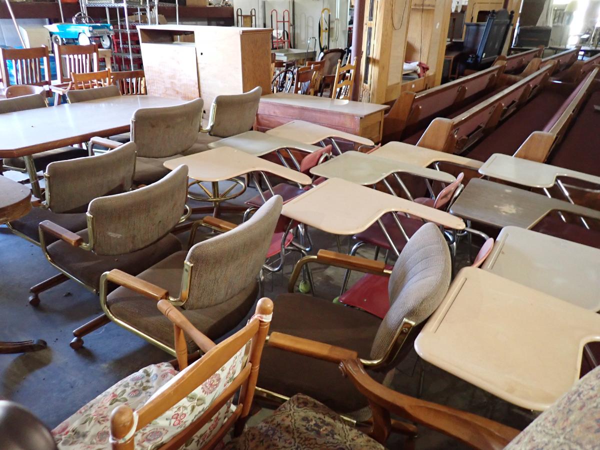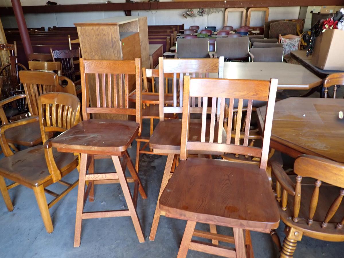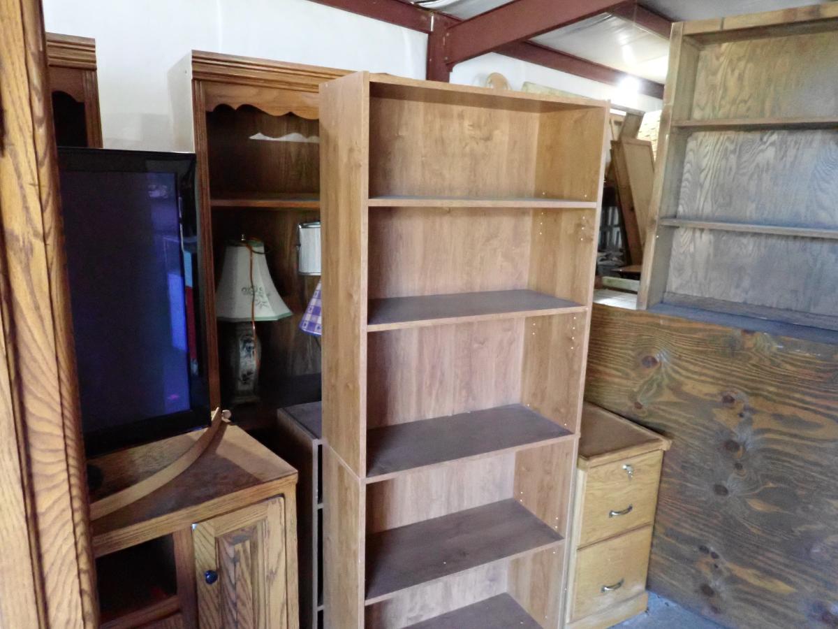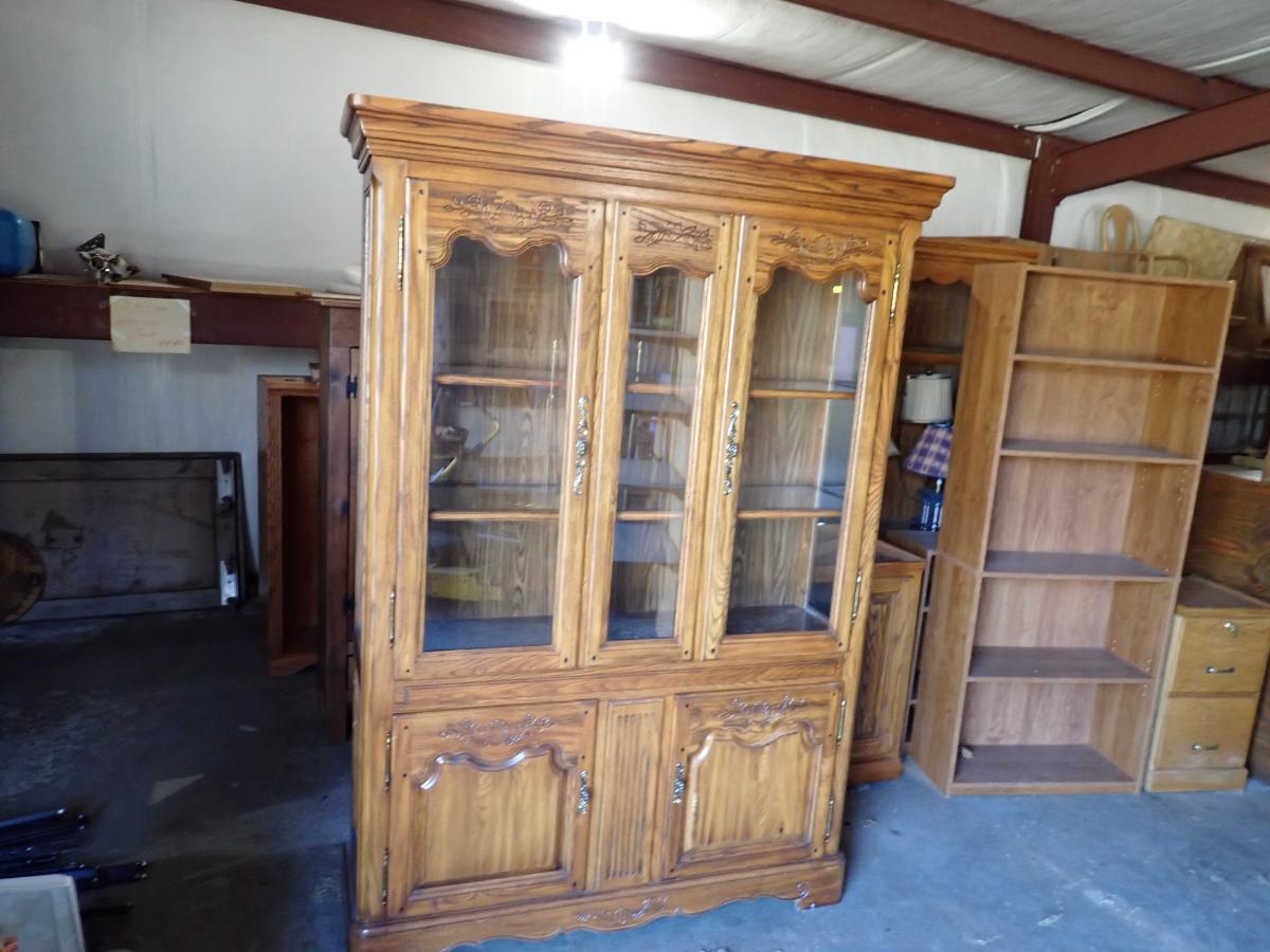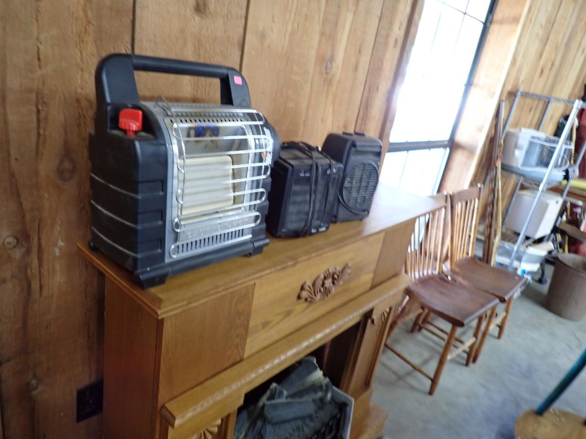 Household:Â Oak Dining Tables & Chairs – Oak China Hutch – Occasional Tables & Chairs – Bar Stools (Oak & Iron) – Oak Desk – Oak Shelves – Trundle Bed – Dresser – (2) Side-by-Side Refrigerators – Upright Refrigerator – GE, Whirlpool & Amana Washers – Mini Refrigerator – Heaters – Alum Pots – Canning Jars – Metal File Cabinets – Patio Table & Chairs – Blackstone Griddle