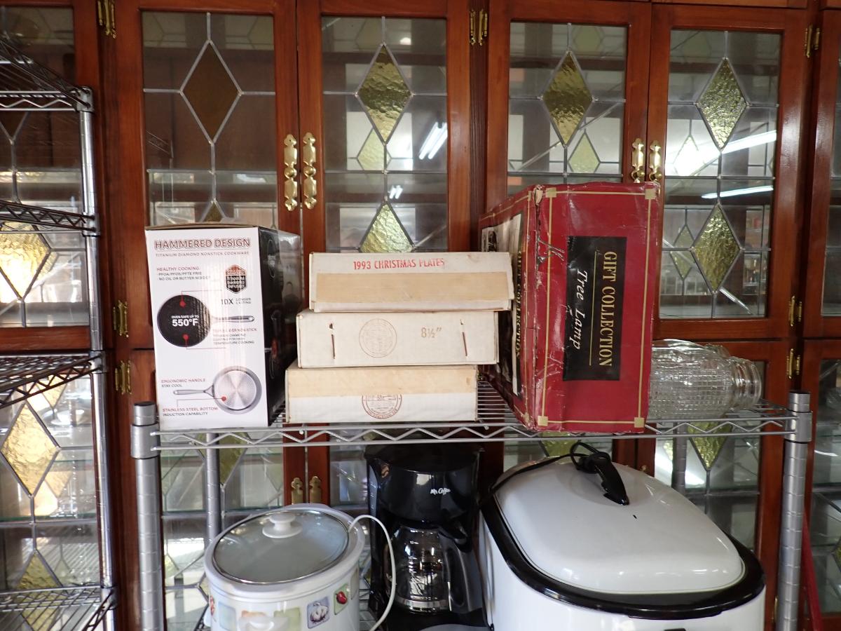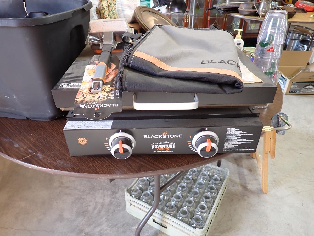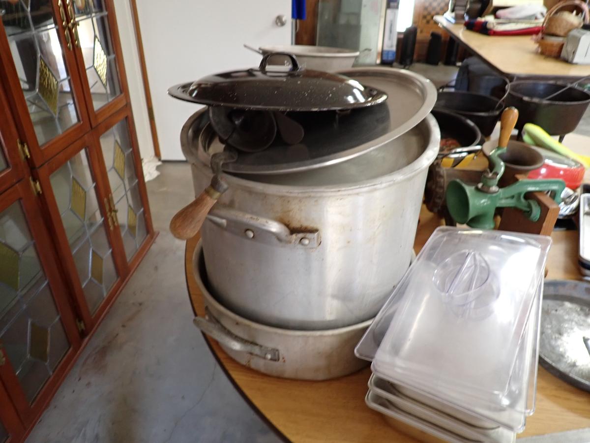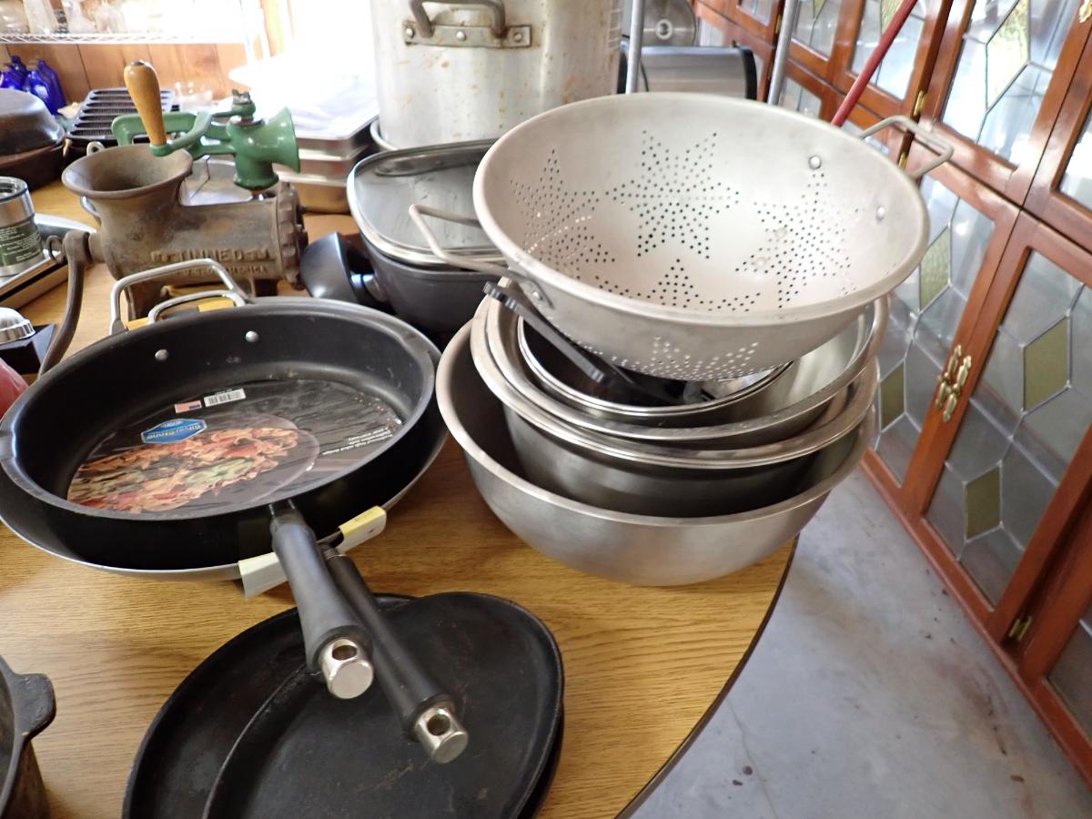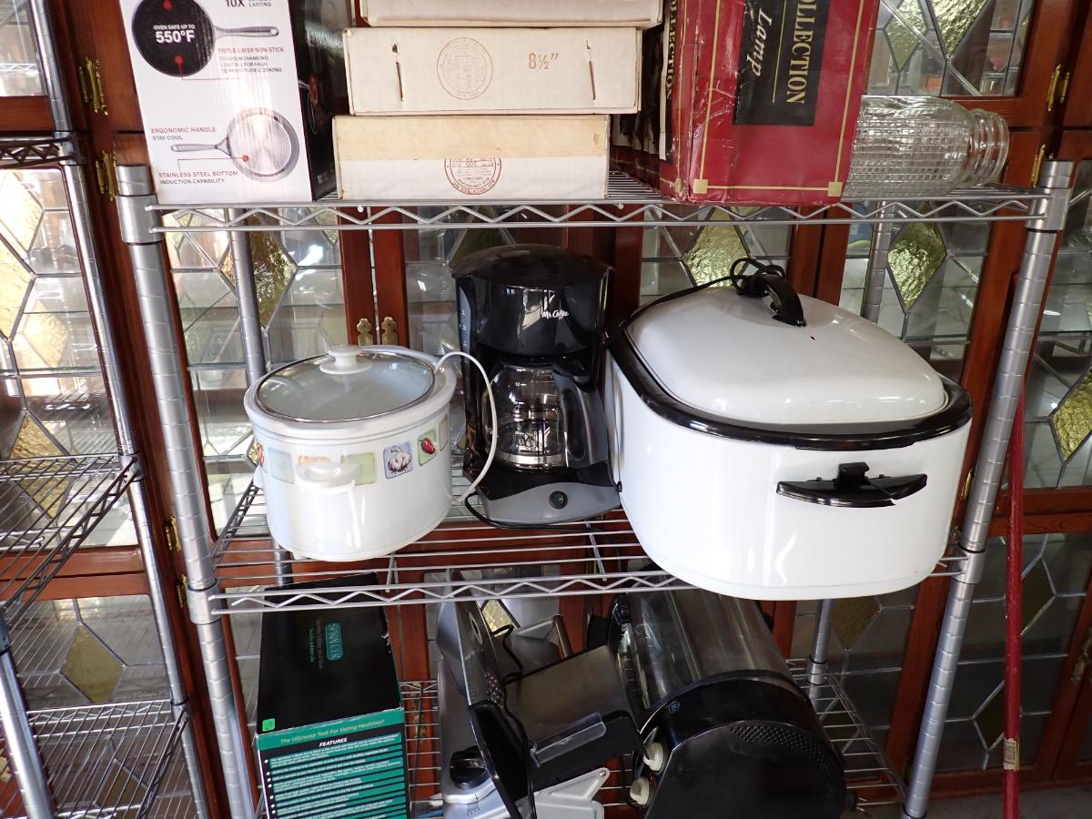 Household:Â Oak Dining Tables & Chairs – Oak China Hutch – Occasional Tables & Chairs – Bar Stools (Oak & Iron) – Oak Desk – Oak Shelves – Trundle Bed – Dresser – (2) Side-by-Side Refrigerators – Upright Refrigerator – GE, Whirlpool & Amana Washers – Mini Refrigerator – Heaters – Alum Pots – Canning Jars – Metal File Cabinets – Patio Table & Chairs – Blackstone Griddle