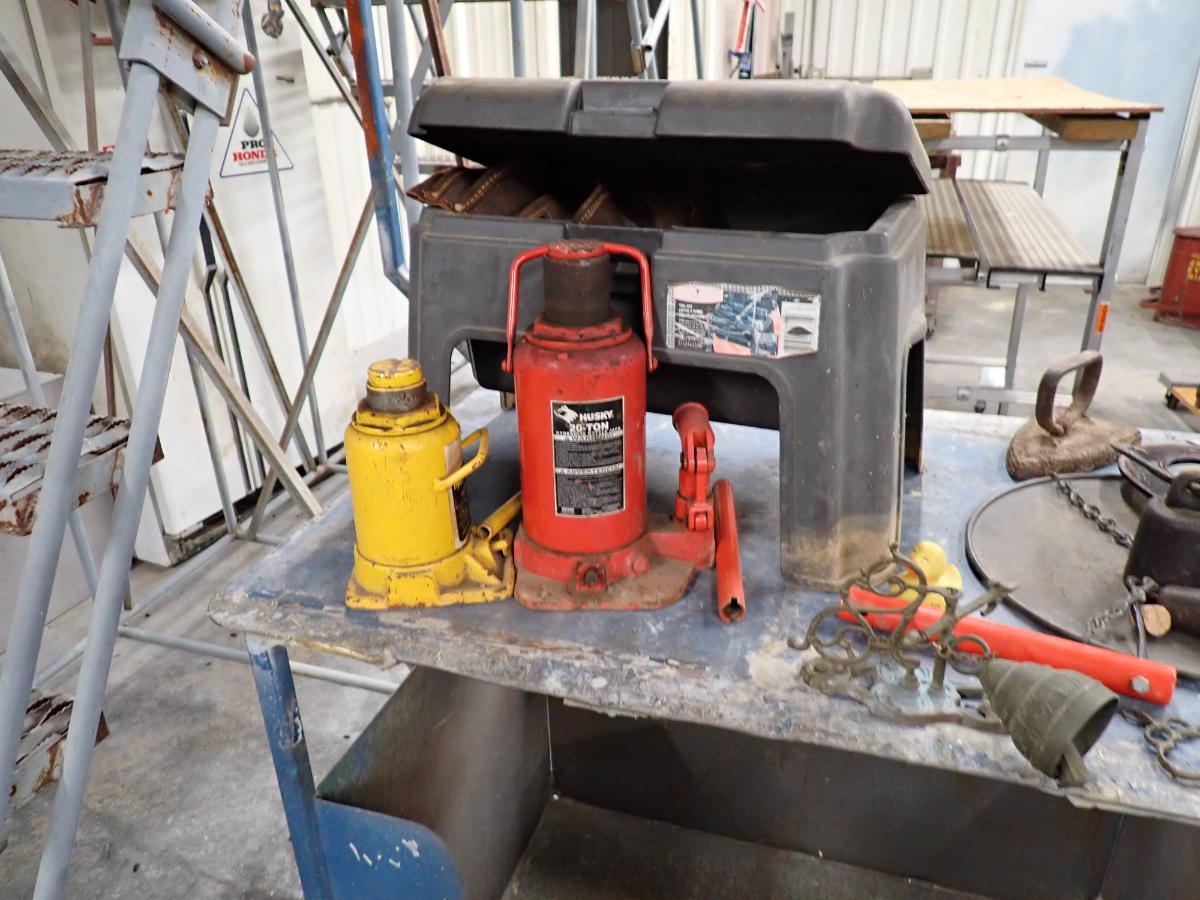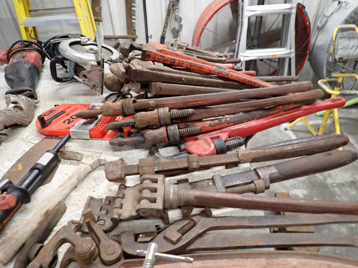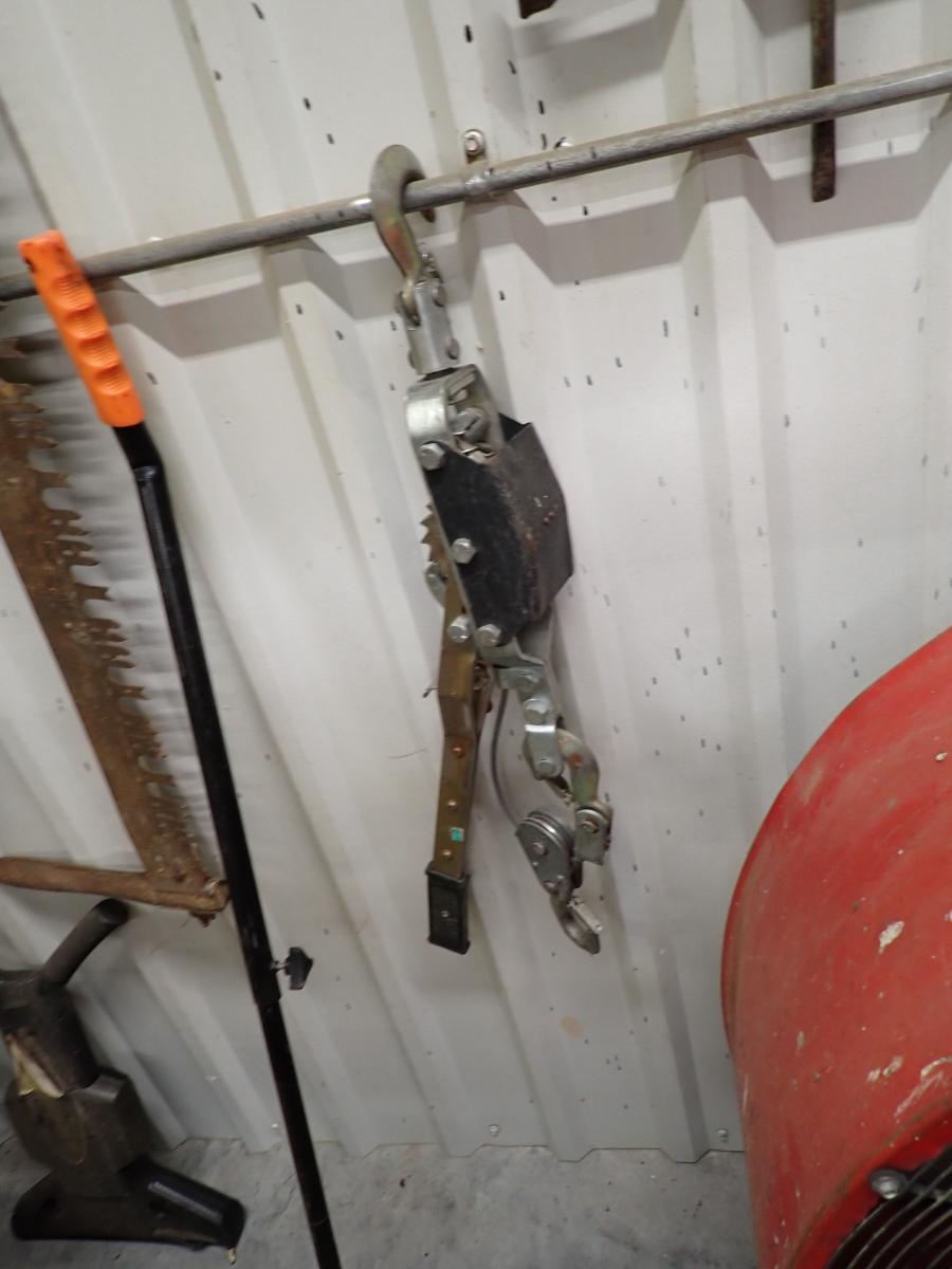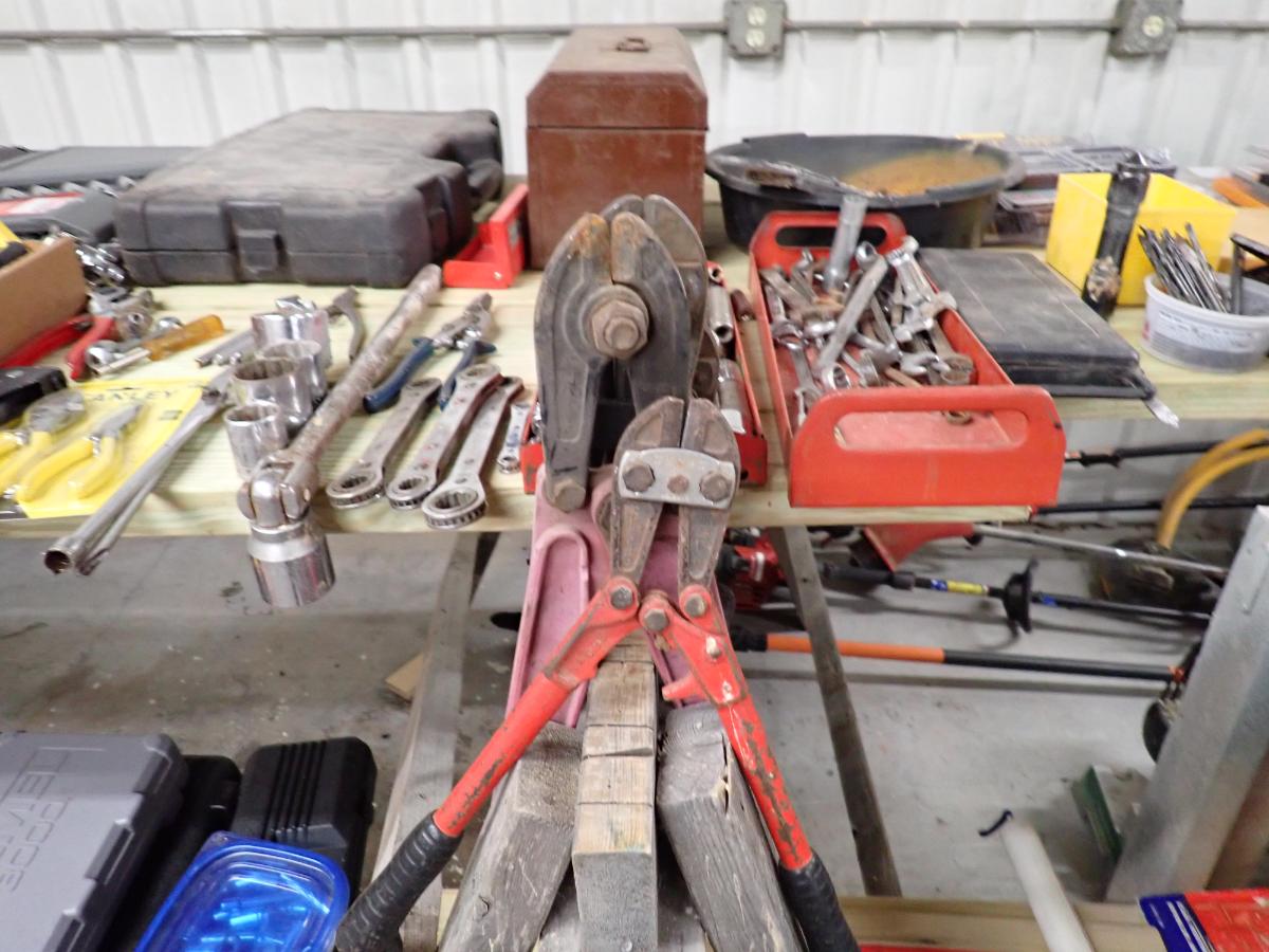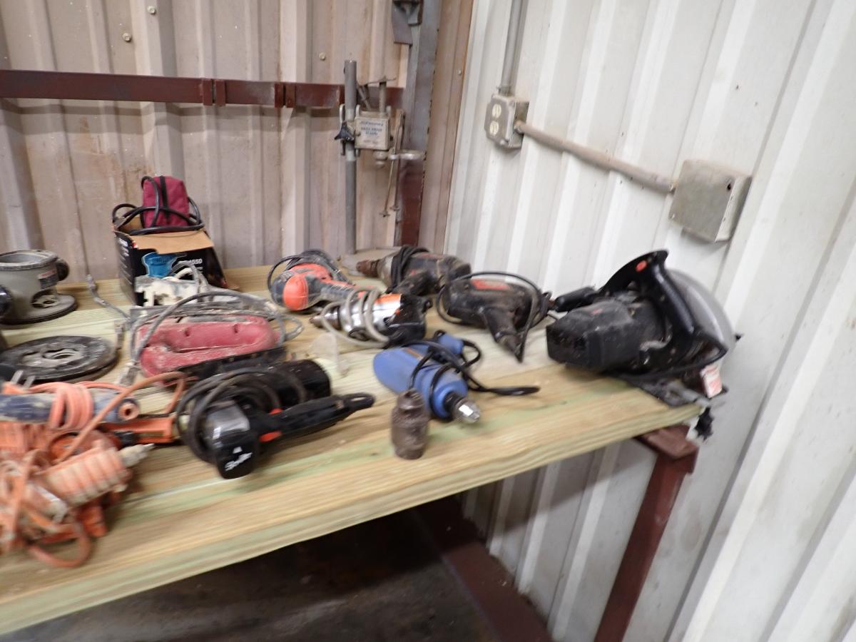 Shop & Misc:Â 10’x16′ A-1 Portable Building (to be moved) – (2) 500 gal Fuel Tanks on Stands – Front-Tine Tiller – Weed Eaters – Delta Dust Collector – Rockwell Table Saw w/Jointer – Acetylene Carts – Welding Rods – Rolling Stairs – Metal Shop Table – Pipe Stand – Pipe Wrenches – Come-a-Longs – C-Clamps – Furniture Clamps – Vise Grips – Allen Wrenches – Hammers – Craftsman Wrench Sets – Socket Sets – Ridgid Battery Operated Tools – Lots of Power & Hand Tools – Toolboxes – 2000 lb Hoist – Fiberglass Ladders – Limb Saw – Shop Fans – Halogen Lights – Elec Wire – Alum Ramps – Alum Walk Boards – Roll Around Motorcycle Stand – Snap-On Creeper – Roll Around Rack – 2-Man Log Carrier – Pull-Behind Sprayer – 12-Volt Sprayer on Wheels – Diamond Plate Fuel Tank w/Elec Pump – Solar Chargers – (2) Dumpsters – Composter – 4′ & 12′ Gates – Horse Buckets – Fiberglass Feed Troughs – Barrel Dolley – Safety Cage – Treated Wood Posts – T-Posts – Cake Feeder – Dock Plate – Outdoor Heater – Cast Iron Smoker on Wheels