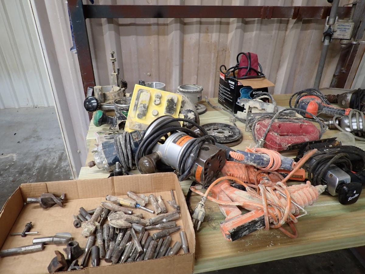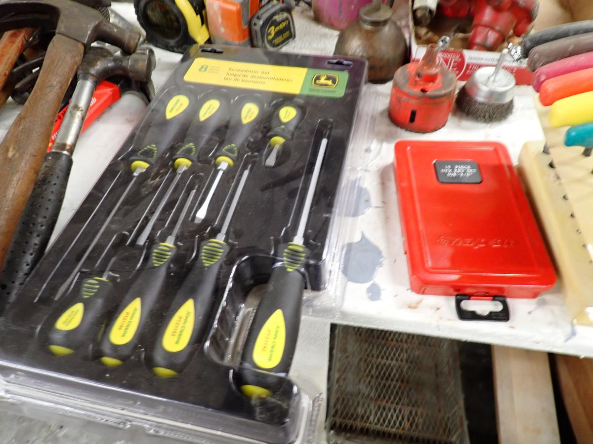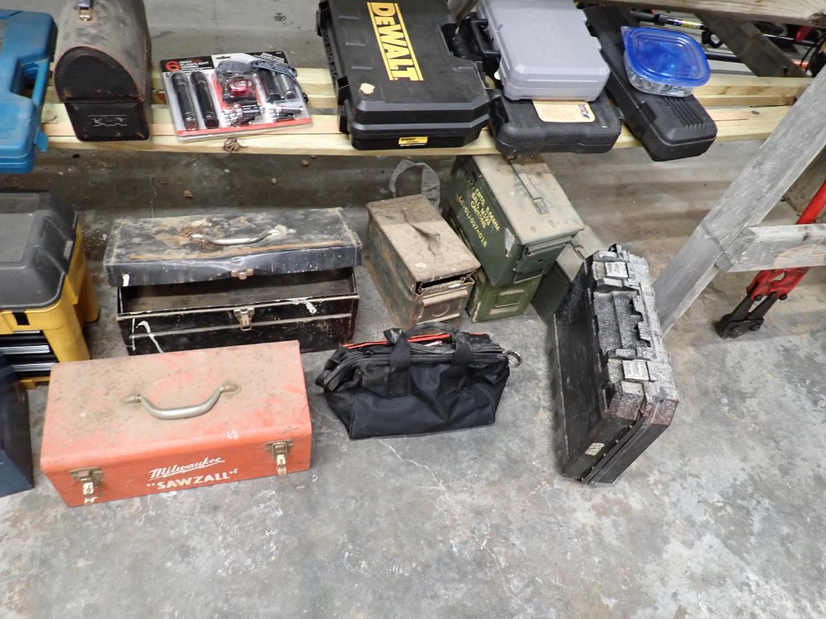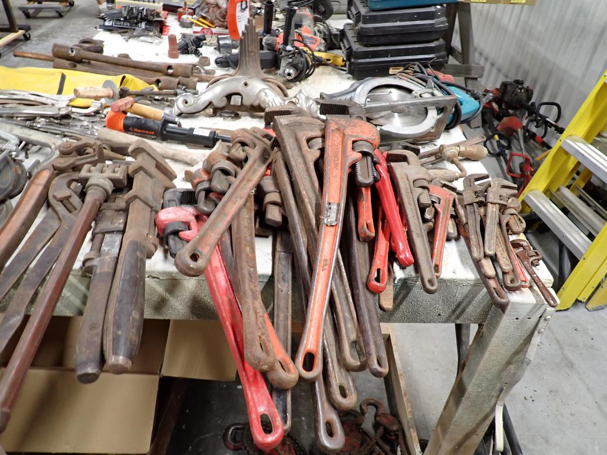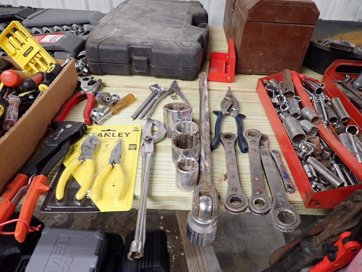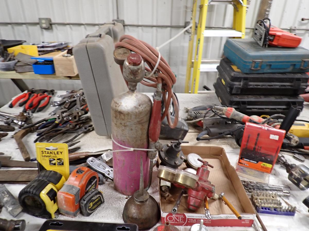 Shop & Misc:Â 10’x16′ A-1 Portable Building (to be moved) – (2) 500 gal Fuel Tanks on Stands – Front-Tine Tiller – Weed Eaters – Delta Dust Collector – Rockwell Table Saw w/Jointer – Acetylene Carts – Welding Rods – Rolling Stairs – Metal Shop Table – Pipe Stand – Pipe Wrenches – Come-a-Longs – C-Clamps – Furniture Clamps – Vise Grips – Allen Wrenches – Hammers – Craftsman Wrench Sets – Socket Sets – Ridgid Battery Operated Tools – Lots of Power & Hand Tools – Toolboxes – 2000 lb Hoist – Fiberglass Ladders – Limb Saw – Shop Fans – Halogen Lights – Elec Wire – Alum Ramps – Alum Walk Boards – Roll Around Motorcycle Stand – Snap-On Creeper – Roll Around Rack – 2-Man Log Carrier – Pull-Behind Sprayer – 12-Volt Sprayer on Wheels – Diamond Plate Fuel Tank w/Elec Pump – Solar Chargers – (2) Dumpsters – Composter – 4′ & 12′ Gates – Horse Buckets – Fiberglass Feed Troughs – Barrel Dolley – Safety Cage – Treated Wood Posts – T-Posts – Cake Feeder – Dock Plate – Outdoor Heater – Cast Iron Smoker on Wheels