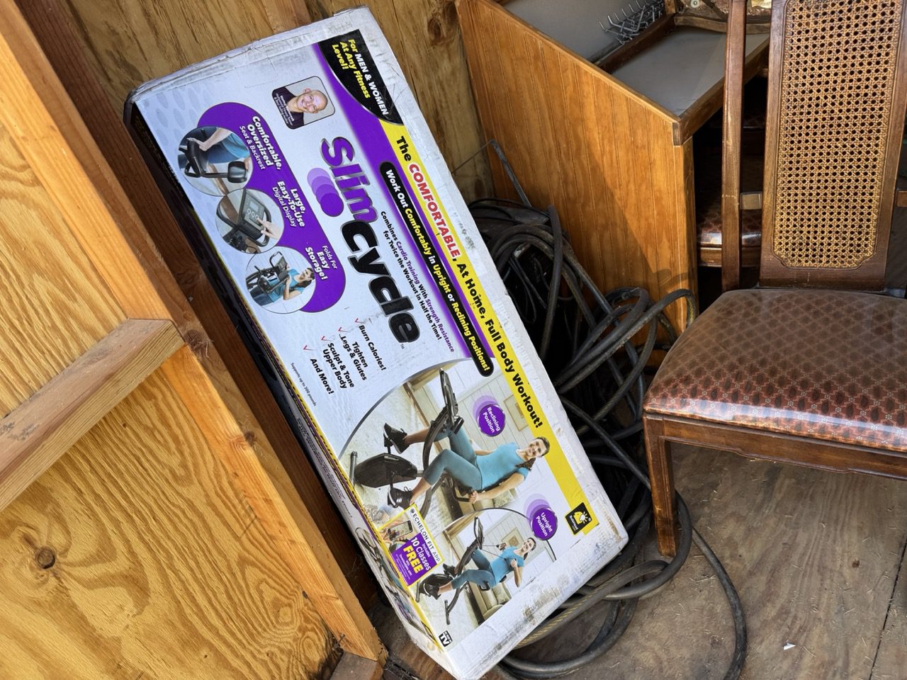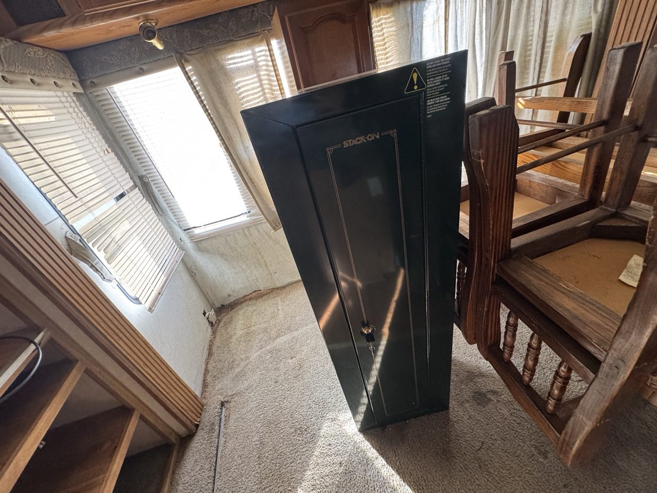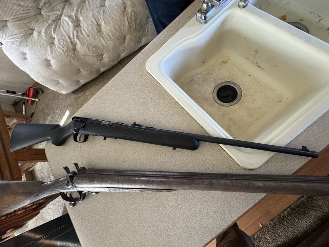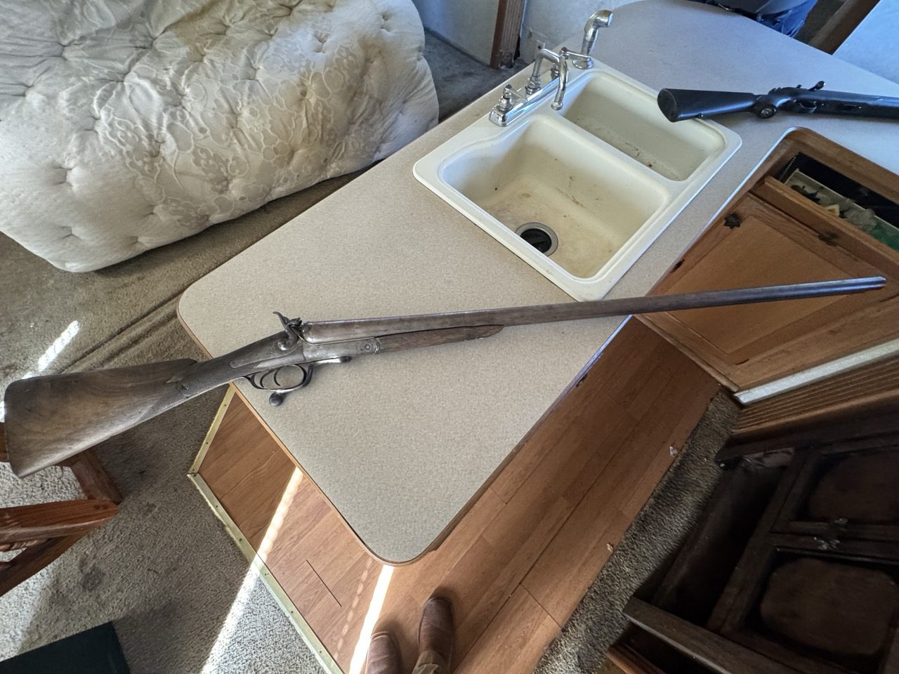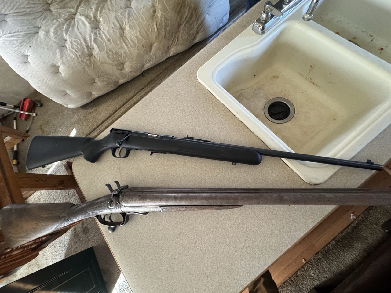 And: Savage Mark II 22 Rifle – 1876 8ga Dbl Barrel Shotgun – Gun Safe – Slim Cycle – Exercise Trampoline – Table & Chairs – Battery Charger – Bakers Rack – Computer Desk