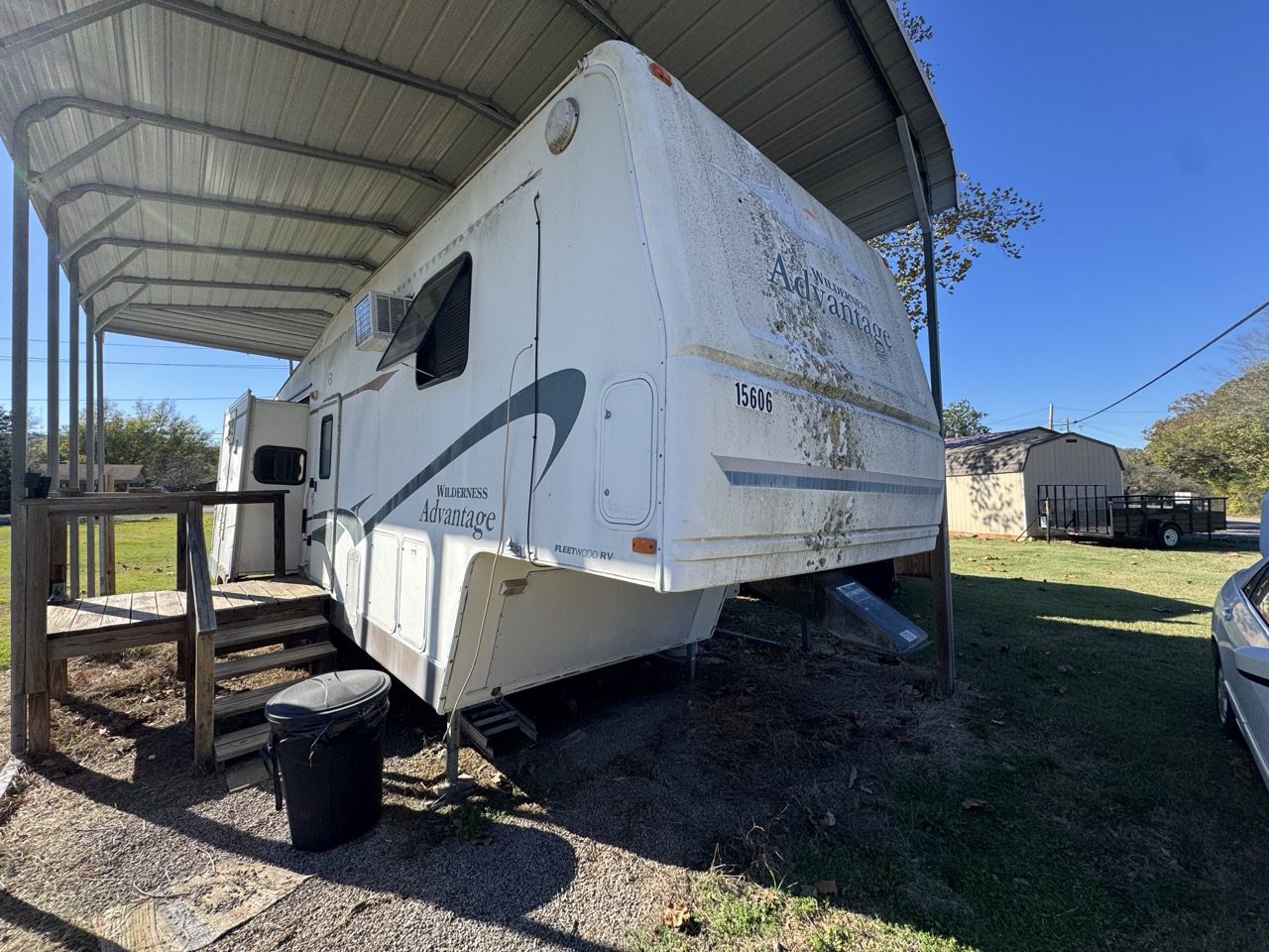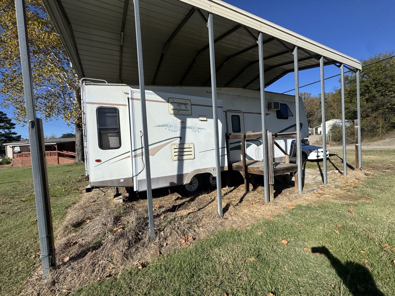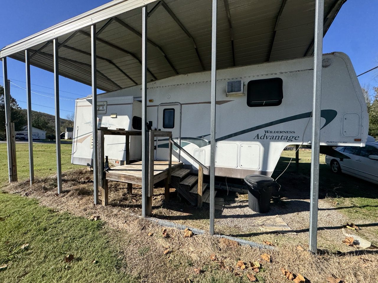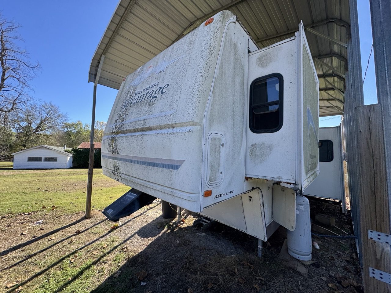 Travel Trailer & More: 2004 28′ Fleetwood Wilderness Advantage 5th Wheel Travel Trailer – 30′ RV Carport – 8′ x12′ Portable Building – 5′ x 10′ Single Axle Tilt Trailer