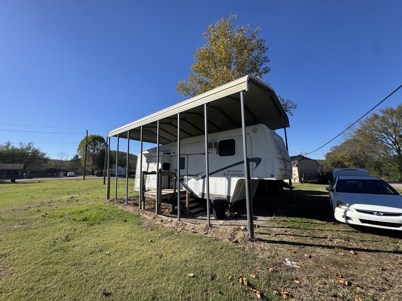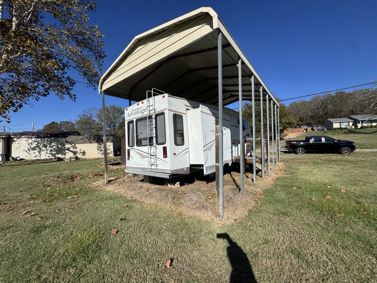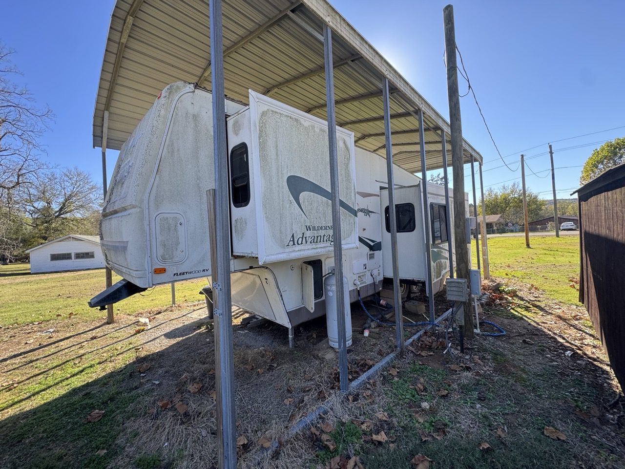 Travel Trailer & More: 2004 28′ Fleetwood Wilderness Advantage 5th Wheel Travel Trailer – 30′ RV Carport – 8′ x12′ Portable Building – 5′ x 10′ Single Axle Tilt Trailer
