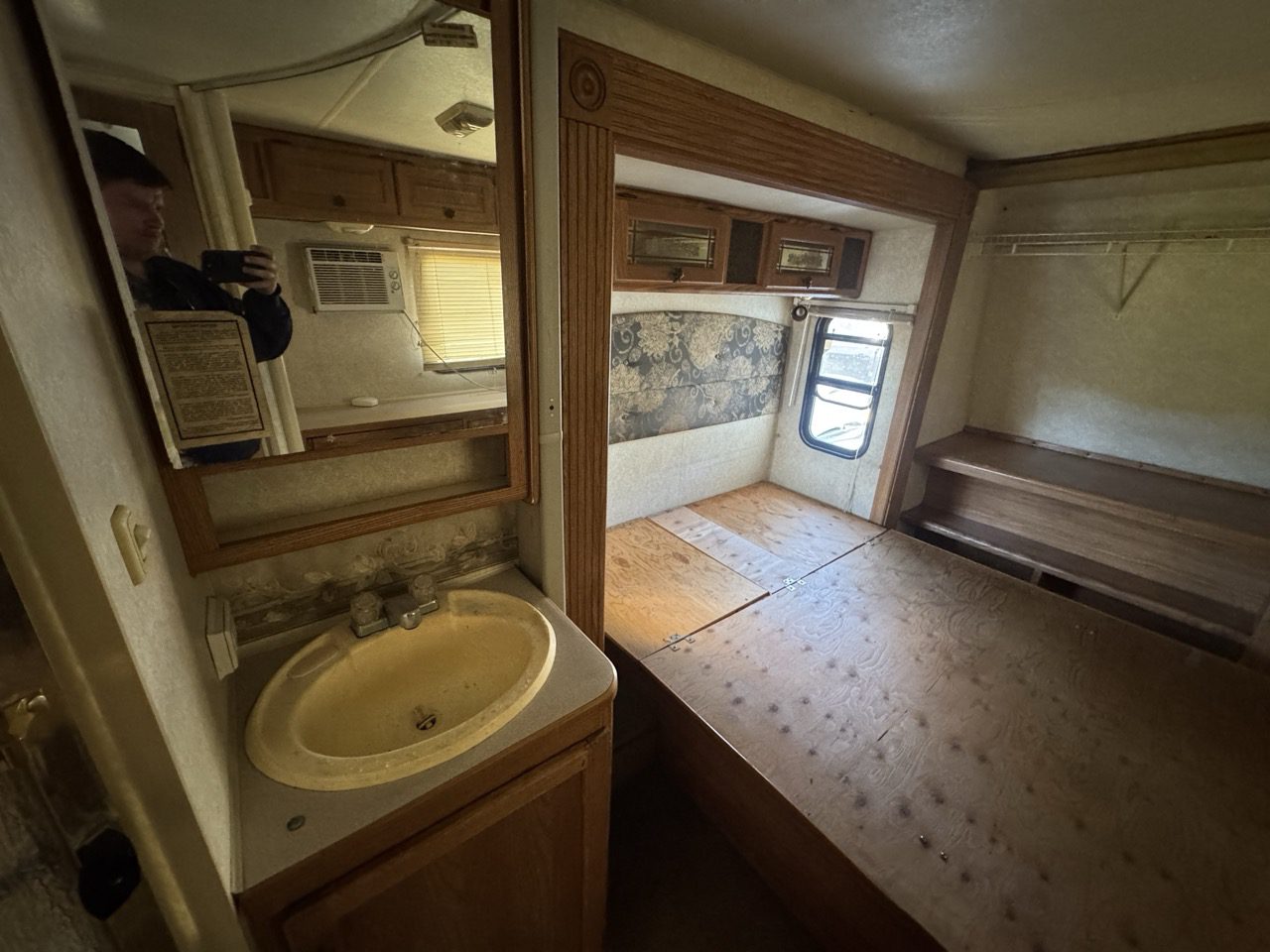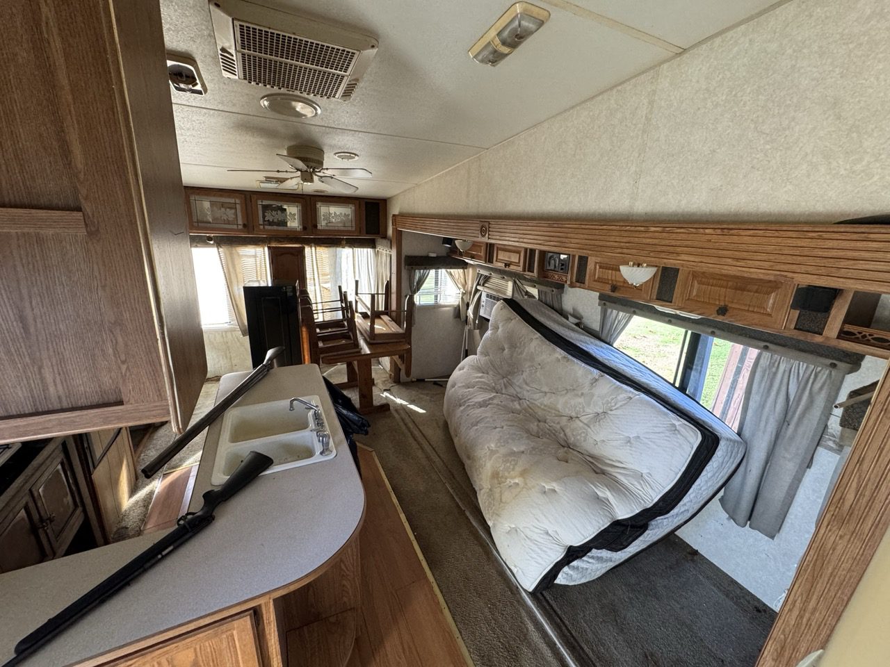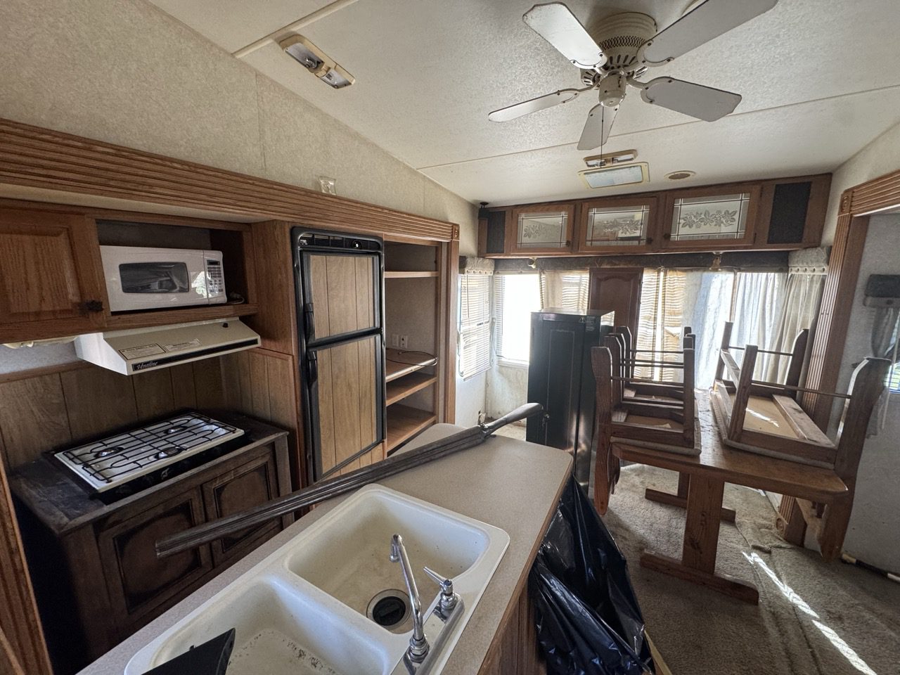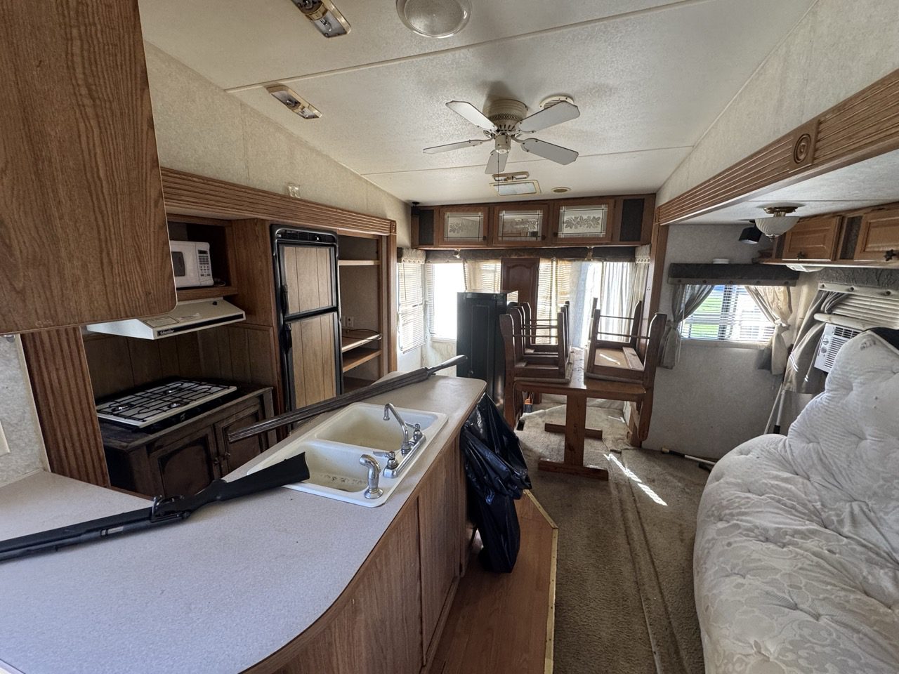 Travel Trailer & More: 2004 28′ Fleetwood Wilderness Advantage 5th Wheel Travel Trailer – 30′ RV Carport – 8′ x12′ Portable Building – 5′ x 10′ Single Axle Tilt Trailer