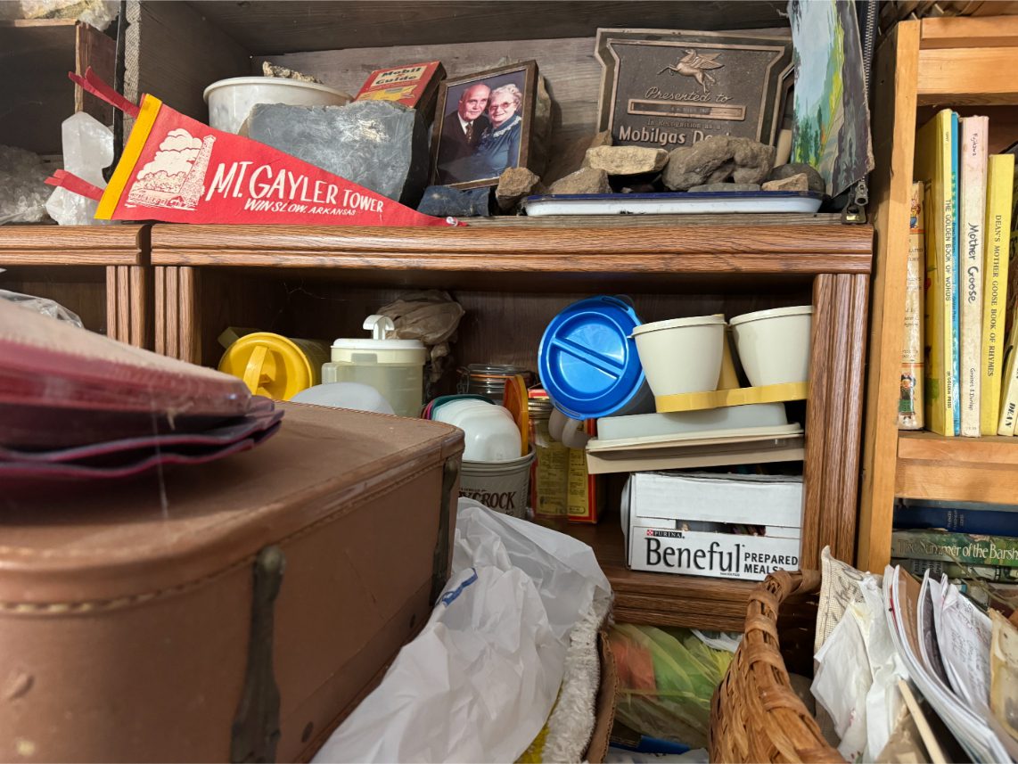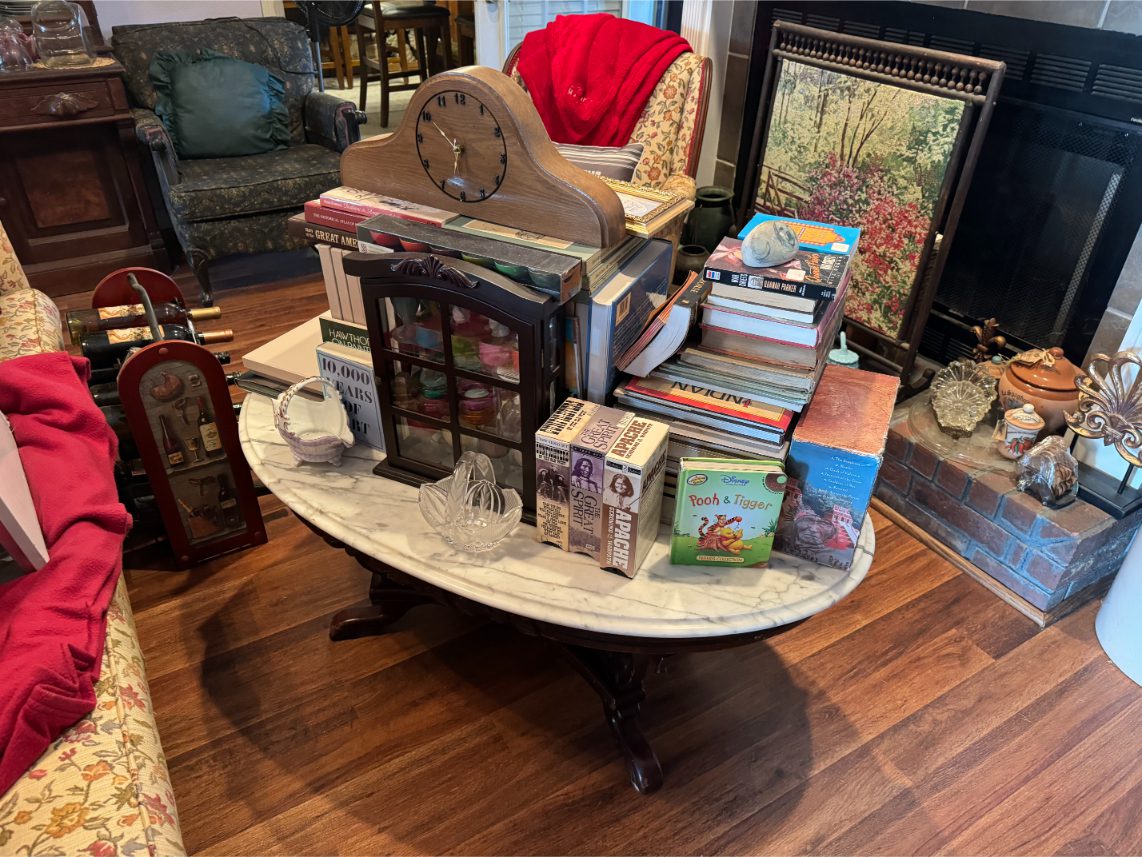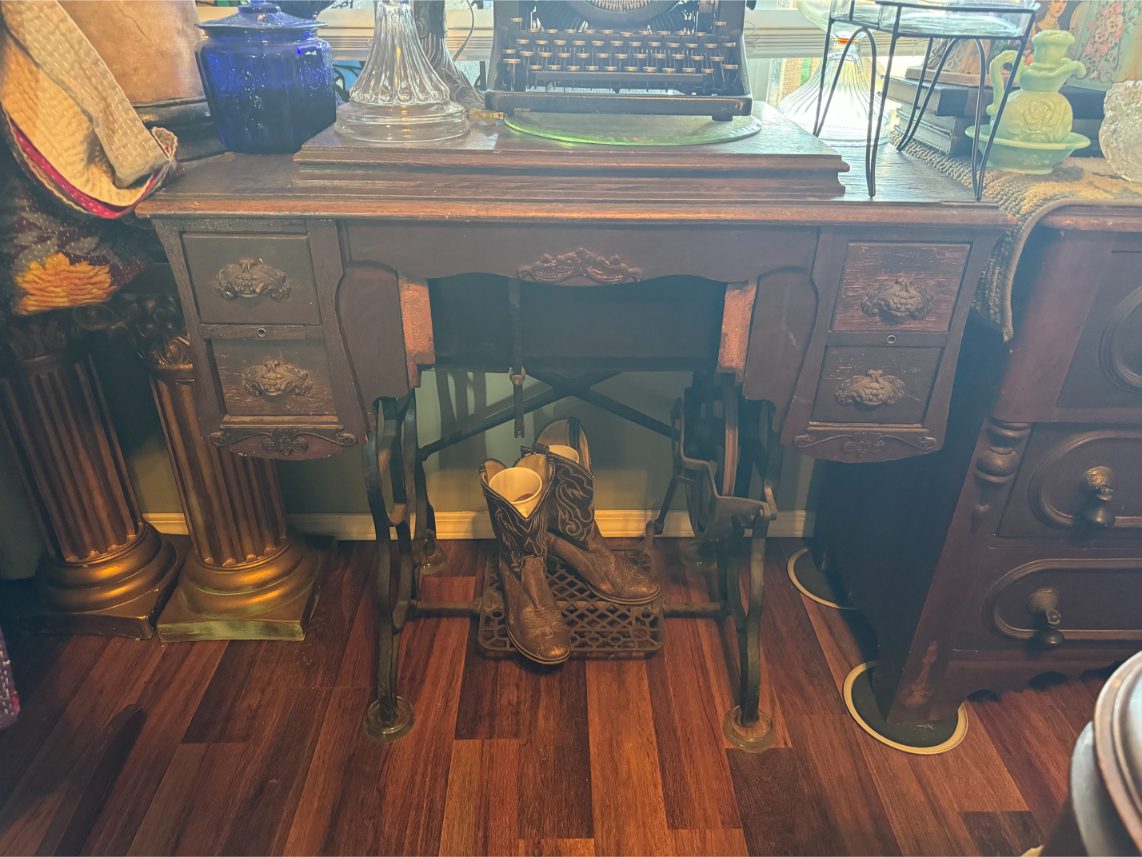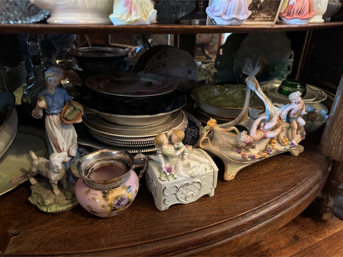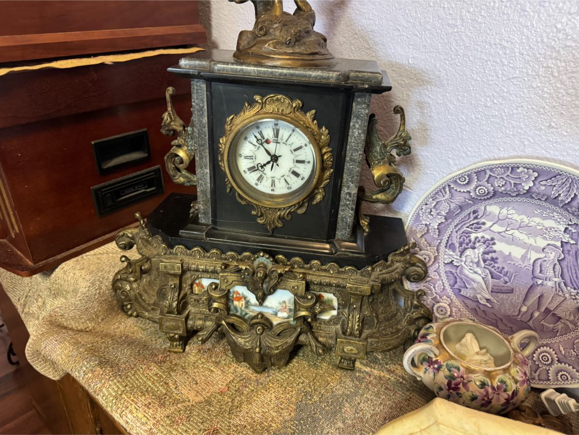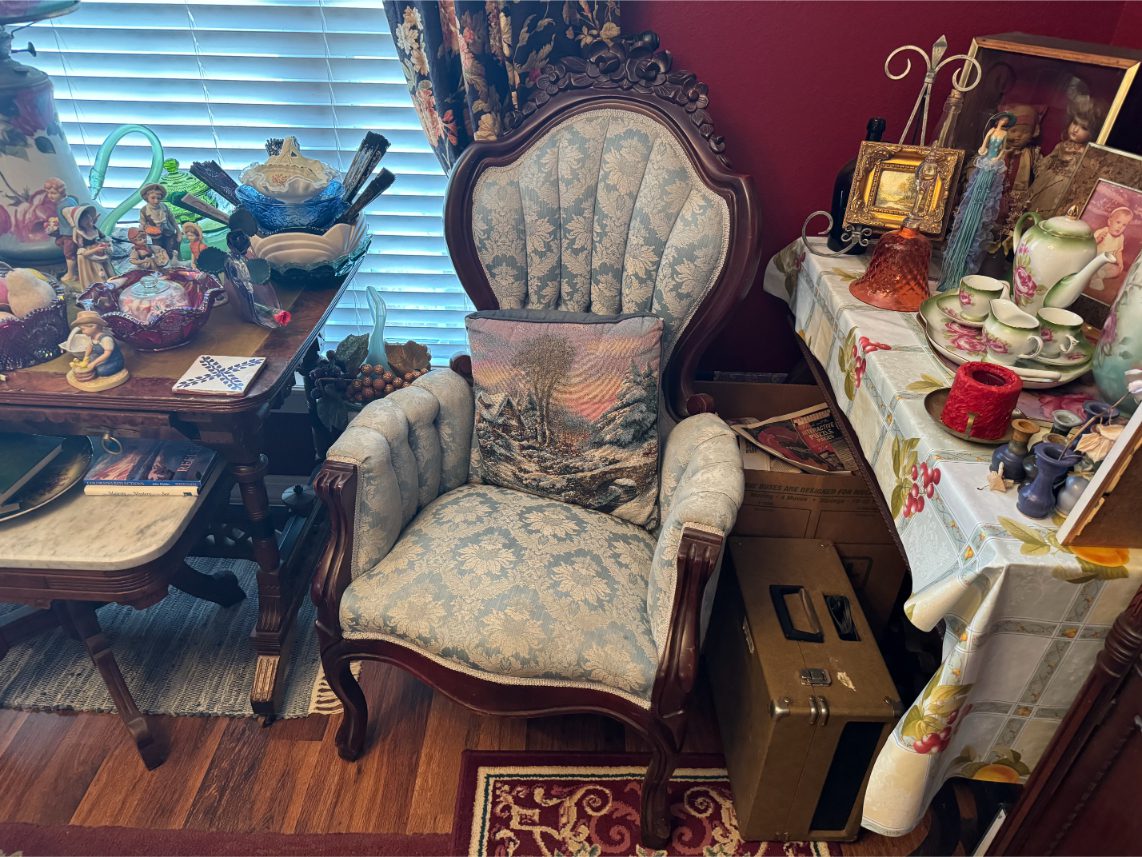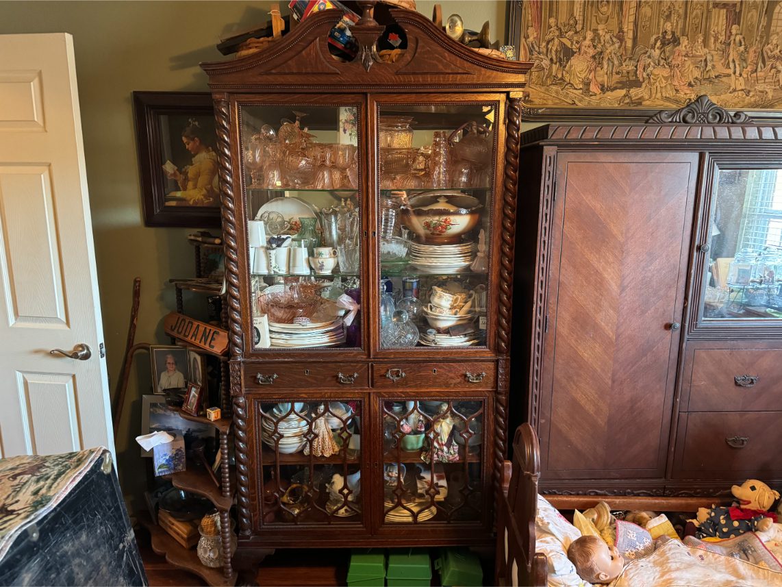 Antiques/Collectibles: Wooden Rocking Horse – Victorian Balloon Back Walnut Chair – Figurines – Arm Chair – Marble-Top Coffee Table – Tiger Oak China Hutch – Mahogany China Hutch – Victorian Children’s Horse Cycle – Victrola – Victorian Sofa – Metal Figurine Lamp – Bird Figurines – Porcelain Umbrella Stands – Pottery – Walnut Parlor Chair – Victorian Side Chairs – Vanity – Desk W/ Marble Bench – Hurricane Lamp – Audiotronics Record Player – Waltham Grandfather Clock – Cast Iron Piano Stool – Trunks – Crib – Wardrobe – Woodstock Typewriter – Treadle Sewing Machine – Chest of Drawers – Kerosine Lamps – Bronze Table Clock – Mt. Gayler Train Schedule Sign – Boston Mountain Resort Assn. Sign – Mt. Gayler Tower Pennant