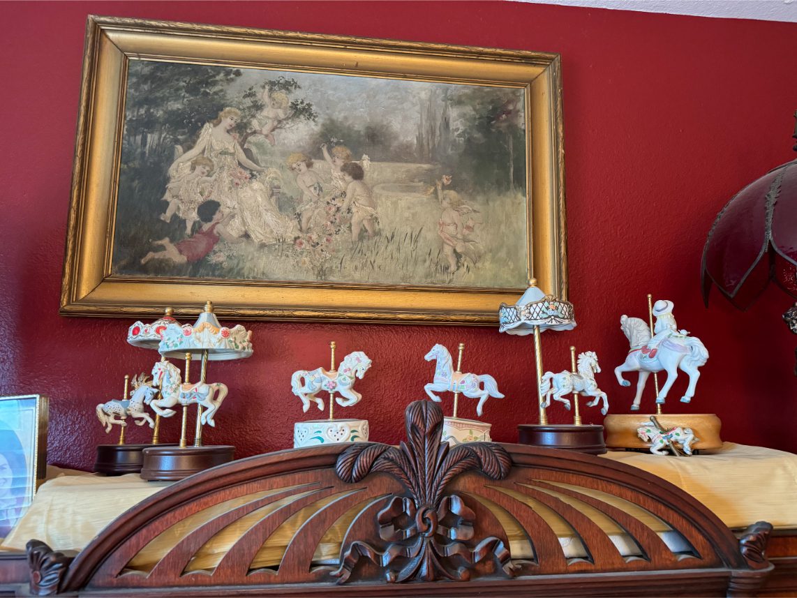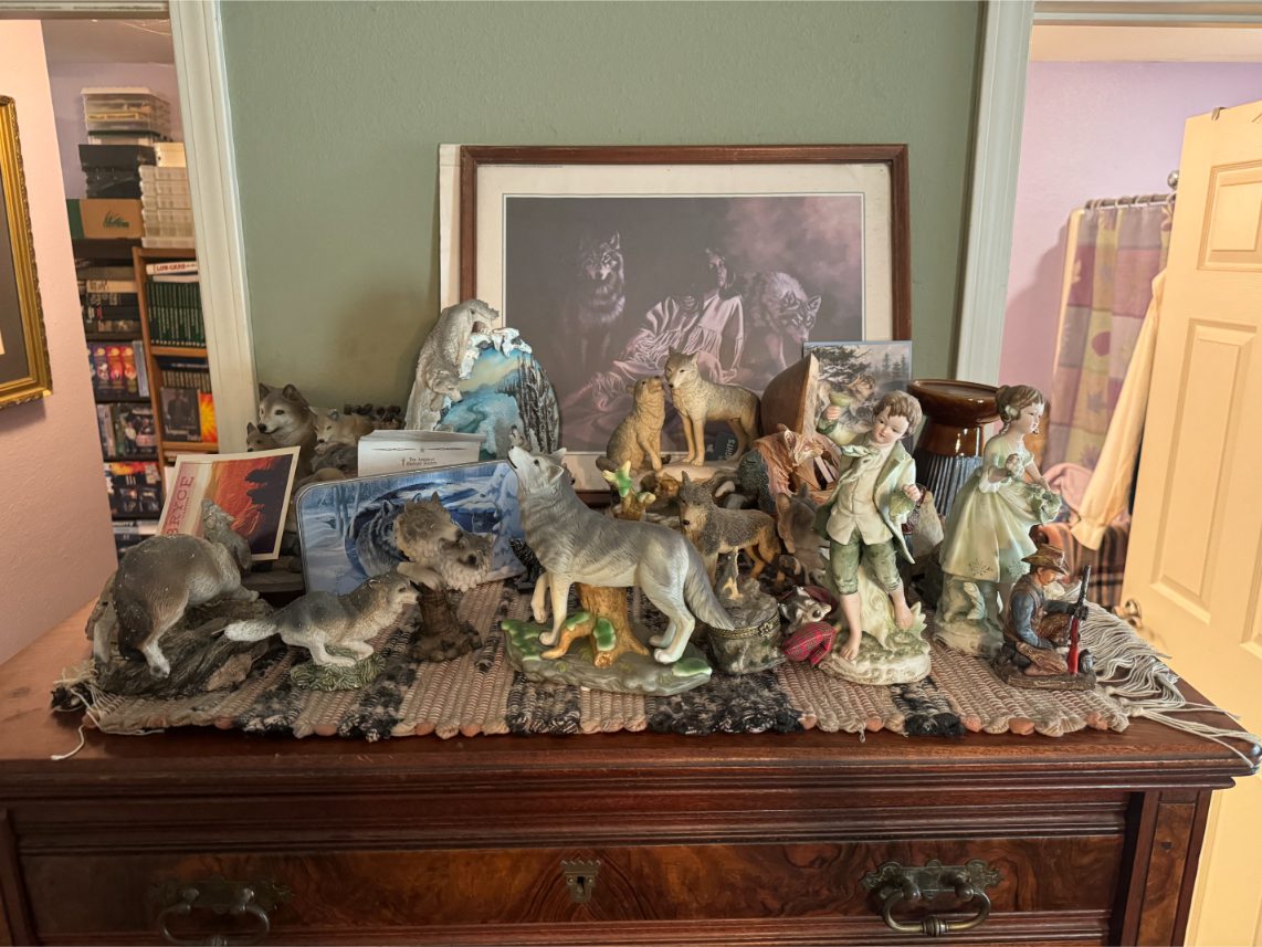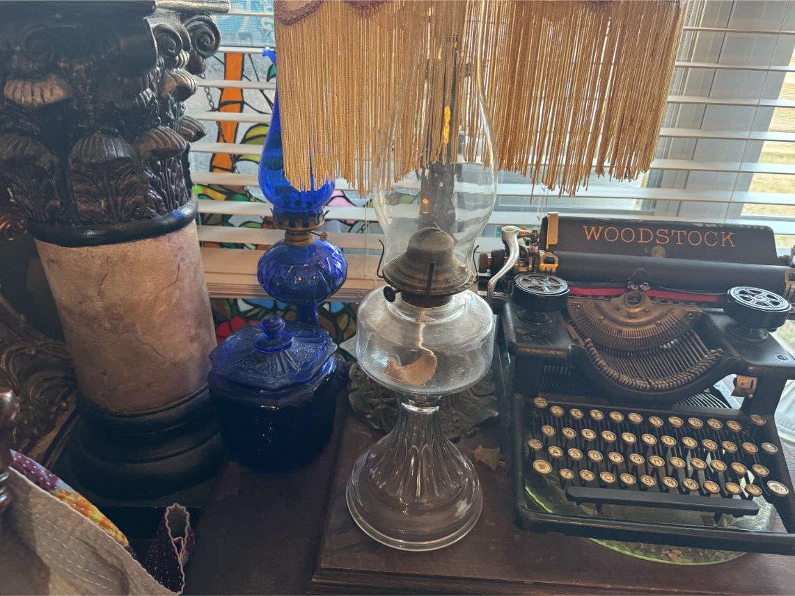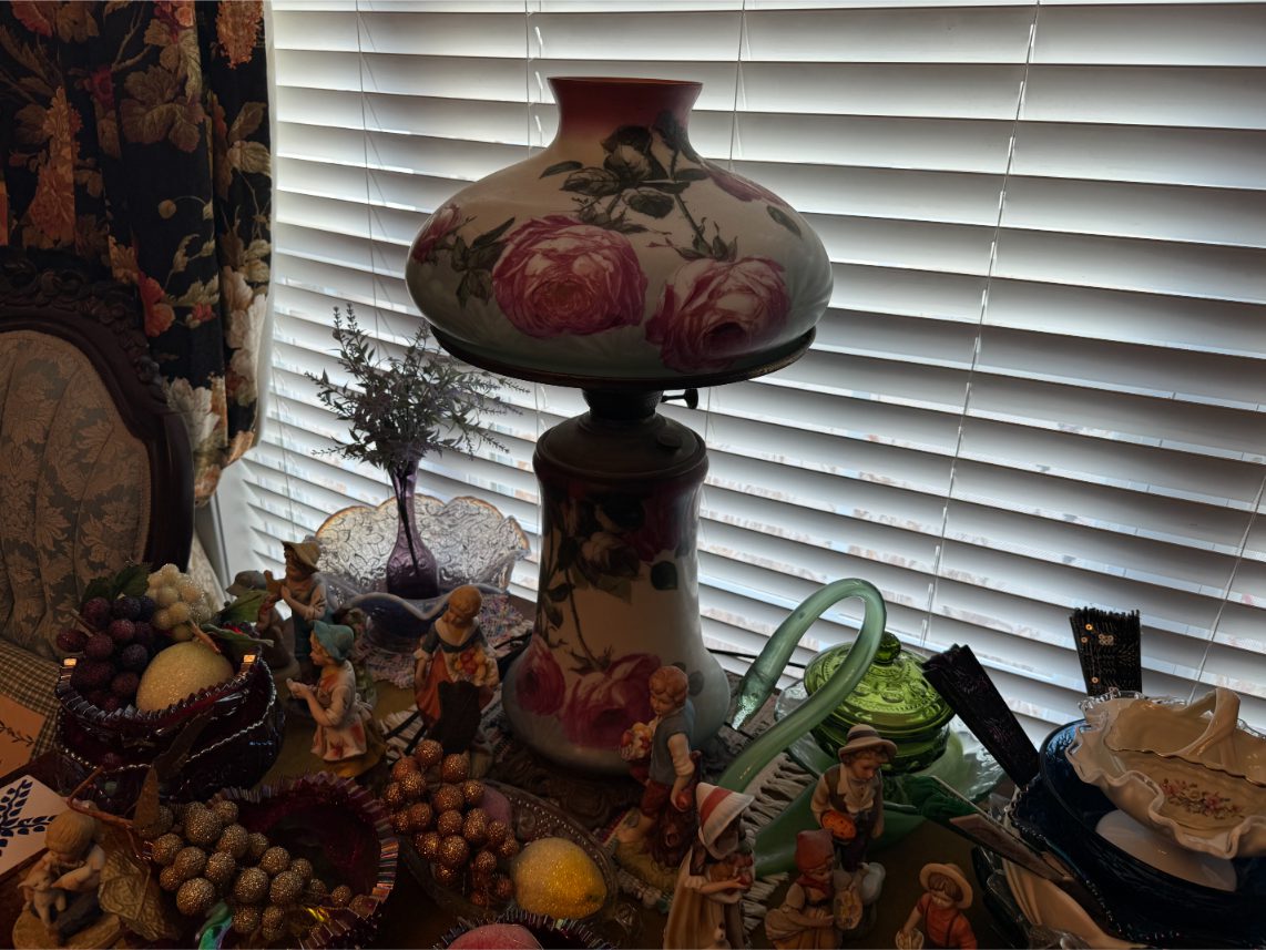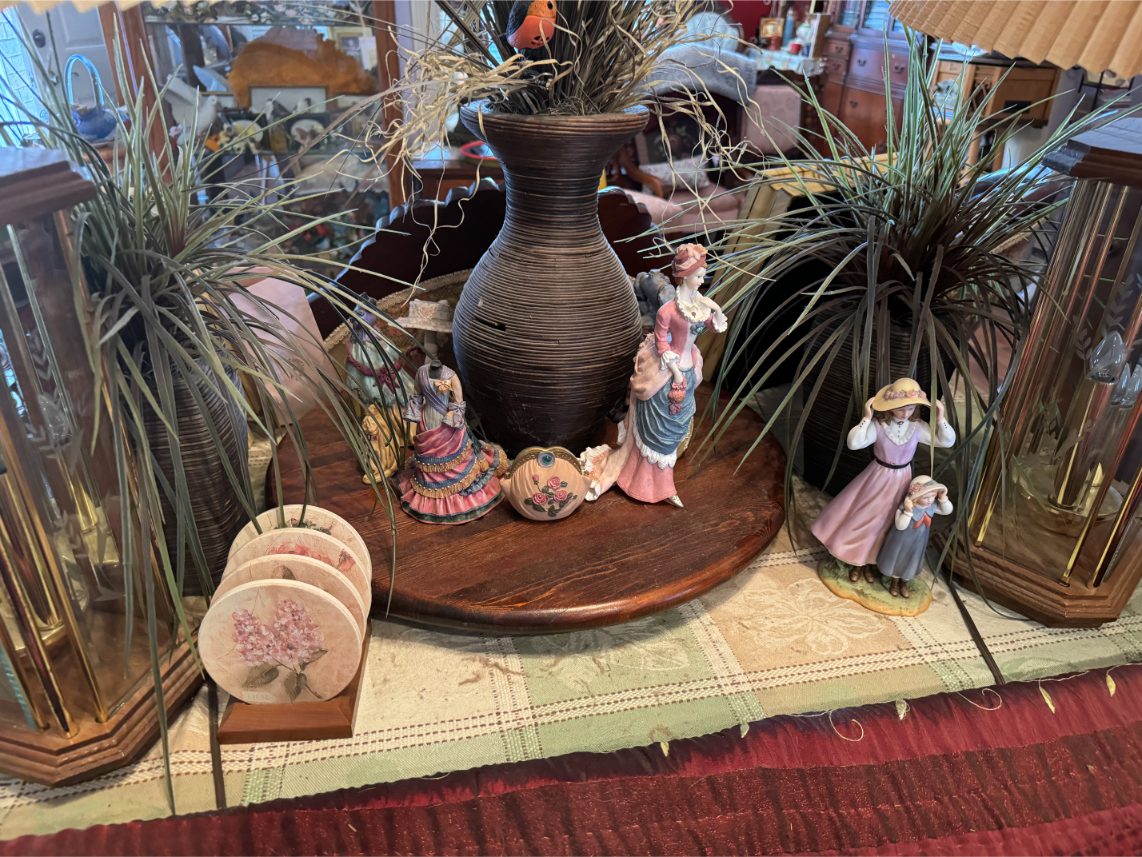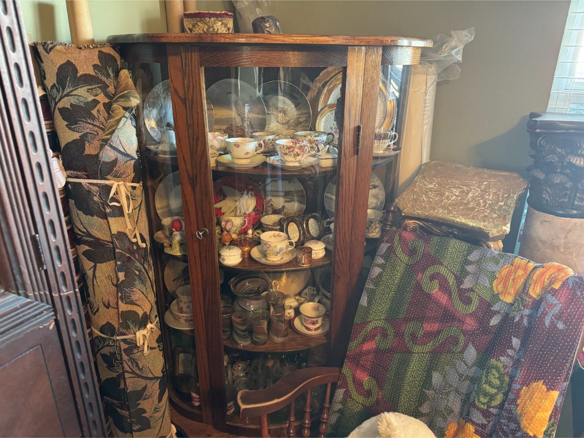 Antiques/Collectibles: Wooden Rocking Horse – Victorian Balloon Back Walnut Chair – Figurines – Arm Chair – Marble-Top Coffee Table – Tiger Oak China Hutch – Mahogany China Hutch – Victorian Children’s Horse Cycle – Victrola – Victorian Sofa – Metal Figurine Lamp – Bird Figurines – Porcelain Umbrella Stands – Pottery – Walnut Parlor Chair – Victorian Side Chairs – Vanity – Desk W/ Marble Bench – Hurricane Lamp – Audiotronics Record Player – Waltham Grandfather Clock – Cast Iron Piano Stool – Trunks – Crib – Wardrobe – Woodstock Typewriter – Treadle Sewing Machine – Chest of Drawers – Kerosine Lamps – Bronze Table Clock – Mt. Gayler Train Schedule Sign – Boston Mountain Resort Assn. Sign – Mt. Gayler Tower Pennant