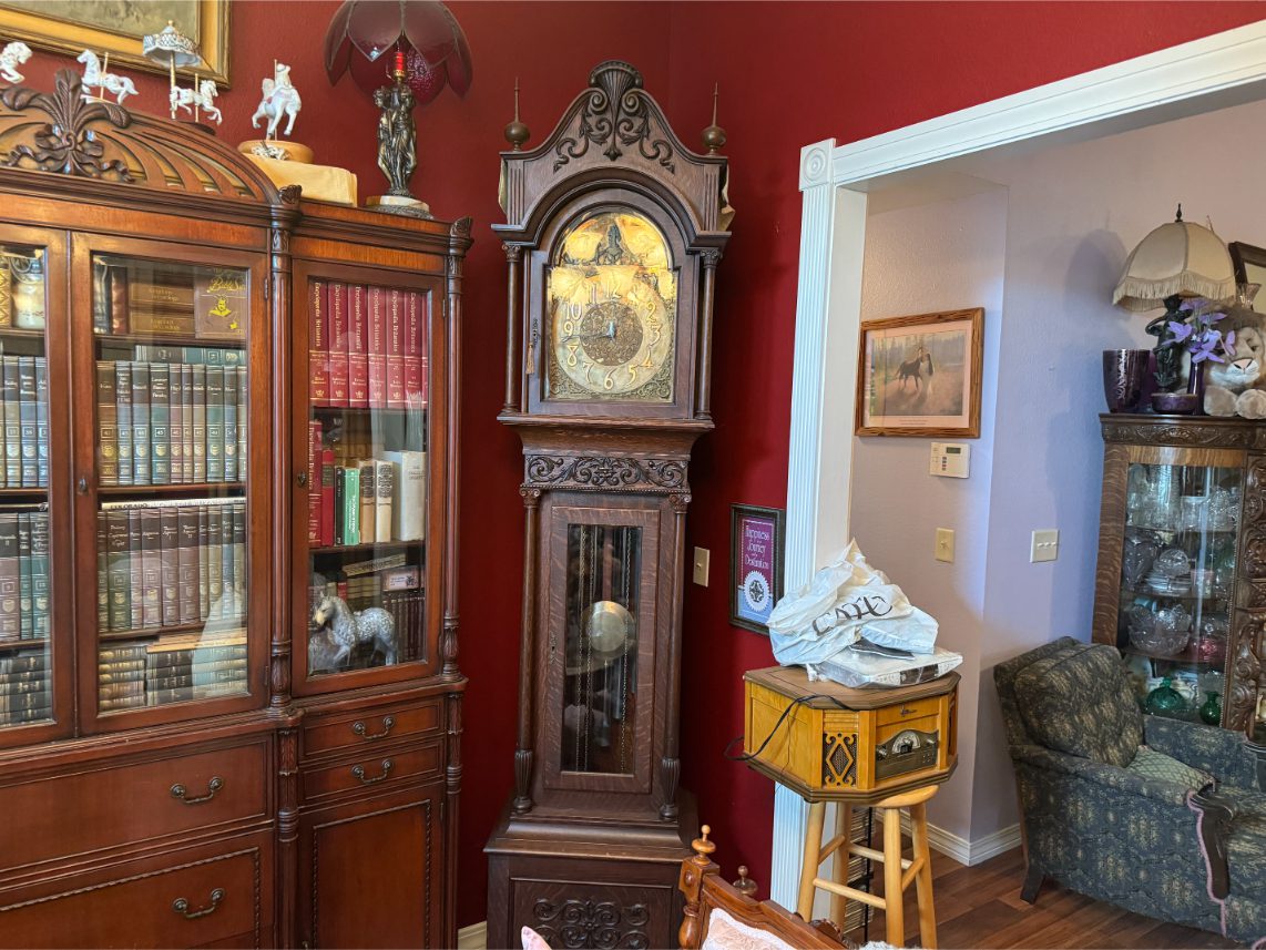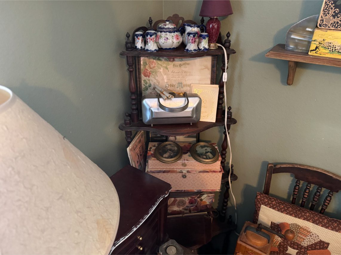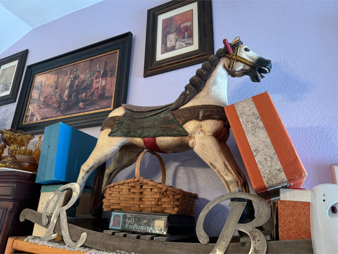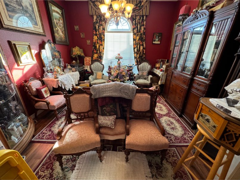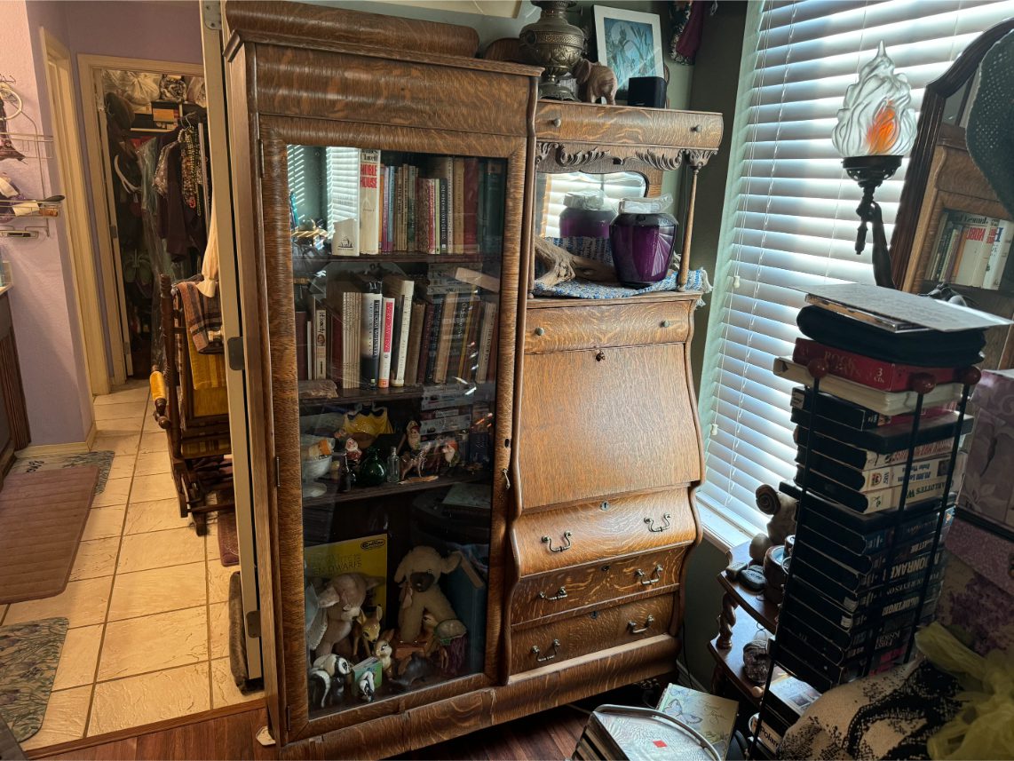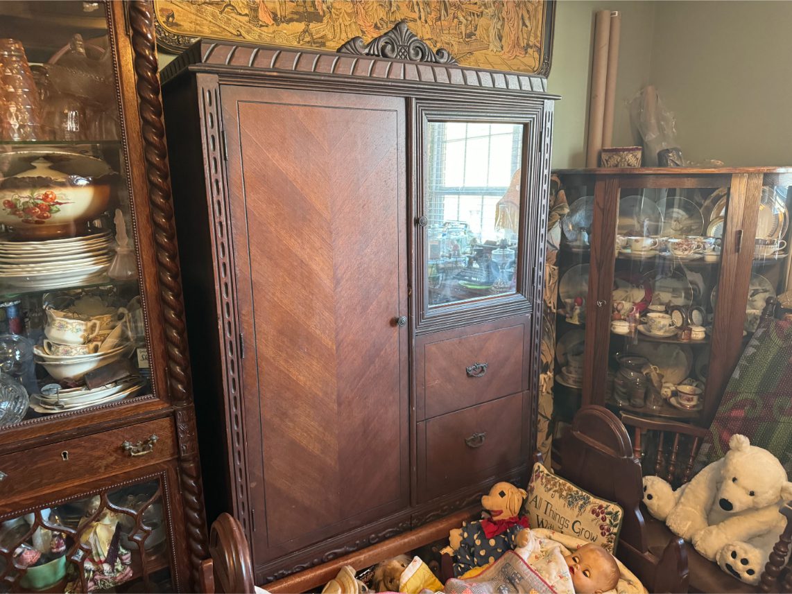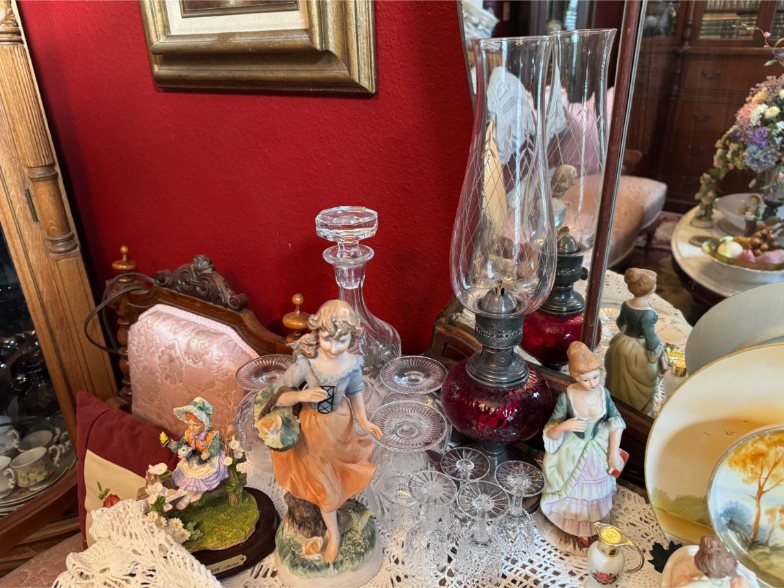 Antiques/Collectibles: Wooden Rocking Horse – Victorian Balloon Back Walnut Chair – Figurines – Arm Chair – Marble-Top Coffee Table – Tiger Oak China Hutch – Mahogany China Hutch – Victorian Children’s Horse Cycle – Victrola – Victorian Sofa – Metal Figurine Lamp – Bird Figurines – Porcelain Umbrella Stands – Pottery – Walnut Parlor Chair – Victorian Side Chairs – Vanity – Desk W/ Marble Bench – Hurricane Lamp – Audiotronics Record Player – Waltham Grandfather Clock – Cast Iron Piano Stool – Trunks – Crib – Wardrobe – Woodstock Typewriter – Treadle Sewing Machine – Chest of Drawers – Kerosine Lamps – Bronze Table Clock – Mt. Gayler Train Schedule Sign – Boston Mountain Resort Assn. Sign – Mt. Gayler Tower Pennant