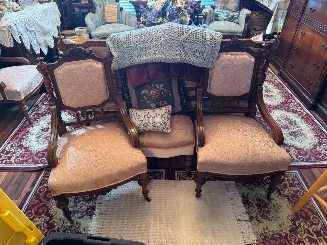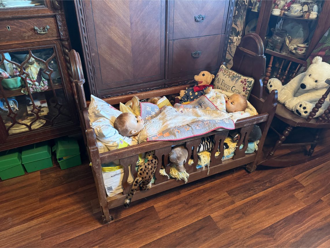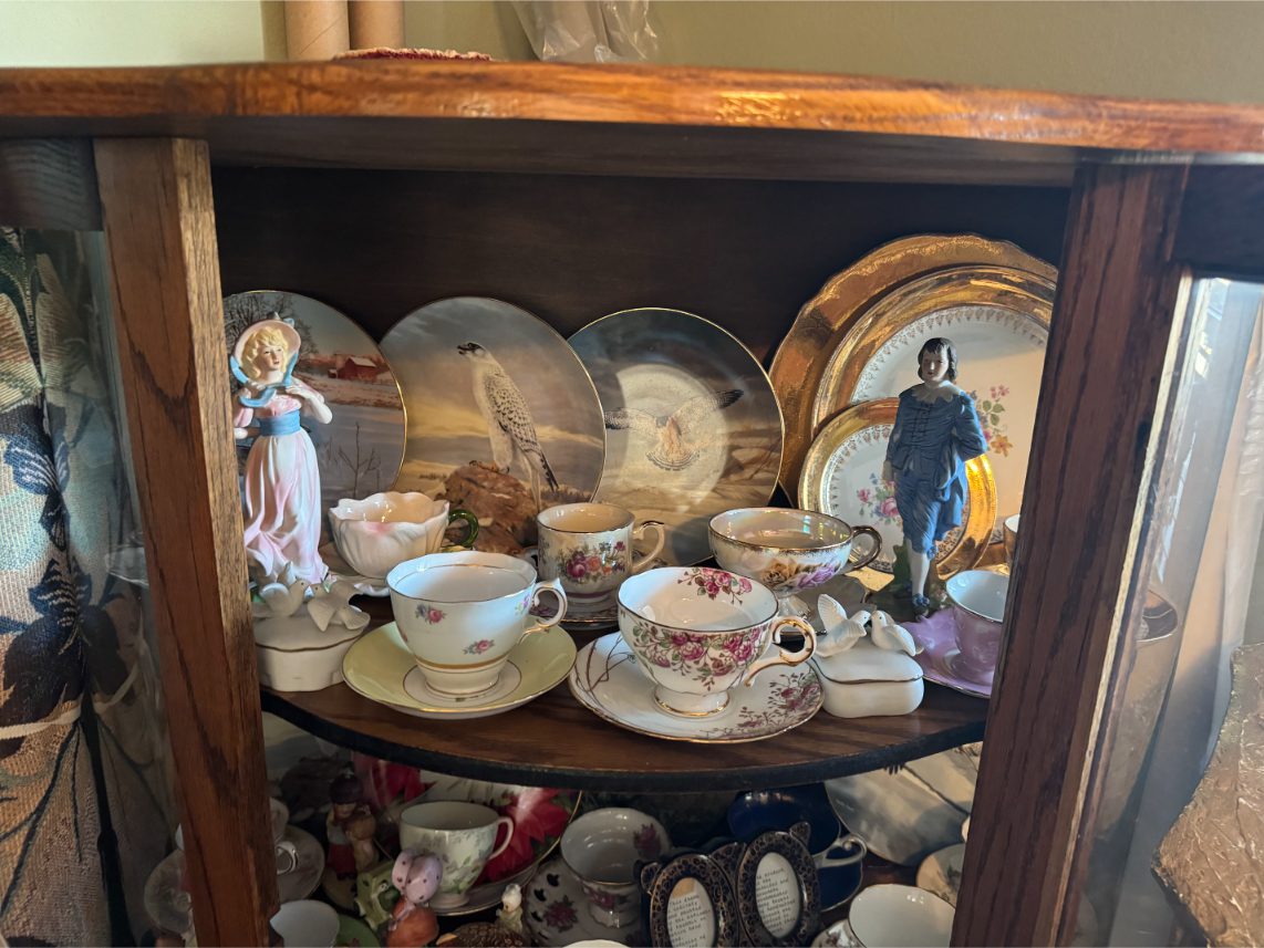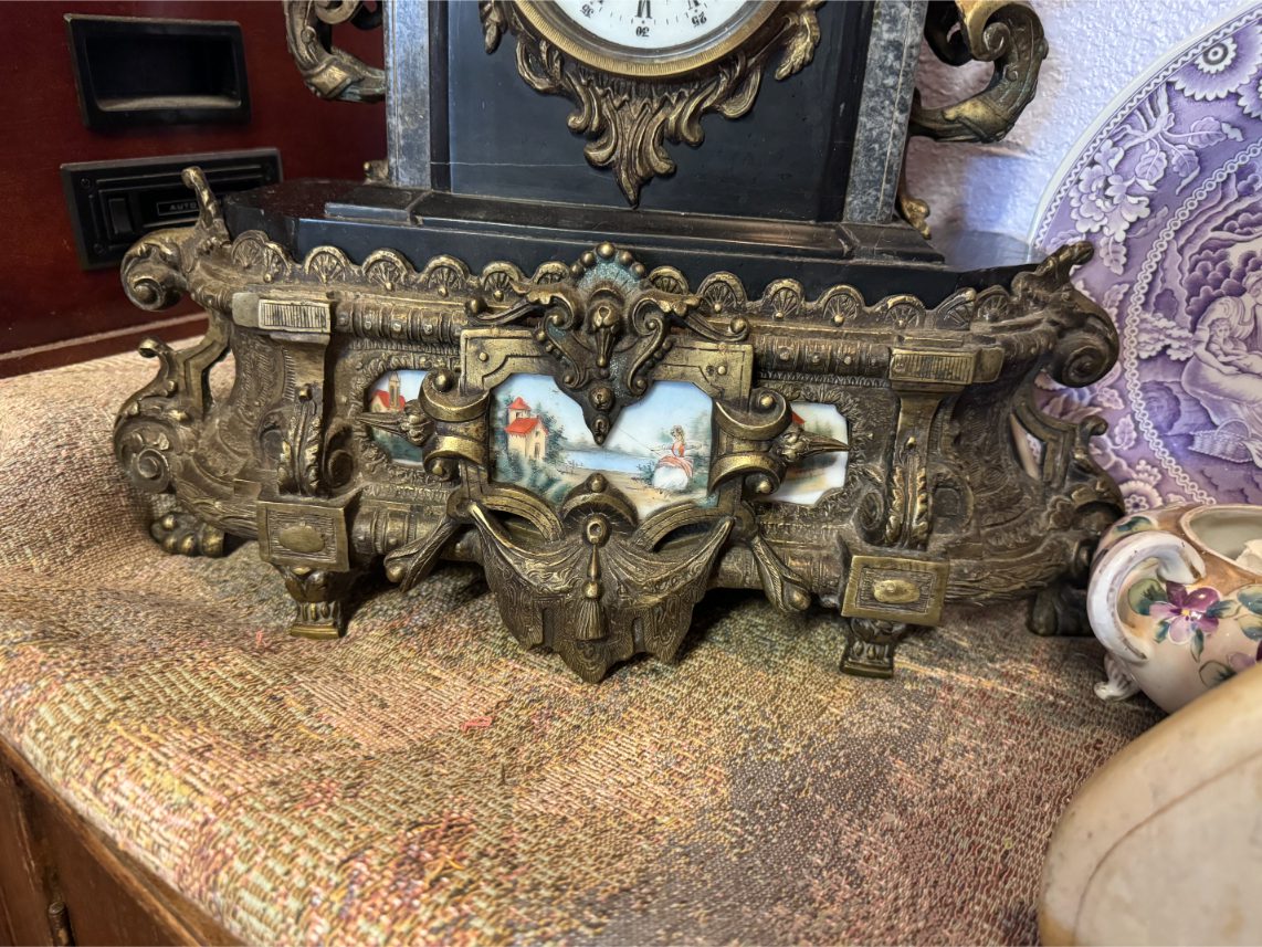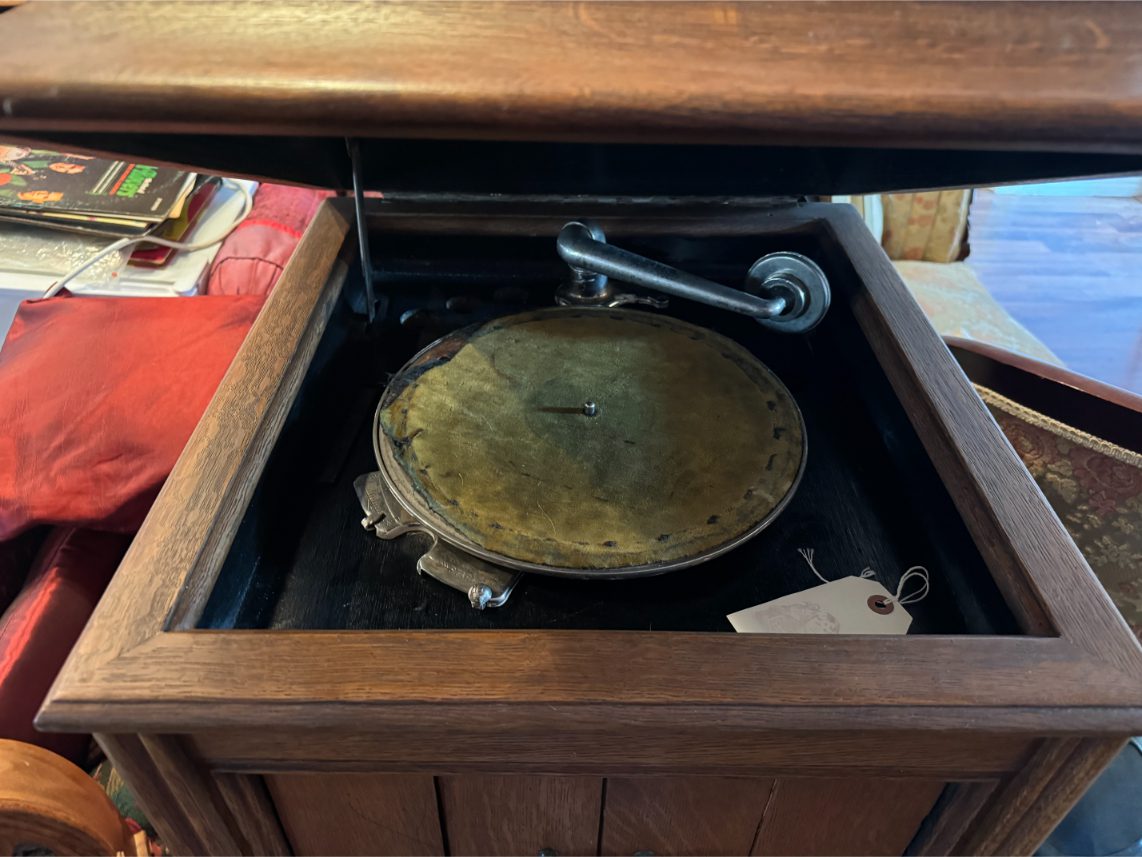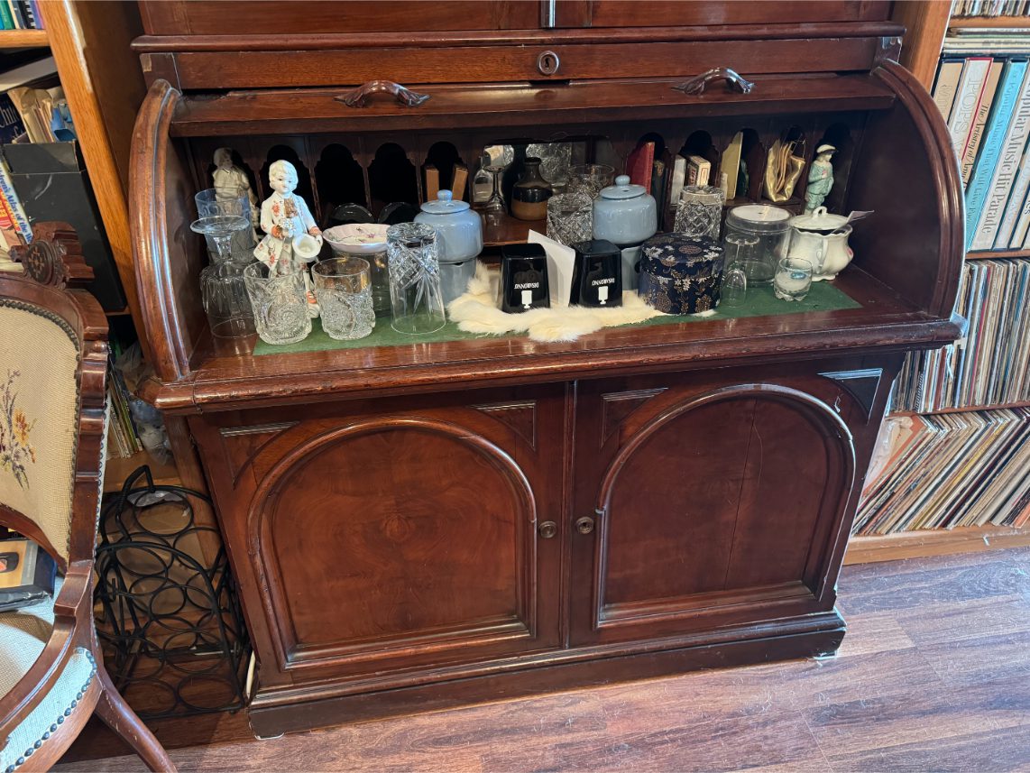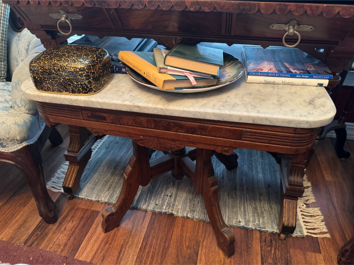 Antiques/Collectibles: Wooden Rocking Horse – Victorian Balloon Back Walnut Chair – Figurines – Arm Chair – Marble-Top Coffee Table – Tiger Oak China Hutch – Mahogany China Hutch – Victorian Children’s Horse Cycle – Victrola – Victorian Sofa – Metal Figurine Lamp – Bird Figurines – Porcelain Umbrella Stands – Pottery – Walnut Parlor Chair – Victorian Side Chairs – Vanity – Desk W/ Marble Bench – Hurricane Lamp – Audiotronics Record Player – Waltham Grandfather Clock – Cast Iron Piano Stool – Trunks – Crib – Wardrobe – Woodstock Typewriter – Treadle Sewing Machine – Chest of Drawers – Kerosine Lamps – Bronze Table Clock – Mt. Gayler Train Schedule Sign – Boston Mountain Resort Assn. Sign – Mt. Gayler Tower Pennant