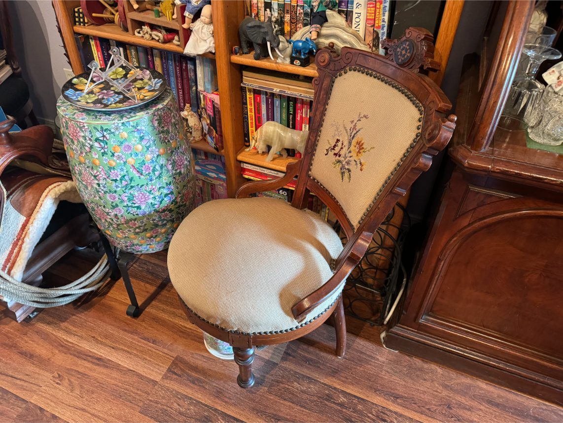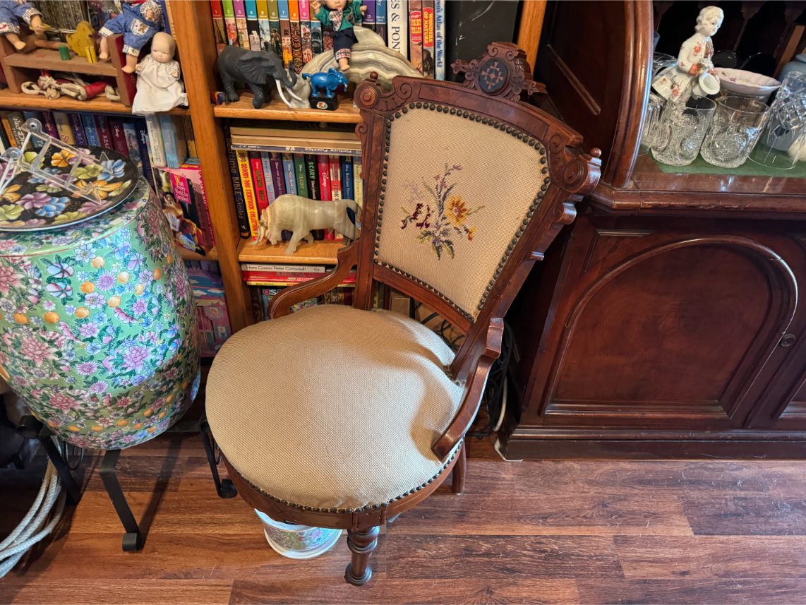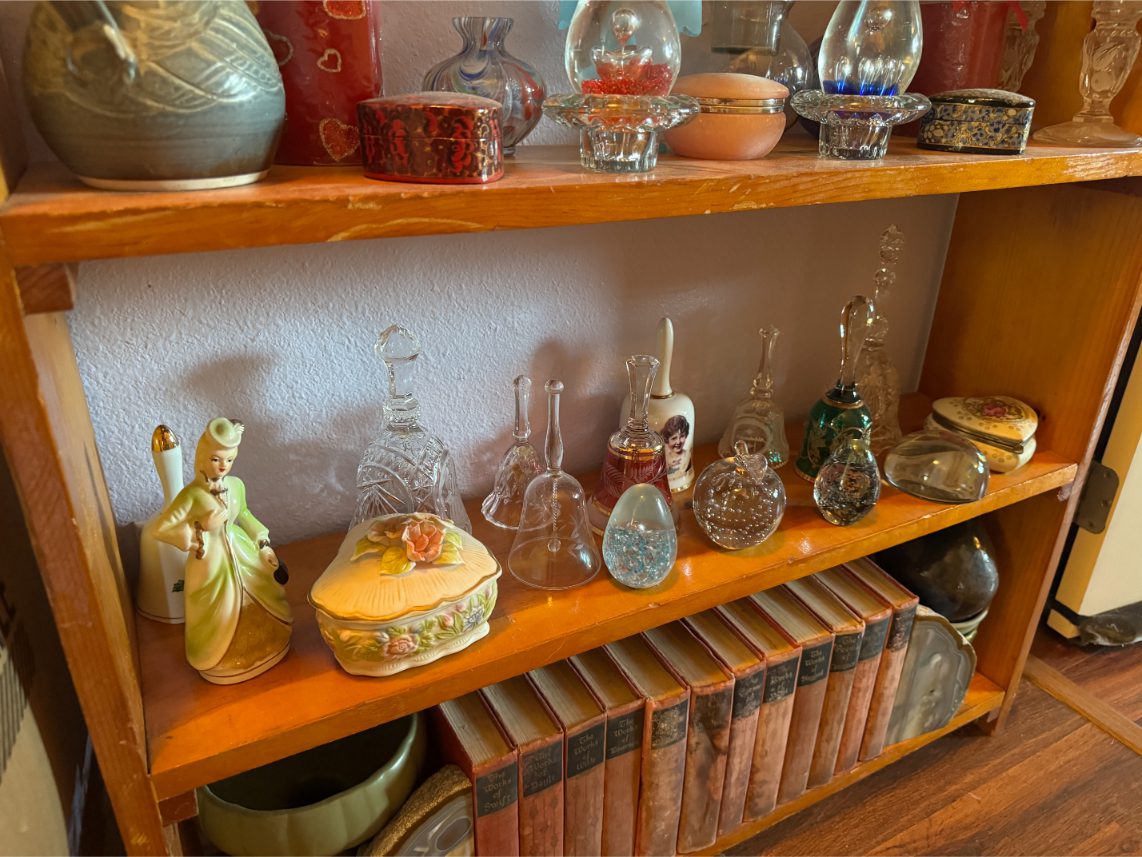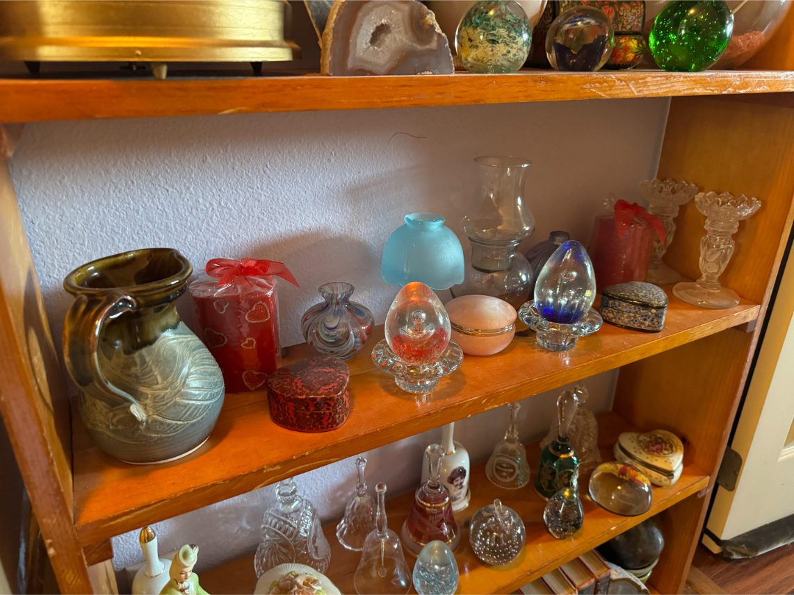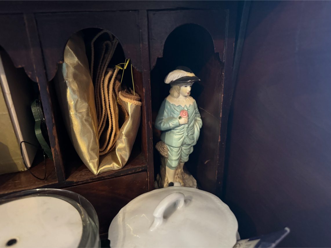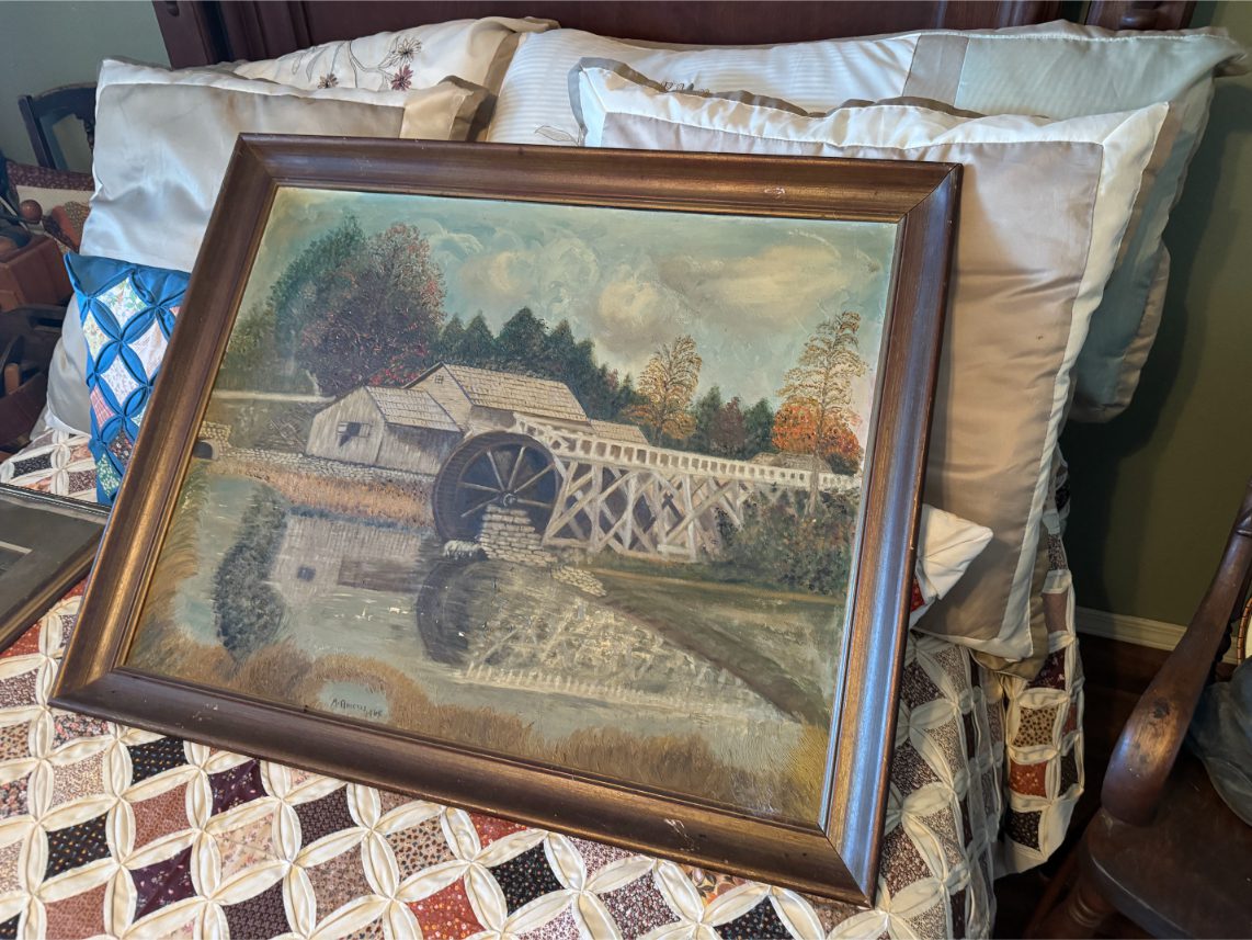 Antiques/Collectibles: Wooden Rocking Horse – Victorian Balloon Back Walnut Chair – Figurines – Arm Chair – Marble-Top Coffee Table – Tiger Oak China Hutch – Mahogany China Hutch – Victorian Children’s Horse Cycle – Victrola – Victorian Sofa – Metal Figurine Lamp – Bird Figurines – Porcelain Umbrella Stands – Pottery – Walnut Parlor Chair – Victorian Side Chairs – Vanity – Desk W/ Marble Bench – Hurricane Lamp – Audiotronics Record Player – Waltham Grandfather Clock – Cast Iron Piano Stool – Trunks – Crib – Wardrobe – Woodstock Typewriter – Treadle Sewing Machine – Chest of Drawers – Kerosine Lamps – Bronze Table Clock – Mt. Gayler Train Schedule Sign – Boston Mountain Resort Assn. Sign – Mt. Gayler Tower Pennant