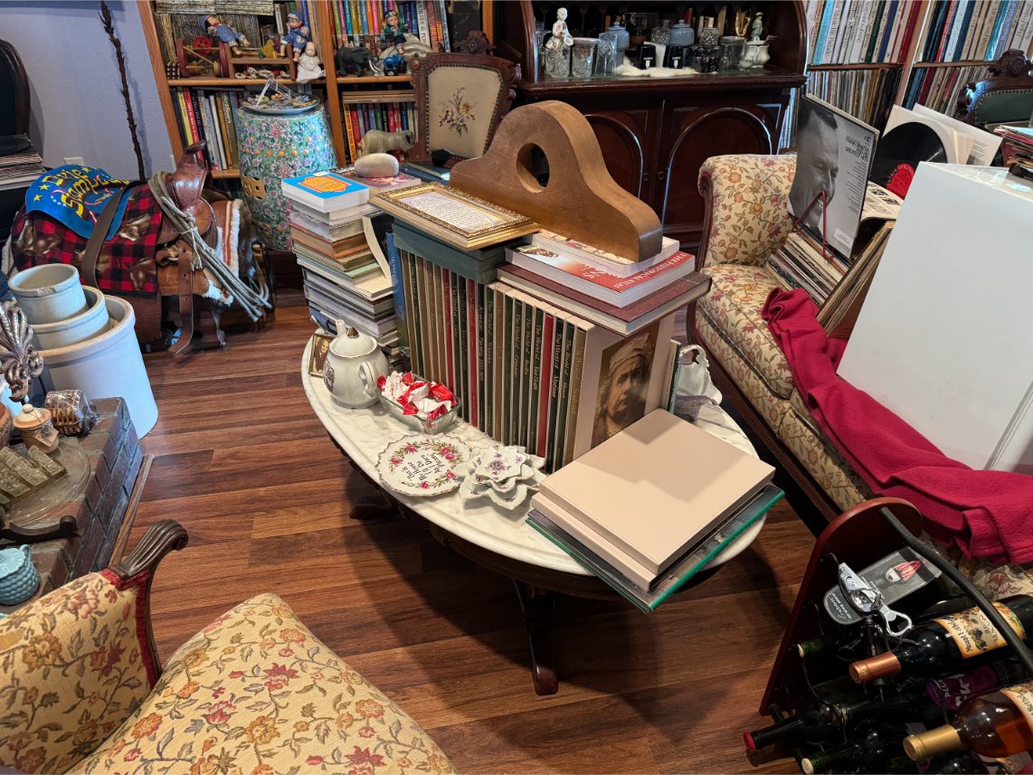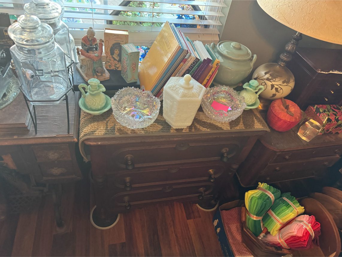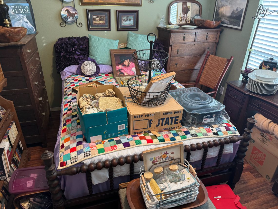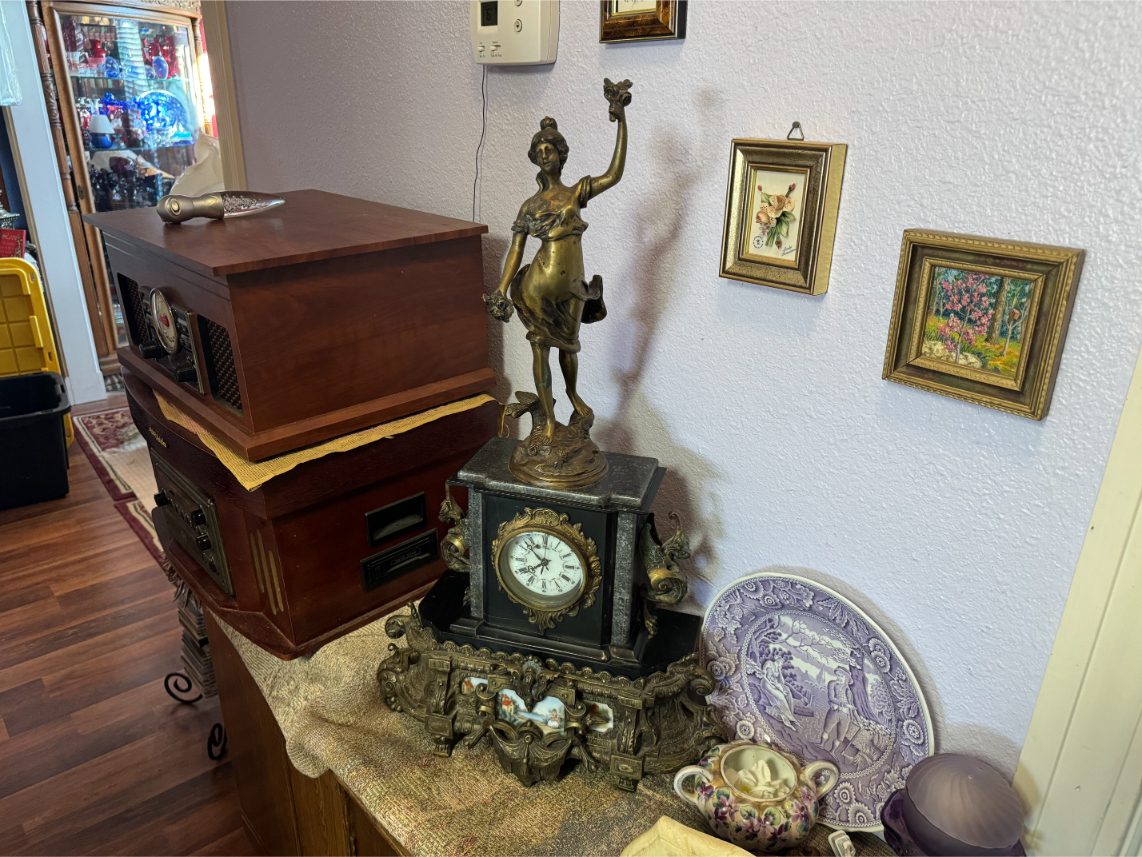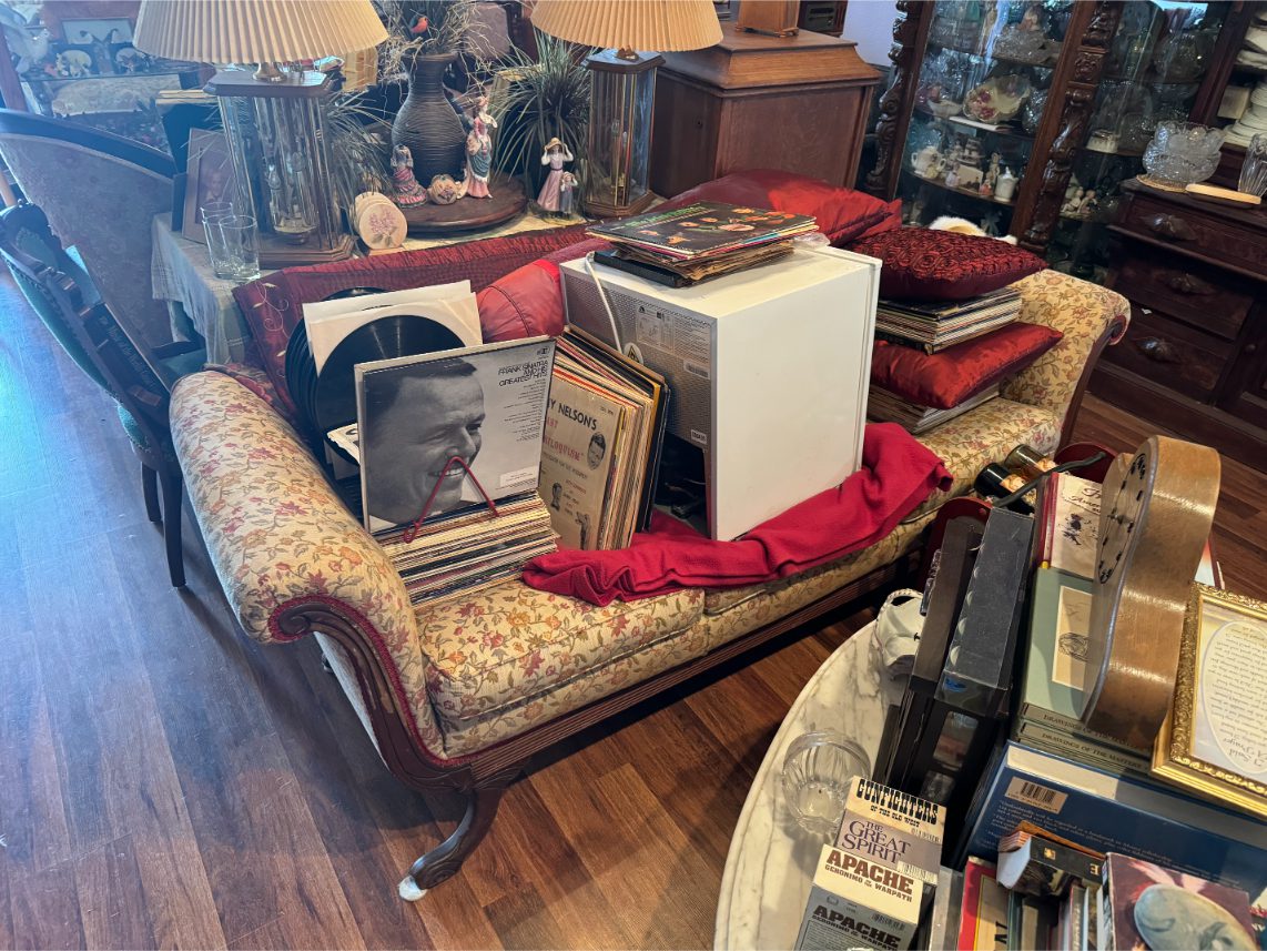 And: 1,000s of Records – Crocks – Photos – Paintings – Toys – Budweiser Beer Tray – Record Player – Mirrors – Tapestries – Shoes – Pursers – Costume Jewelry – Clothes – Cast Iron CookwareÂ