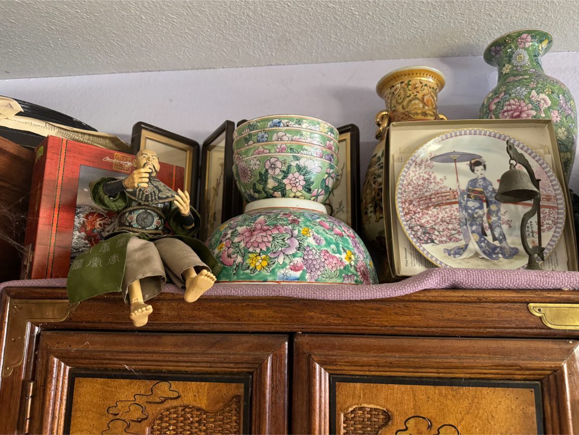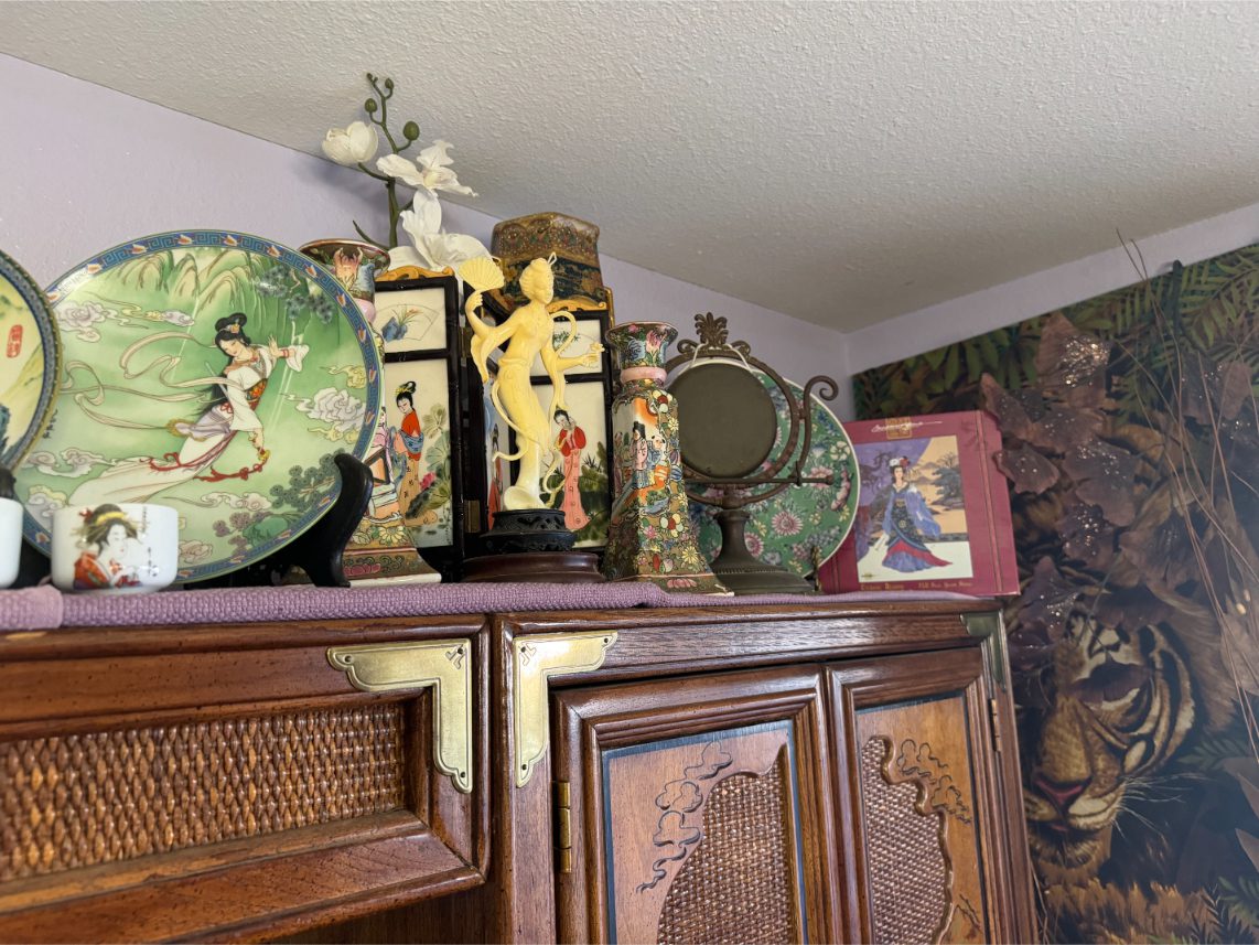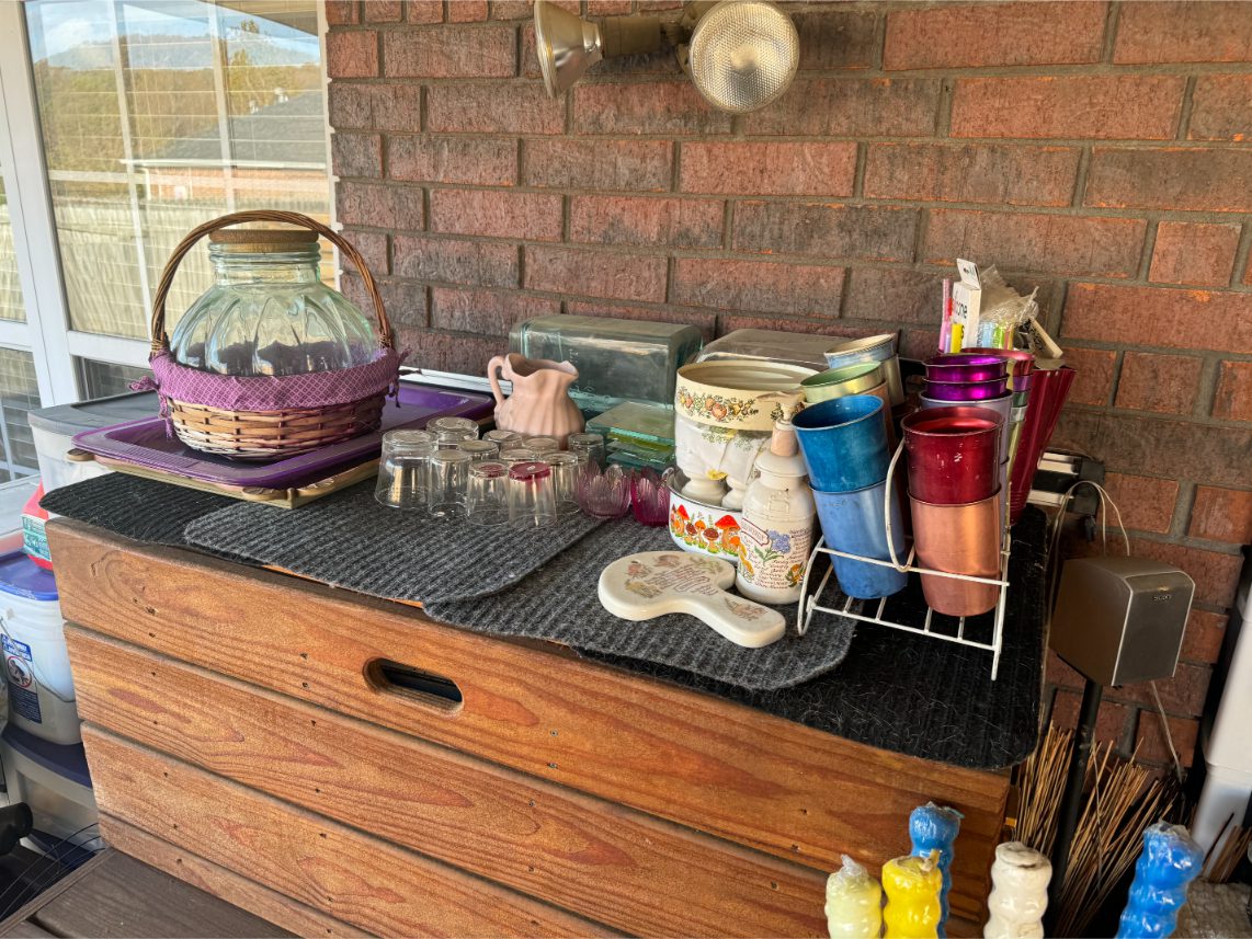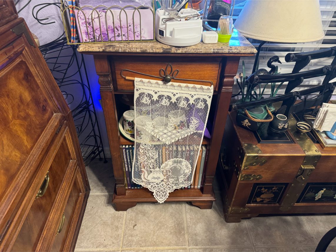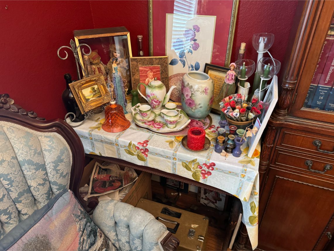 And: 1,000s of Records – Crocks – Photos – Paintings – Toys – Budweiser Beer Tray – Record Player – Mirrors – Tapestries – Shoes – Pursers – Costume Jewelry – Clothes – Cast Iron CookwareÂ