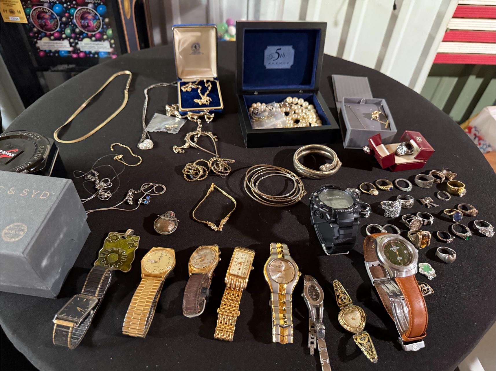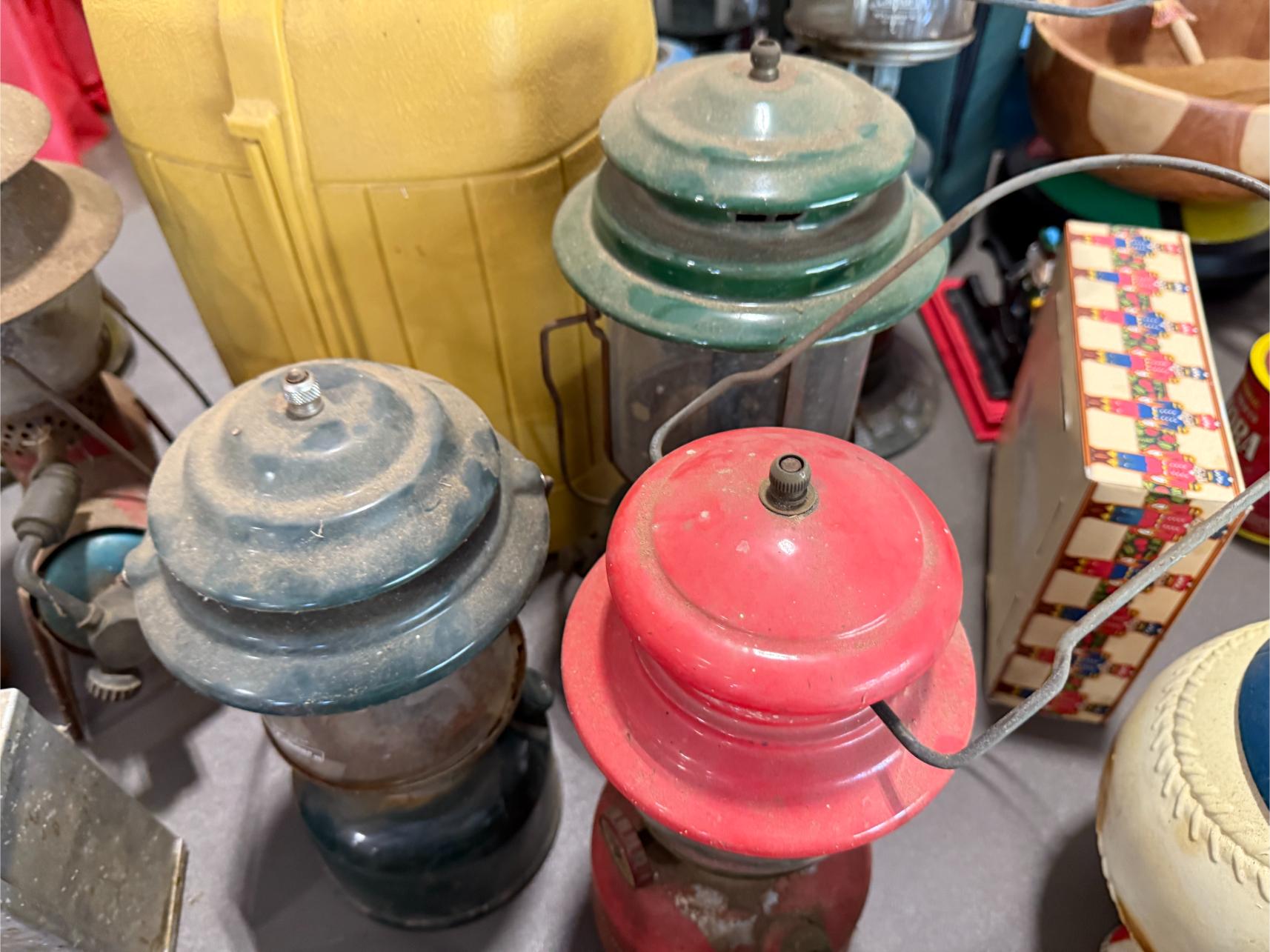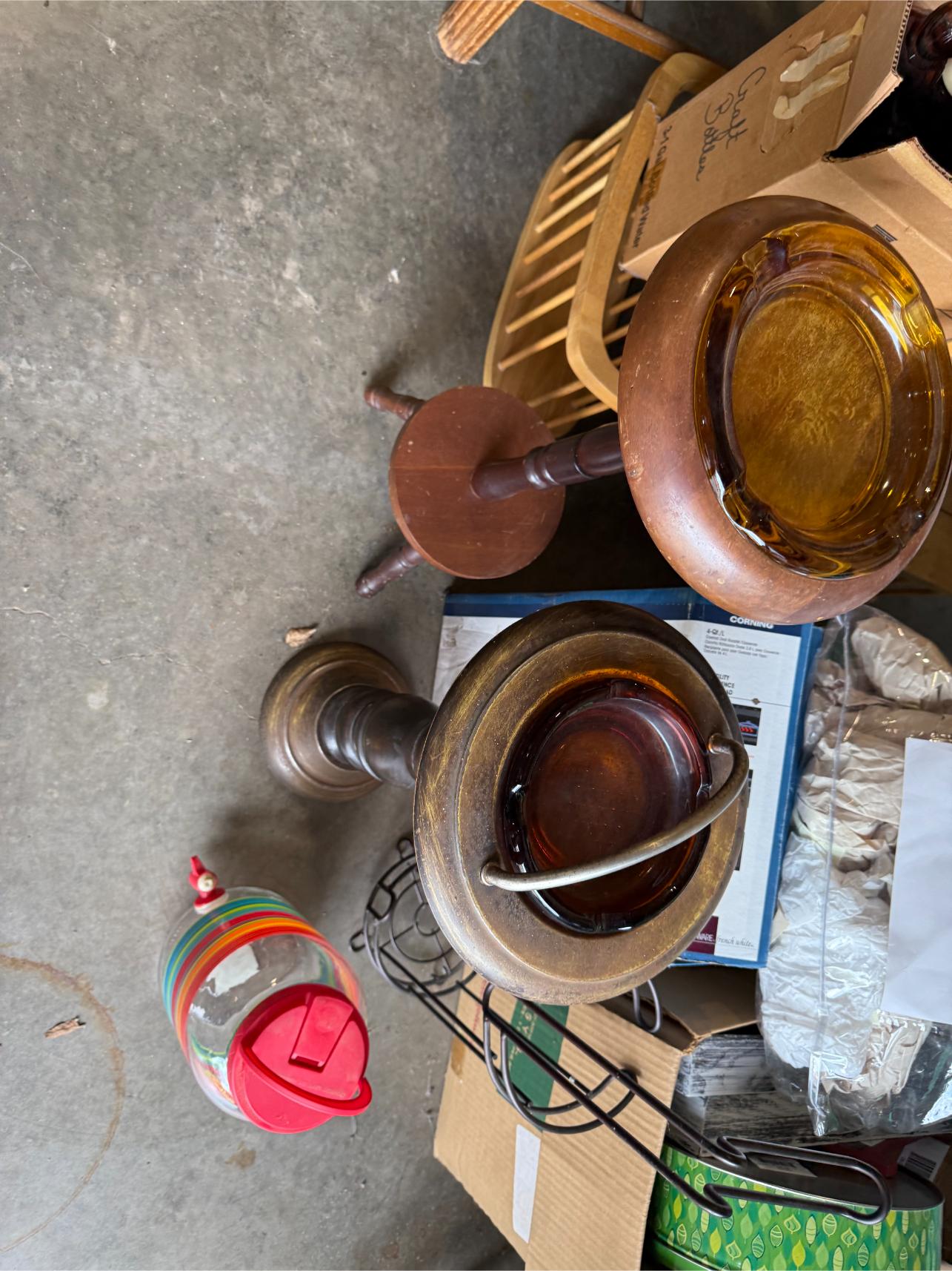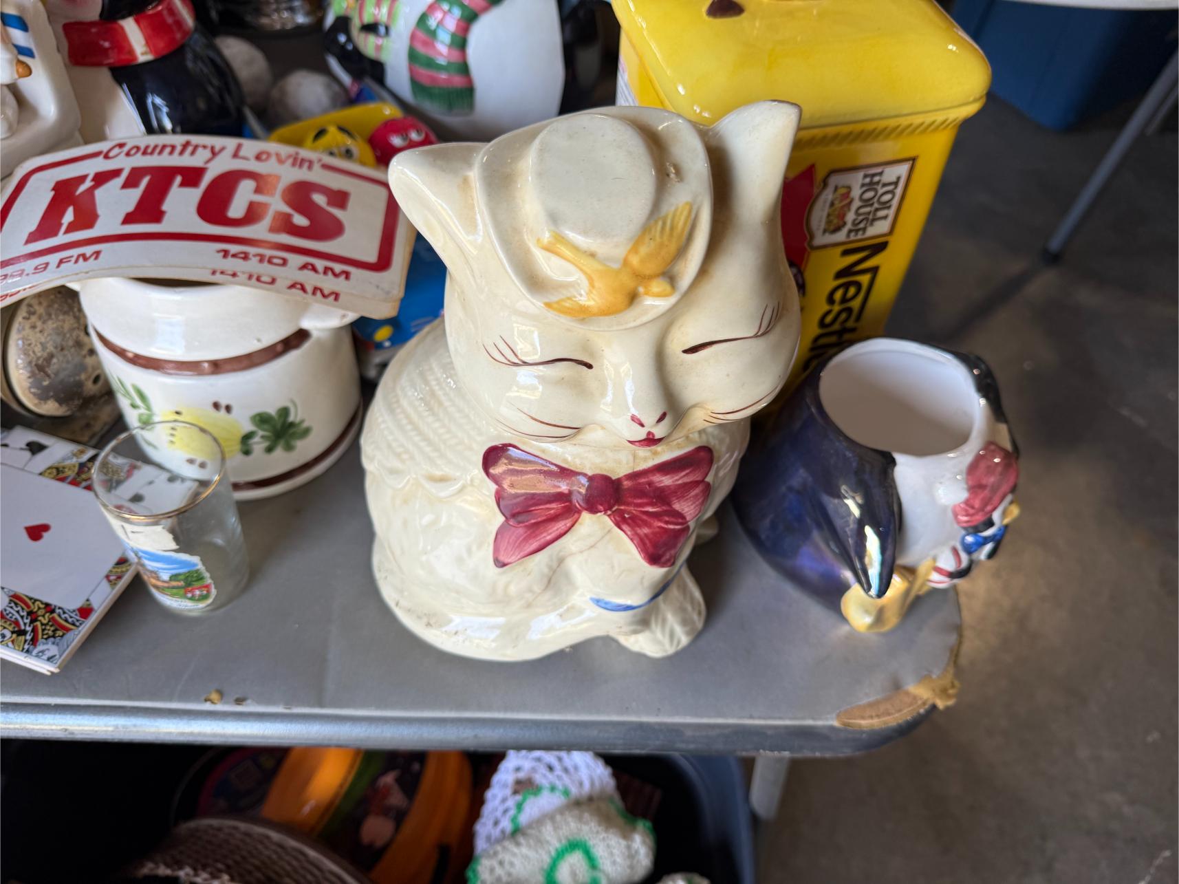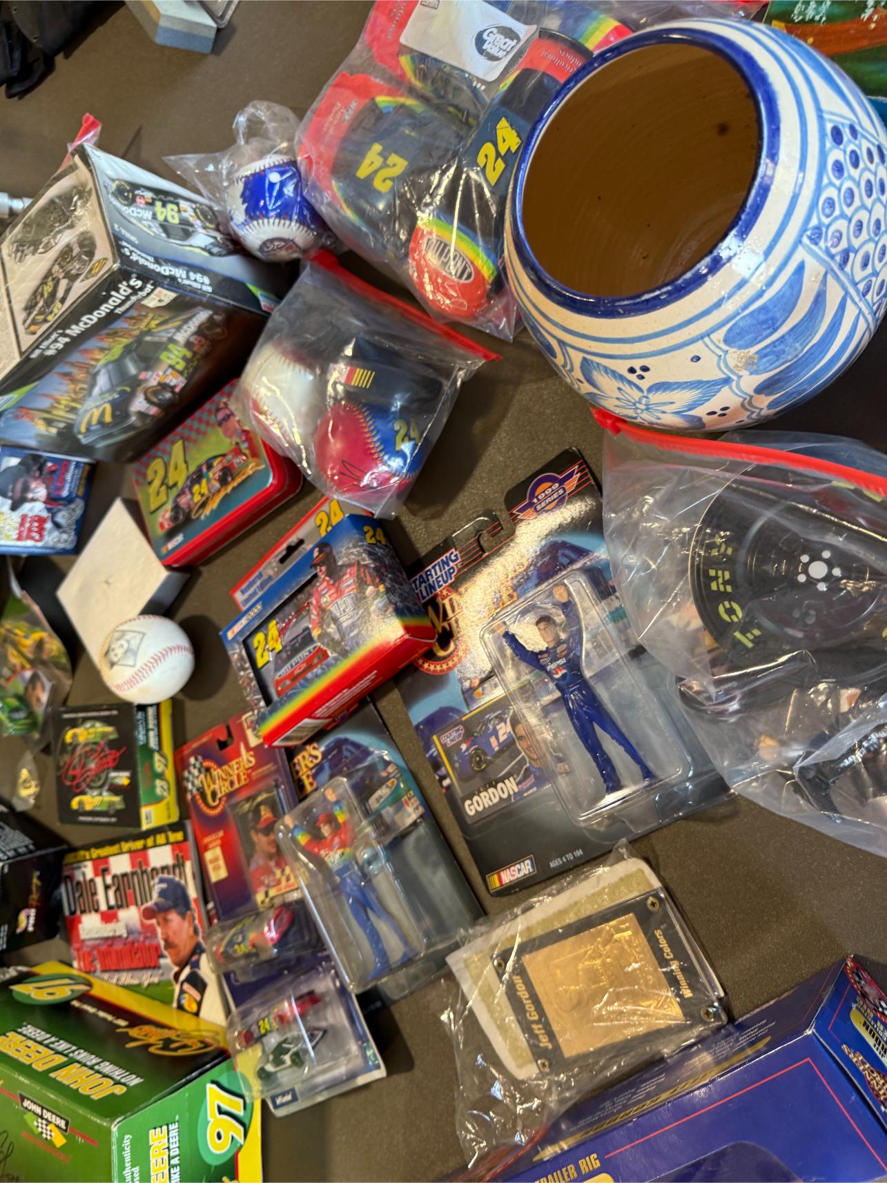Collectibles & Household: Trumpet – Cookie Jars – Die Cast Cars – Kay-ee Sew Master Toy Sewing Machine – Air Strike RC Planes – Pyrex Mixing Bowls – Misc Glassware – Mantle Clock – Smoke Stands – John Deere Collectibles – M&M Collectibles – Old Fishing Lures – Zippo Lighters – Iron Skillet – Pocket Watches – Jewelry – Silverplated Flatware – Iron Wheels – Small Appliances – Corningware – Toys – Misc Electronics