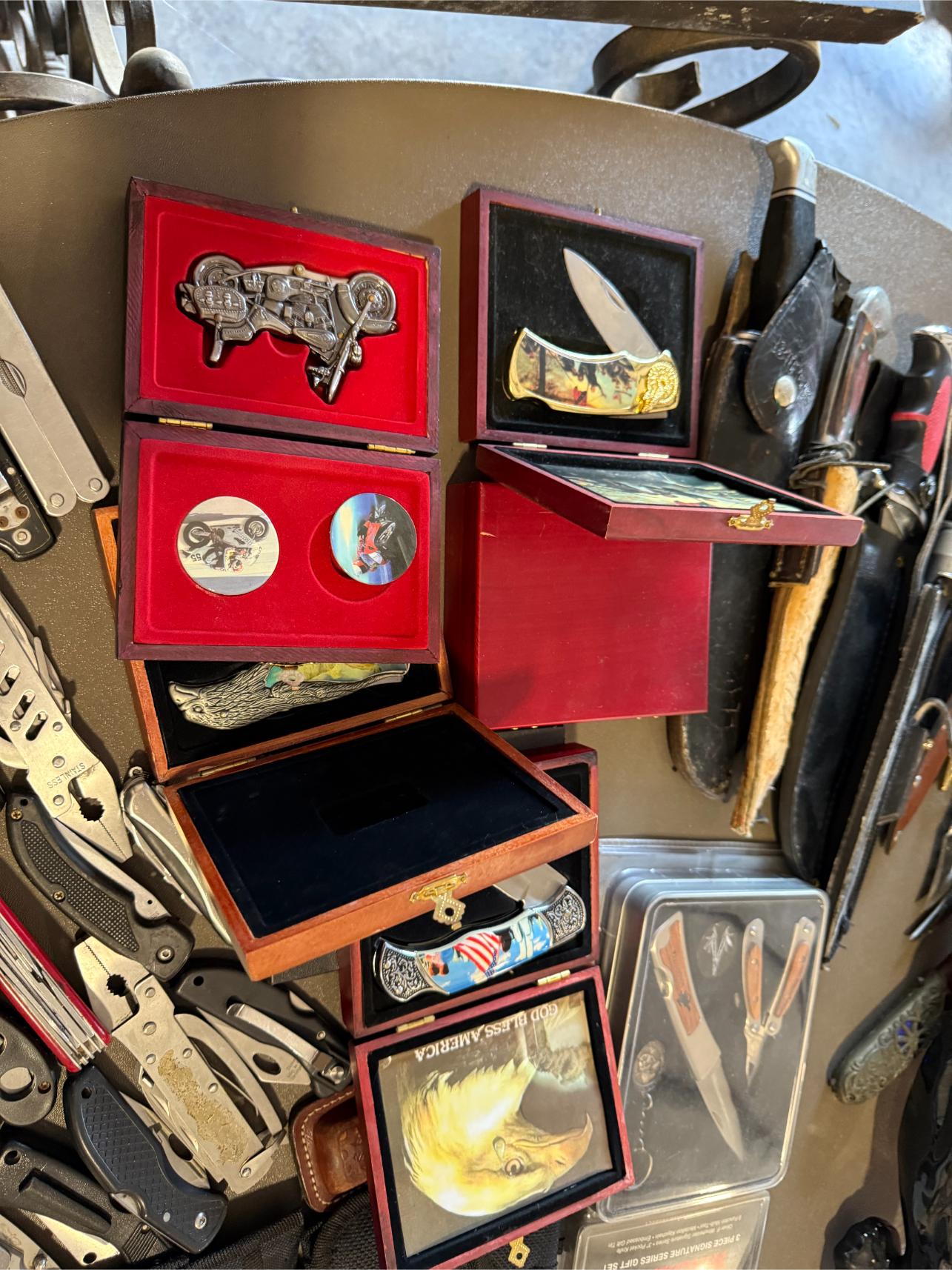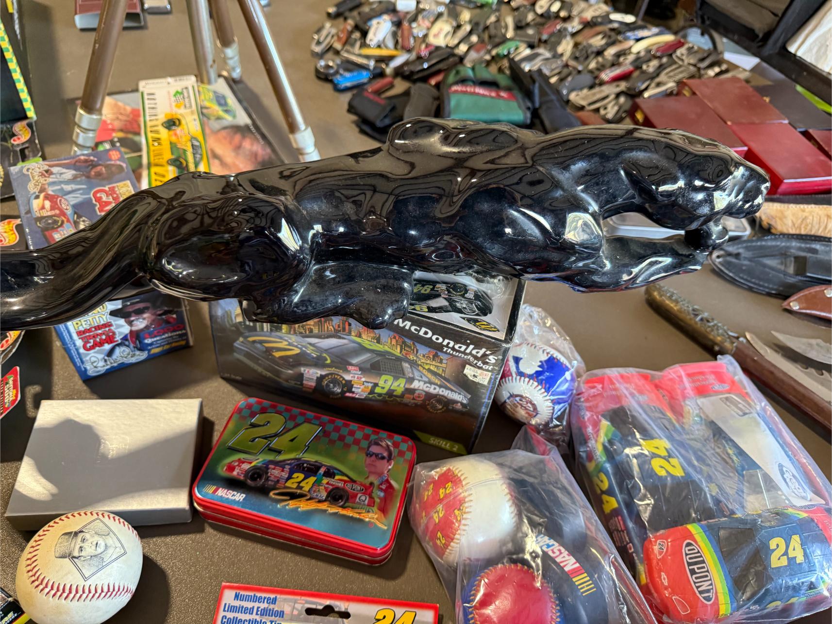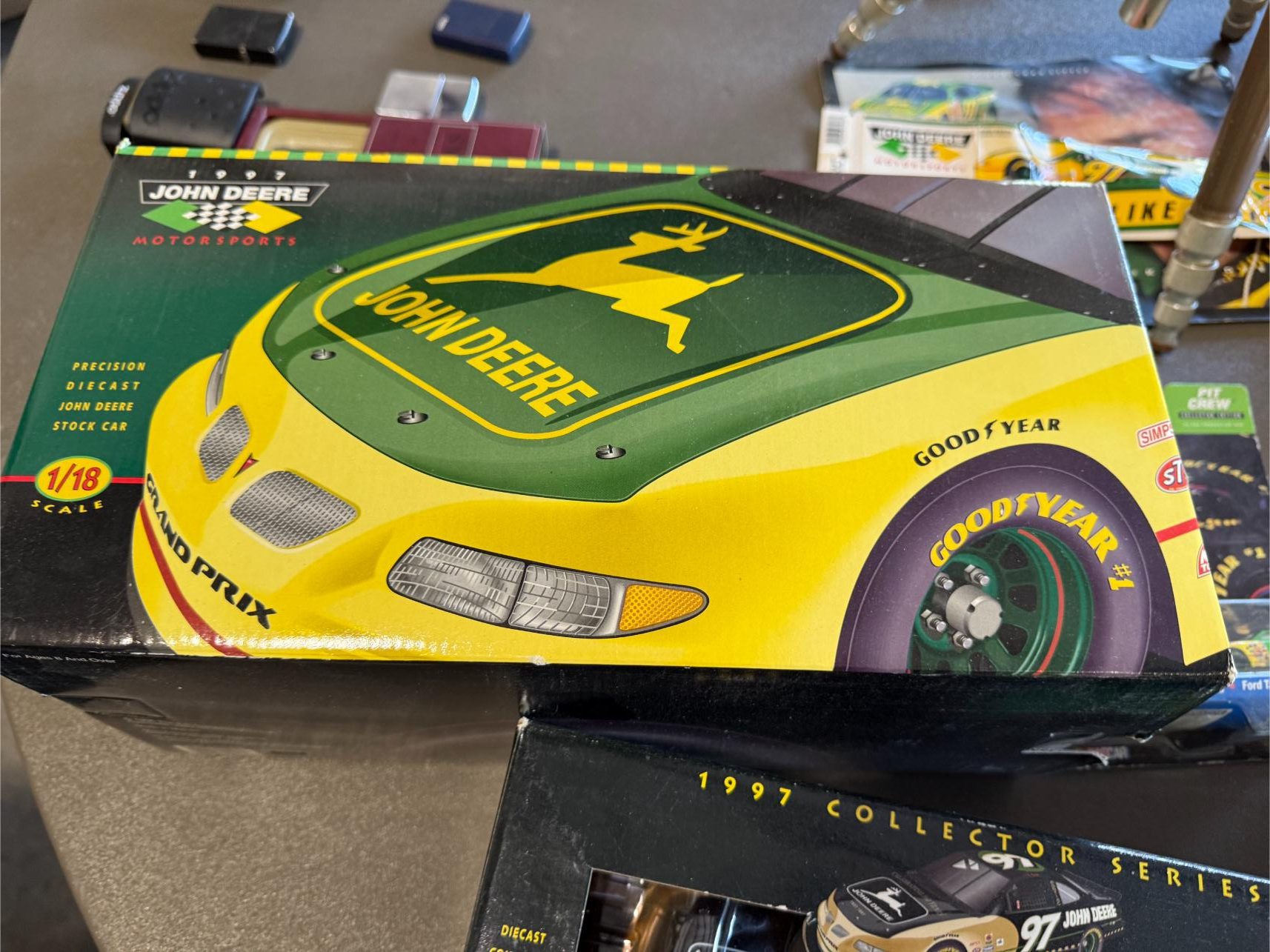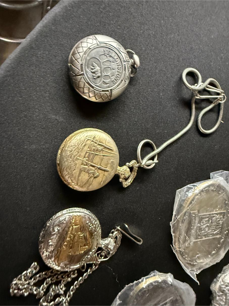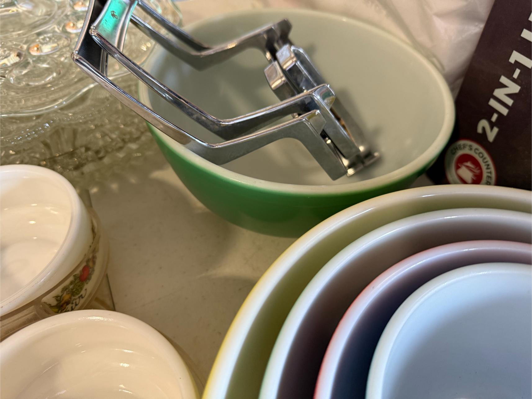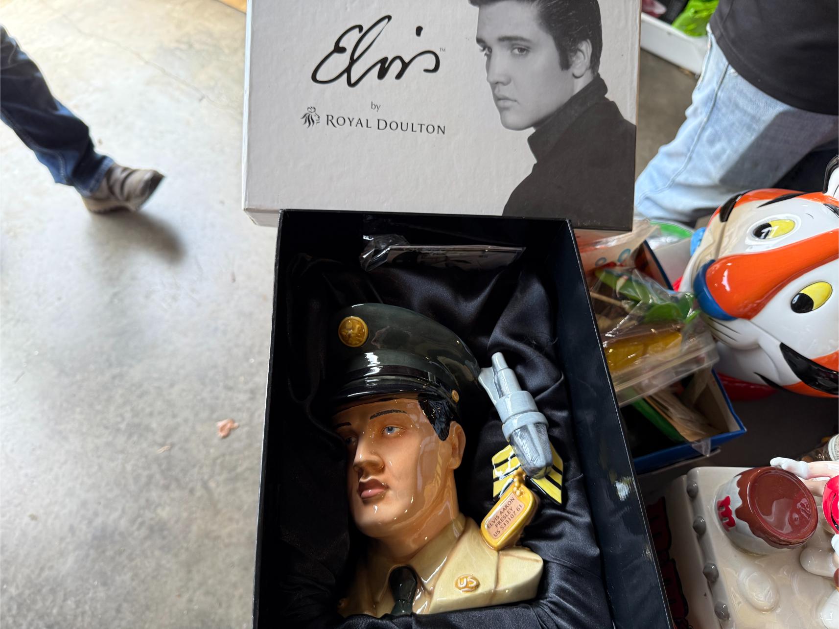 Collectibles & Household: Trumpet – Cookie Jars – Die Cast Cars – Kay-ee Sew Master Toy Sewing Machine – Air Strike RC Planes – Pyrex Mixing Bowls – Misc Glassware – Mantle Clock – Smoke Stands – John Deere Collectibles – M&M Collectibles – Old Fishing Lures – Zippo Lighters – Iron Skillet – Pocket Watches – Jewelry – Silverplated Flatware – Iron Wheels – Small Appliances – Corningware – Toys – Misc Electronics