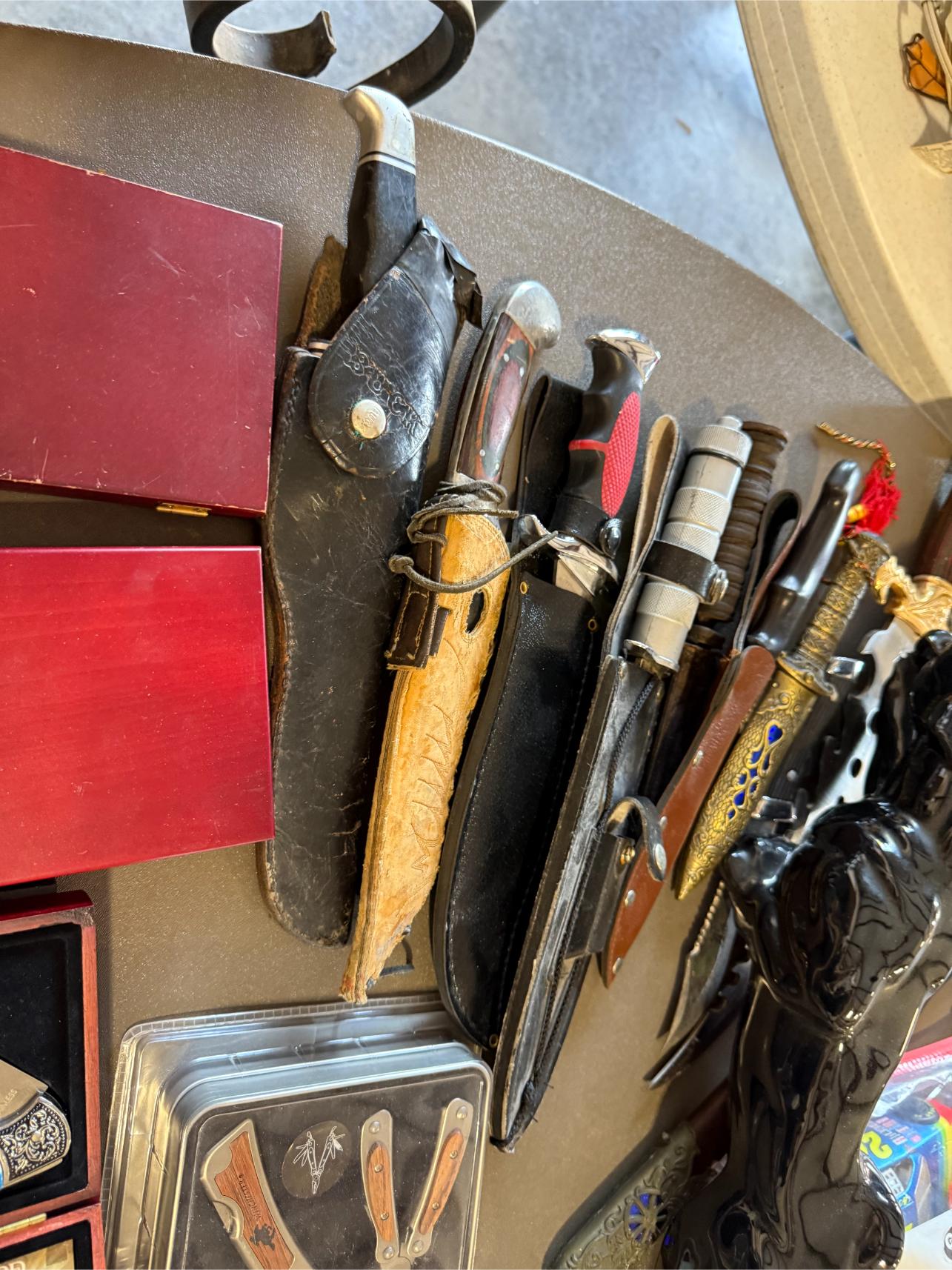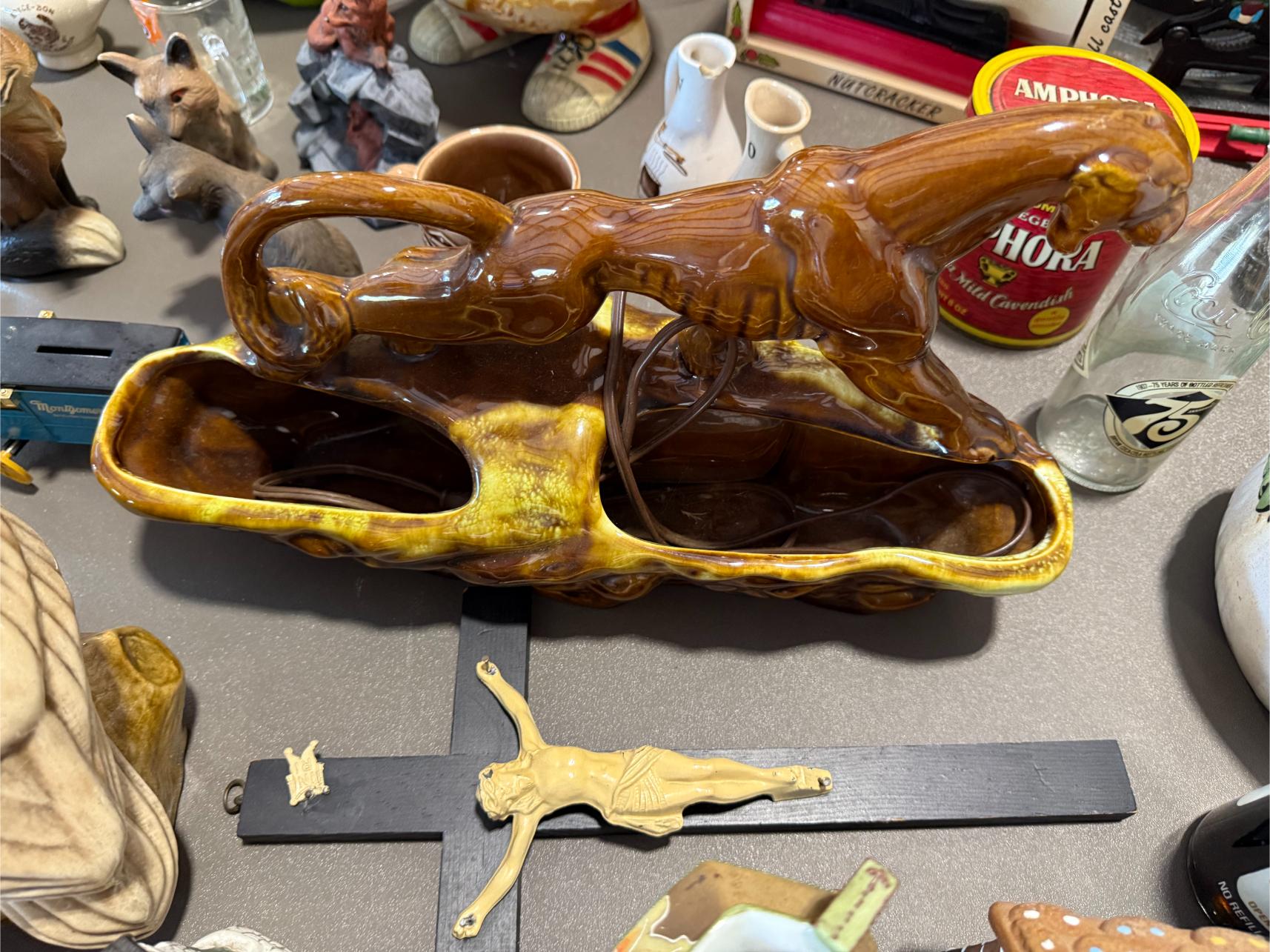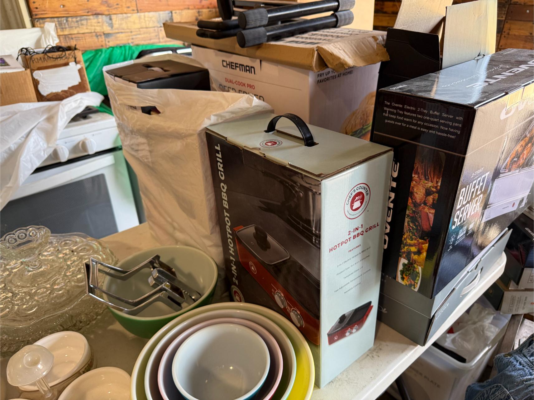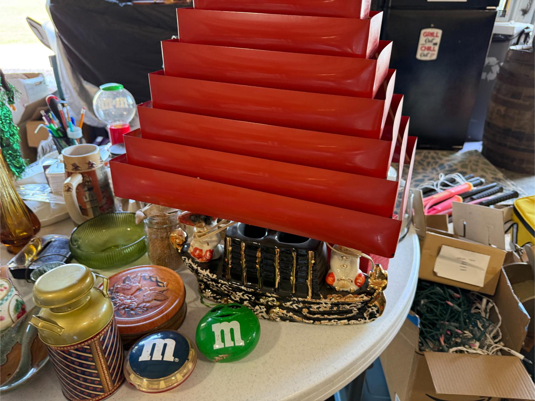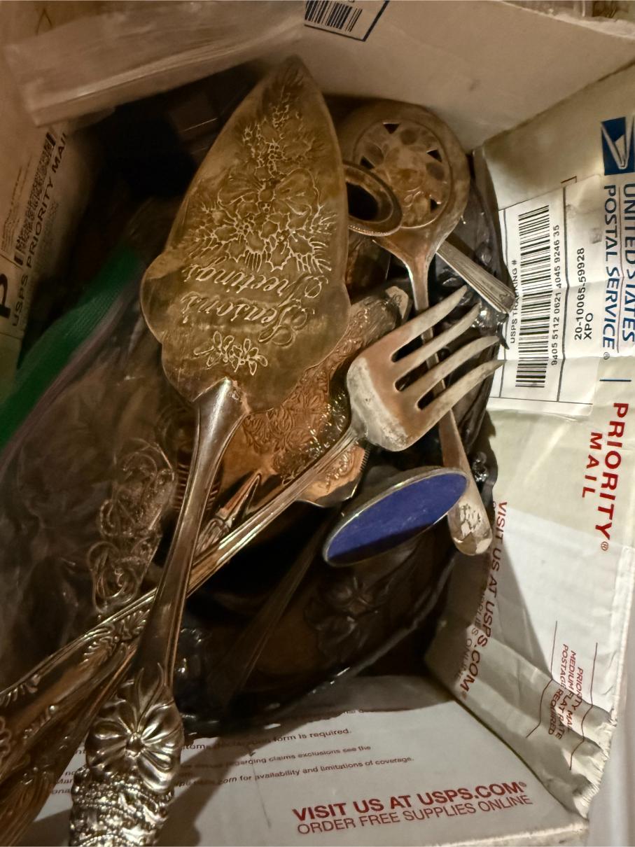 Collectibles & Household: Trumpet – Cookie Jars – Die Cast Cars – Kay-ee Sew Master Toy Sewing Machine – Air Strike RC Planes – Pyrex Mixing Bowls – Misc Glassware – Mantle Clock – Smoke Stands – John Deere Collectibles – M&M Collectibles – Old Fishing Lures – Zippo Lighters – Iron Skillet – Pocket Watches – Jewelry – Silverplated Flatware – Iron Wheels – Small Appliances – Corningware – Toys – Misc Electronics
