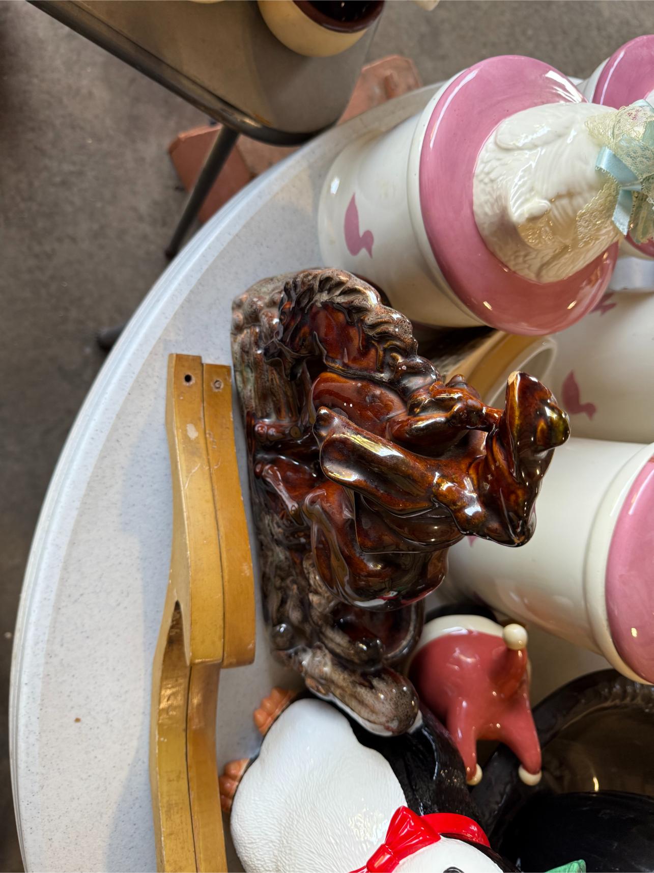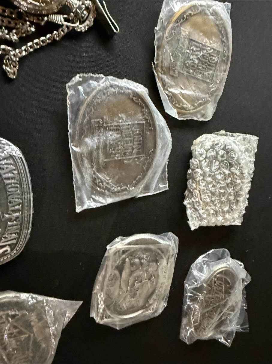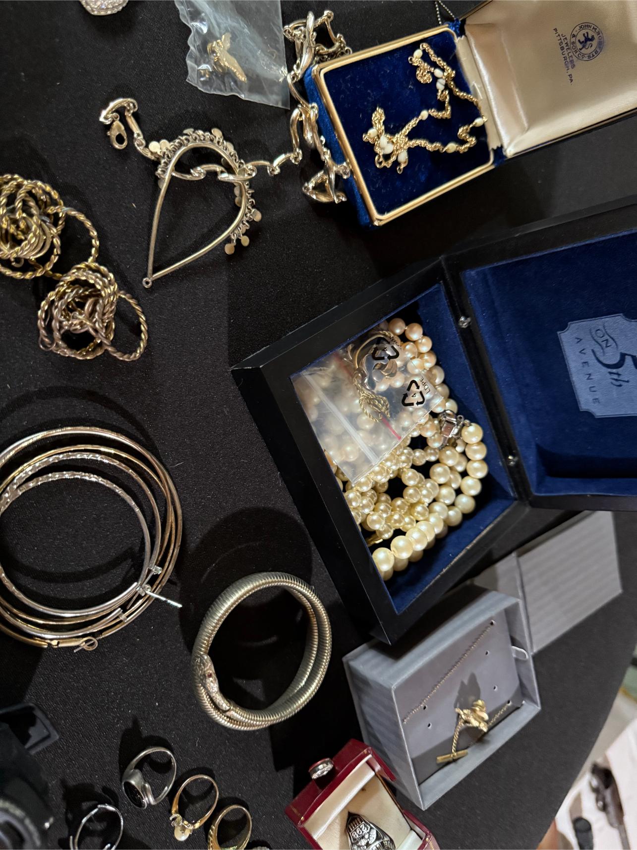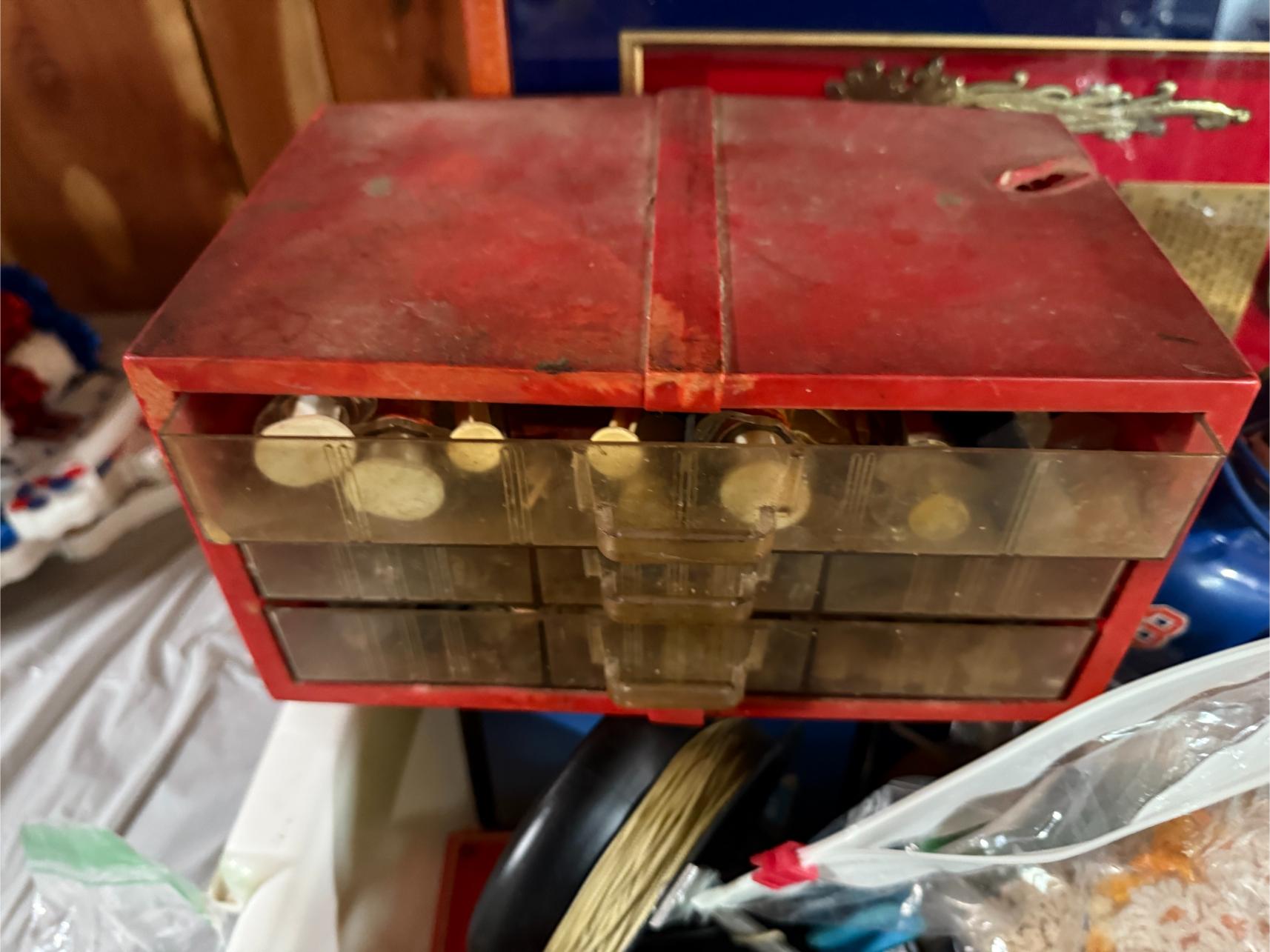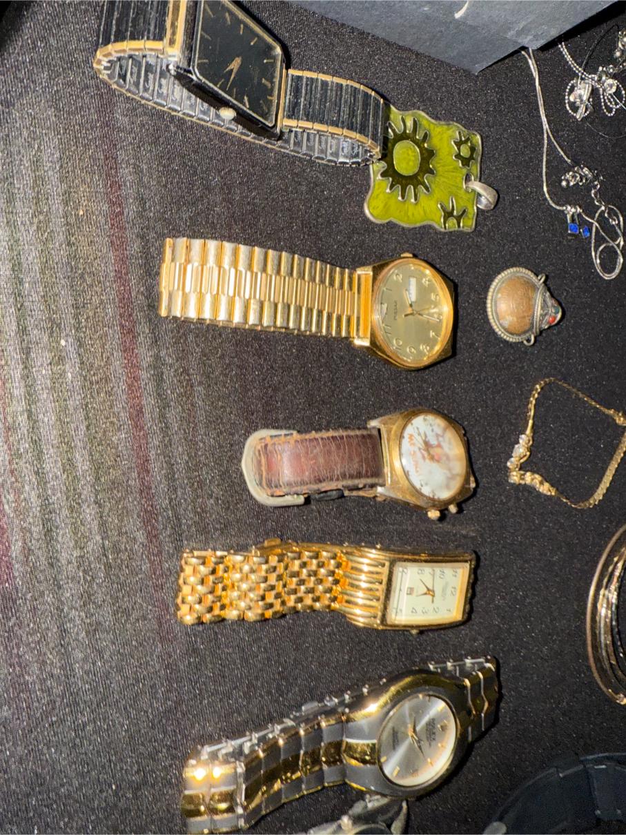 Collectibles & Household: Trumpet – Cookie Jars – Die Cast Cars – Kay-ee Sew Master Toy Sewing Machine – Air Strike RC Planes – Pyrex Mixing Bowls – Misc Glassware – Mantle Clock – Smoke Stands – John Deere Collectibles – M&M Collectibles – Old Fishing Lures – Zippo Lighters – Iron Skillet – Pocket Watches – Jewelry – Silverplated Flatware – Iron Wheels – Small Appliances – Corningware – Toys – Misc Electronics