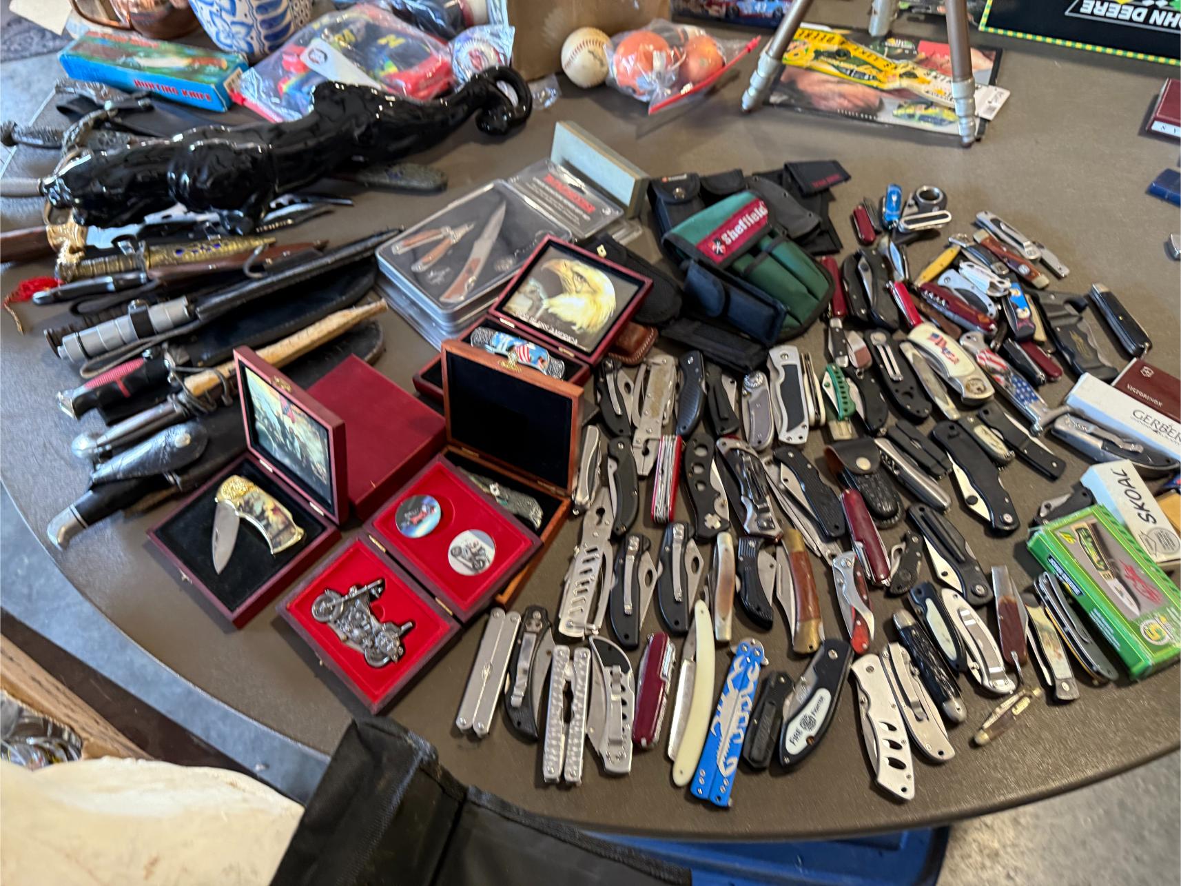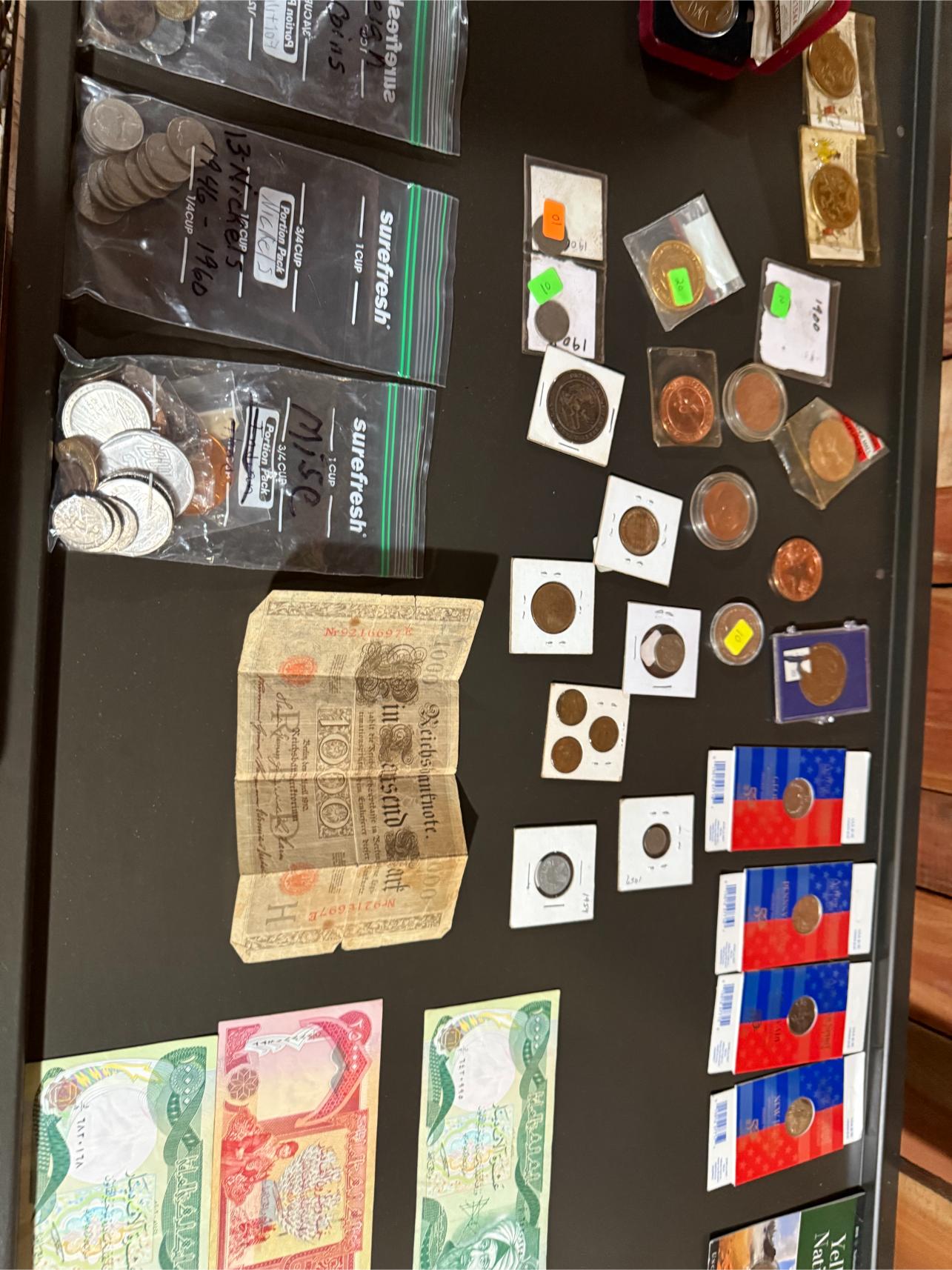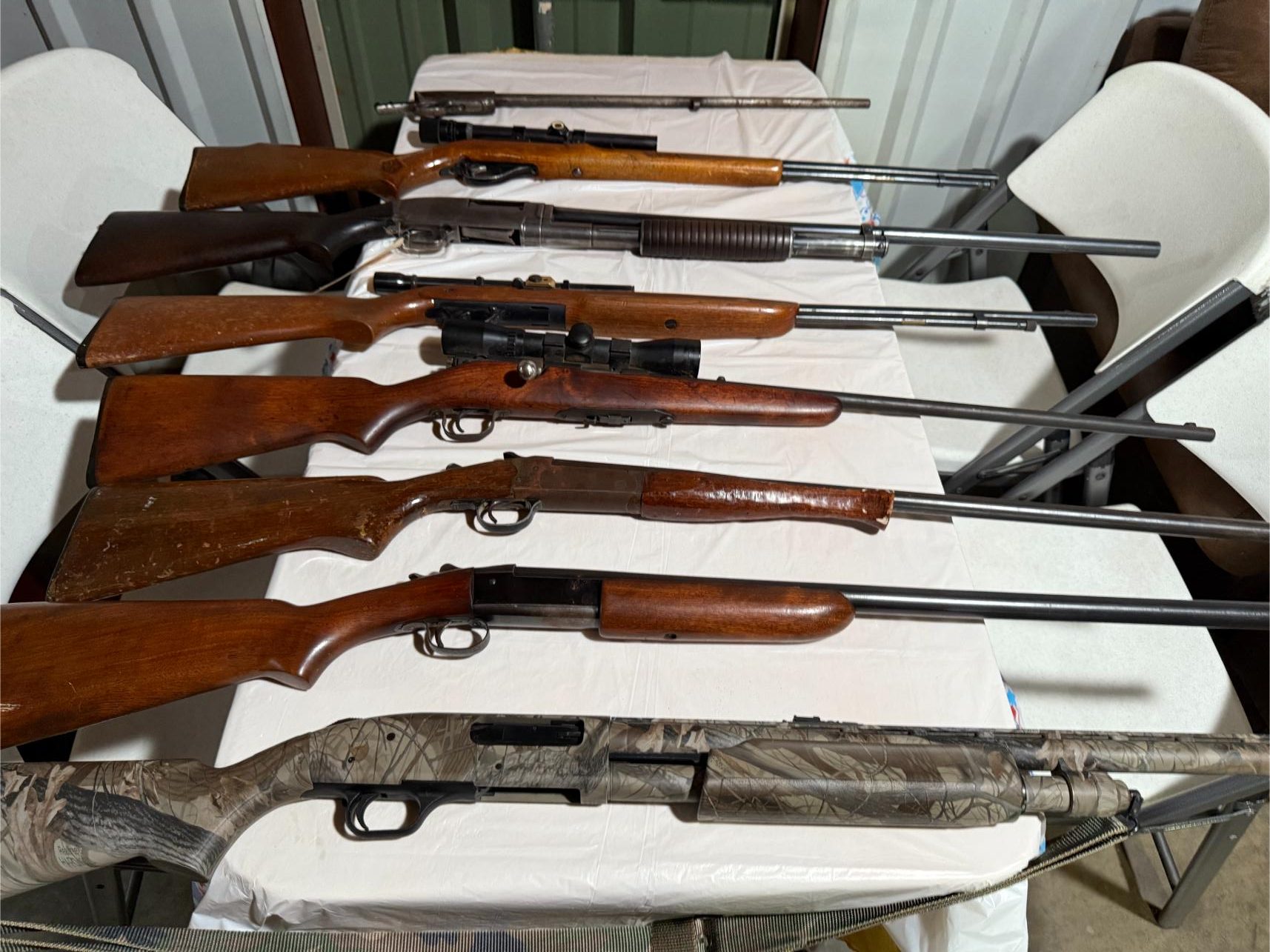 Firearms, etc: Heritage 22 Revolver – Connecticut Valley Arms 50 cal Black Powder – Jennings Pistol – Mossberg Model 835 12 ga – Winchester Model 37 12 ga – Stevens 20 ga – Springfield 22 Model 84 – JC Higgins 22 Model 29 – Winchester 12 ga M12 – Glenfield 22 Model 60 – Remington Model 12 Barrel – Knight 50 cal Black Powder Rifle – Pellet Gun – Norinco AK 47 Drum Mags (75 Rounds) – BI-Pod Stand – Knives & Pocket Knives – Proof & Mint Sets – Foreign Coins & Currency