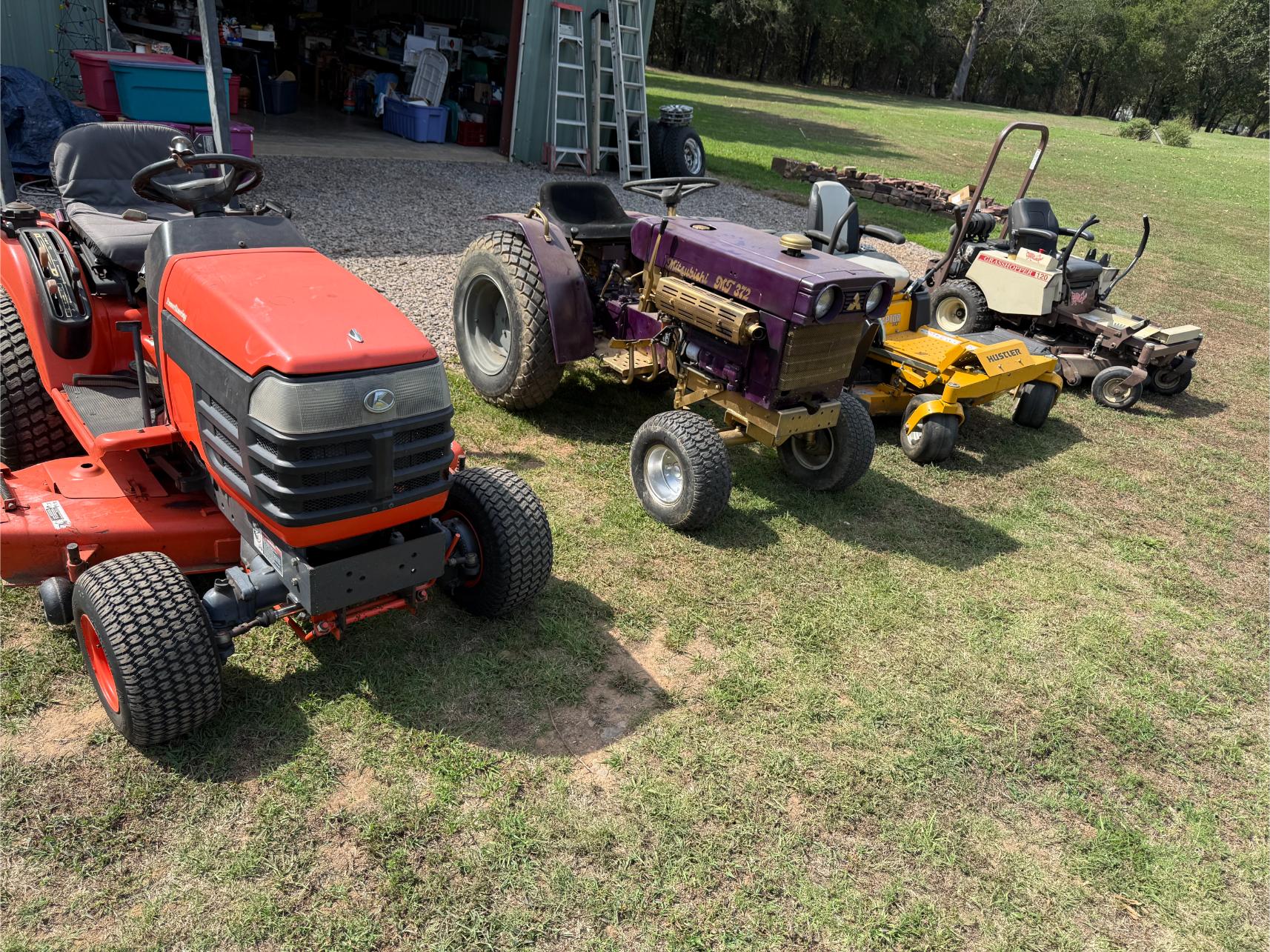 Truck/Tractors/Etc: 1994 Dodge Dakota SLT V6 Pickup – Kubota BX1800 4WD Tractor – Mitsubishi 372 Tractor – Land Pride 5′ Finish Mower – 4′ Brush Hog – Hustler Raptor SD Zero Turn Mower – Grasshopper 120 Zero Turn Mower – Troy Bilt XP 46″ Riding Mower – 2000 Yamaha Wave Runner 800 & Trailer – Till-O-Matic Tiller – 1995 Honda Elite 80 (3,863 miles) – Roadmaster Bike w/Motor