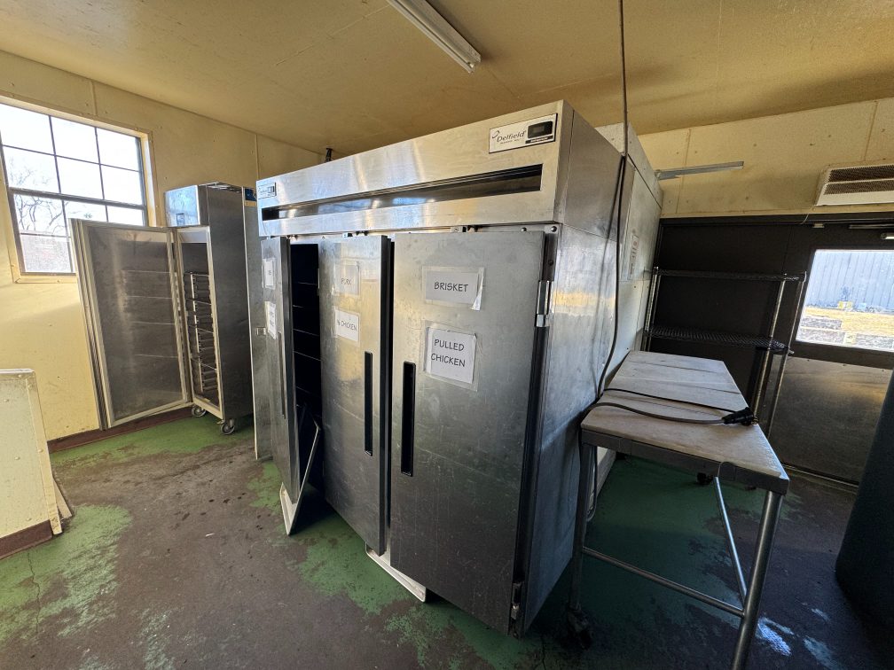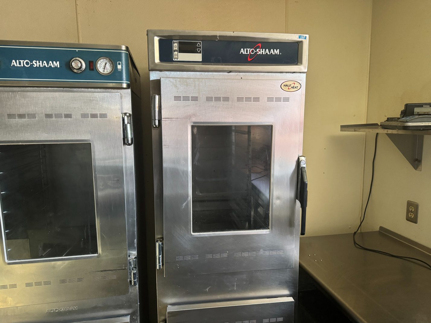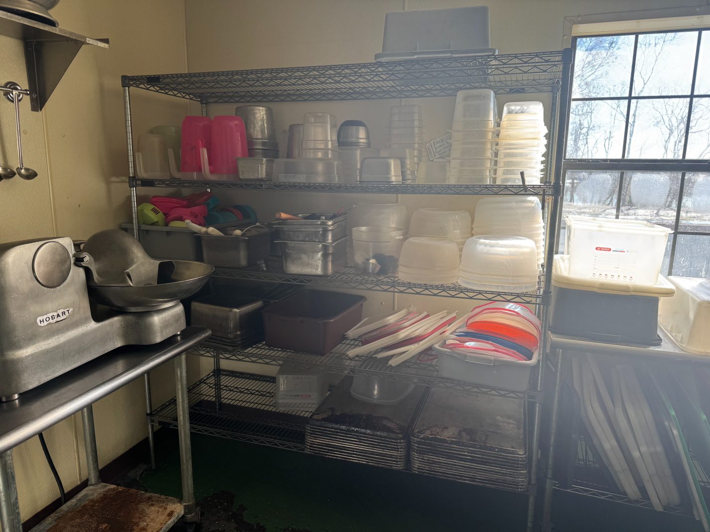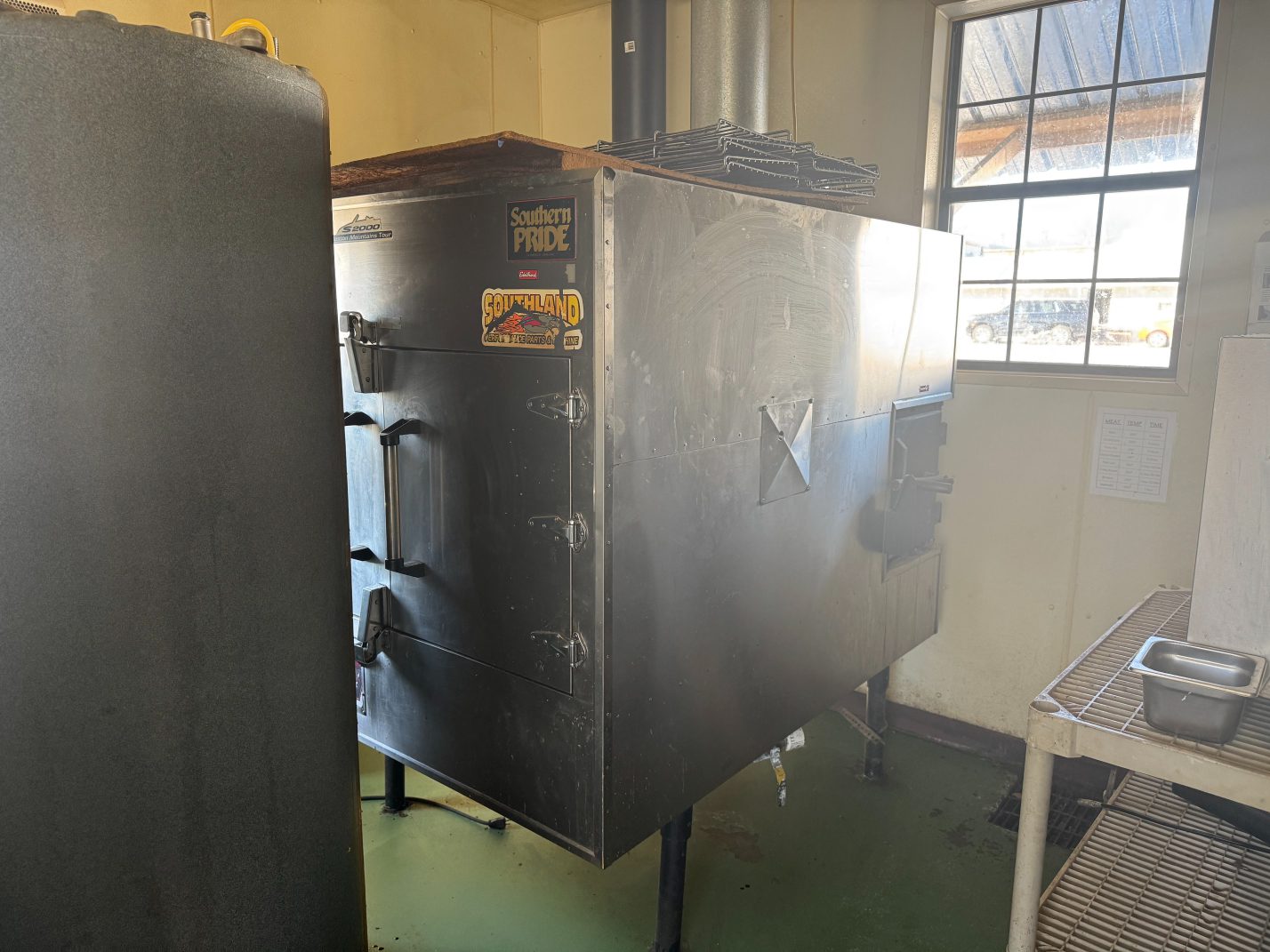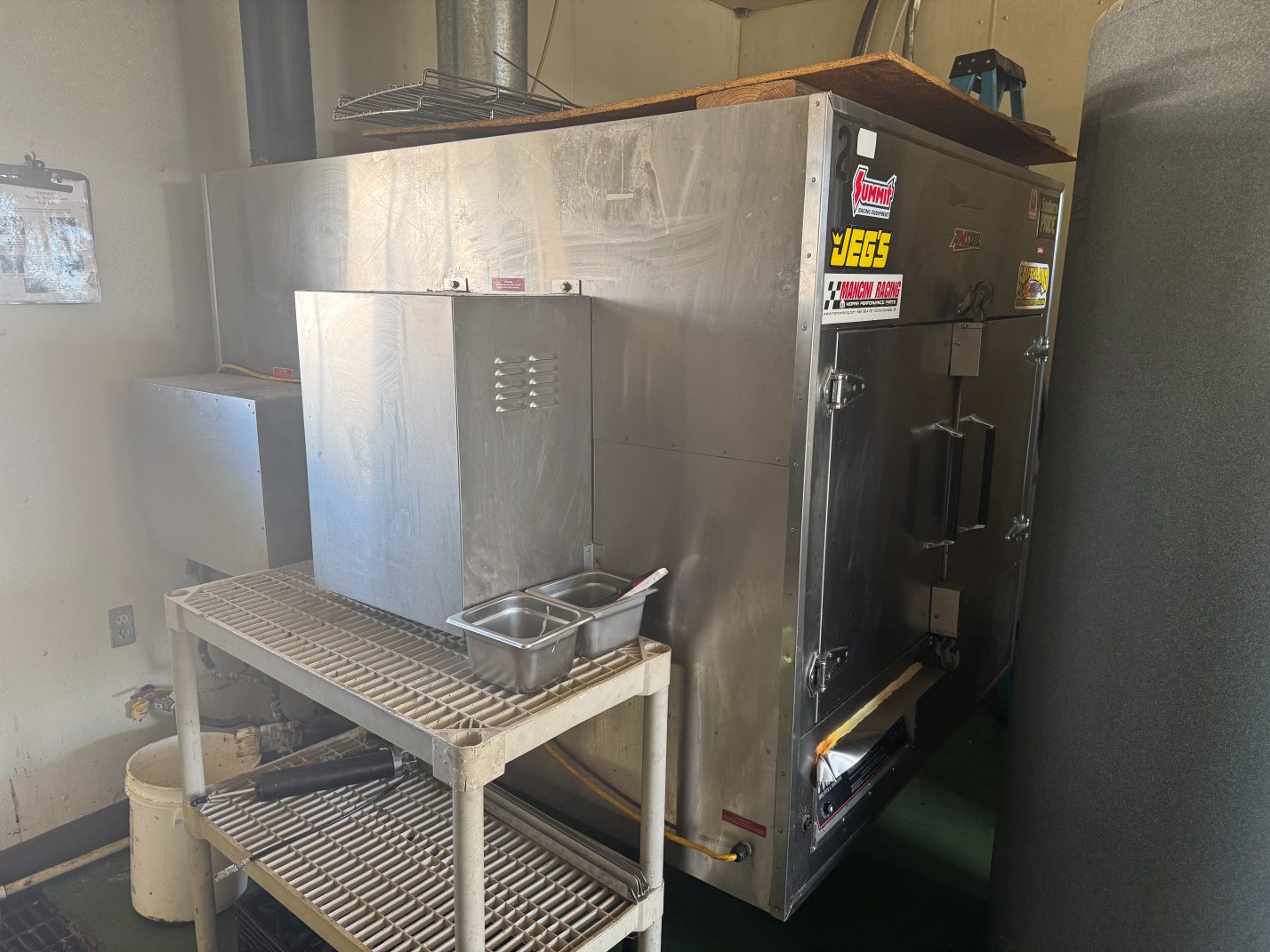 Restaurant Equipment: (2) 3’x5′ Southern Pride Gas BBQ Smokers Model 5K-500-SLSE – Vulcan 6-Burner Gas Stove w/Griddle – American Range 2-Burner Gas Stove w/Griddle – Southbend Convection Oven – Legion Insulated Kettle – Delfield SS Reach-in Cooler – (3) True 2-Door Coolers – Delfield 3-Door Cooler – Atosa 2-Door SS Under-Counter Cooler – (2) Atosa 2-Door Freezers – True 2-Door Freezer – Kolpak 6’x6’x7’6″ Walk-in Cooler or Freezer – Kolpak 8’x6’x7½’ Walk-in Cooler or Freezer – (2) Atosa Refrigerated Prep Bars – 4-Vat Steam Table – (2) Double Basket Gas Deep Fryers – (3) Alto-Shaam Warmers – Hafco Warmer – Electrolux Warmer – APW Food Warmers – SS Roll Around Bread Cart – Hobart Meat Grinder Model 81810 – Hobart Meat Slicer – (2) Manitowac Ice Machines w/Bins – (2) Ice Bins – Astoria Sabrina Espresso Machine – Bunn Coffee Mill & Maker – Compak Coffee Grinder – Menumaster Jet Wave – Monster Cooler – 2′ SS Table w/Drawer – 2′ SS Table – (2) 3′ SS Table – (4) 4′ SS Tables – 5′ SS Table – (4) 6′ SS Tables – 9′ SS Table – SS Cart – Dunnage Racks – SS Racks & Shelves – Carlisle Insulated Food Carriers – (3) Microwaves – Bus Trays & Carts – Scales – Knife Sharpener – Pots & Pans – Pitchers, Dishes, Plates, Cups, Utensils, S&P Shakers, etc – Appx 25 Tables – Appx 125 Chairs – (8) Cedar Booths – Hostess Stand – Take-out Containers