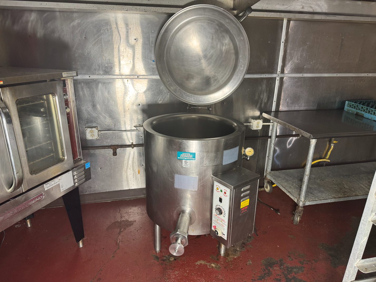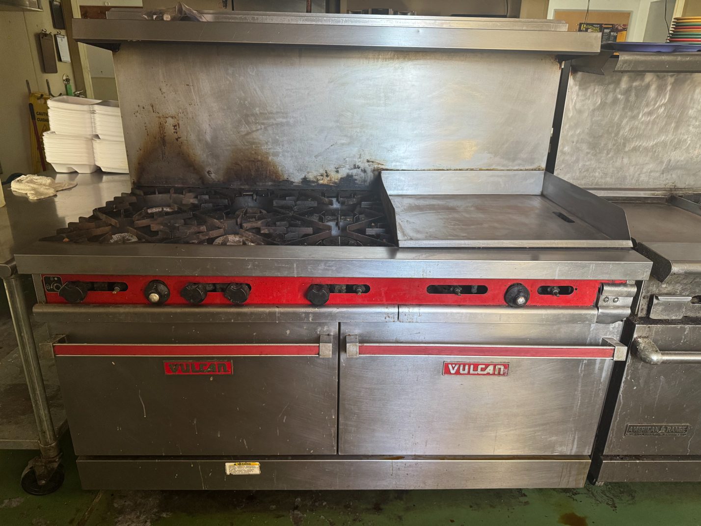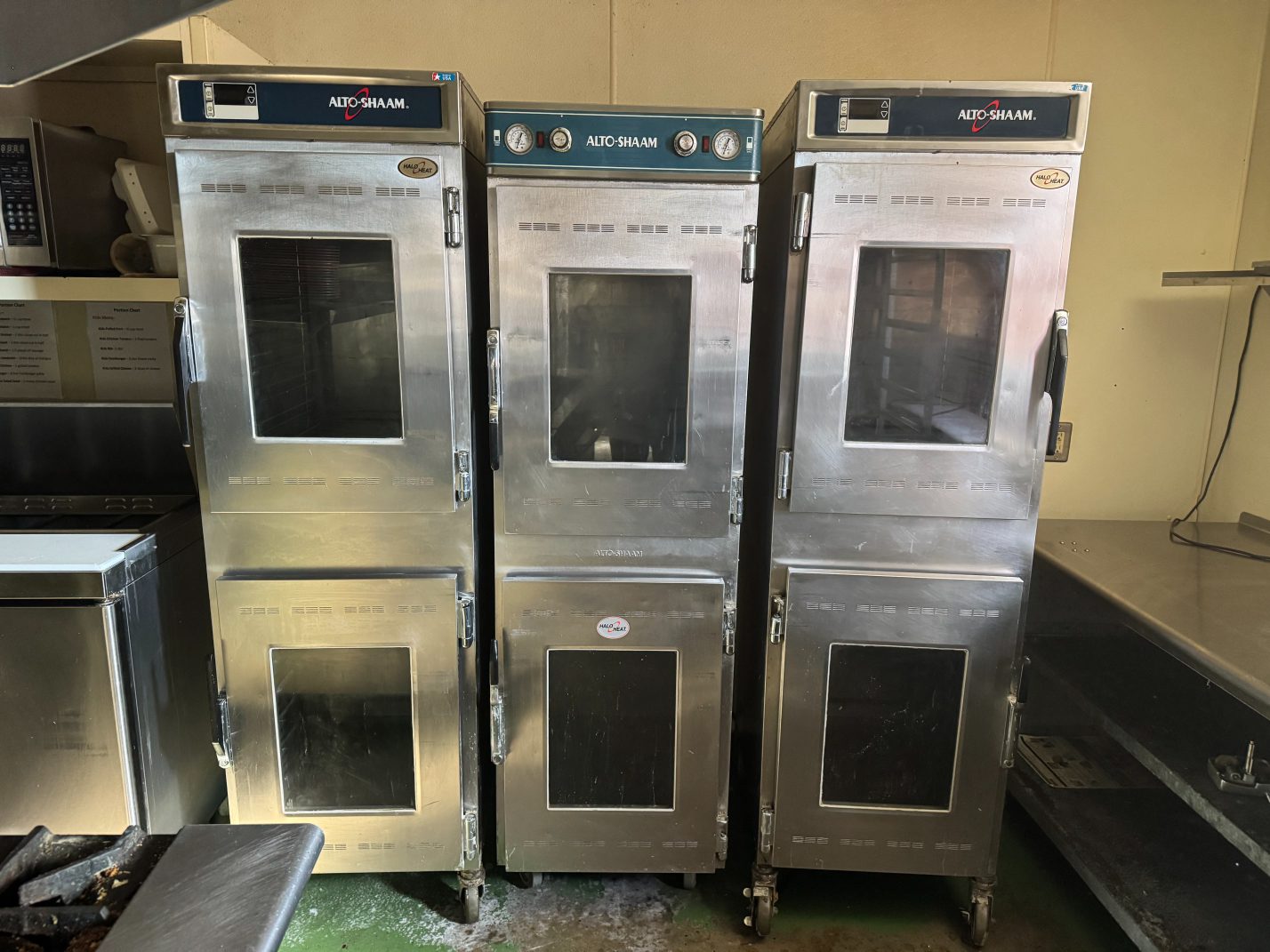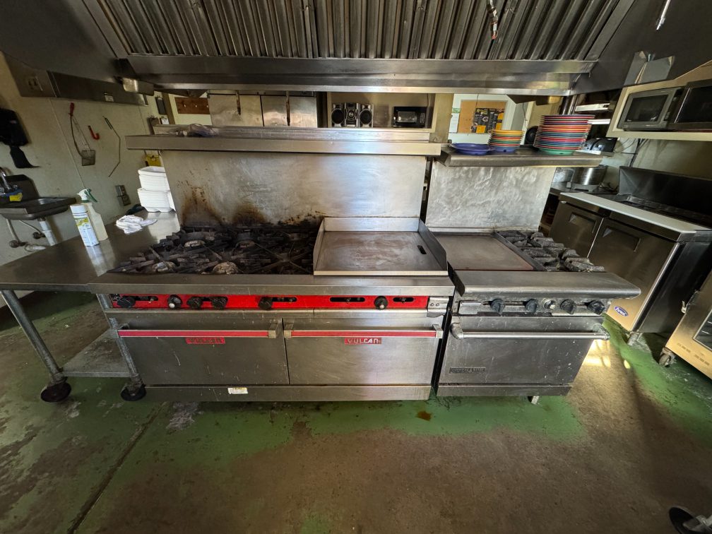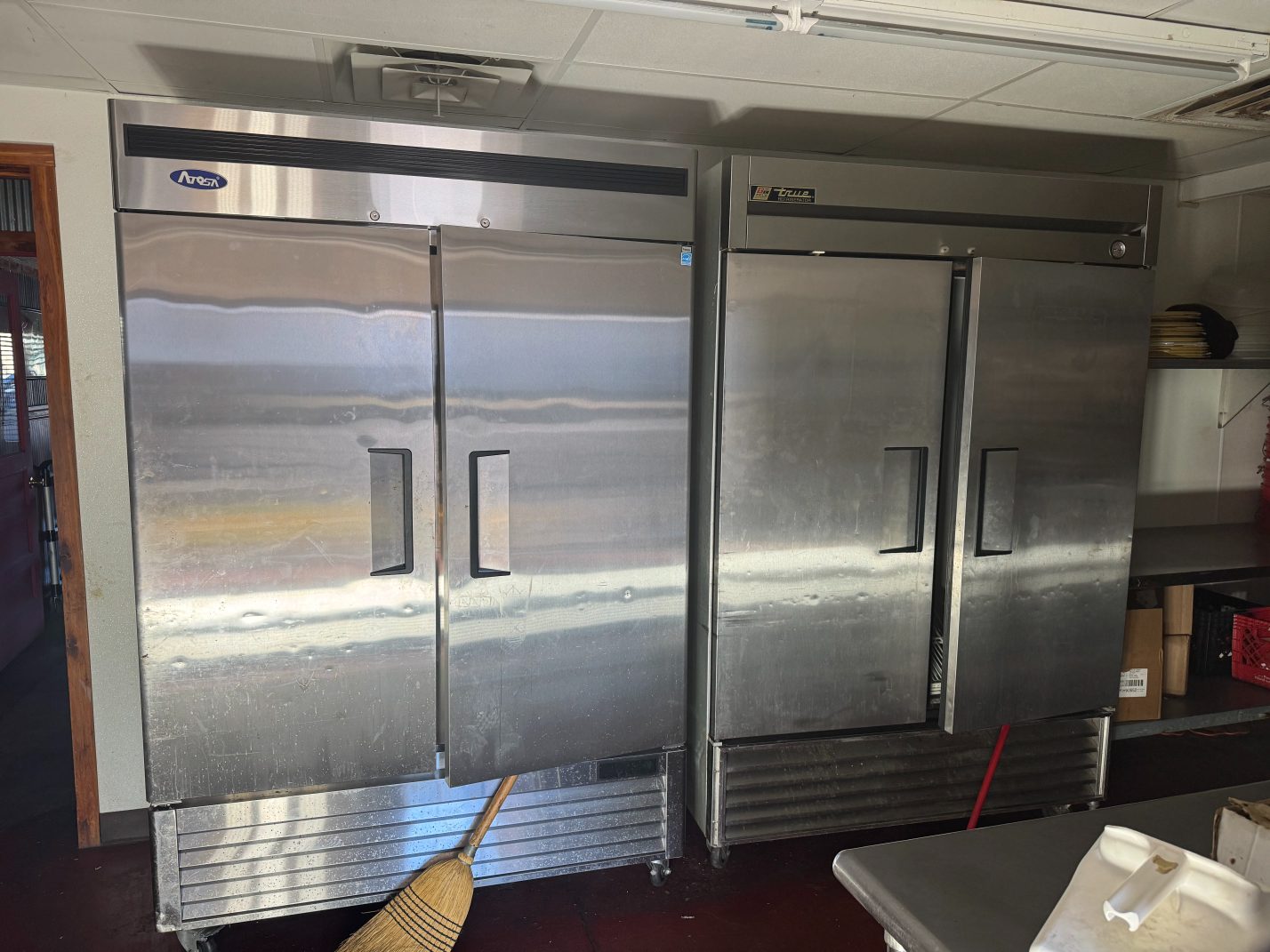 Restaurant Equipment: (2) 3’x5′ Southern Pride Gas BBQ Smokers Model 5K-500-SLSE – Vulcan 6-Burner Gas Stove w/Griddle – American Range 2-Burner Gas Stove w/Griddle – Southbend Convection Oven – Legion Insulated Kettle – Delfield SS Reach-in Cooler – (3) True 2-Door Coolers – Delfield 3-Door Cooler – Atosa 2-Door SS Under-Counter Cooler – (2) Atosa 2-Door Freezers – True 2-Door Freezer – Kolpak 6’x6’x7’6″ Walk-in Cooler or Freezer – Kolpak 8’x6’x7½’ Walk-in Cooler or Freezer – (2) Atosa Refrigerated Prep Bars – 4-Vat Steam Table – (2) Double Basket Gas Deep Fryers – (3) Alto-Shaam Warmers – Hafco Warmer – Electrolux Warmer – APW Food Warmers – SS Roll Around Bread Cart – Hobart Meat Grinder Model 81810 – Hobart Meat Slicer – (2) Manitowac Ice Machines w/Bins – (2) Ice Bins – Astoria Sabrina Espresso Machine – Bunn Coffee Mill & Maker – Compak Coffee Grinder – Menumaster Jet Wave – Monster Cooler – 2′ SS Table w/Drawer – 2′ SS Table – (2) 3′ SS Table – (4) 4′ SS Tables – 5′ SS Table – (4) 6′ SS Tables – 9′ SS Table – SS Cart – Dunnage Racks – SS Racks & Shelves – Carlisle Insulated Food Carriers – (3) Microwaves – Bus Trays & Carts – Scales – Knife Sharpener – Pots & Pans – Pitchers, Dishes, Plates, Cups, Utensils, S&P Shakers, etc – Appx 25 Tables – Appx 125 Chairs – (8) Cedar Booths – Hostess Stand – Take-out Containers