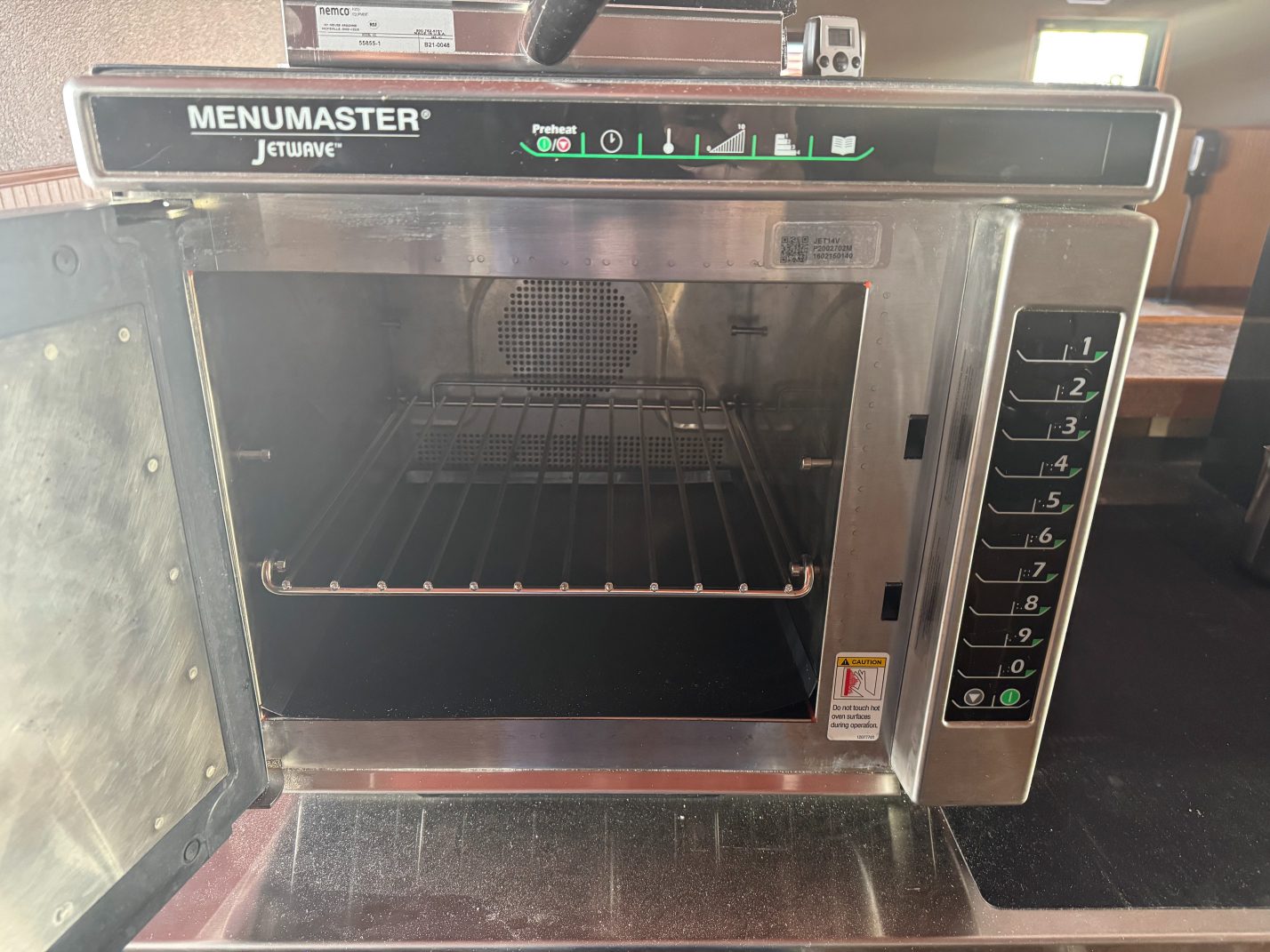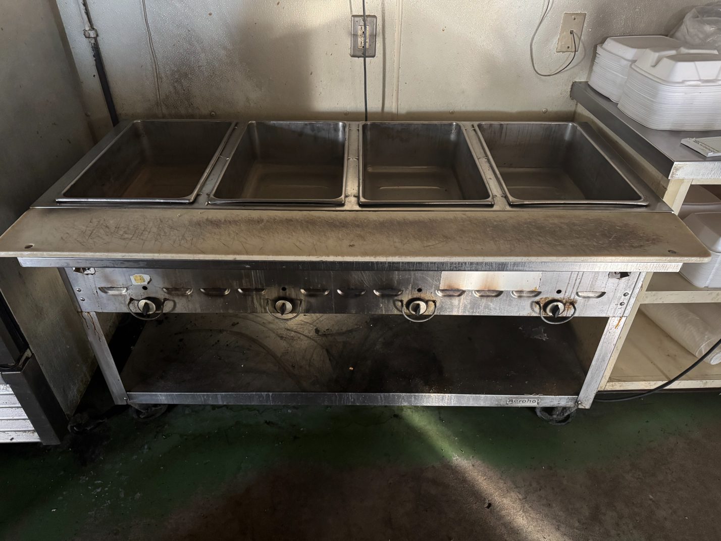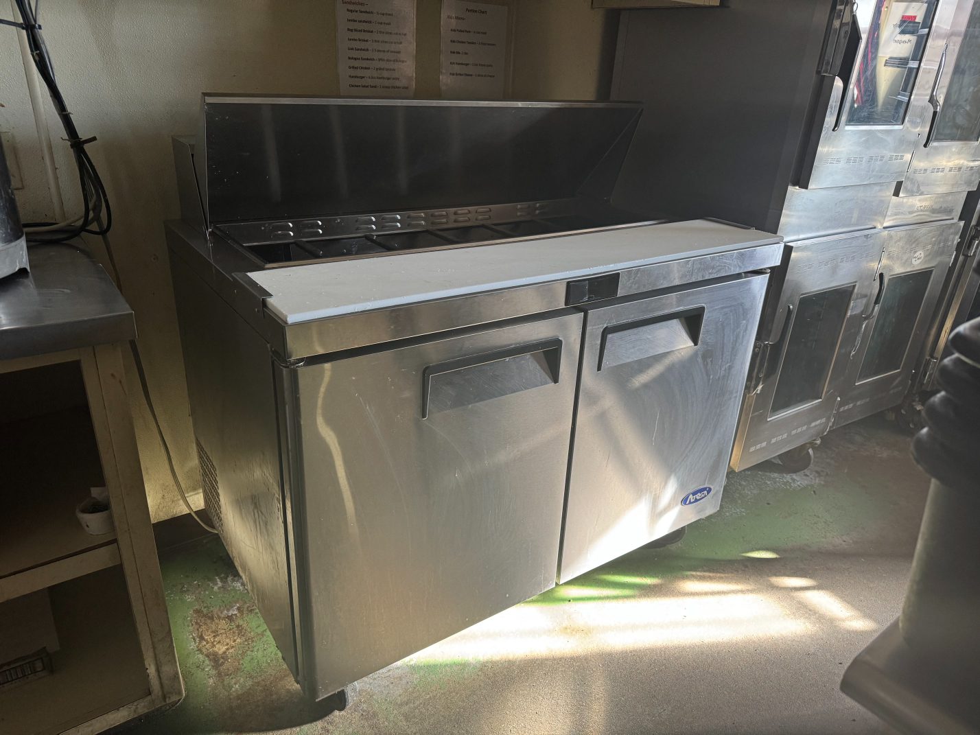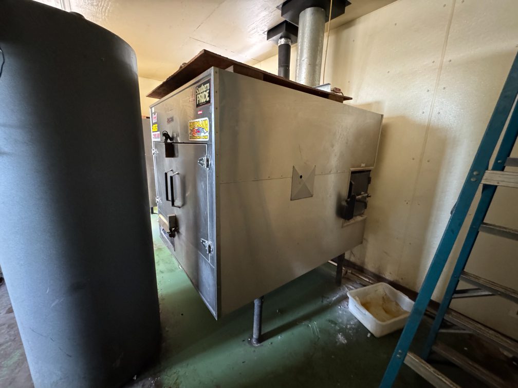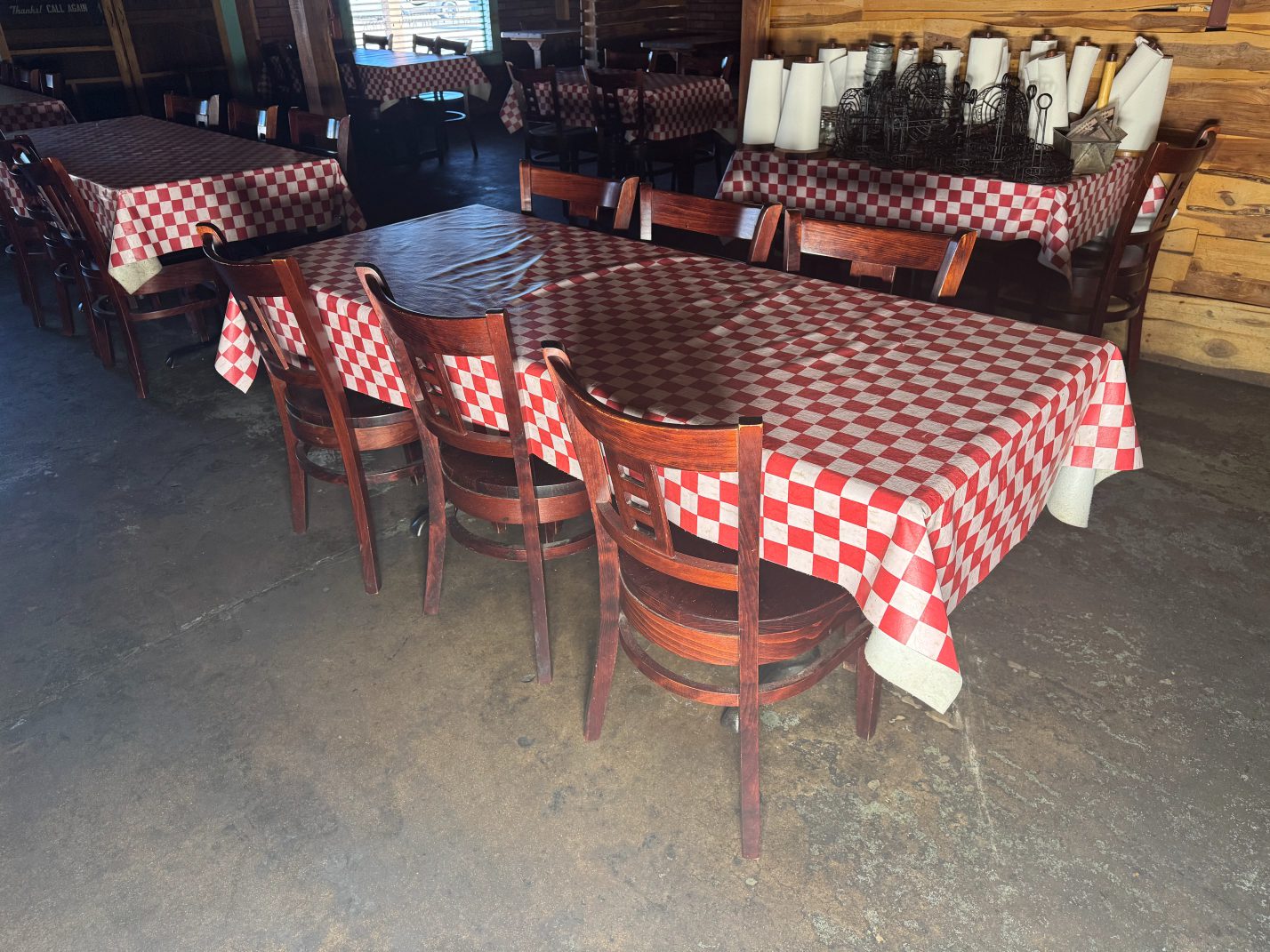 Restaurant Equipment: (2) 3’x5′ Southern Pride Gas BBQ Smokers Model 5K-500-SLSE – Vulcan 6-Burner Gas Stove w/Griddle – American Range 2-Burner Gas Stove w/Griddle – Southbend Convection Oven – Legion Insulated Kettle – Delfield SS Reach-in Cooler – (3) True 2-Door Coolers – Delfield 3-Door Cooler – Atosa 2-Door SS Under-Counter Cooler – (2) Atosa 2-Door Freezers – True 2-Door Freezer – Kolpak 6’x6’x7’6″ Walk-in Cooler or Freezer – Kolpak 8’x6’x7½’ Walk-in Cooler or Freezer – (2) Atosa Refrigerated Prep Bars – 4-Vat Steam Table – (2) Double Basket Gas Deep Fryers – (3) Alto-Shaam Warmers – Hafco Warmer – Electrolux Warmer – APW Food Warmers – SS Roll Around Bread Cart – Hobart Meat Grinder Model 81810 – Hobart Meat Slicer – (2) Manitowac Ice Machines w/Bins – (2) Ice Bins – Astoria Sabrina Espresso Machine – Bunn Coffee Mill & Maker – Compak Coffee Grinder – Menumaster Jet Wave – Monster Cooler – 2′ SS Table w/Drawer – 2′ SS Table – (2) 3′ SS Table – (4) 4′ SS Tables – 5′ SS Table – (4) 6′ SS Tables – 9′ SS Table – SS Cart – Dunnage Racks – SS Racks & Shelves – Carlisle Insulated Food Carriers – (3) Microwaves – Bus Trays & Carts – Scales – Knife Sharpener – Pots & Pans – Pitchers, Dishes, Plates, Cups, Utensils, S&P Shakers, etc – Appx 25 Tables – Appx 125 Chairs – (8) Cedar Booths – Hostess Stand – Take-out Containers
