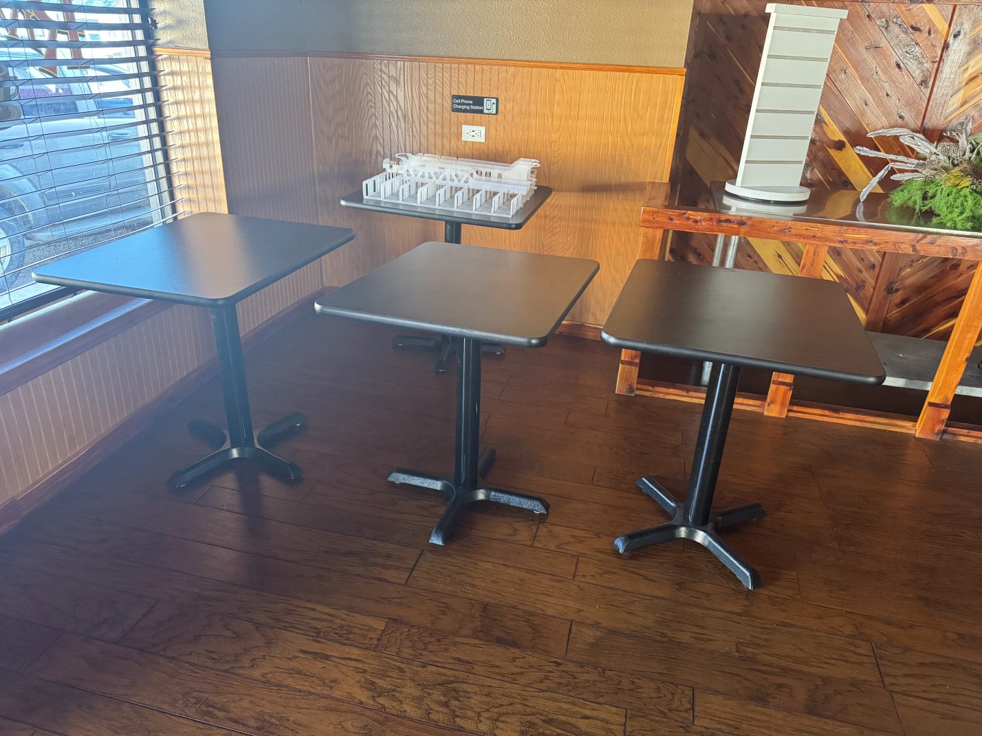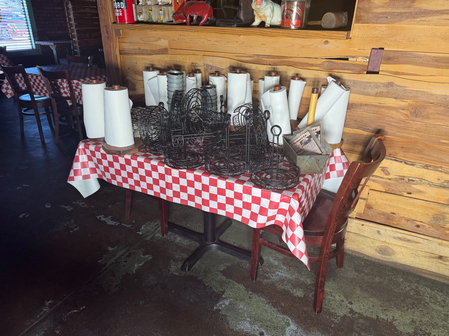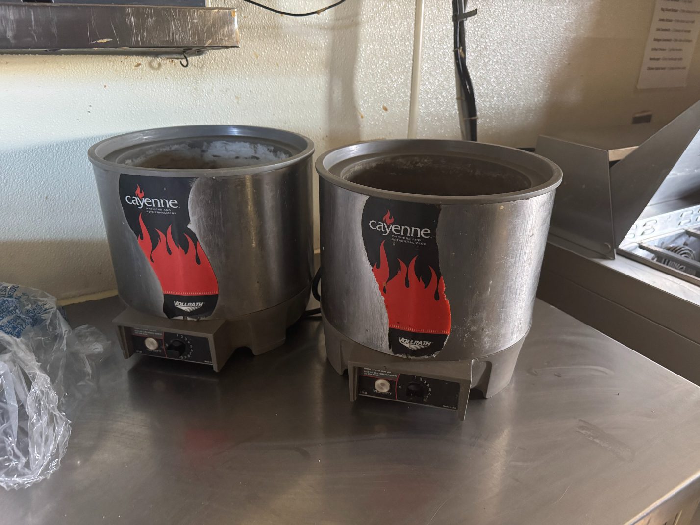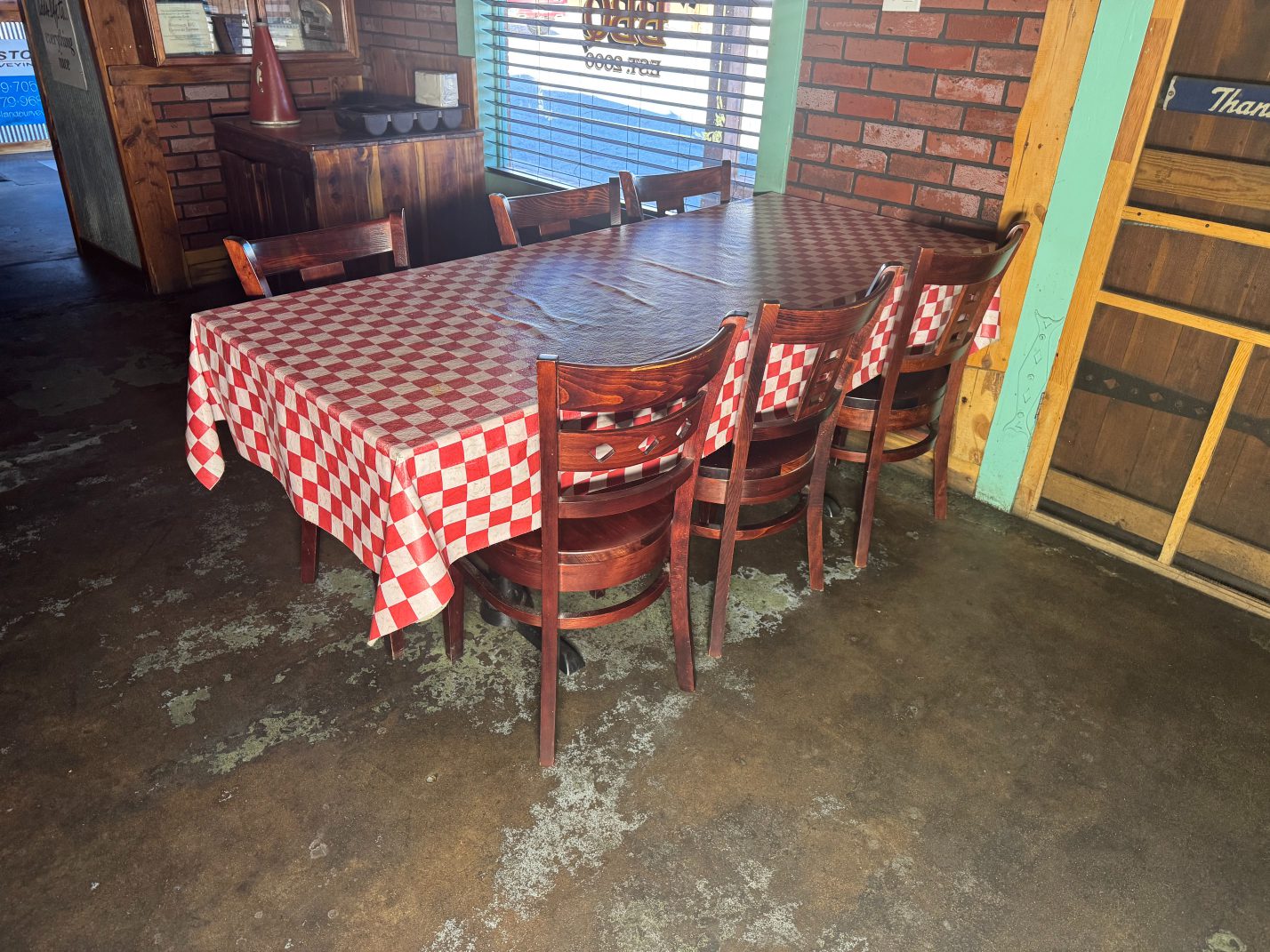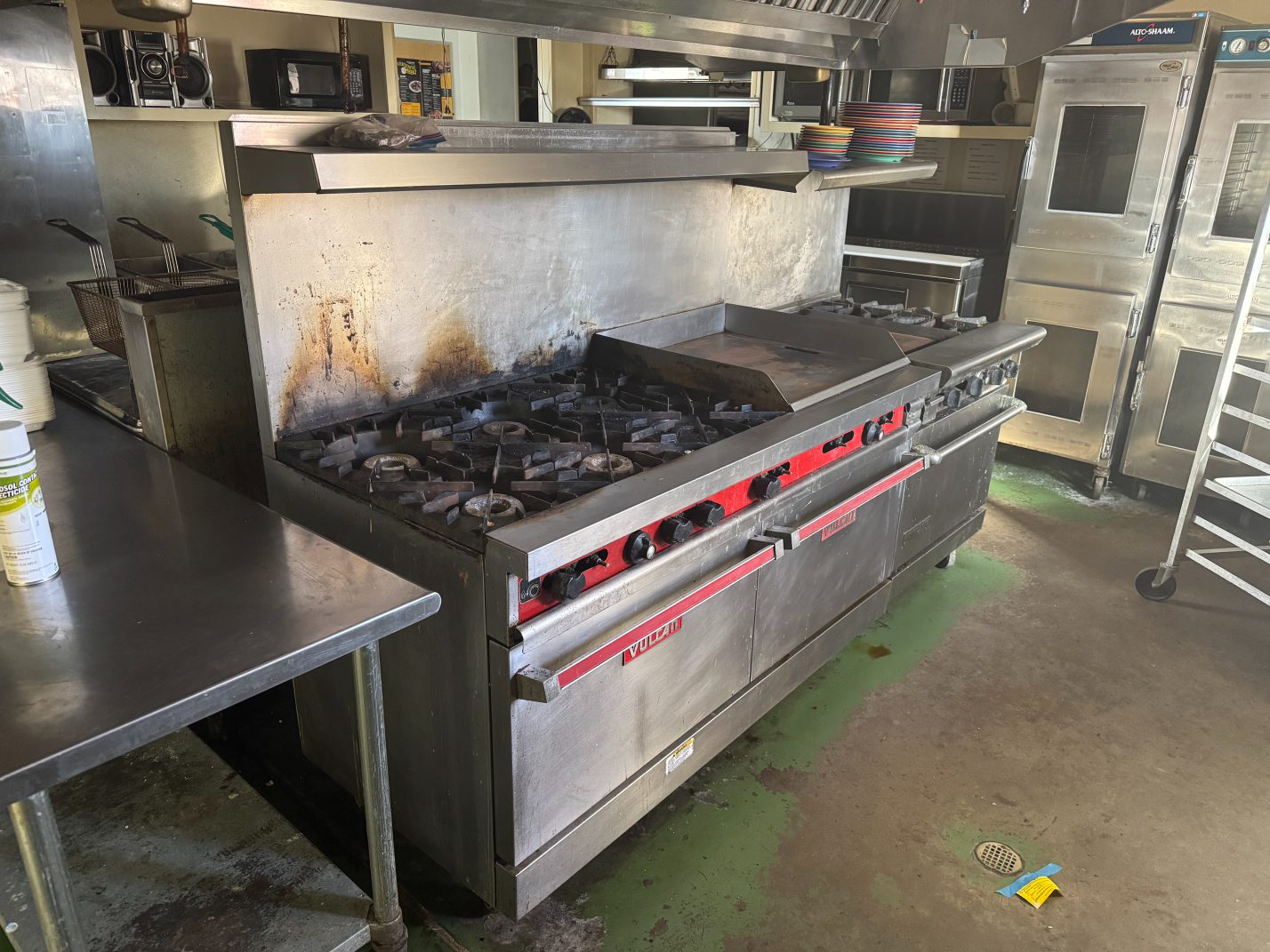 Restaurant Equipment: (2) 3’x5′ Southern Pride Gas BBQ Smokers Model 5K-500-SLSE – Vulcan 6-Burner Gas Stove w/Griddle – American Range 2-Burner Gas Stove w/Griddle – Southbend Convection Oven – Legion Insulated Kettle – Delfield SS Reach-in Cooler – (3) True 2-Door Coolers – Delfield 3-Door Cooler – Atosa 2-Door SS Under-Counter Cooler – (2) Atosa 2-Door Freezers – True 2-Door Freezer – Kolpak 6’x6’x7’6″ Walk-in Cooler or Freezer – Kolpak 8’x6’x7½’ Walk-in Cooler or Freezer – (2) Atosa Refrigerated Prep Bars – 4-Vat Steam Table – (2) Double Basket Gas Deep Fryers – (3) Alto-Shaam Warmers – Hafco Warmer – Electrolux Warmer – APW Food Warmers – SS Roll Around Bread Cart – Hobart Meat Grinder Model 81810 – Hobart Meat Slicer – (2) Manitowac Ice Machines w/Bins – (2) Ice Bins – Astoria Sabrina Espresso Machine – Bunn Coffee Mill & Maker – Compak Coffee Grinder – Menumaster Jet Wave – Monster Cooler – 2′ SS Table w/Drawer – 2′ SS Table – (2) 3′ SS Table – (4) 4′ SS Tables – 5′ SS Table – (4) 6′ SS Tables – 9′ SS Table – SS Cart – Dunnage Racks – SS Racks & Shelves – Carlisle Insulated Food Carriers – (3) Microwaves – Bus Trays & Carts – Scales – Knife Sharpener – Pots & Pans – Pitchers, Dishes, Plates, Cups, Utensils, S&P Shakers, etc – Appx 25 Tables – Appx 125 Chairs – (8) Cedar Booths – Hostess Stand – Take-out Containers