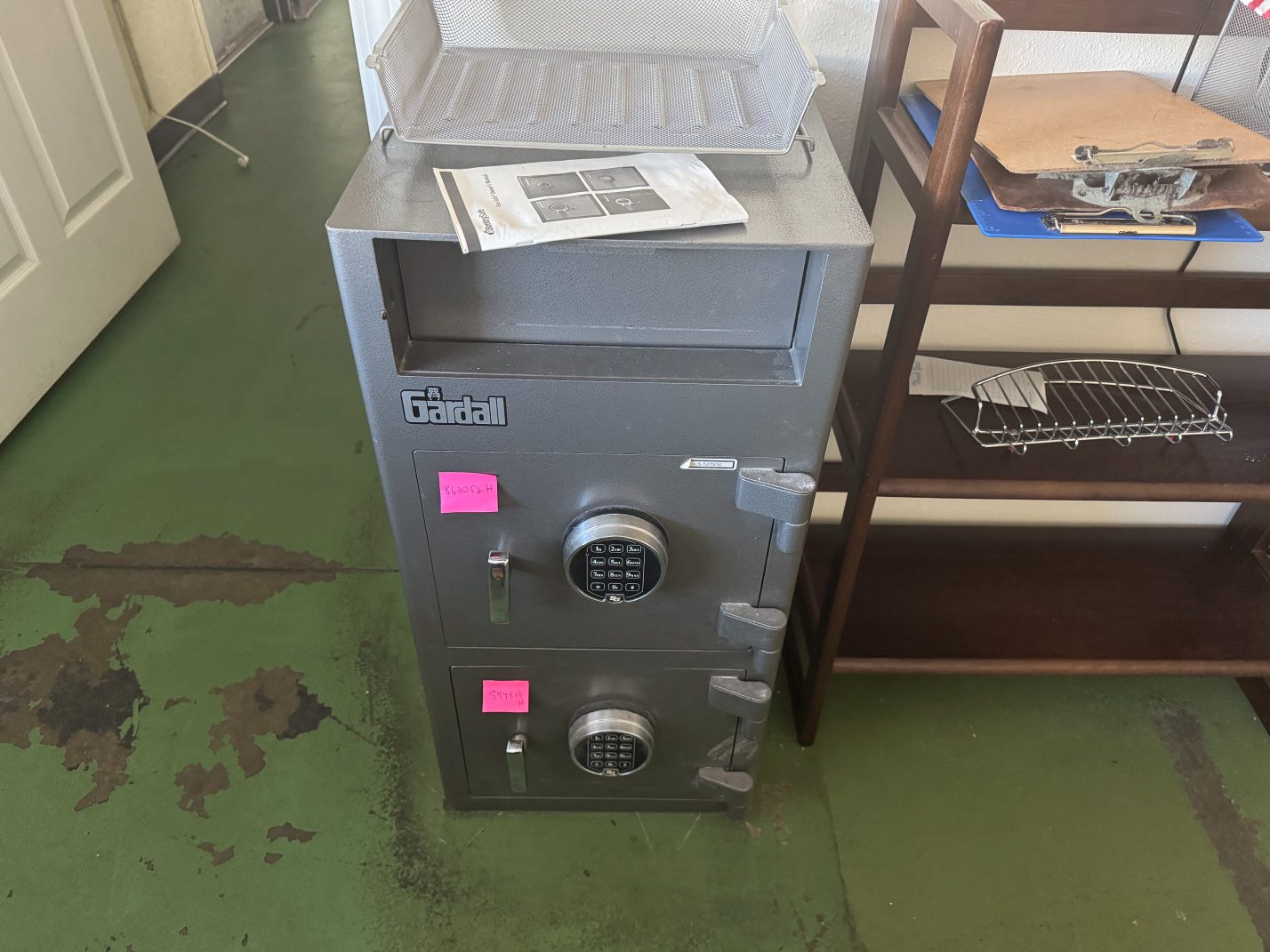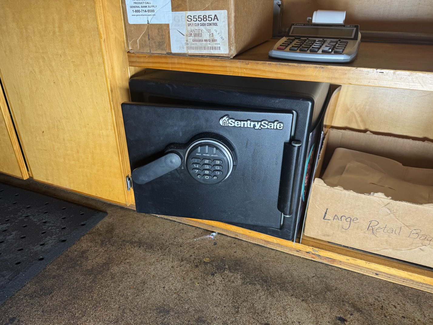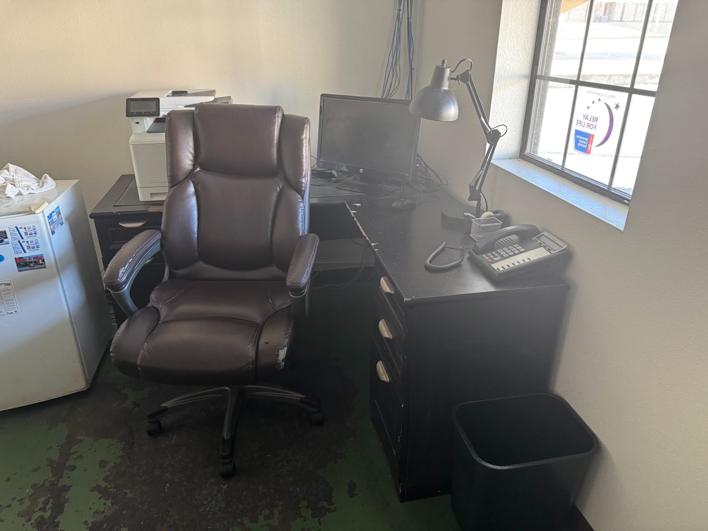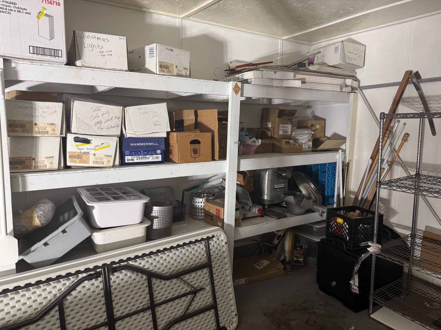 And: Gardall Safe – Sentry Safe – Dolly – Fiberglass Ladder – Pallet Rack – Oak Desk – Office Chair – Radiant POS System – Walkie Talkies – HP Printer – Misc Electronics – T-Shirt Display – Leather Sofa – Coffee & End Tables – Lifetime Tables